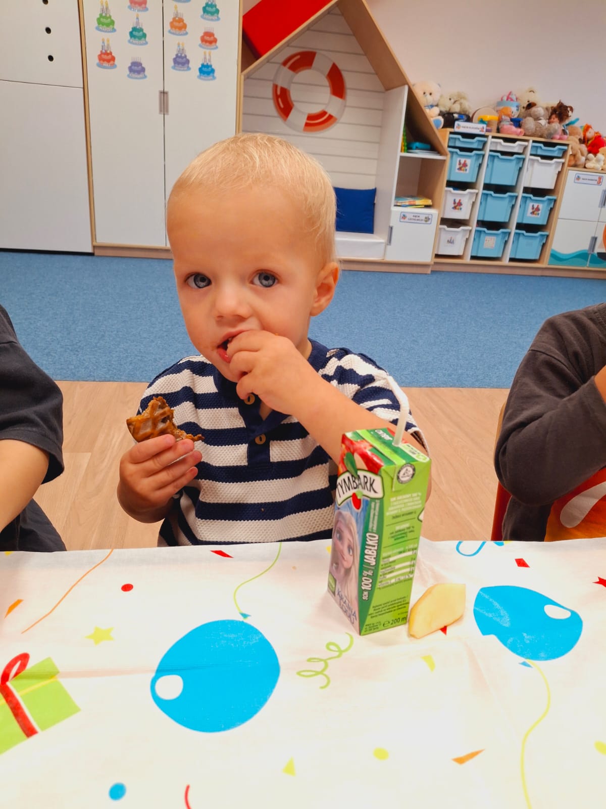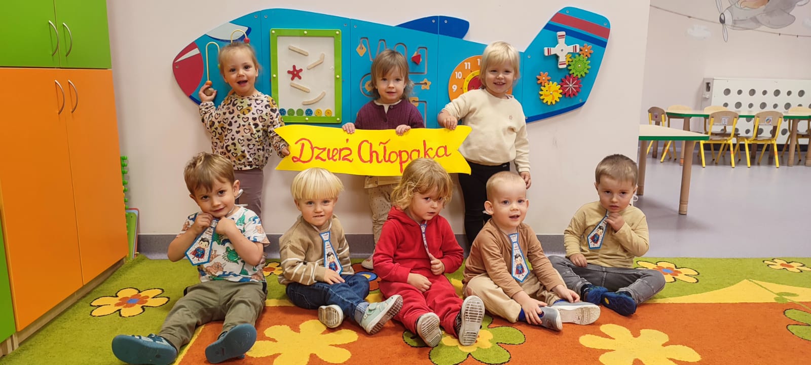 Każdy dzień w żłobku jest wyjątkowy, ale Dzień Chłopca to okazja do jeszcze większej radości i świętowania. Od najmłodszych lat uczymy dzieci, aby pamiętały o ważnych uroczystościach w życiu rodziny czy życiu żłobka. Podczas tego dnia ciocie zorganizowały różne aktywności i zabawy, które pozwoliły spędzić czas razem i uczcić tą wyjątkową okazję. Na początku dziewczynki z tej okazji zaśpiewały kolegom z grupy "sto lat", a później wręczyły chłopcom upominki. Nie zbrakło, także w tym dniu wesołych pląsów i słodkiego poczęstunku.