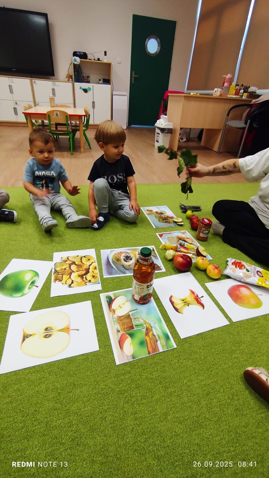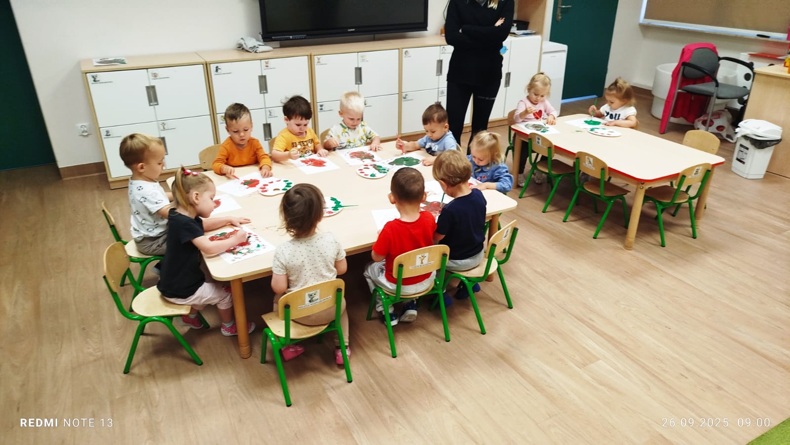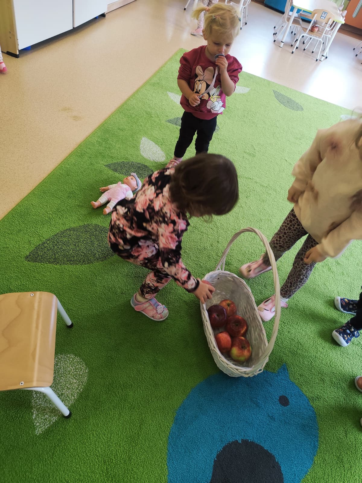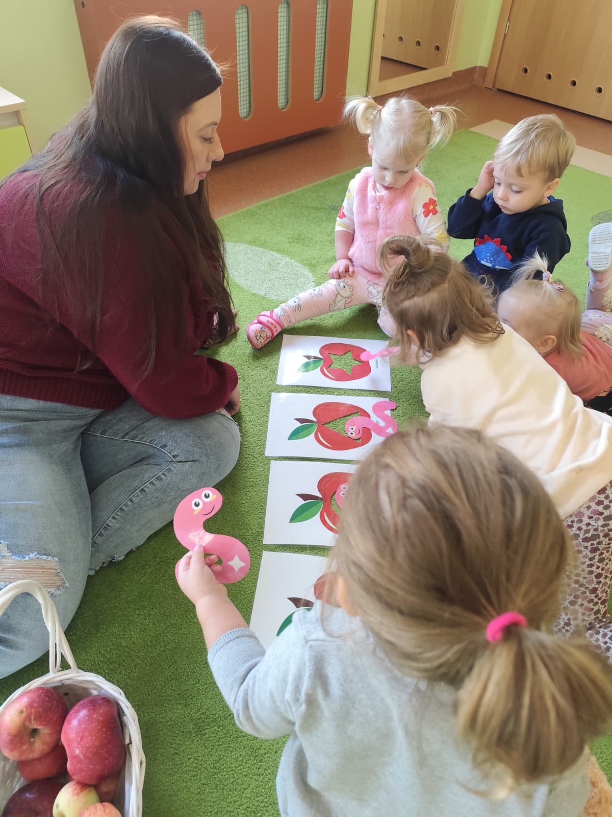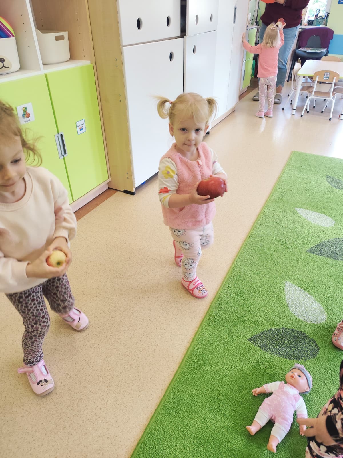 Nie zabrakło wspólnych zabaw plastycznych – maluchy tworzyły kolorowe prace z motywem jabłka. Były też wesołe piosenki i zabawy ruchowe związane z tym pysznym owocem. Największą atrakcją okazała się degustacja – dzieci chrupały świeże jabłka, piły sok jabłkowy i próbowały musu jabłkowego. Dzięki temu mogły się przekonać, że jabłko można podawać na wiele różnych sposobów.
