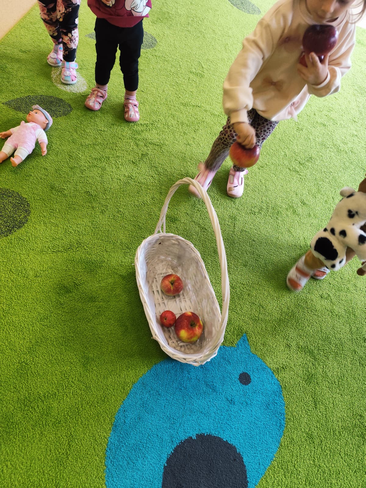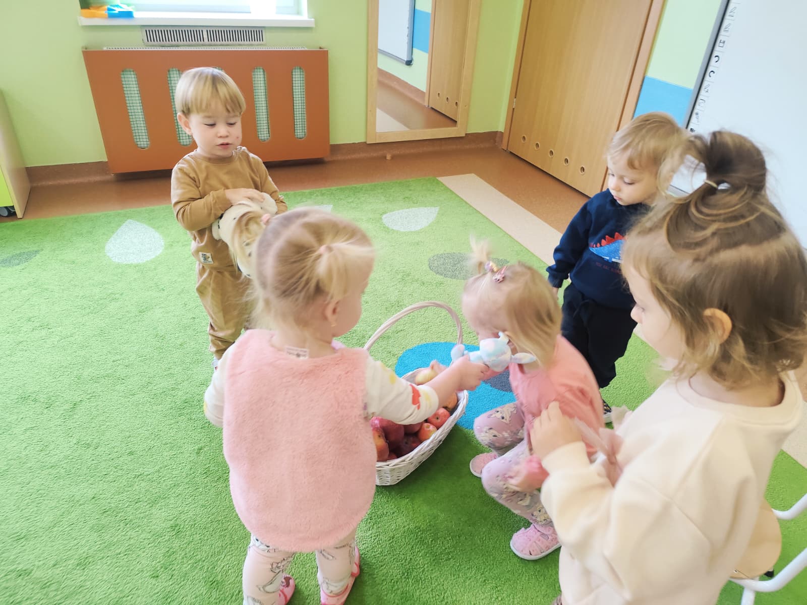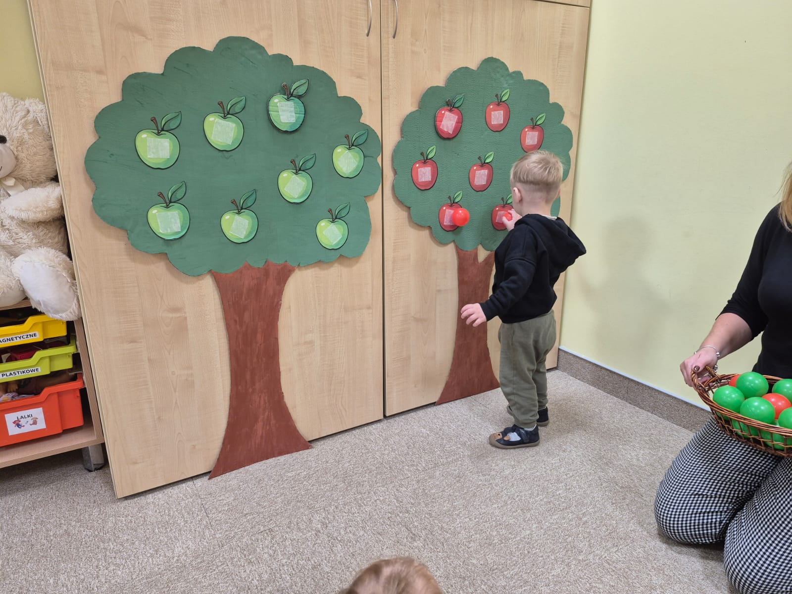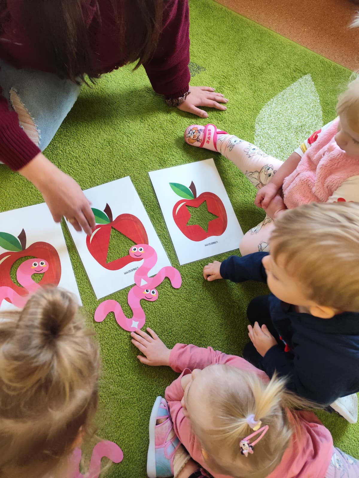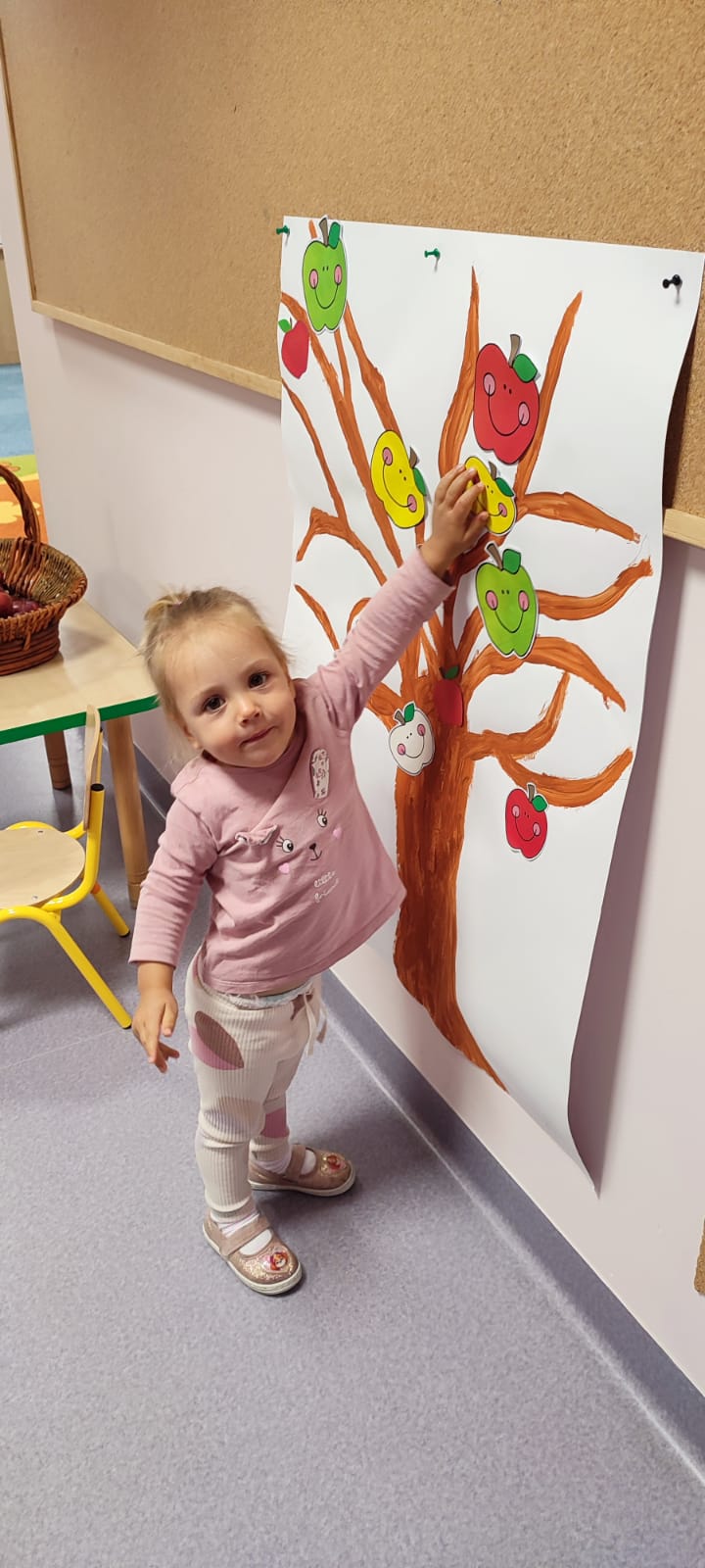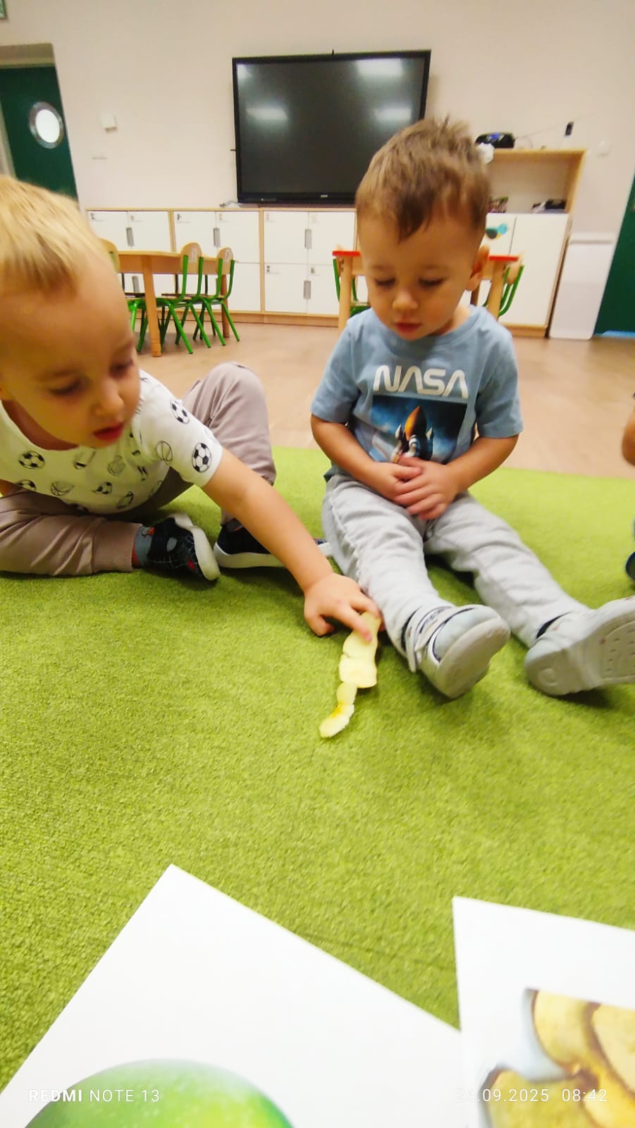 Nie zabrakło wspólnych zabaw plastycznych – maluchy tworzyły kolorowe prace z motywem jabłka. Były też wesołe piosenki i zabawy ruchowe związane z tym pysznym owocem. Największą atrakcją okazała się degustacja – dzieci chrupały świeże jabłka, piły sok jabłkowy i próbowały musu jabłkowego. Dzięki temu mogły się przekonać, że jabłko można podawać na wiele różnych sposobów.