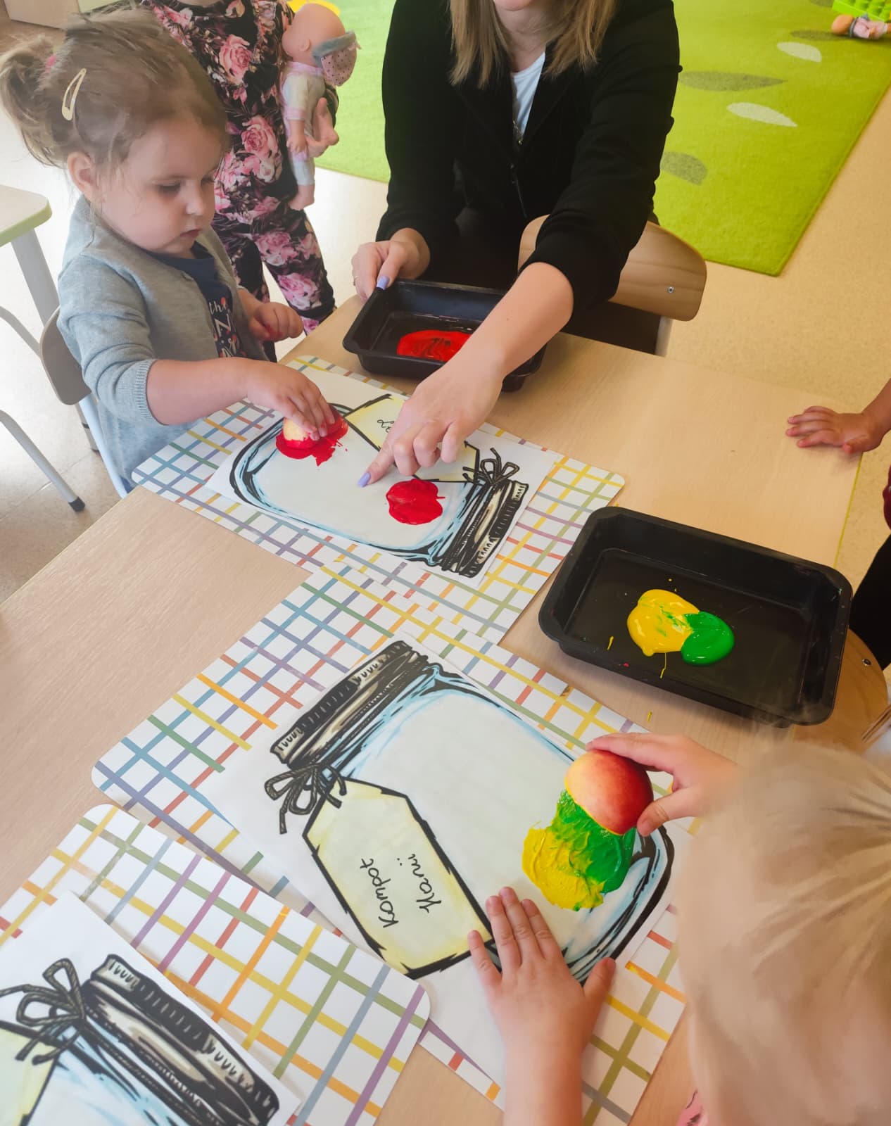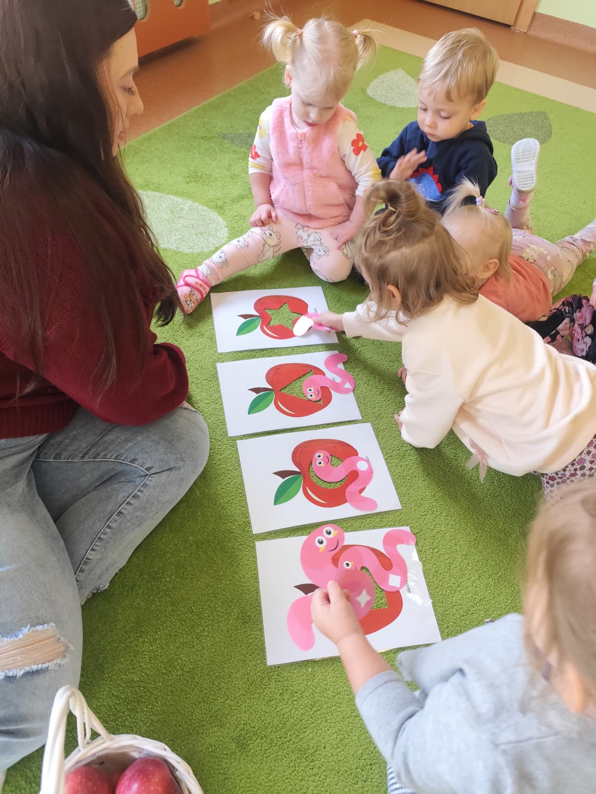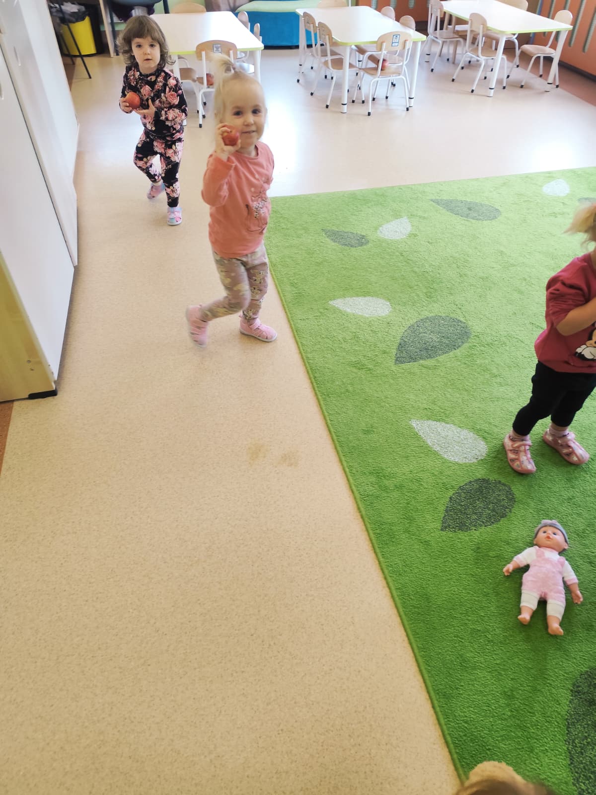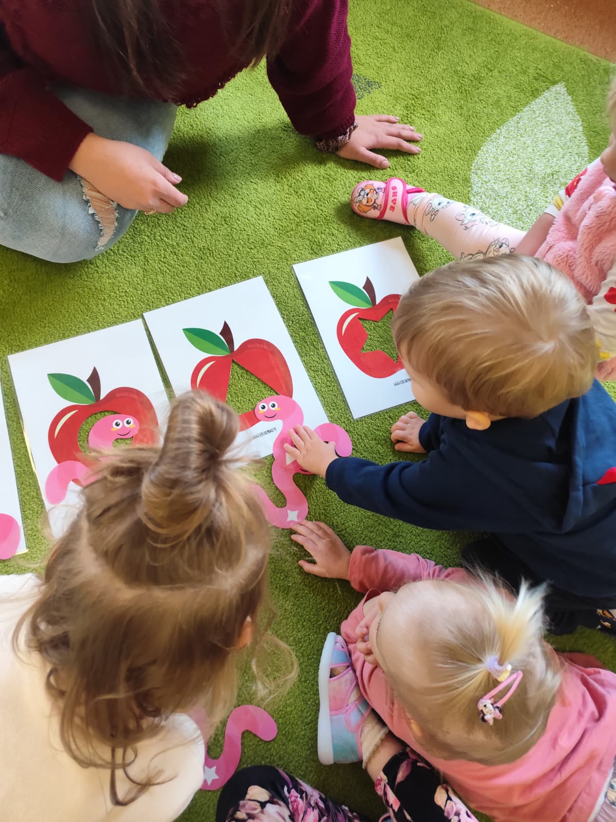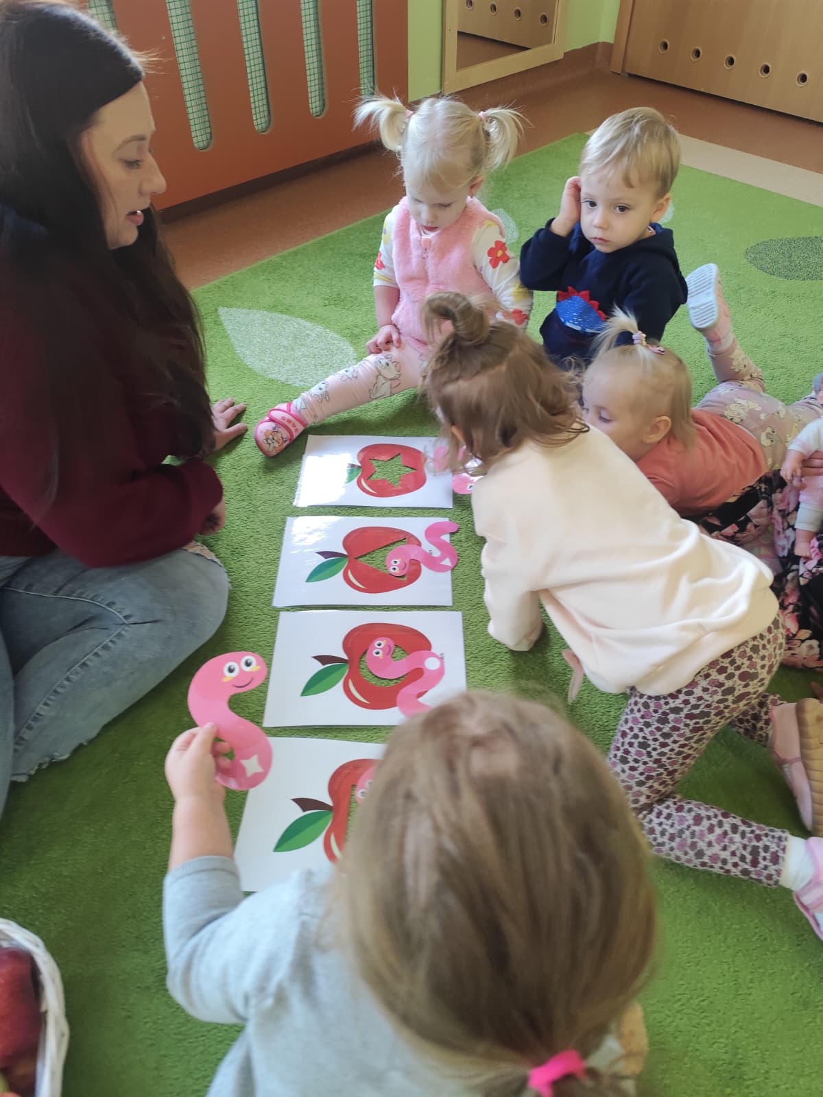 Nie zabrakło wspólnych zabaw plastycznych – maluchy tworzyły kolorowe prace z motywem jabłka. Były też wesołe piosenki i zabawy ruchowe związane z tym pysznym owocem. Największą atrakcją okazała się degustacja – dzieci chrupały świeże jabłka, piły sok jabłkowy i próbowały musu jabłkowego. Dzięki temu mogły się przekonać, że jabłko można podawać na wiele różnych sposobów.