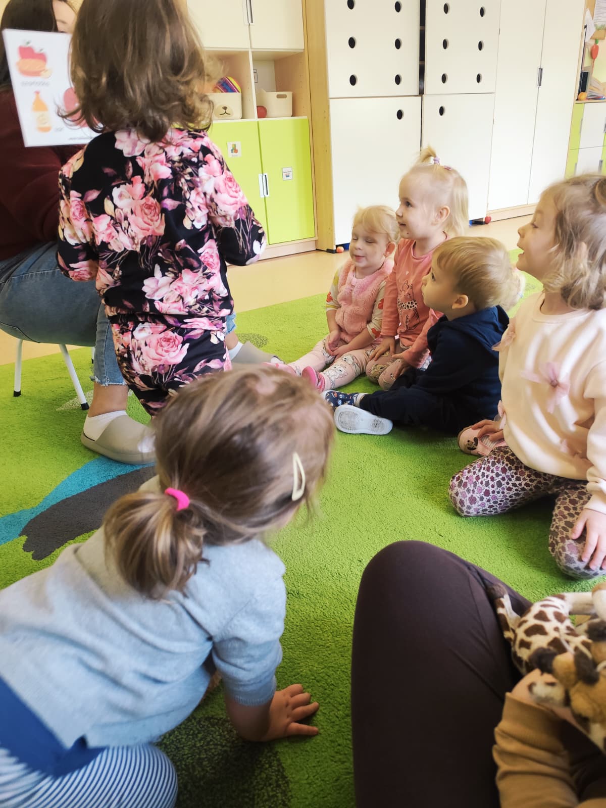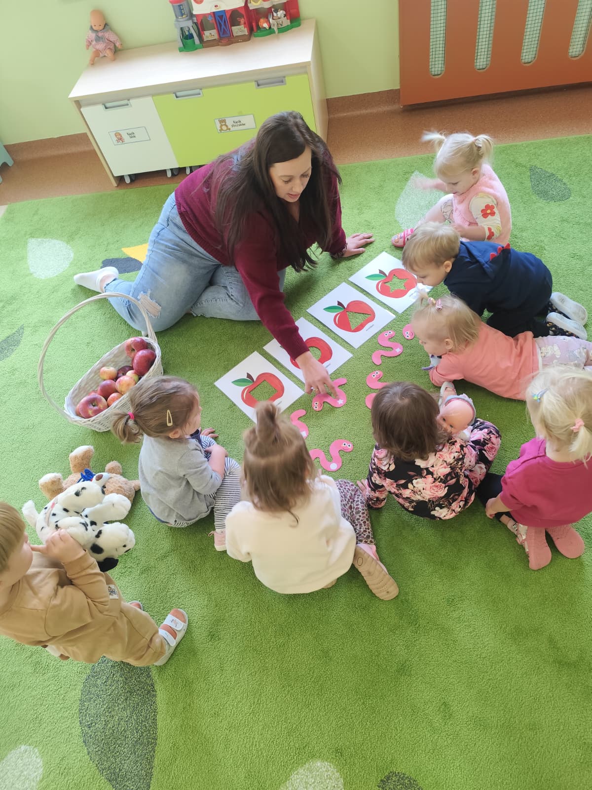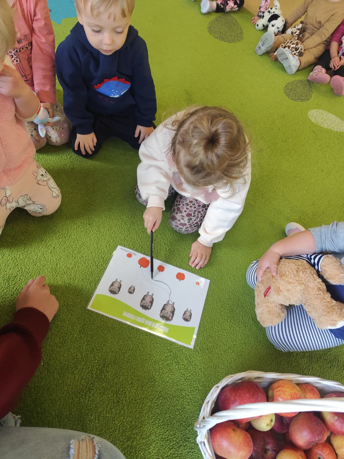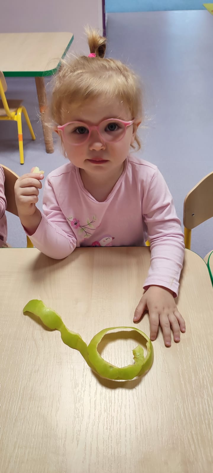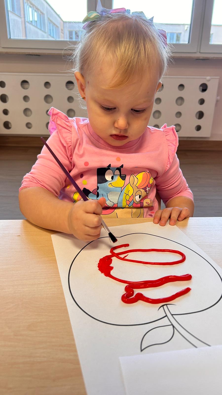 Nie zabrakło wspólnych zabaw plastycznych – maluchy tworzyły kolorowe prace z motywem jabłka. Były też wesołe piosenki i zabawy ruchowe związane z tym pysznym owocem. Największą atrakcją okazała się degustacja – dzieci chrupały świeże jabłka, piły sok jabłkowy i próbowały musu jabłkowego. Dzięki temu mogły się przekonać, że jabłko można podawać na wiele różnych sposobów.