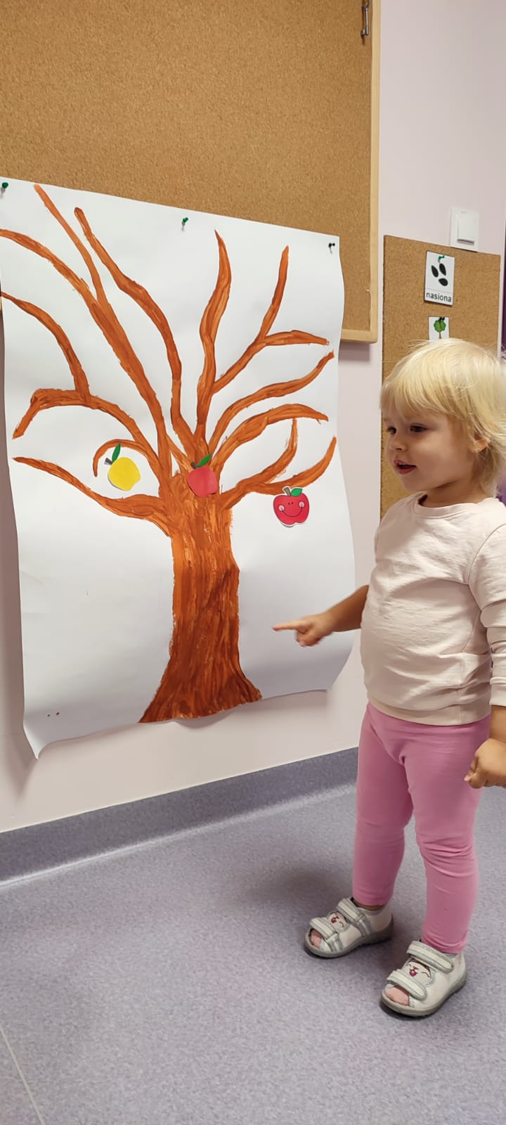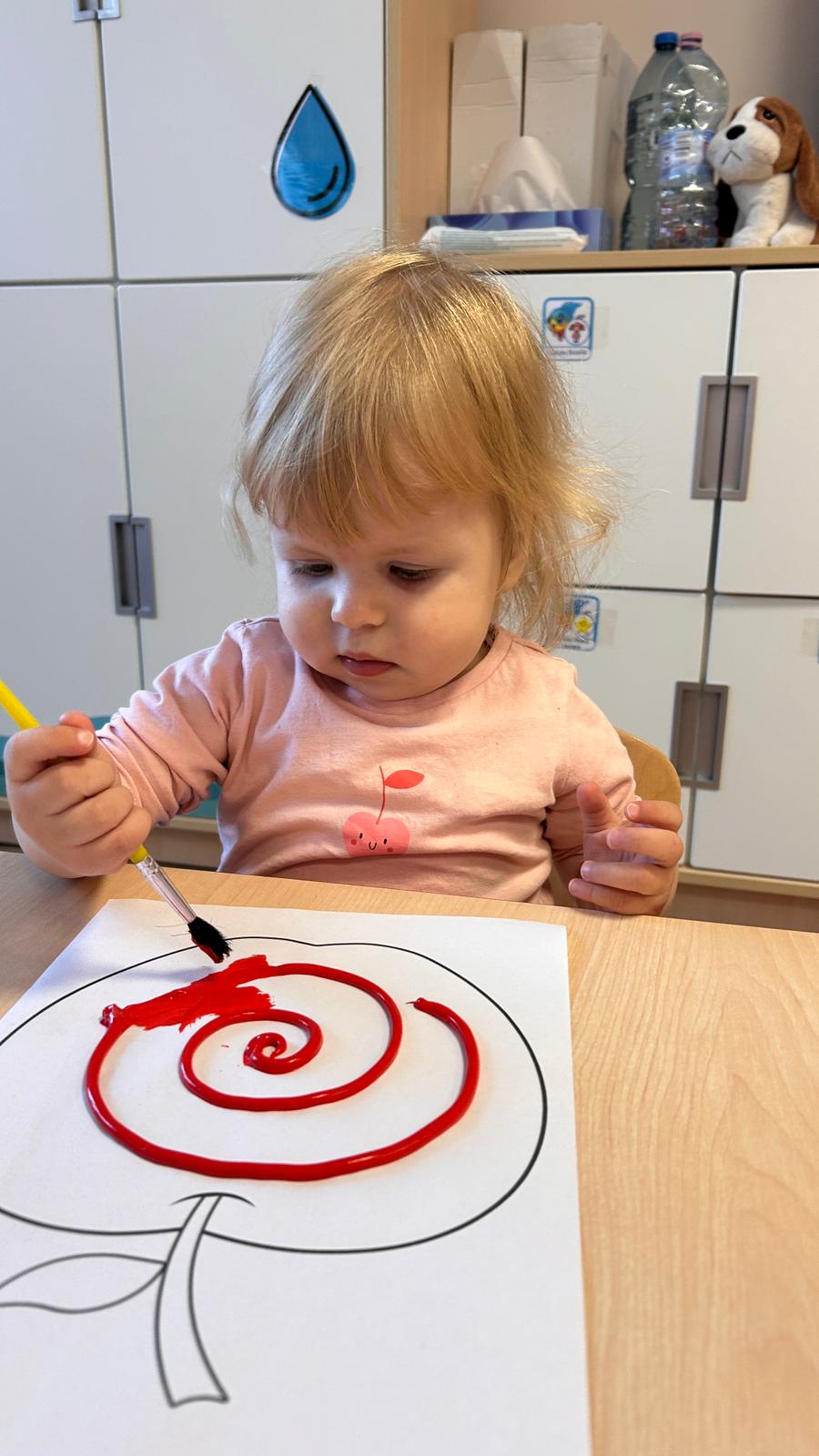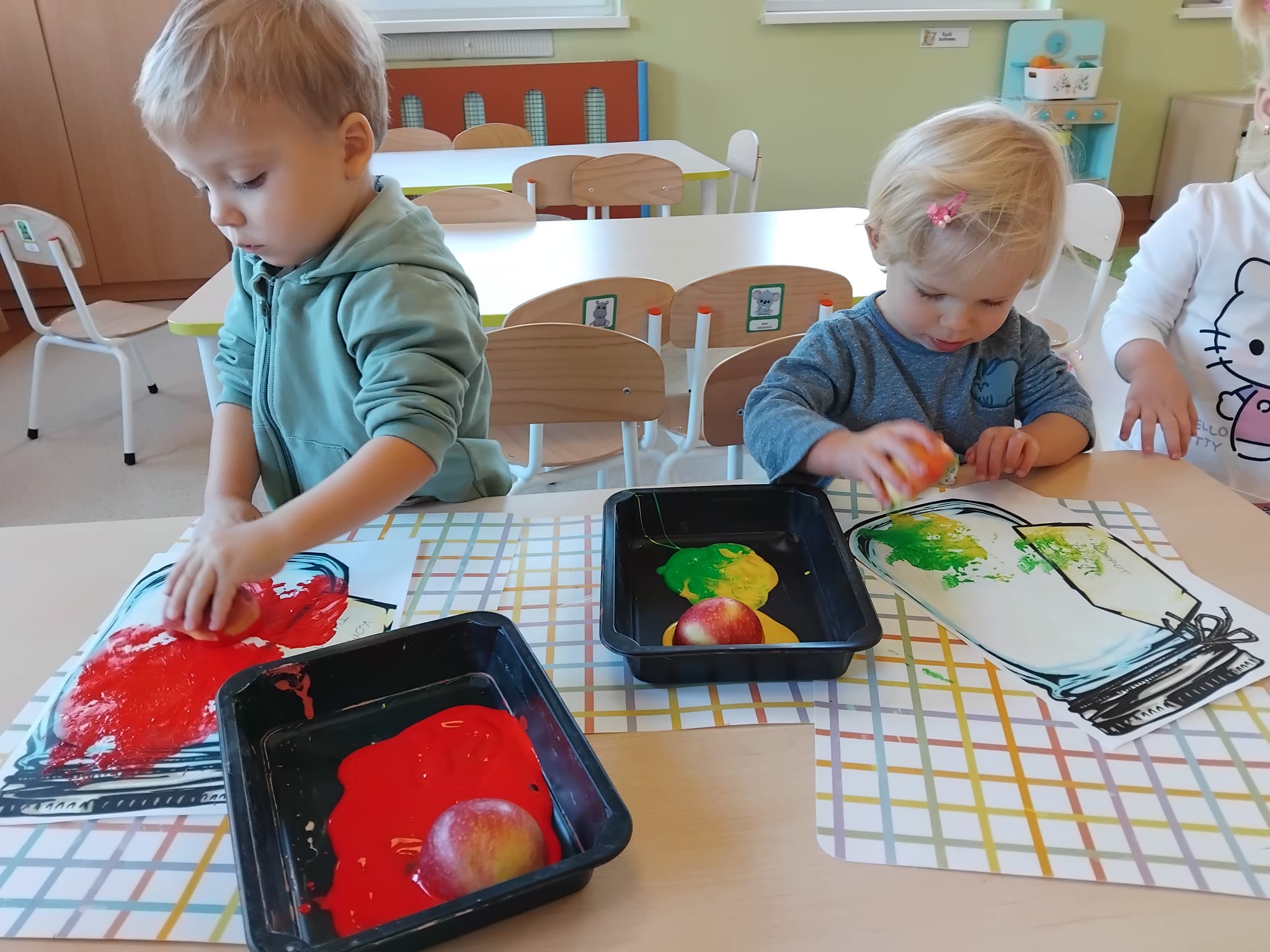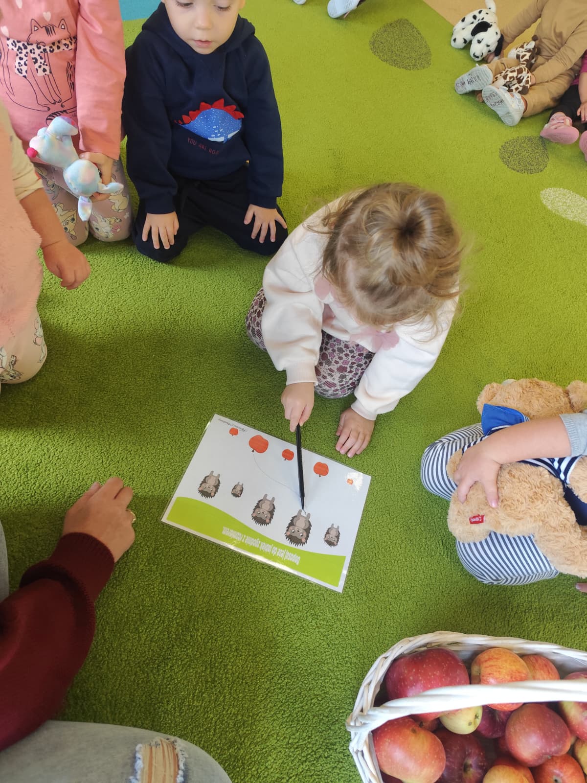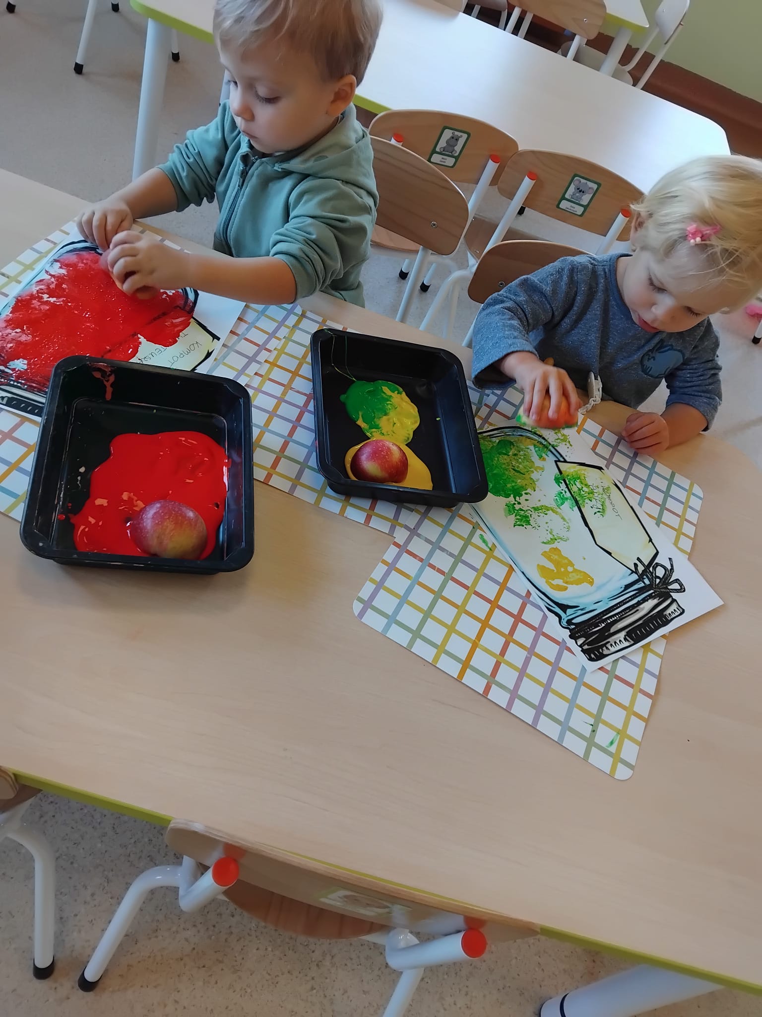 Nie zabrakło wspólnych zabaw plastycznych – maluchy tworzyły kolorowe prace z motywem jabłka. Były też wesołe piosenki i zabawy ruchowe związane z tym pysznym owocem. Największą atrakcją okazała się degustacja – dzieci chrupały świeże jabłka, piły sok jabłkowy i próbowały musu jabłkowego. Dzięki temu mogły się przekonać, że jabłko można podawać na wiele różnych sposobów.