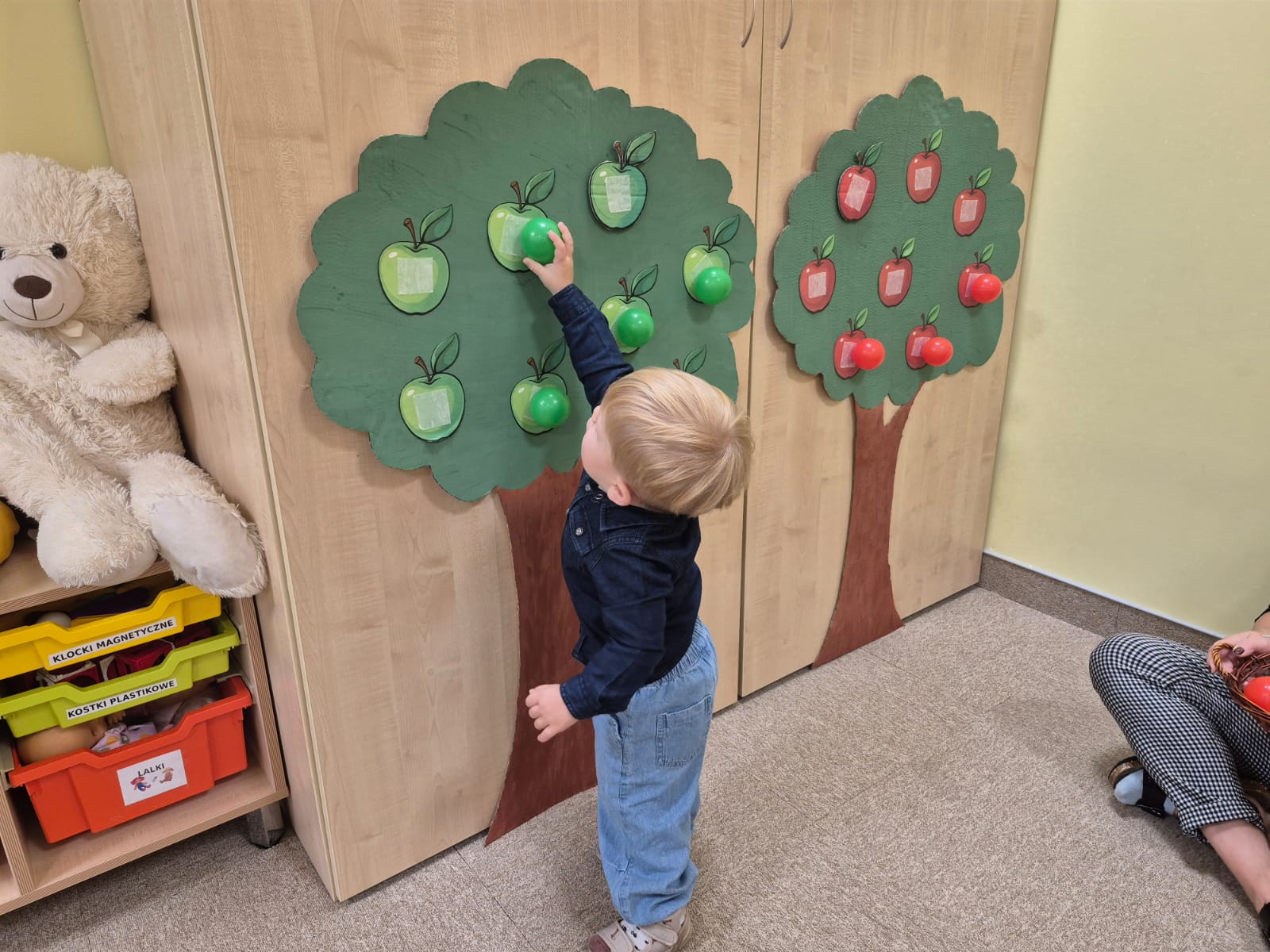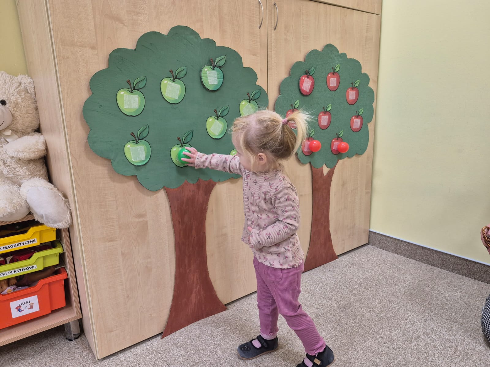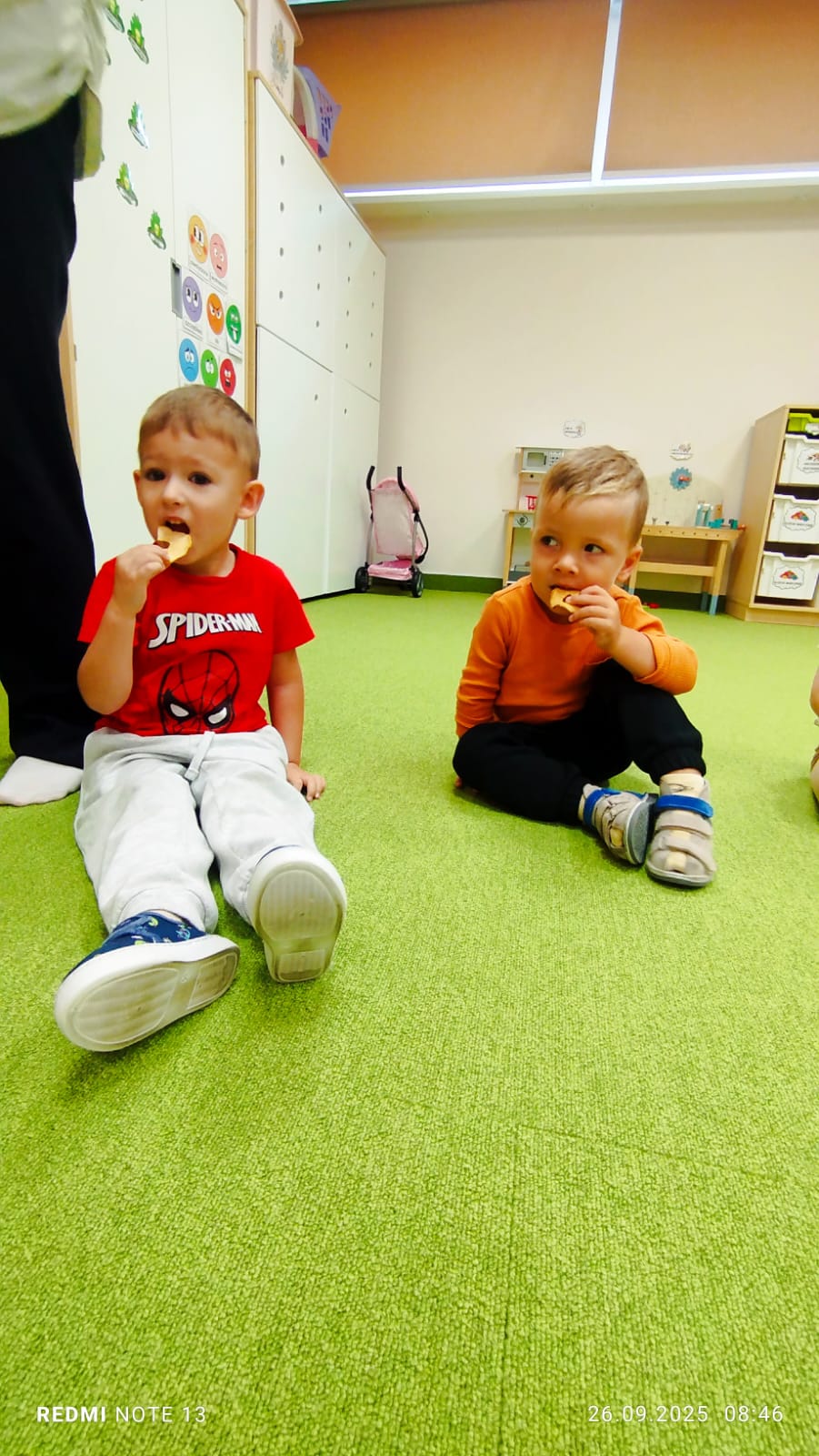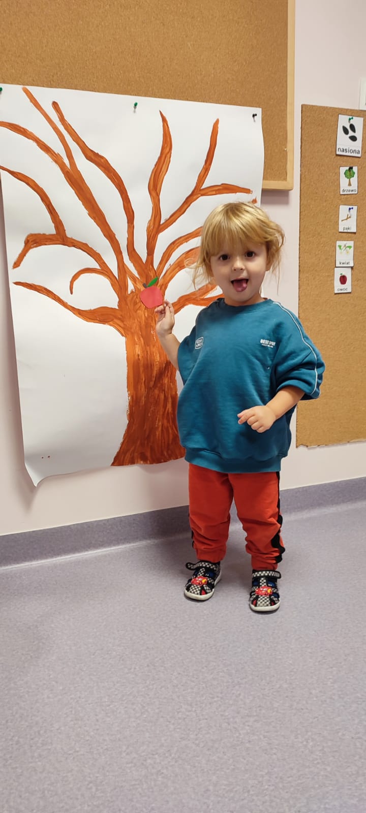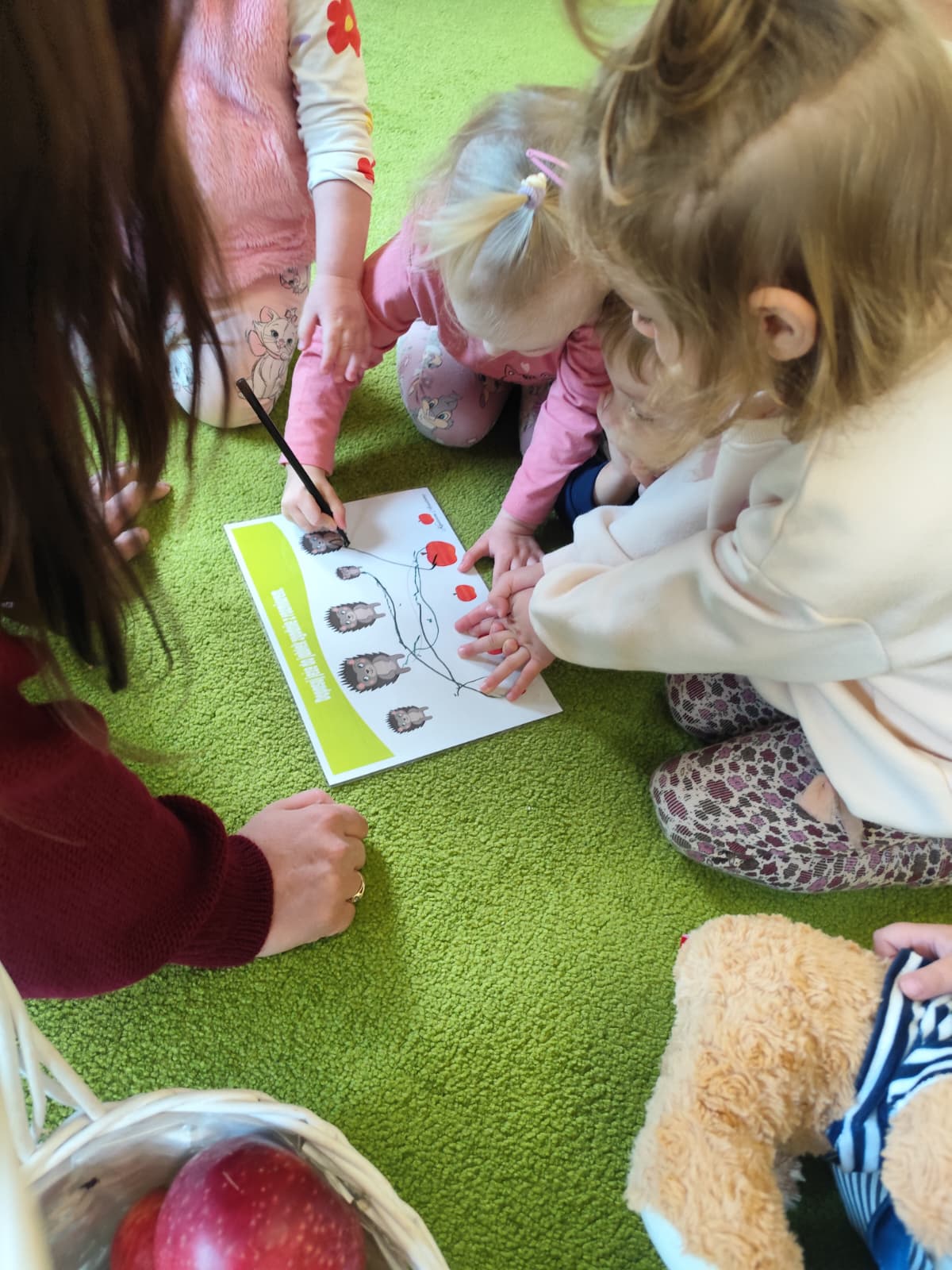 Nie zabrakło wspólnych zabaw plastycznych – maluchy tworzyły kolorowe prace z motywem jabłka. Były też wesołe piosenki i zabawy ruchowe związane z tym pysznym owocem. Największą atrakcją okazała się degustacja – dzieci chrupały świeże jabłka, piły sok jabłkowy i próbowały musu jabłkowego. Dzięki temu mogły się przekonać, że jabłko można podawać na wiele różnych sposobów.