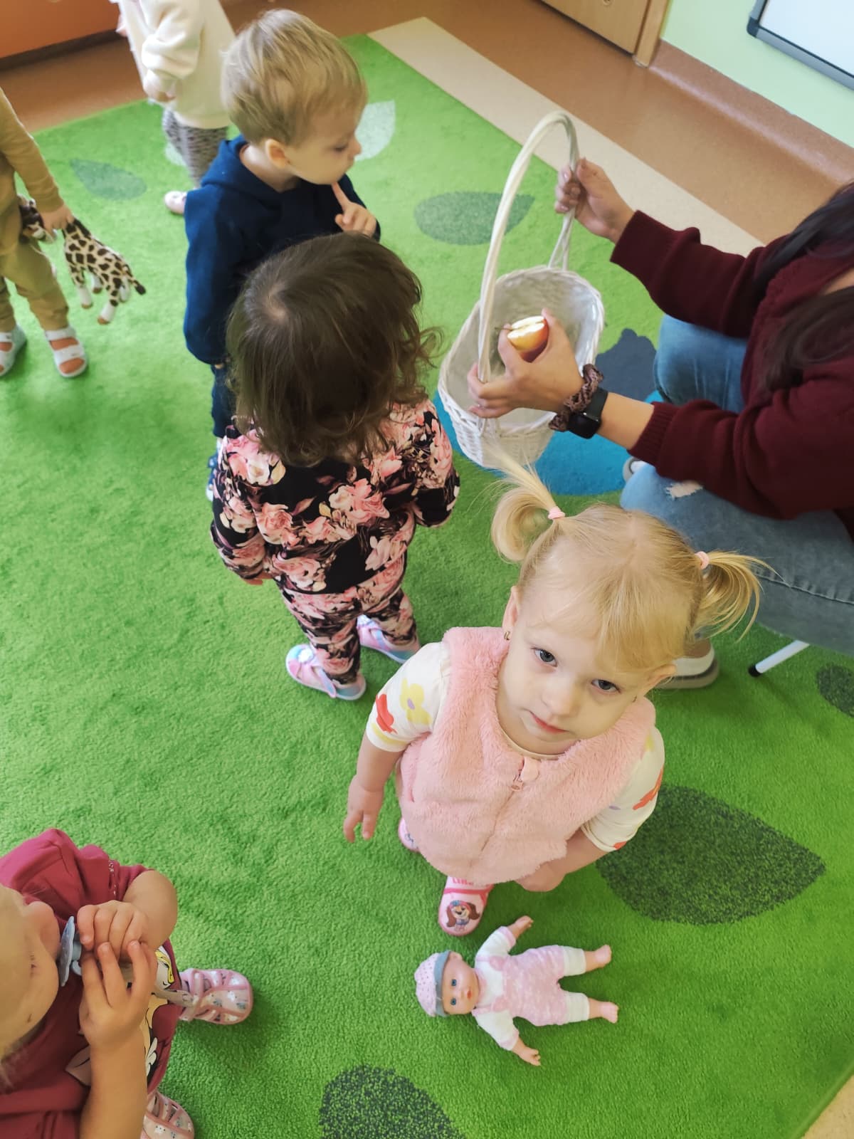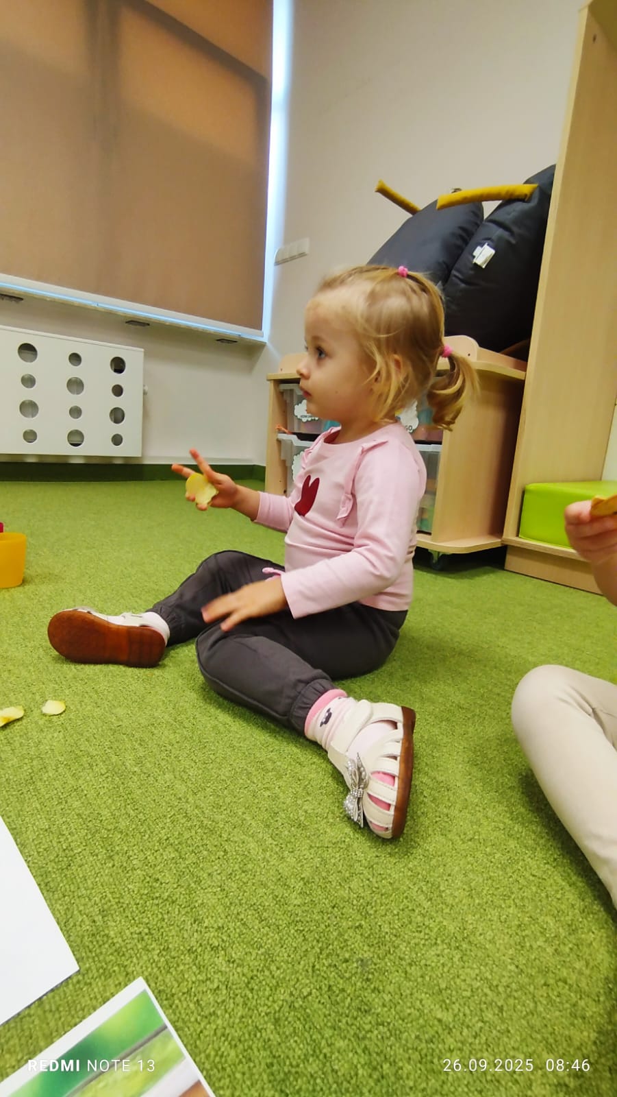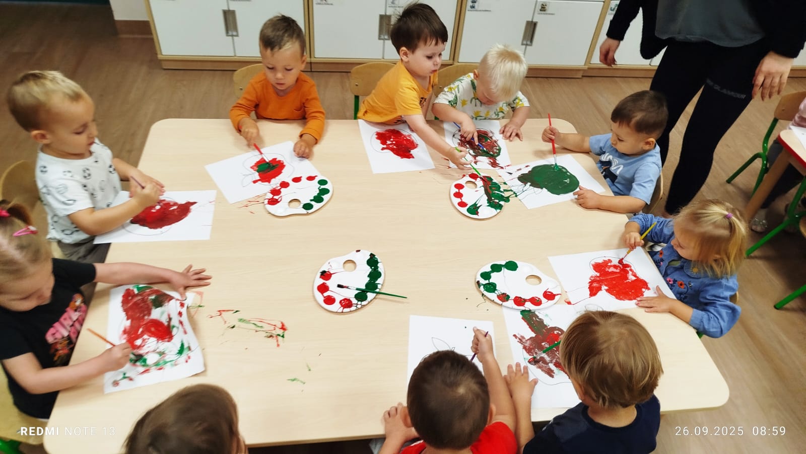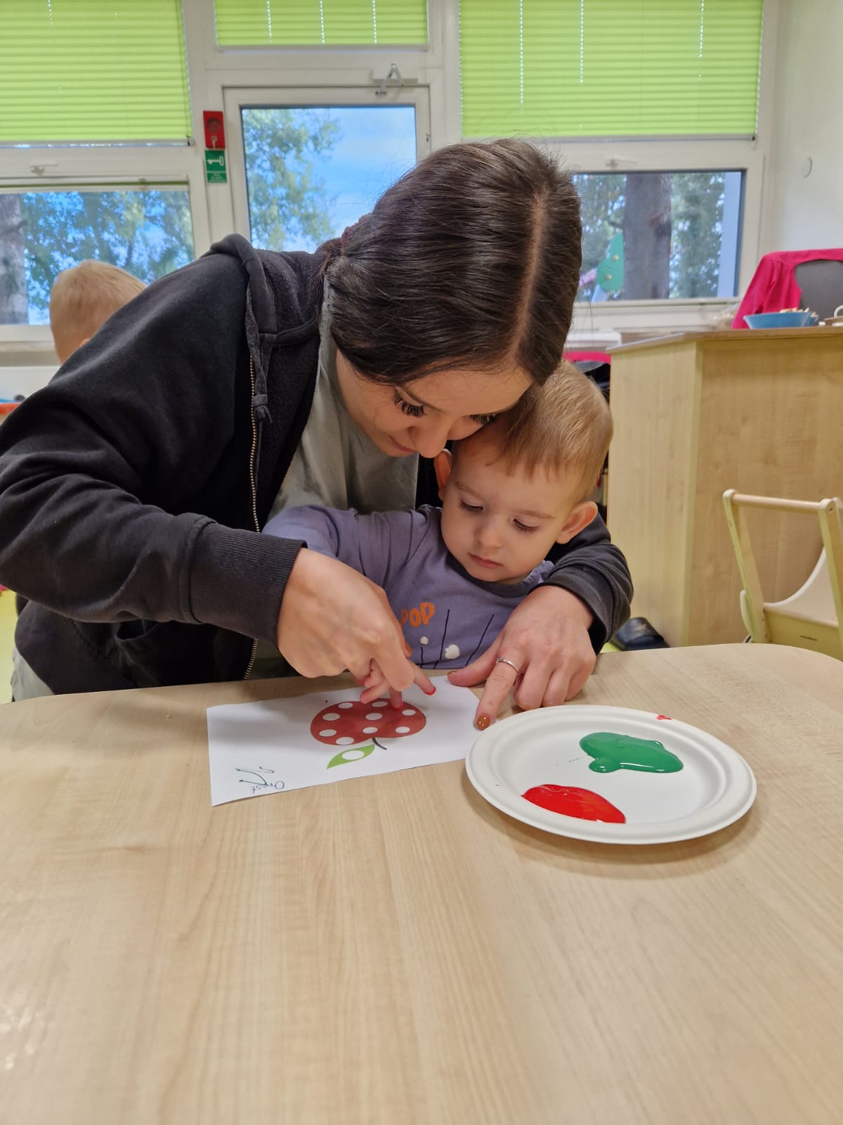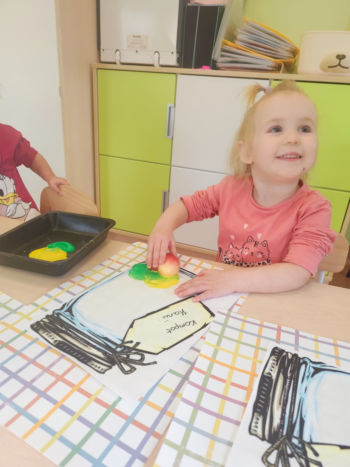 Nie zabrakło wspólnych zabaw plastycznych – maluchy tworzyły kolorowe prace z motywem jabłka. Były też wesołe piosenki i zabawy ruchowe związane z tym pysznym owocem. Największą atrakcją okazała się degustacja – dzieci chrupały świeże jabłka, piły sok jabłkowy i próbowały musu jabłkowego. Dzięki temu mogły się przekonać, że jabłko można podawać na wiele różnych sposobów.