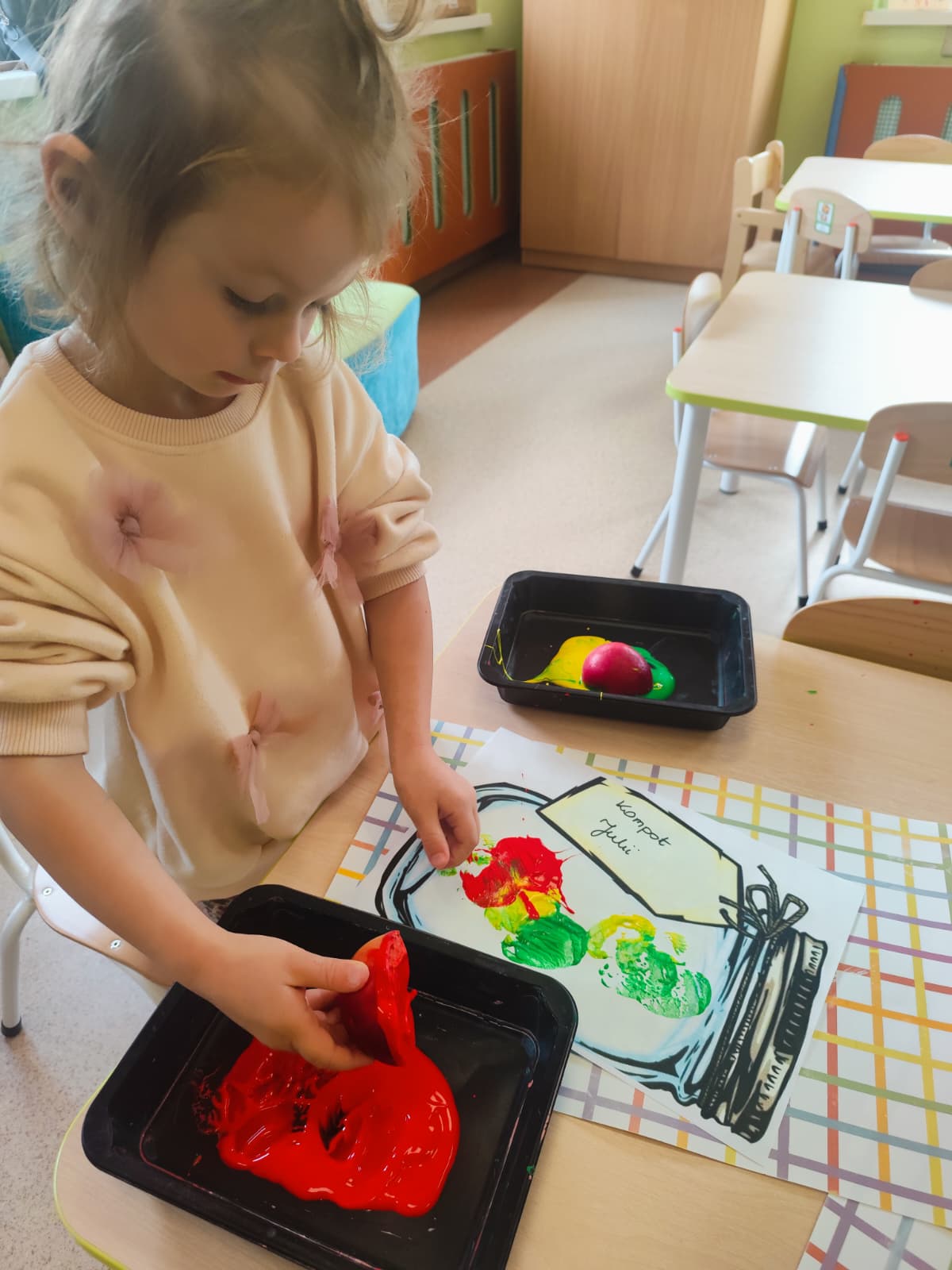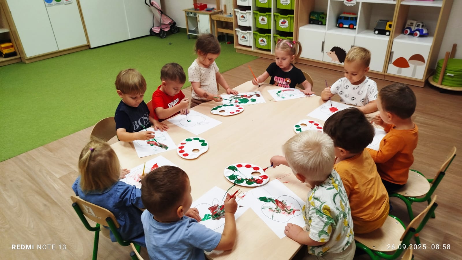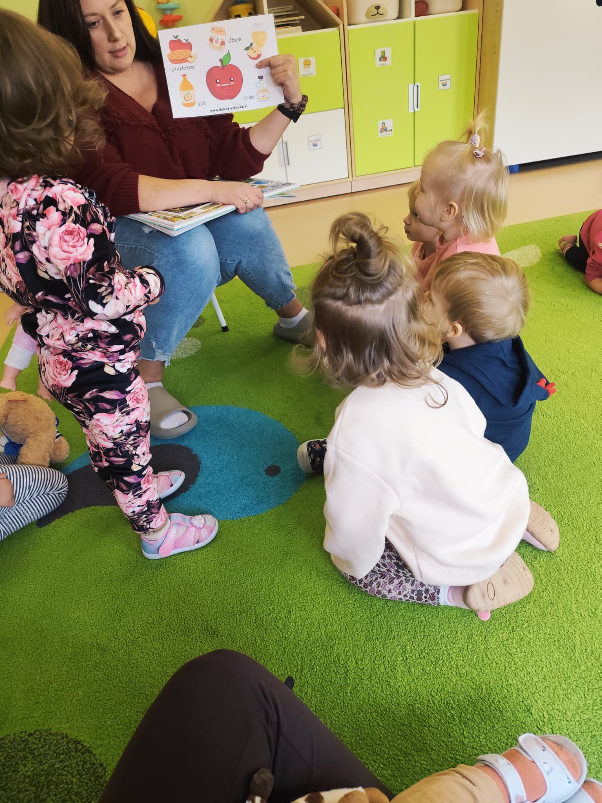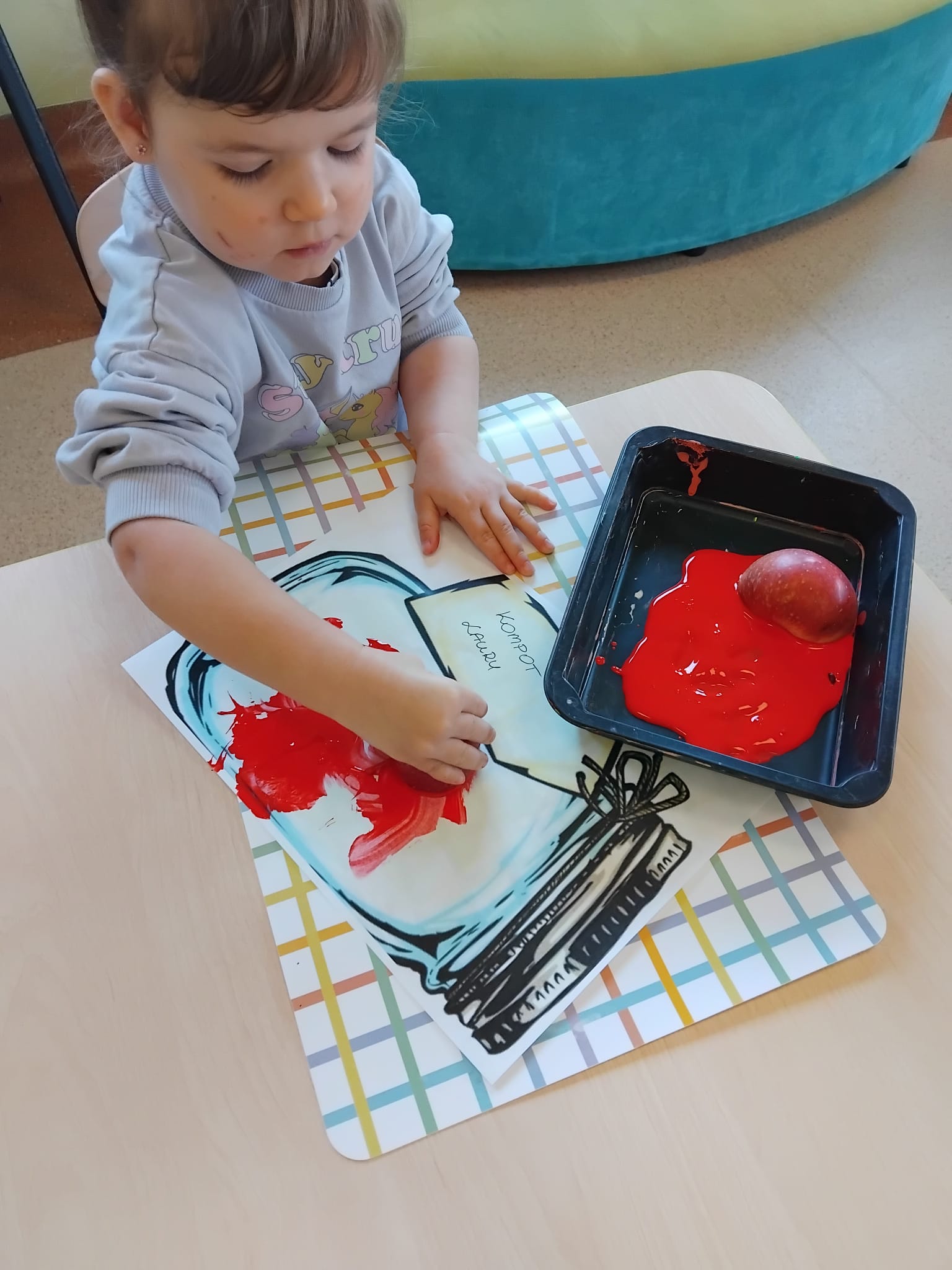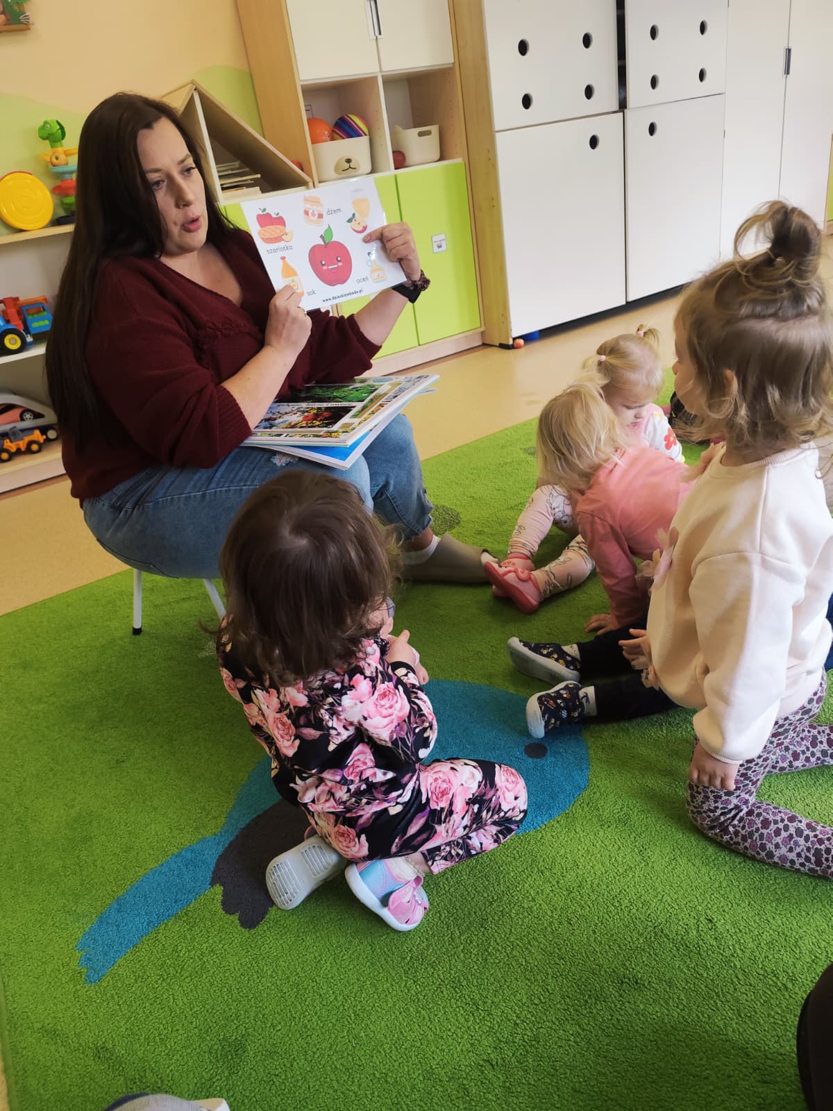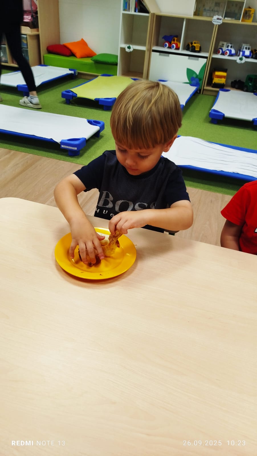 Nie zabrakło wspólnych zabaw plastycznych – maluchy tworzyły kolorowe prace z motywem jabłka. Były też wesołe piosenki i zabawy ruchowe związane z tym pysznym owocem. Największą atrakcją okazała się degustacja – dzieci chrupały świeże jabłka, piły sok jabłkowy i próbowały musu jabłkowego. Dzięki temu mogły się przekonać, że jabłko można podawać na wiele różnych sposobów.