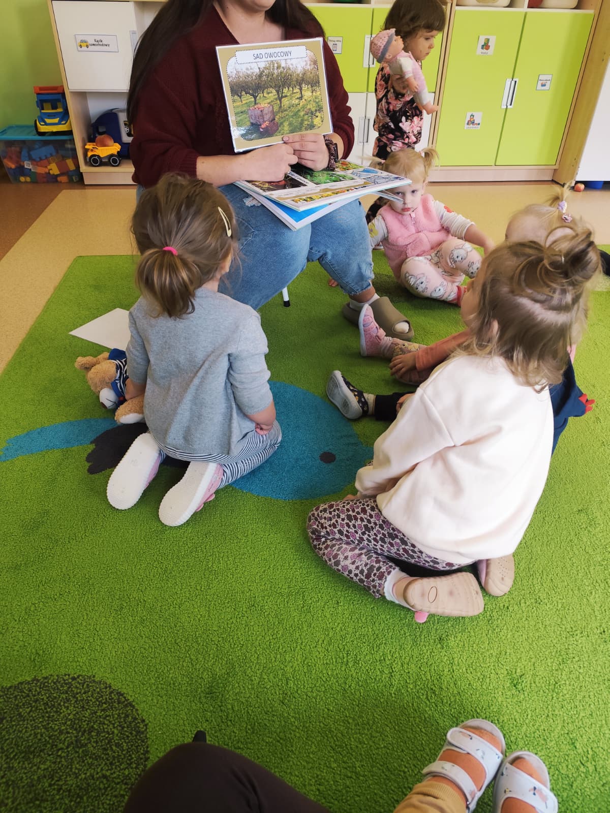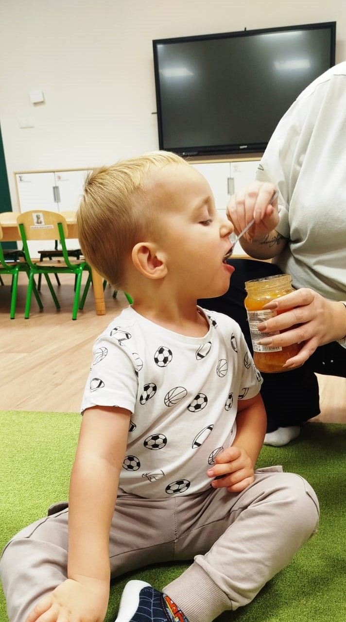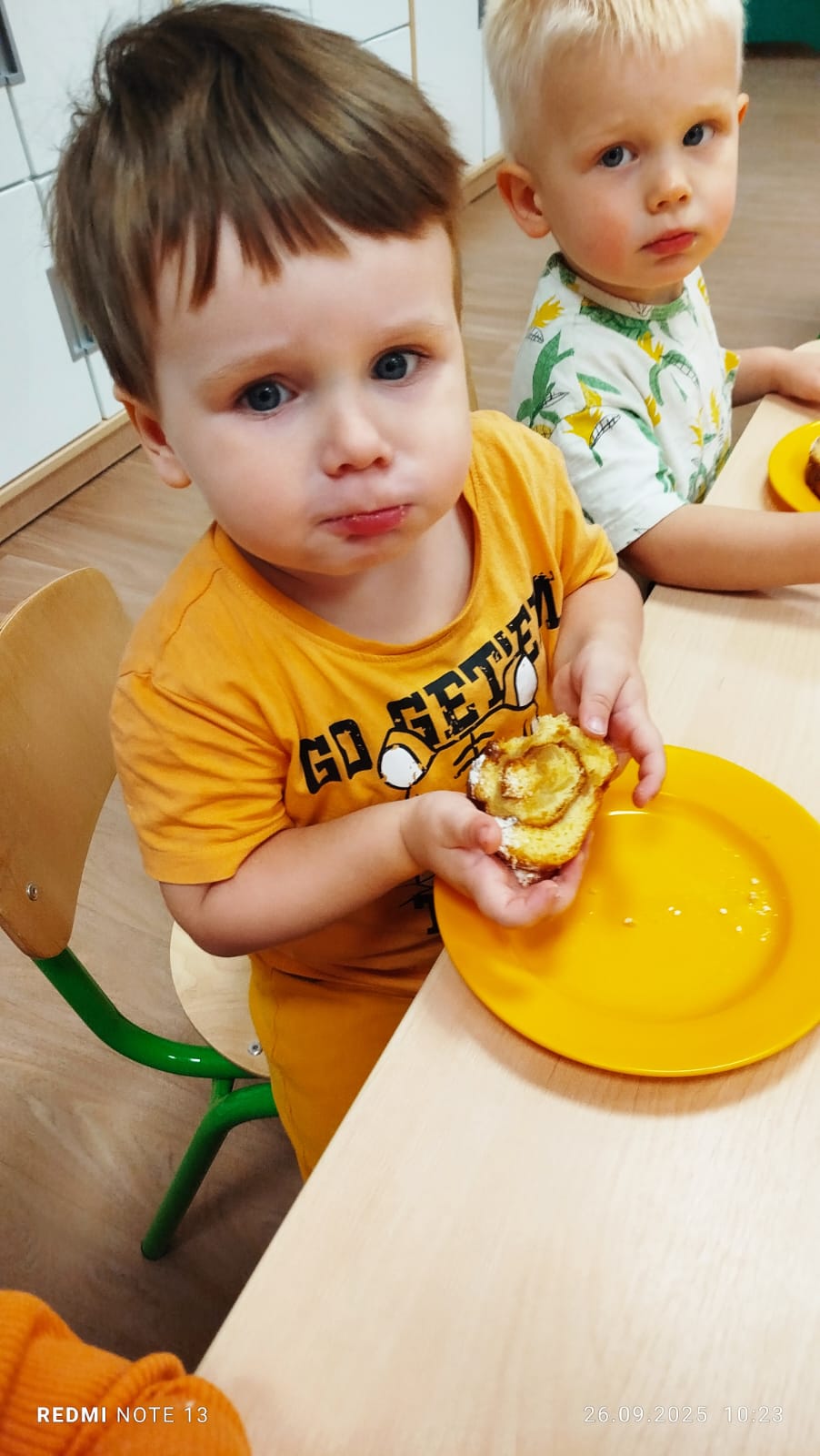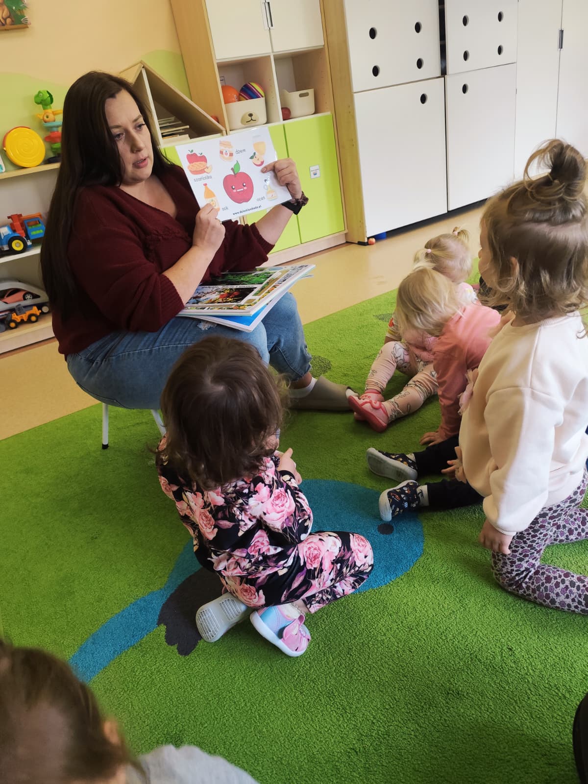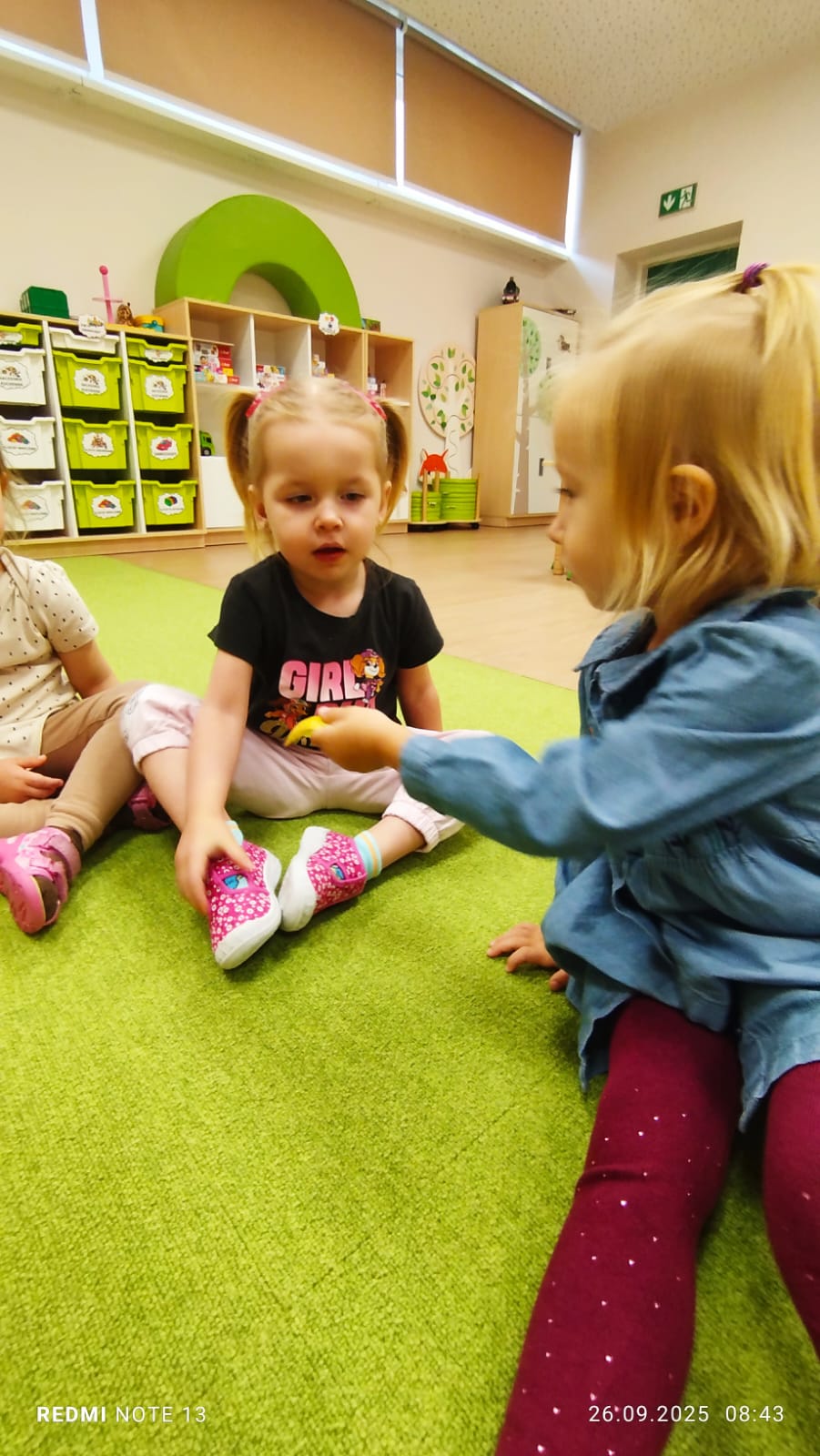 Nie zabrakło wspólnych zabaw plastycznych – maluchy tworzyły kolorowe prace z motywem jabłka. Były też wesołe piosenki i zabawy ruchowe związane z tym pysznym owocem. Największą atrakcją okazała się degustacja – dzieci chrupały świeże jabłka, piły sok jabłkowy i próbowały musu jabłkowego. Dzięki temu mogły się przekonać, że jabłko można podawać na wiele różnych sposobów.