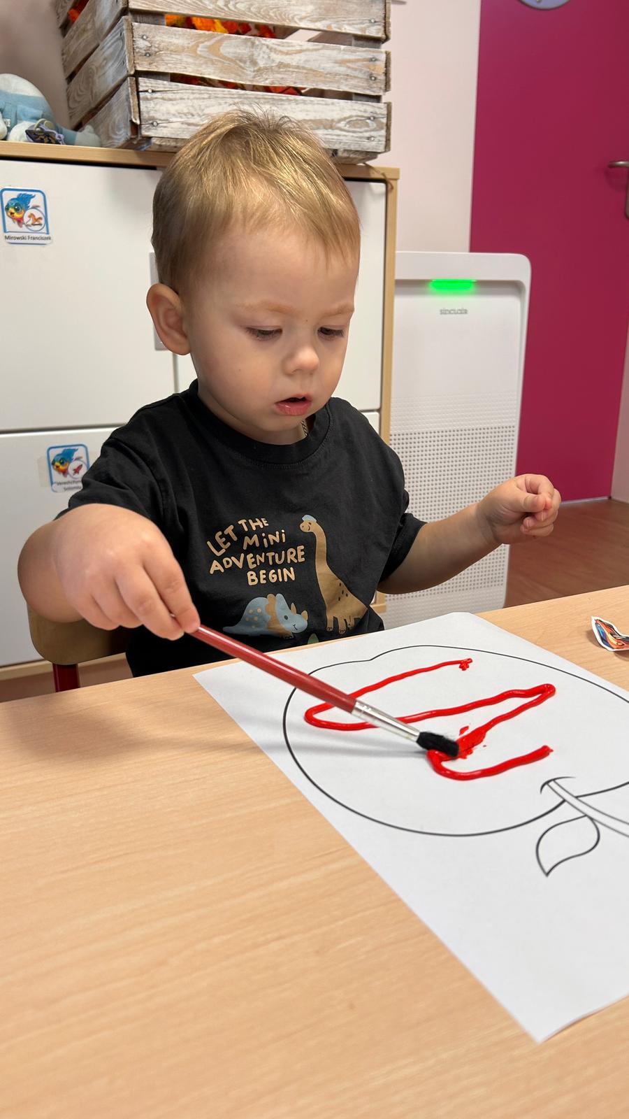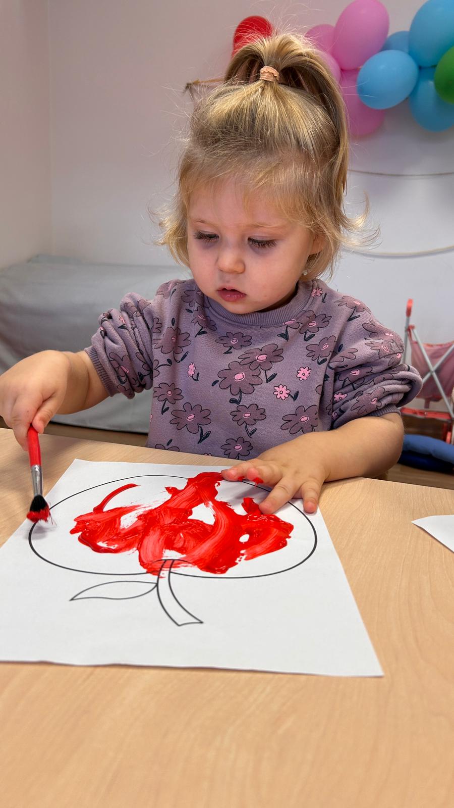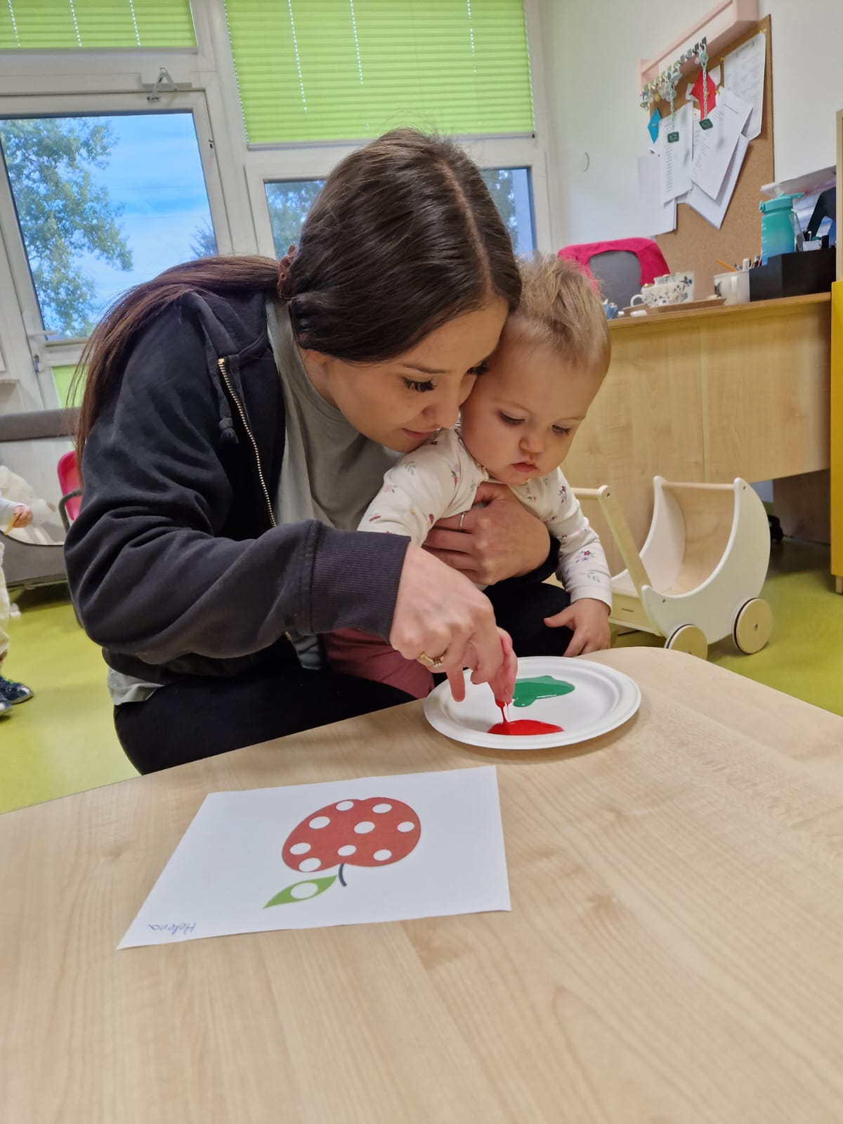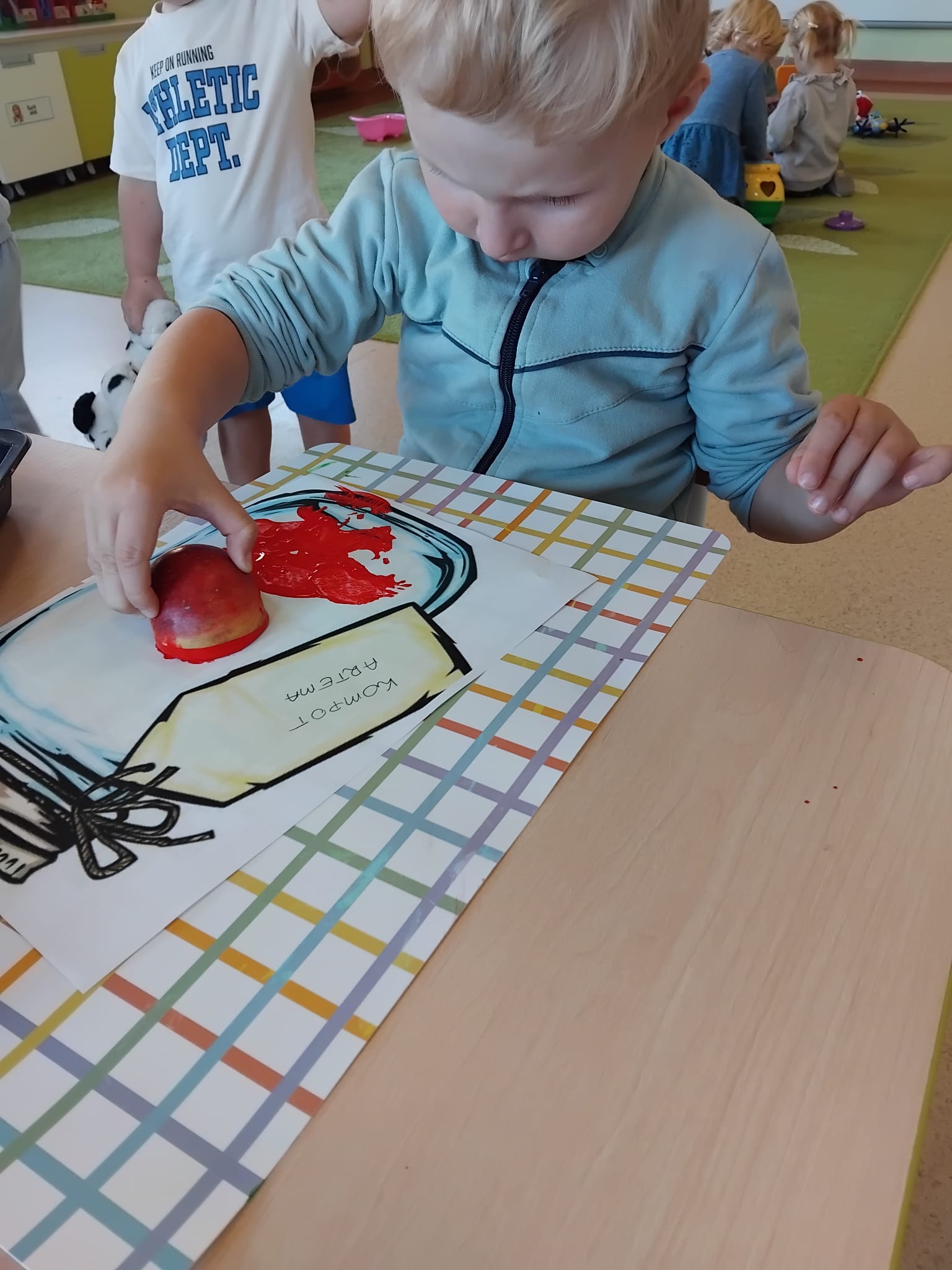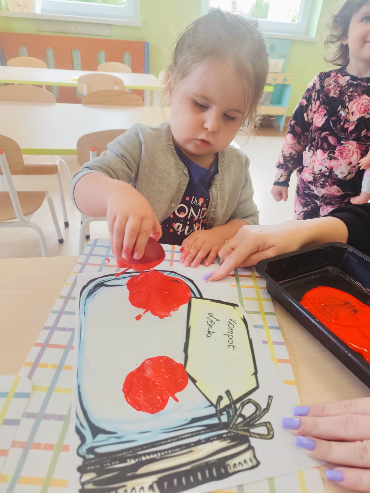 Nie zabrakło wspólnych zabaw plastycznych – maluchy tworzyły kolorowe prace z motywem jabłka. Były też wesołe piosenki i zabawy ruchowe związane z tym pysznym owocem. Największą atrakcją okazała się degustacja – dzieci chrupały świeże jabłka, piły sok jabłkowy i próbowały musu jabłkowego. Dzięki temu mogły się przekonać, że jabłko można podawać na wiele różnych sposobów.