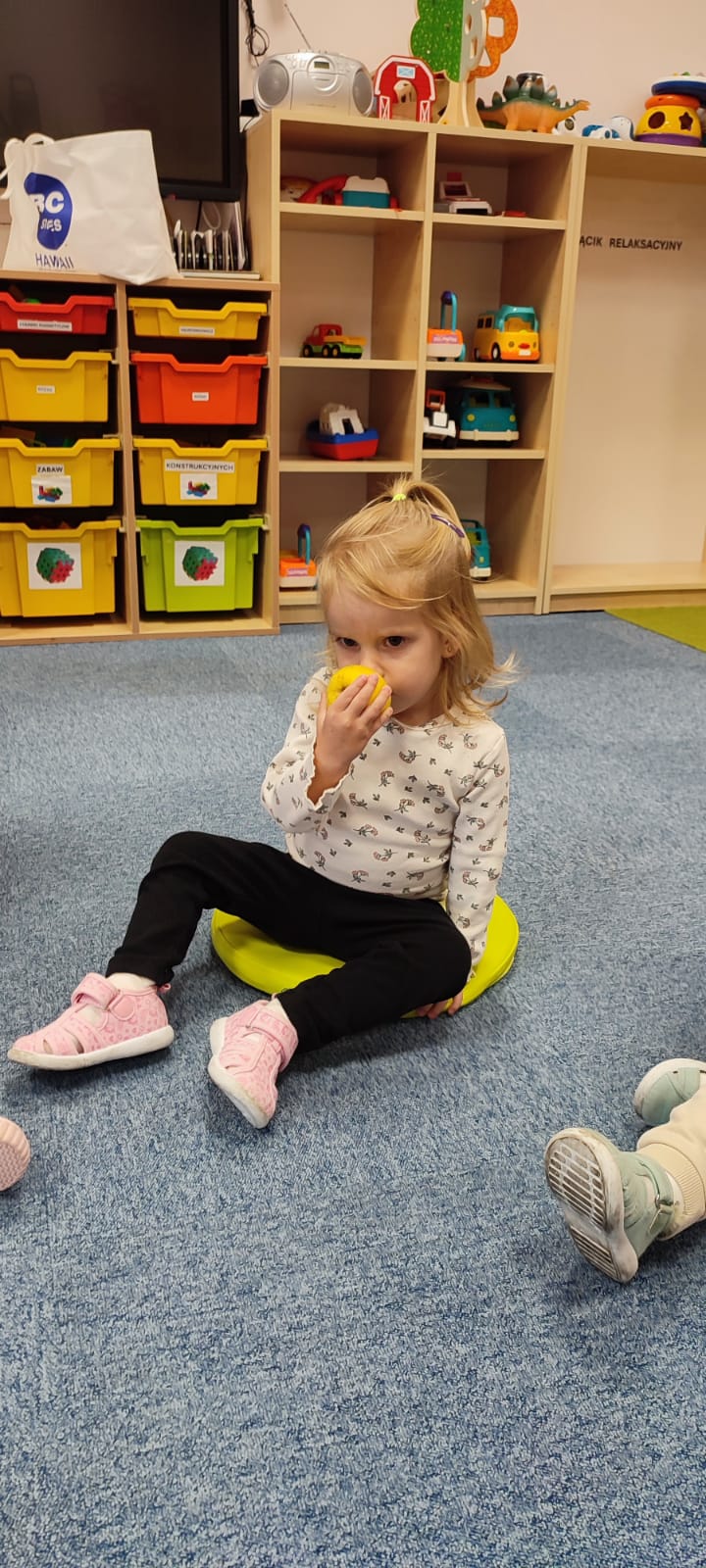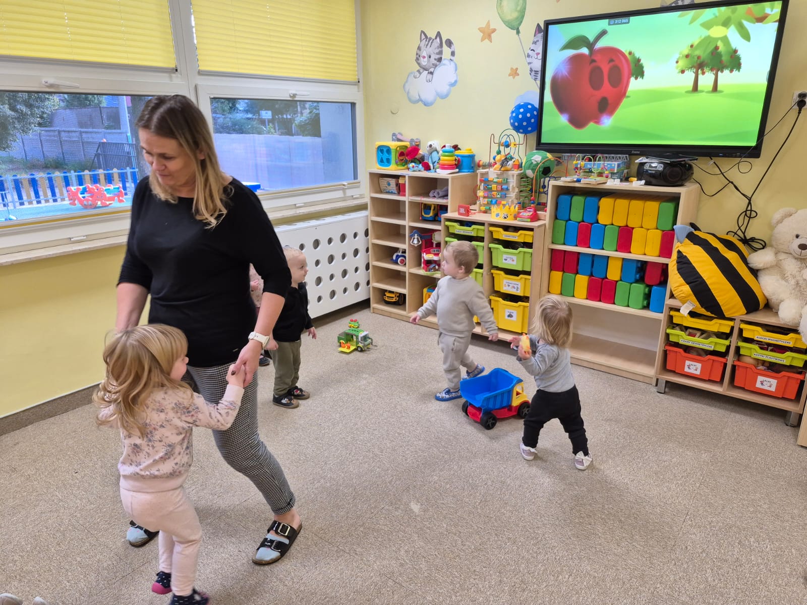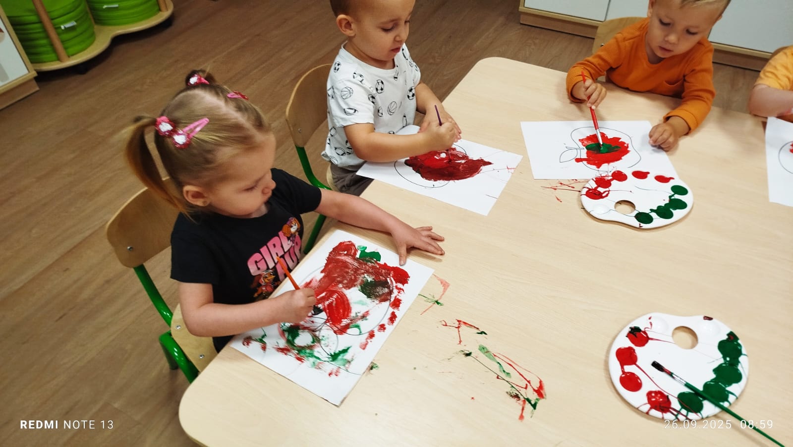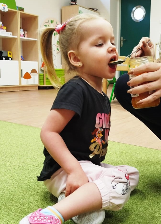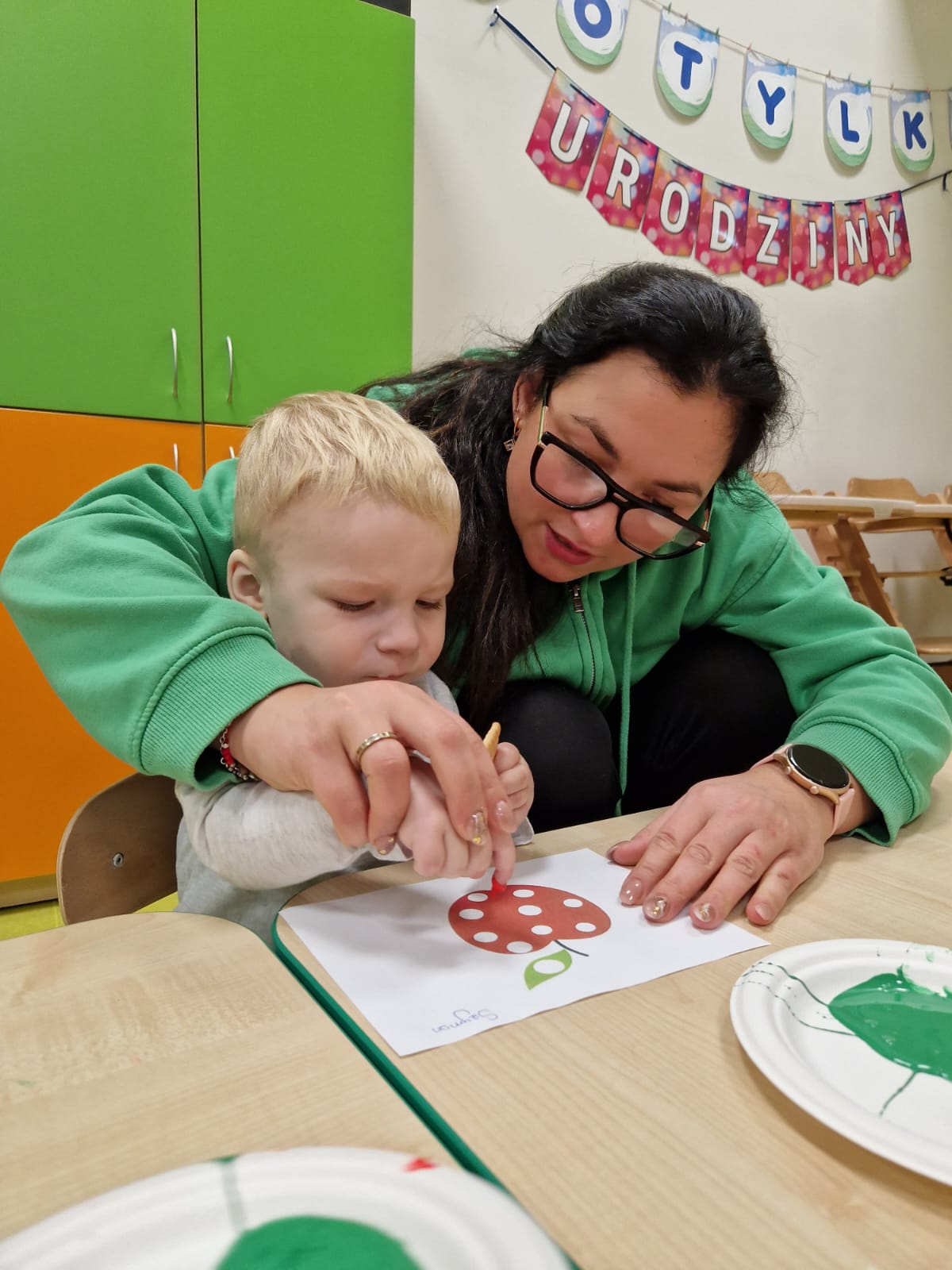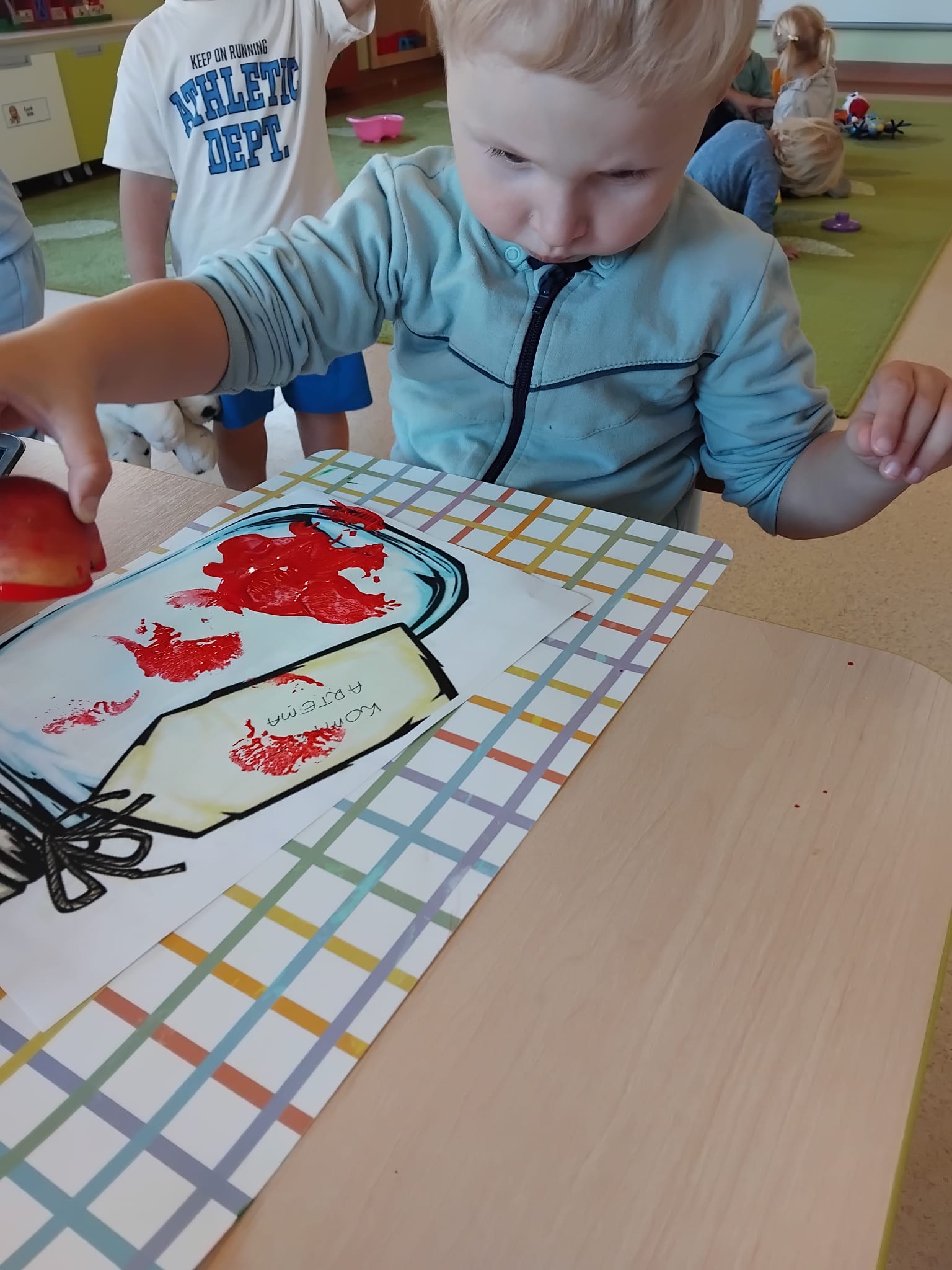 Nie zabrakło wspólnych zabaw plastycznych – maluchy tworzyły kolorowe prace z motywem jabłka. Były też wesołe piosenki i zabawy ruchowe związane z tym pysznym owocem. Największą atrakcją okazała się degustacja – dzieci chrupały świeże jabłka, piły sok jabłkowy i próbowały musu jabłkowego. Dzięki temu mogły się przekonać, że jabłko można podawać na wiele różnych sposobów.