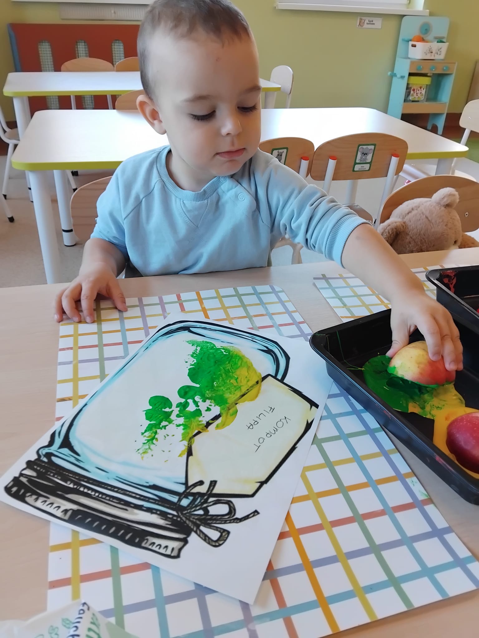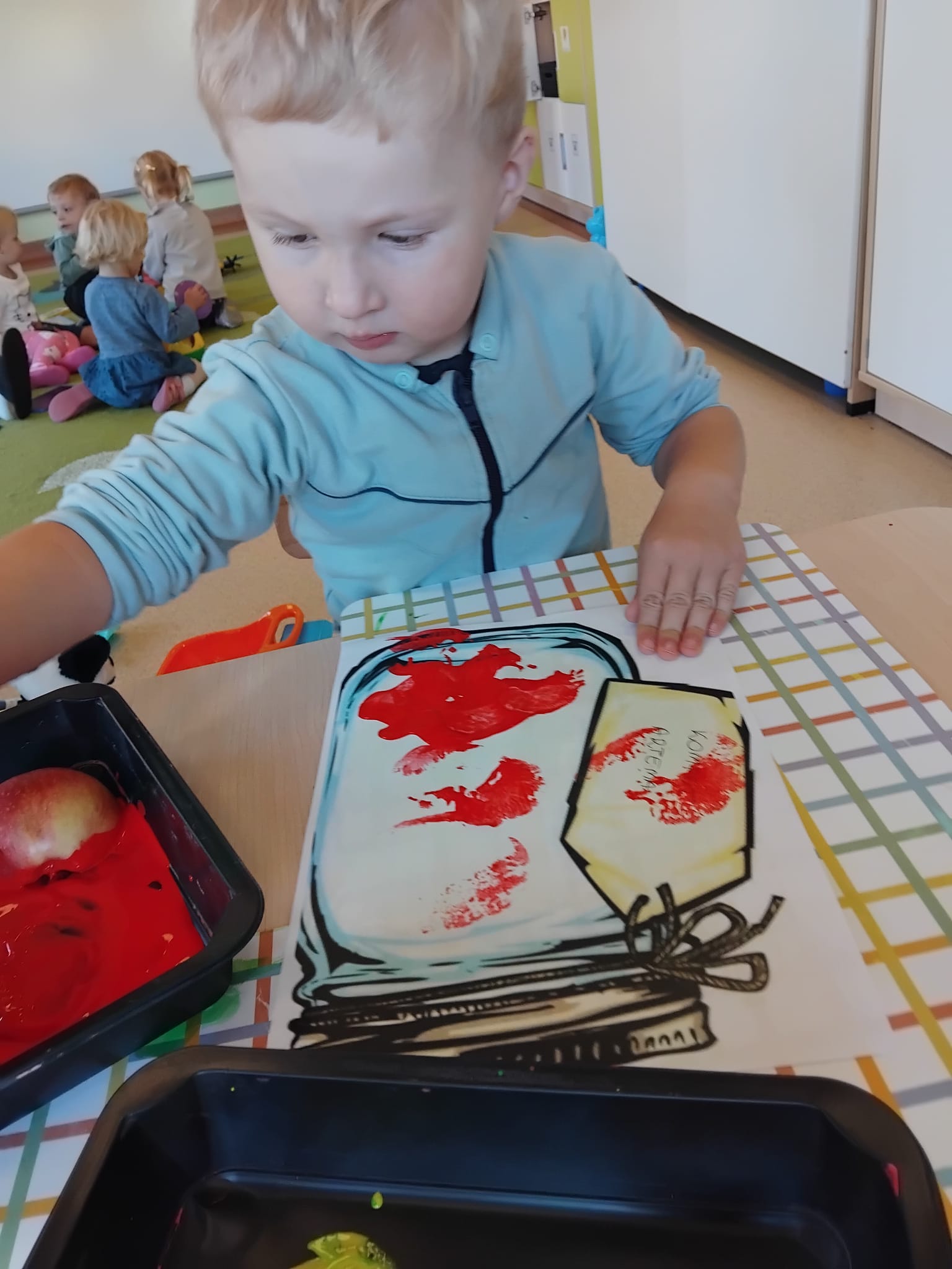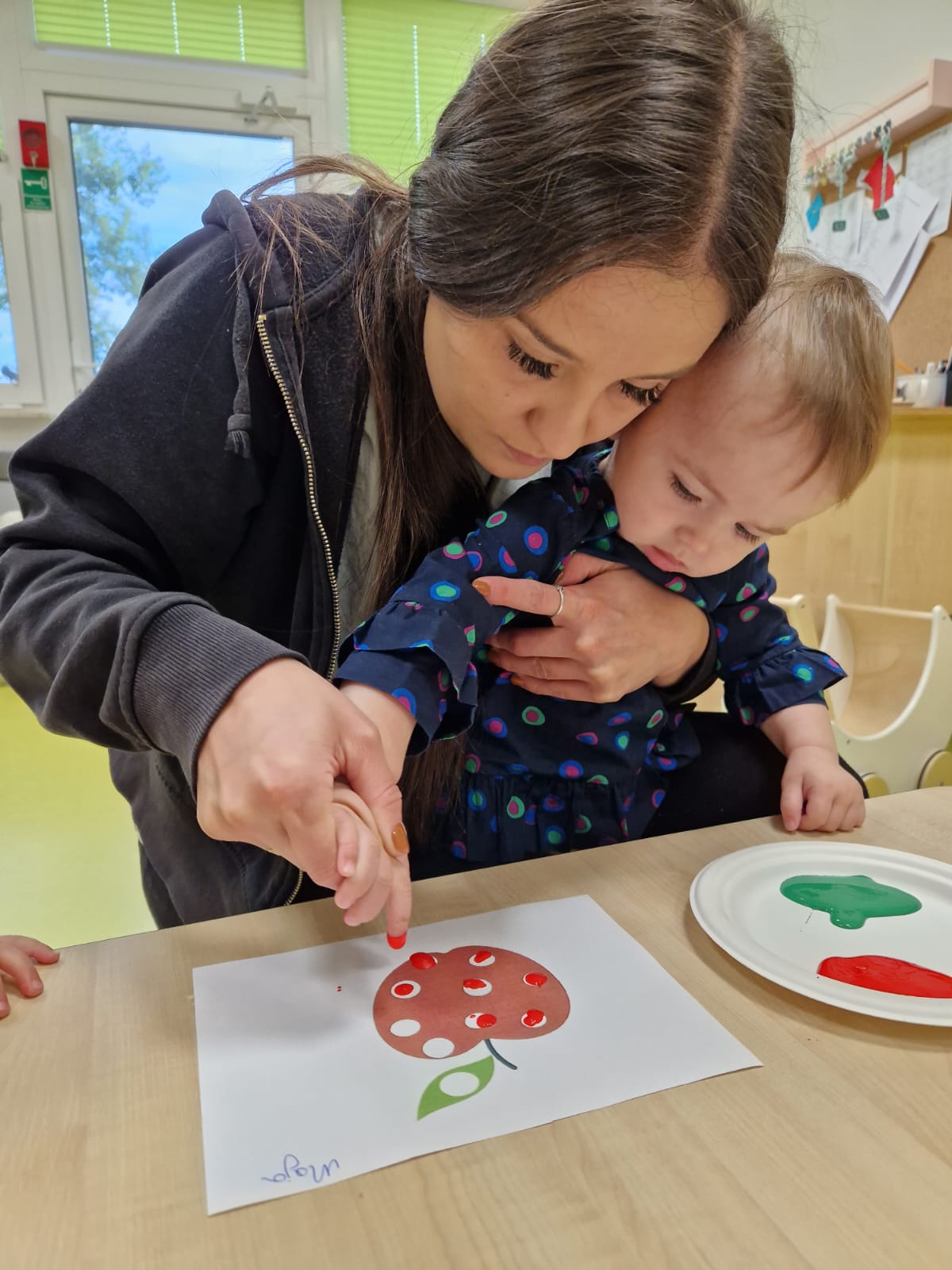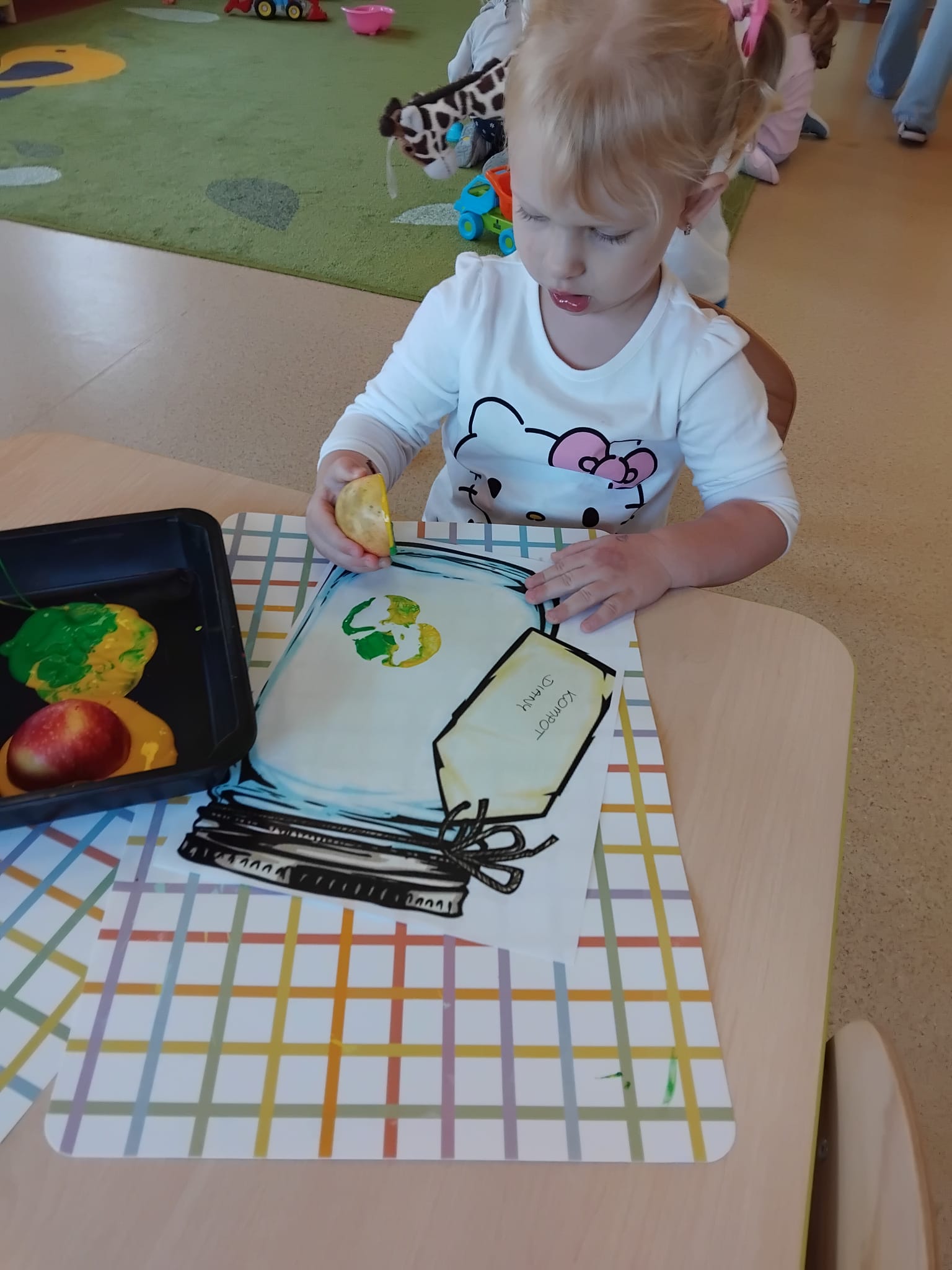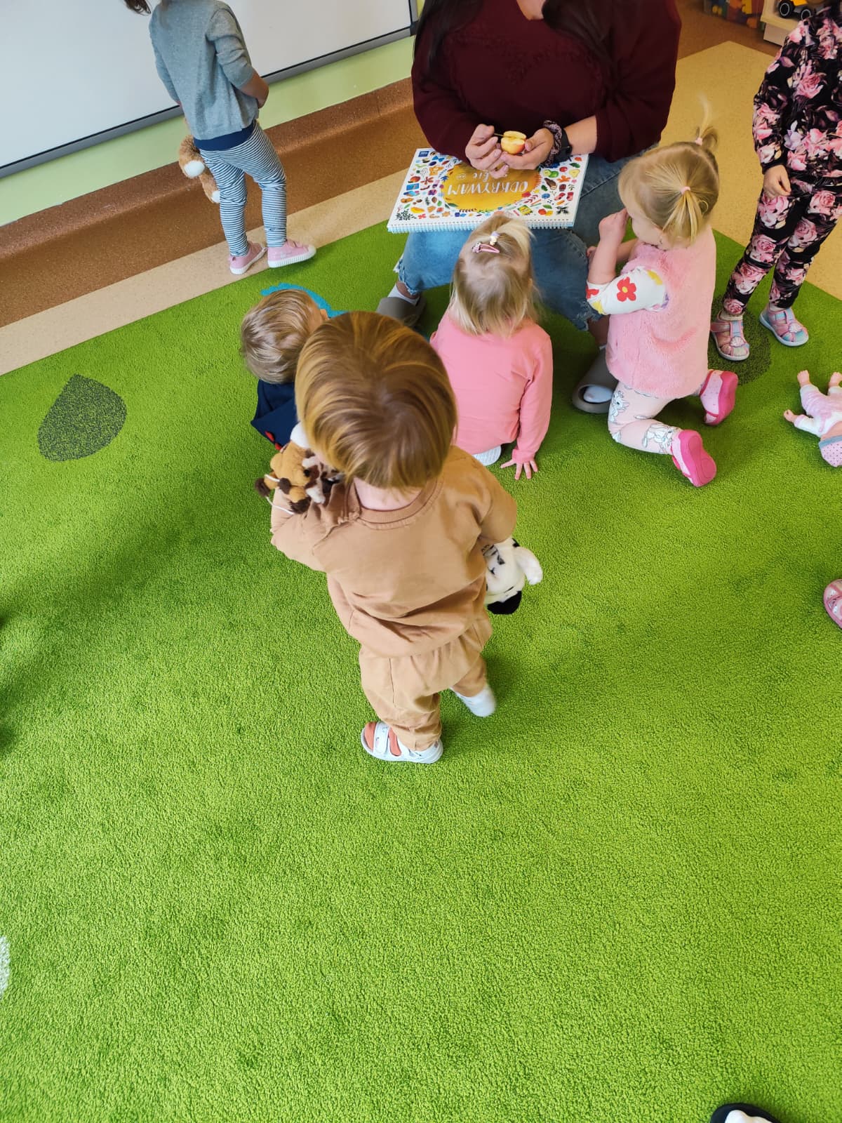 Nie zabrakło wspólnych zabaw plastycznych – maluchy tworzyły kolorowe prace z motywem jabłka. Były też wesołe piosenki i zabawy ruchowe związane z tym pysznym owocem. Największą atrakcją okazała się degustacja – dzieci chrupały świeże jabłka, piły sok jabłkowy i próbowały musu jabłkowego. Dzięki temu mogły się przekonać, że jabłko można podawać na wiele różnych sposobów.