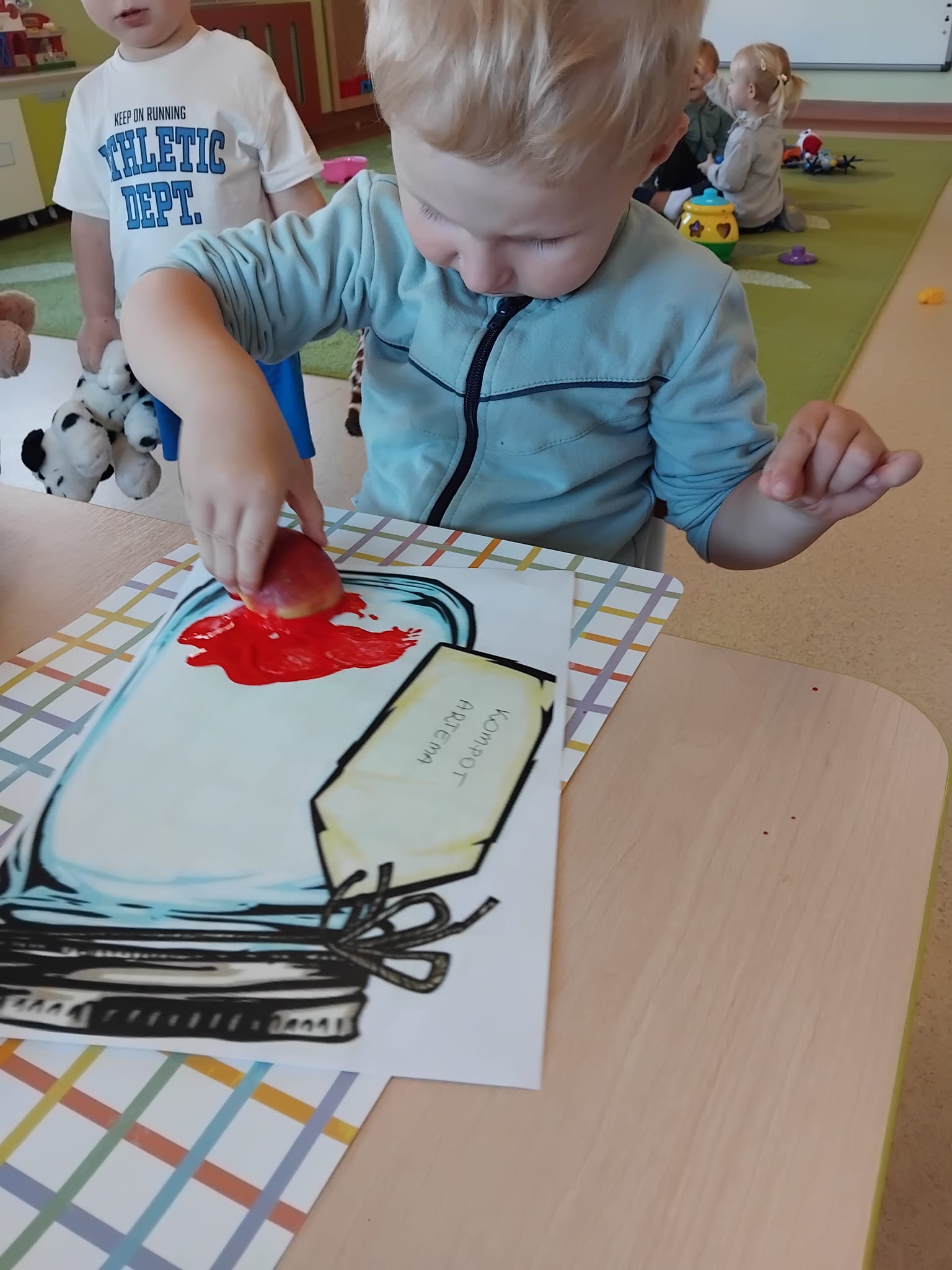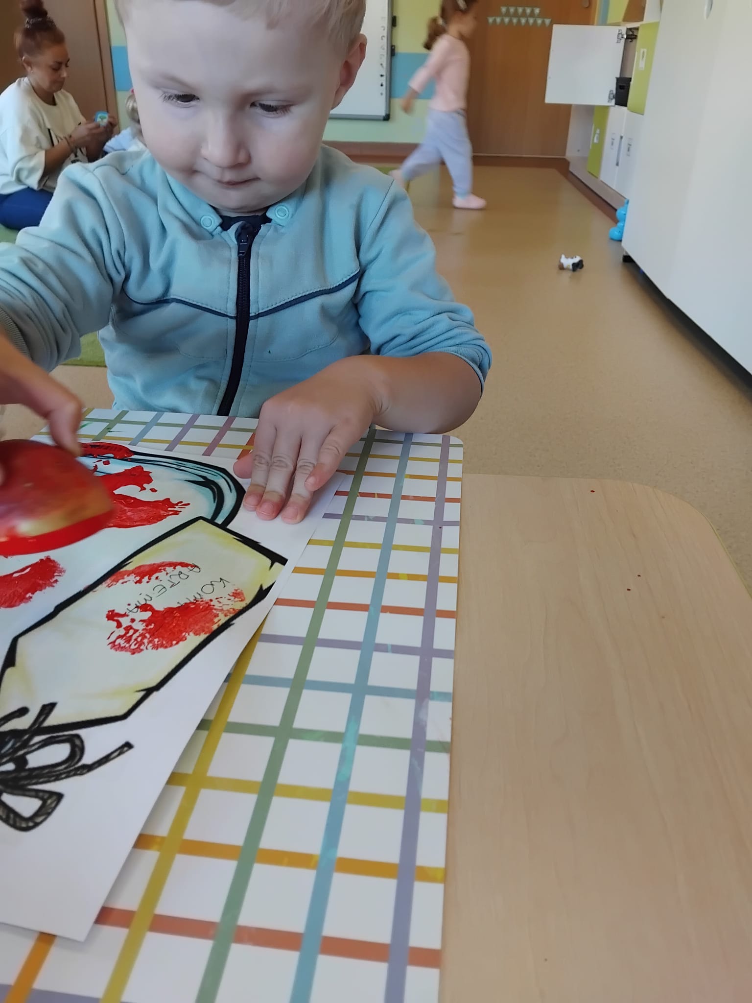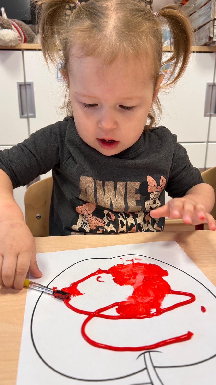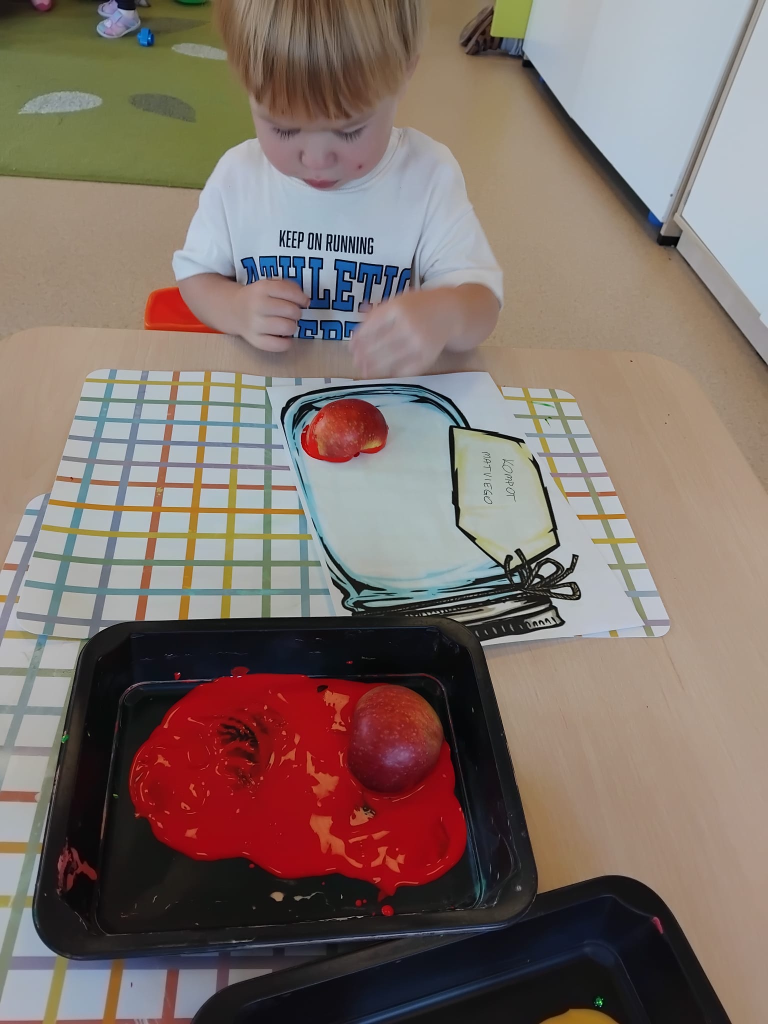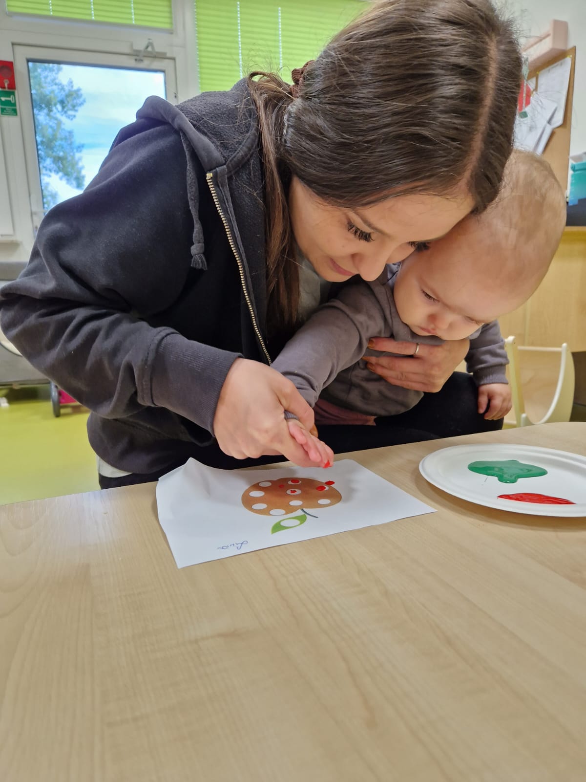 Nie zabrakło wspólnych zabaw plastycznych – maluchy tworzyły kolorowe prace z motywem jabłka. Były też wesołe piosenki i zabawy ruchowe związane z tym pysznym owocem. Największą atrakcją okazała się degustacja – dzieci chrupały świeże jabłka, piły sok jabłkowy i próbowały musu jabłkowego. Dzięki temu mogły się przekonać, że jabłko można podawać na wiele różnych sposobów.