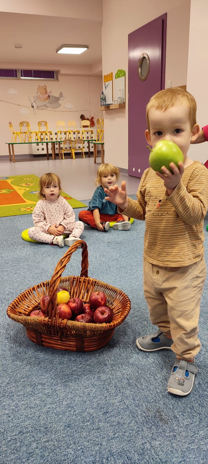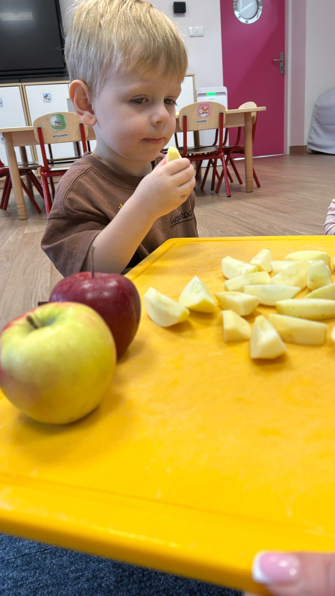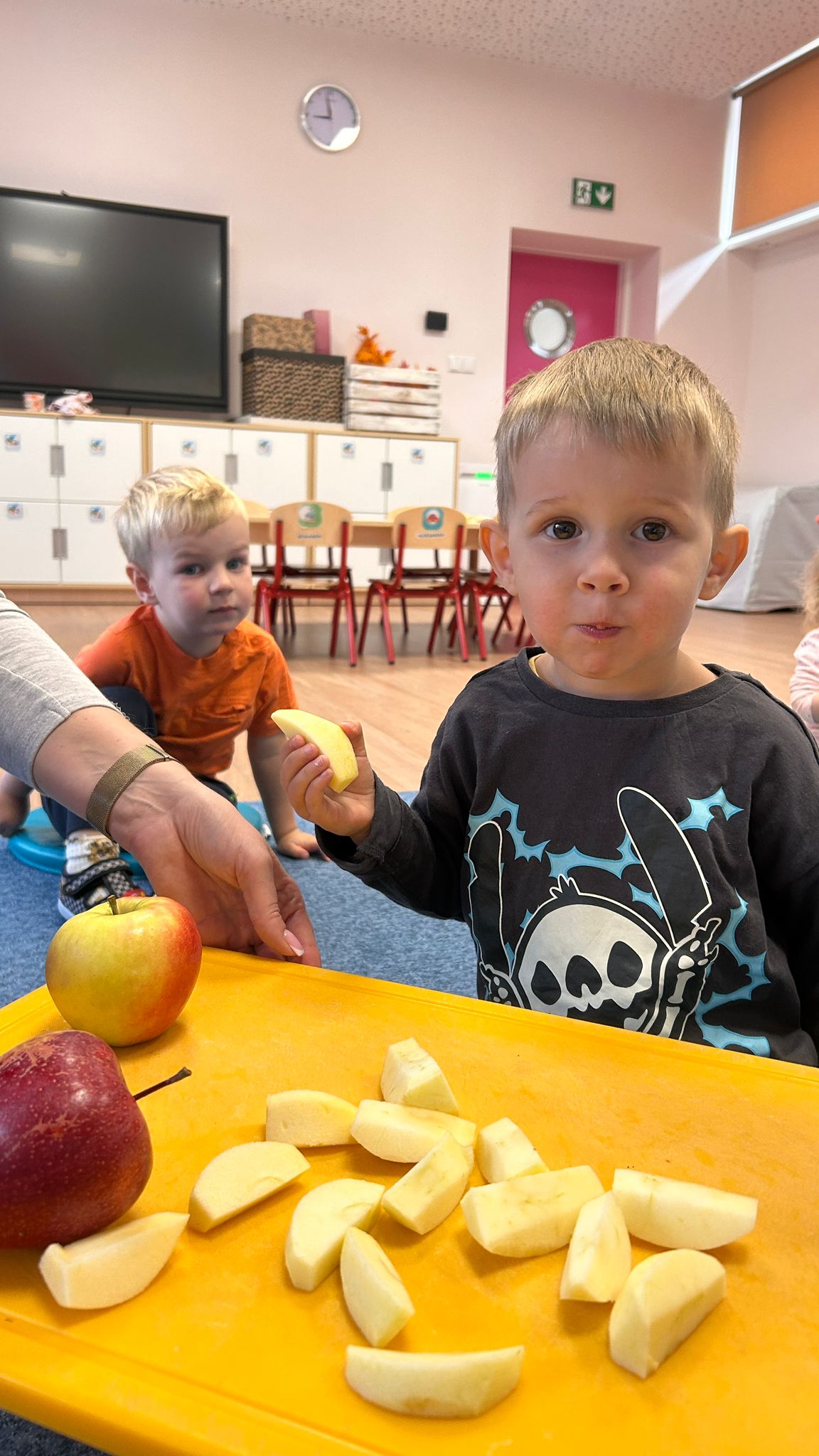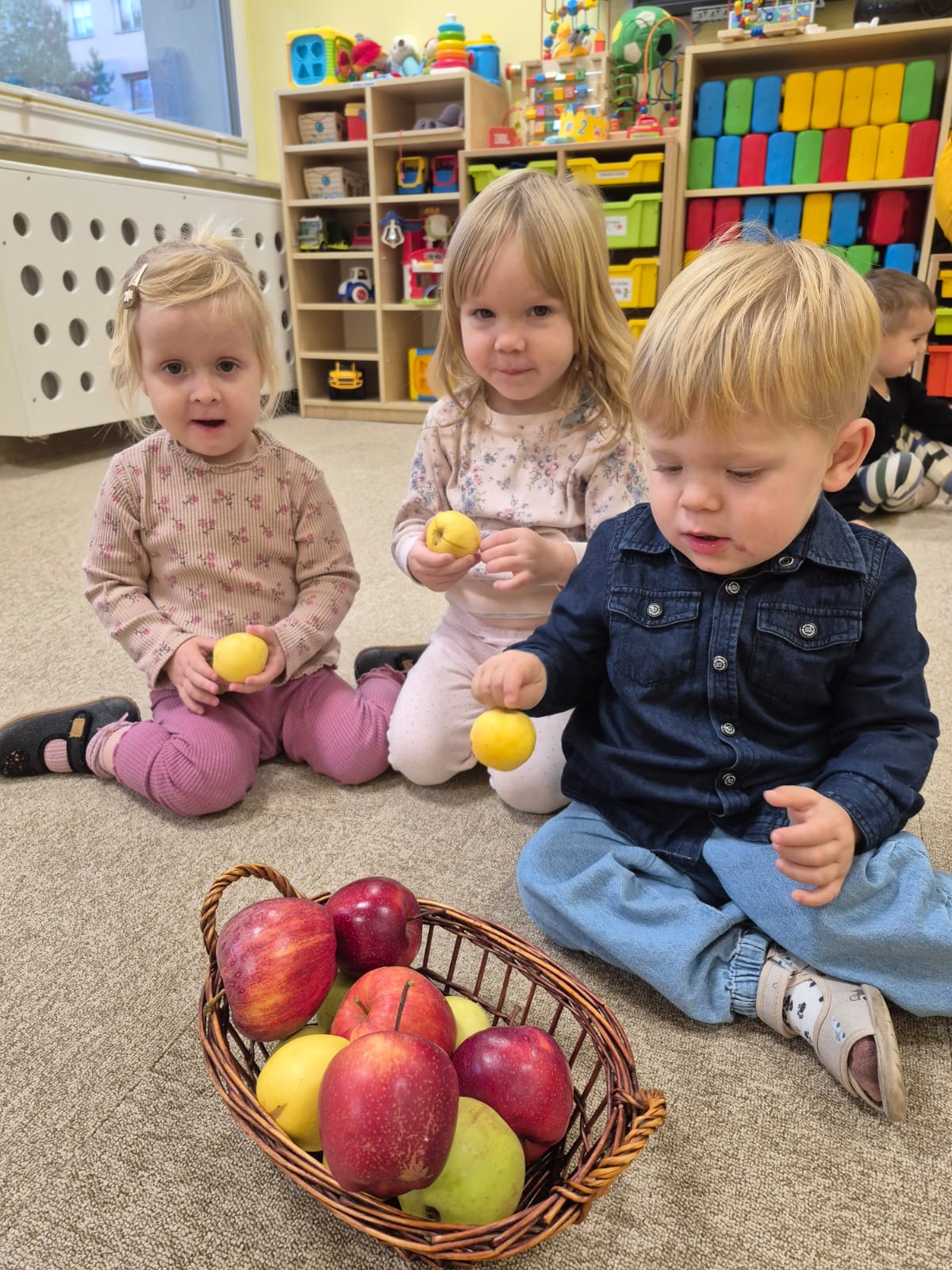 W naszym żłobku odbył się wyjątkowy Dzień Jabłka. Dzieci miały okazję poznać różne odmiany jabłek, sprawdzić jak różnią się smakiem i kolorem, a także dowiedzieć się, dlaczego jabłka są takie zdrowe.