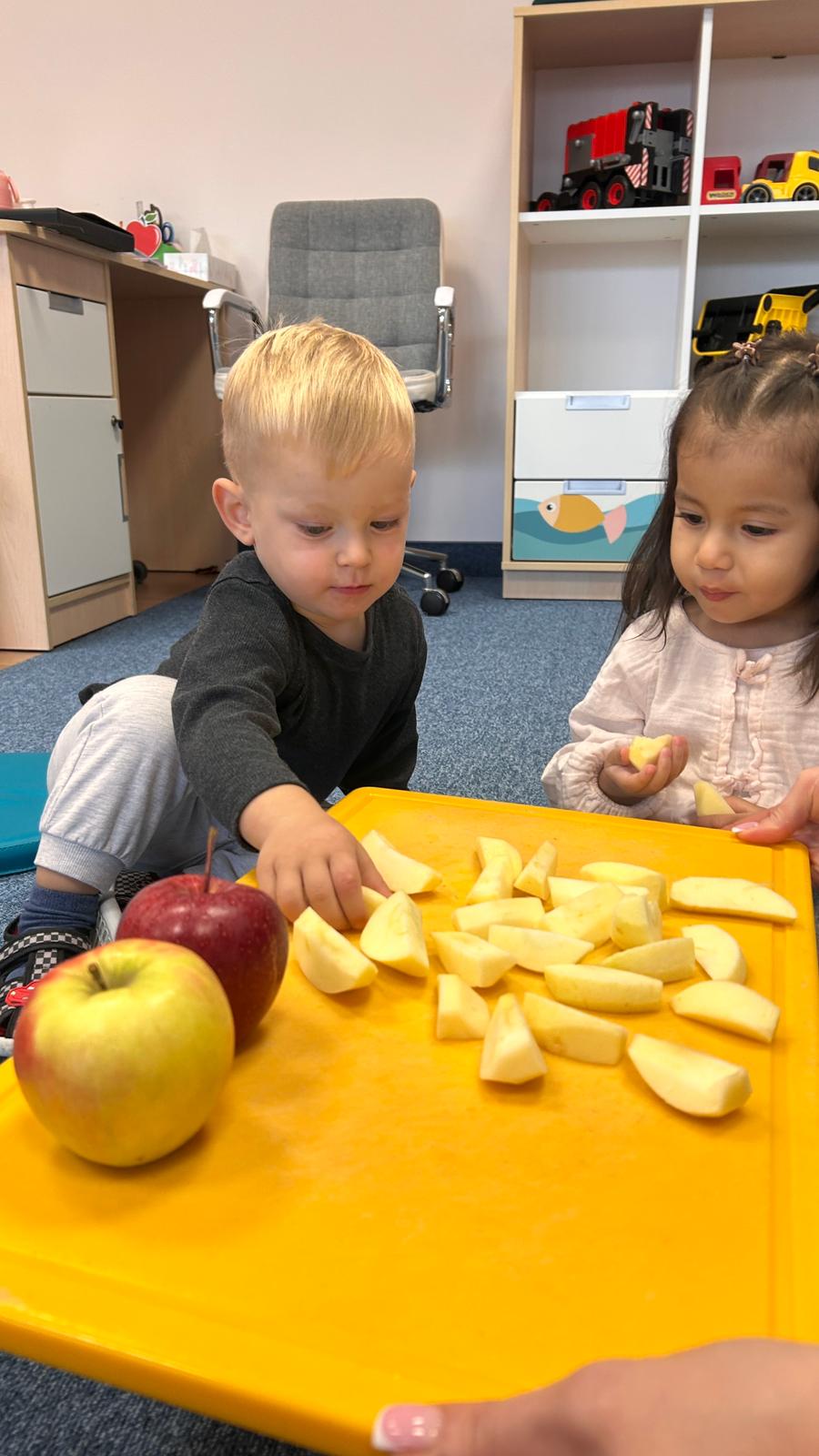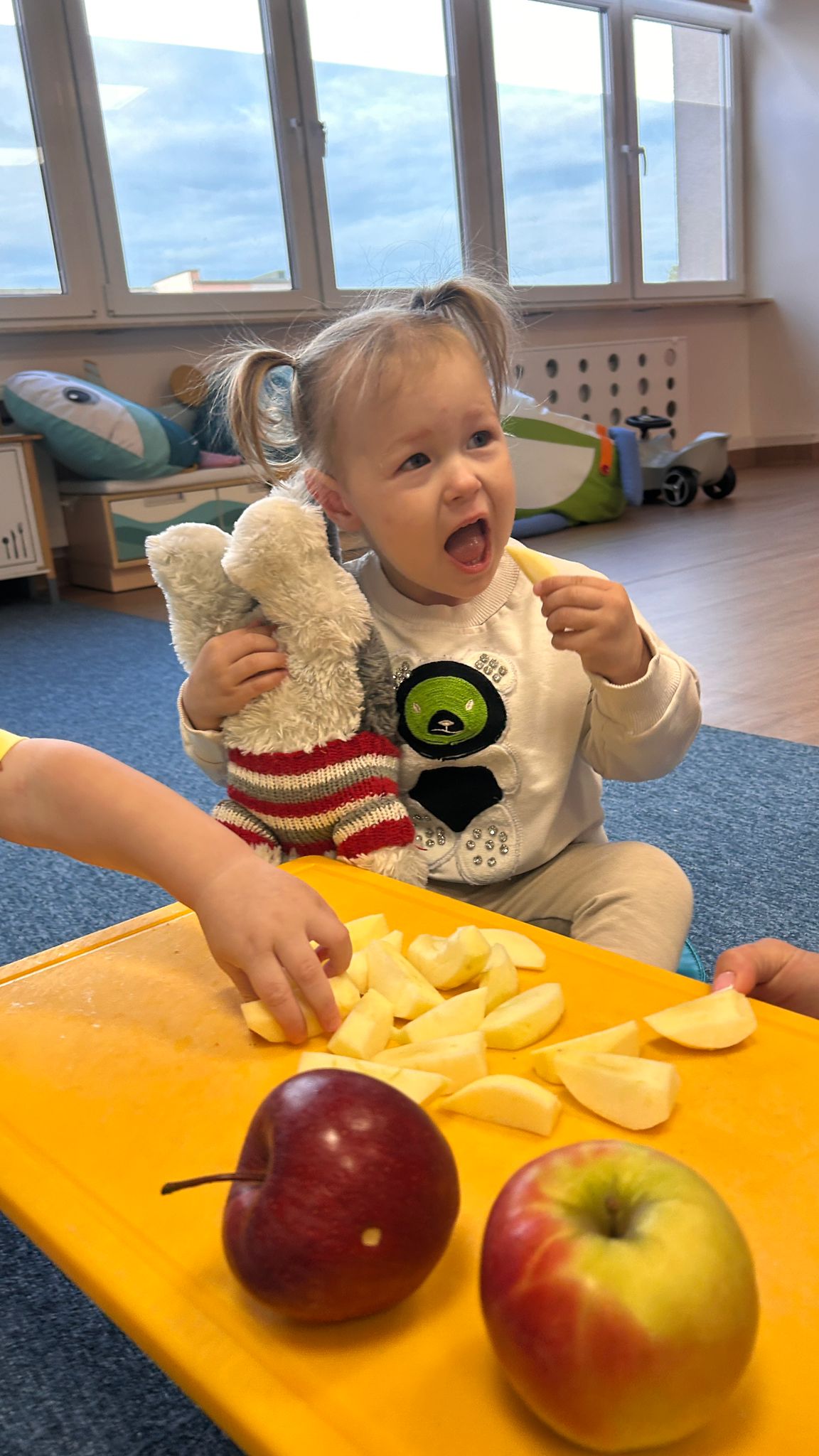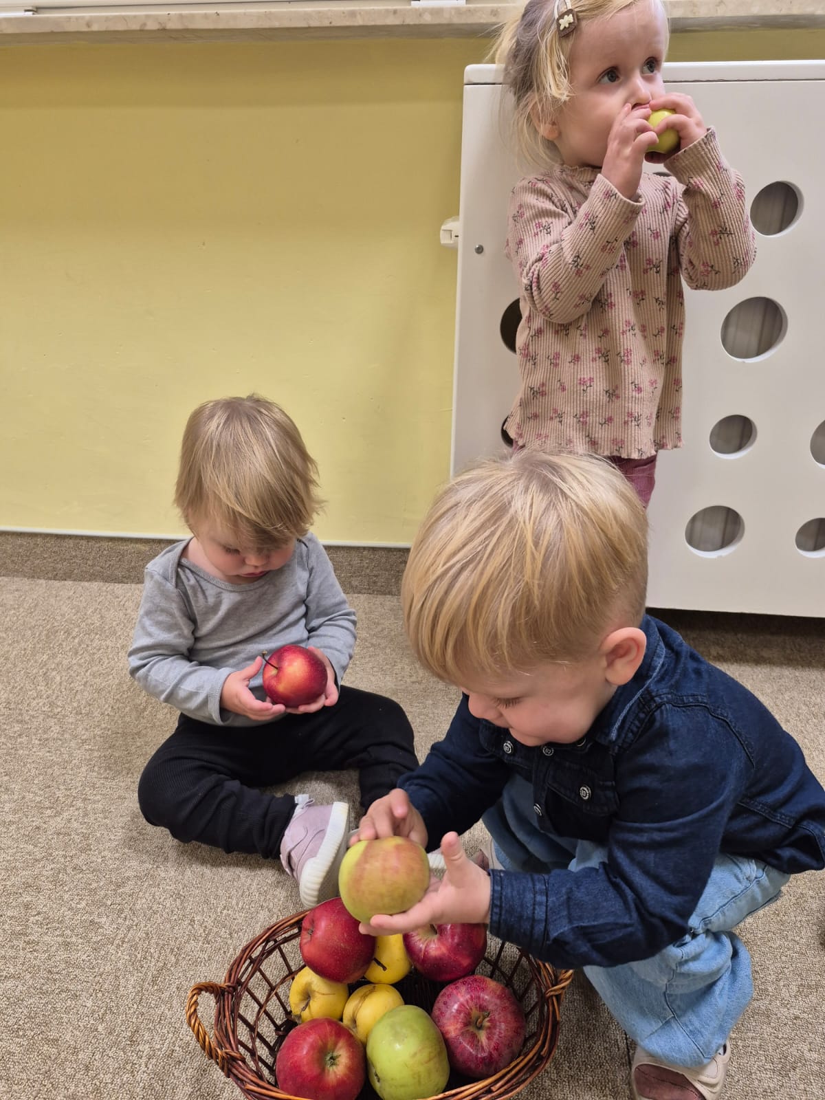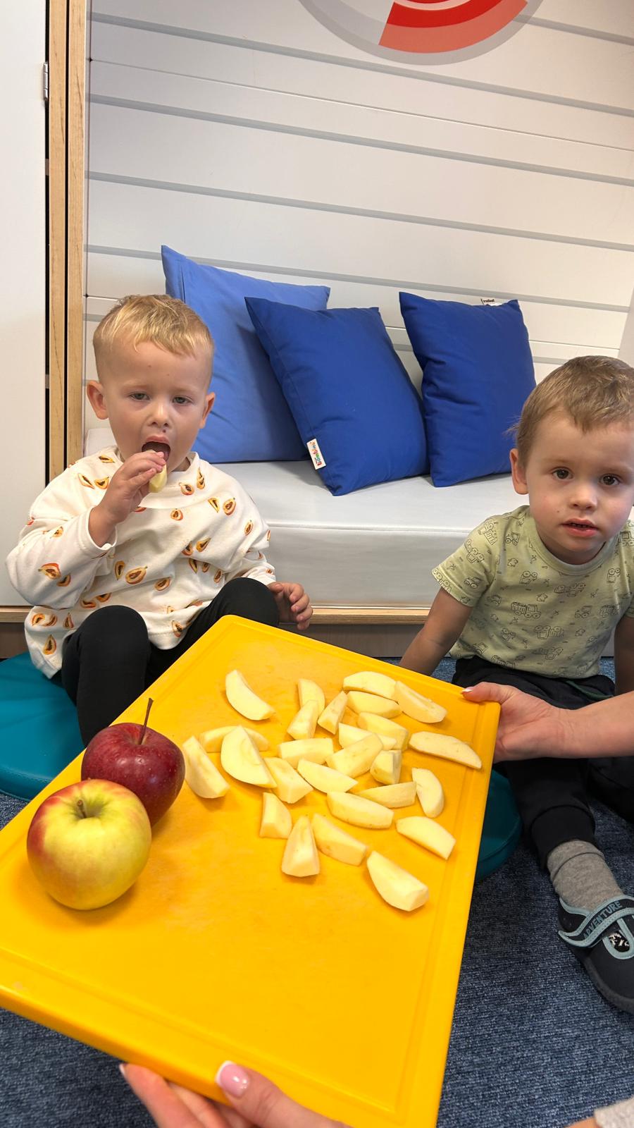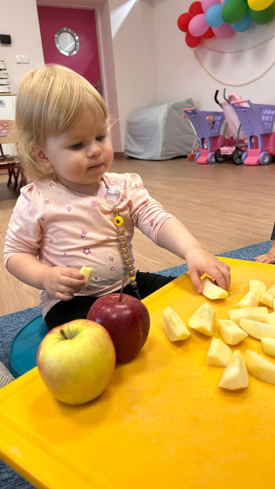 W naszym żłobku odbył się wyjątkowy Dzień Jabłka. Dzieci miały okazję poznać różne odmiany jabłek, sprawdzić jak różnią się smakiem i kolorem, a także dowiedzieć się, dlaczego jabłka są takie zdrowe.