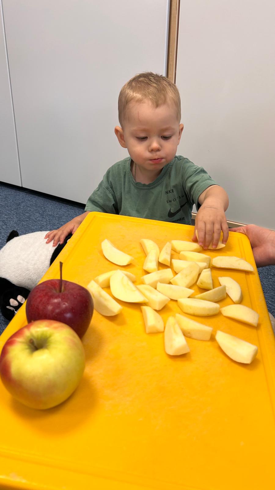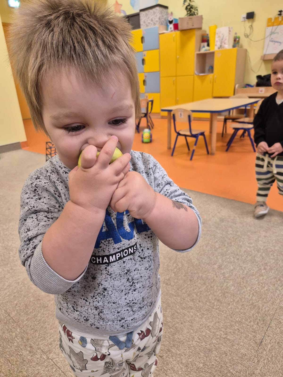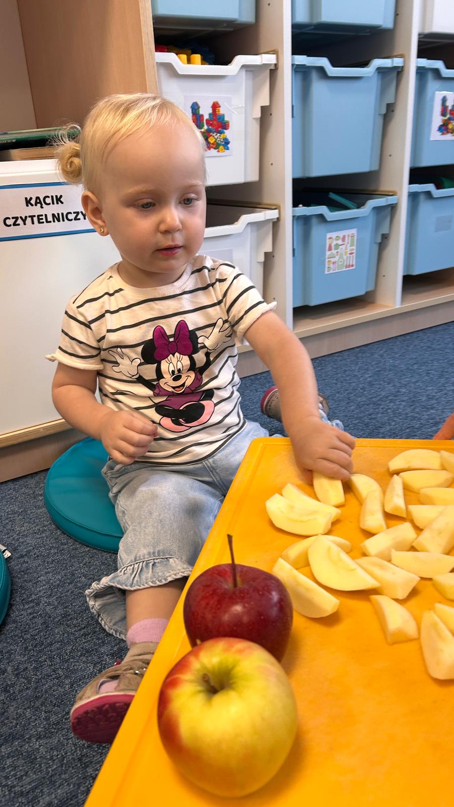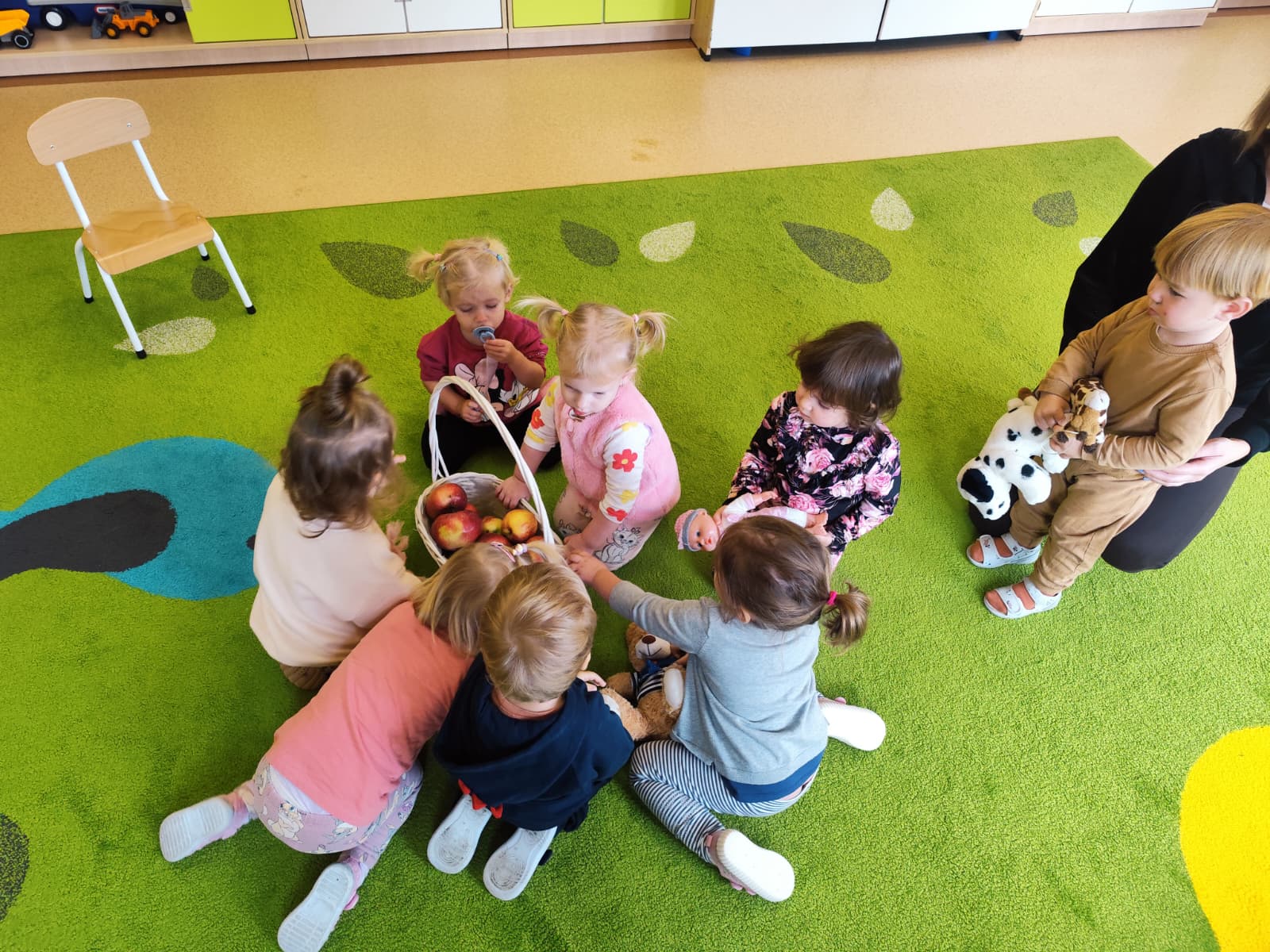 W naszym żłobku odbył się wyjątkowy Dzień Jabłka. Dzieci miały okazję poznać różne odmiany jabłek, sprawdzić jak różnią się smakiem i kolorem, a także dowiedzieć się, dlaczego jabłka są takie zdrowe.
