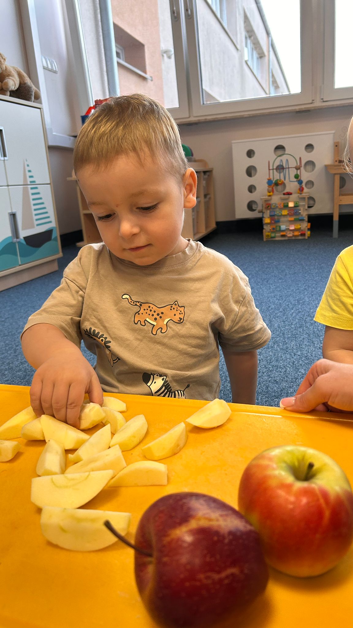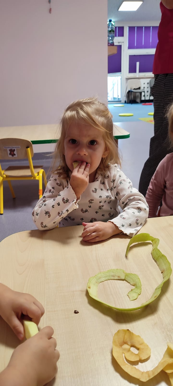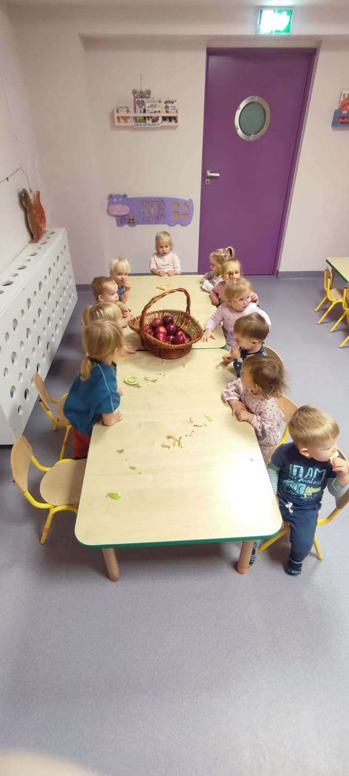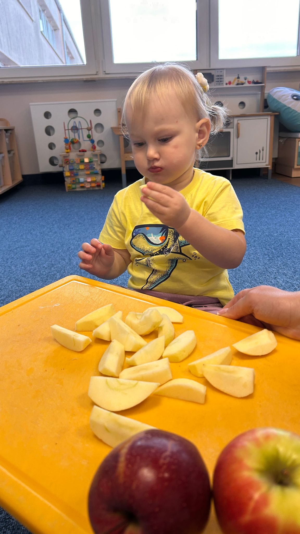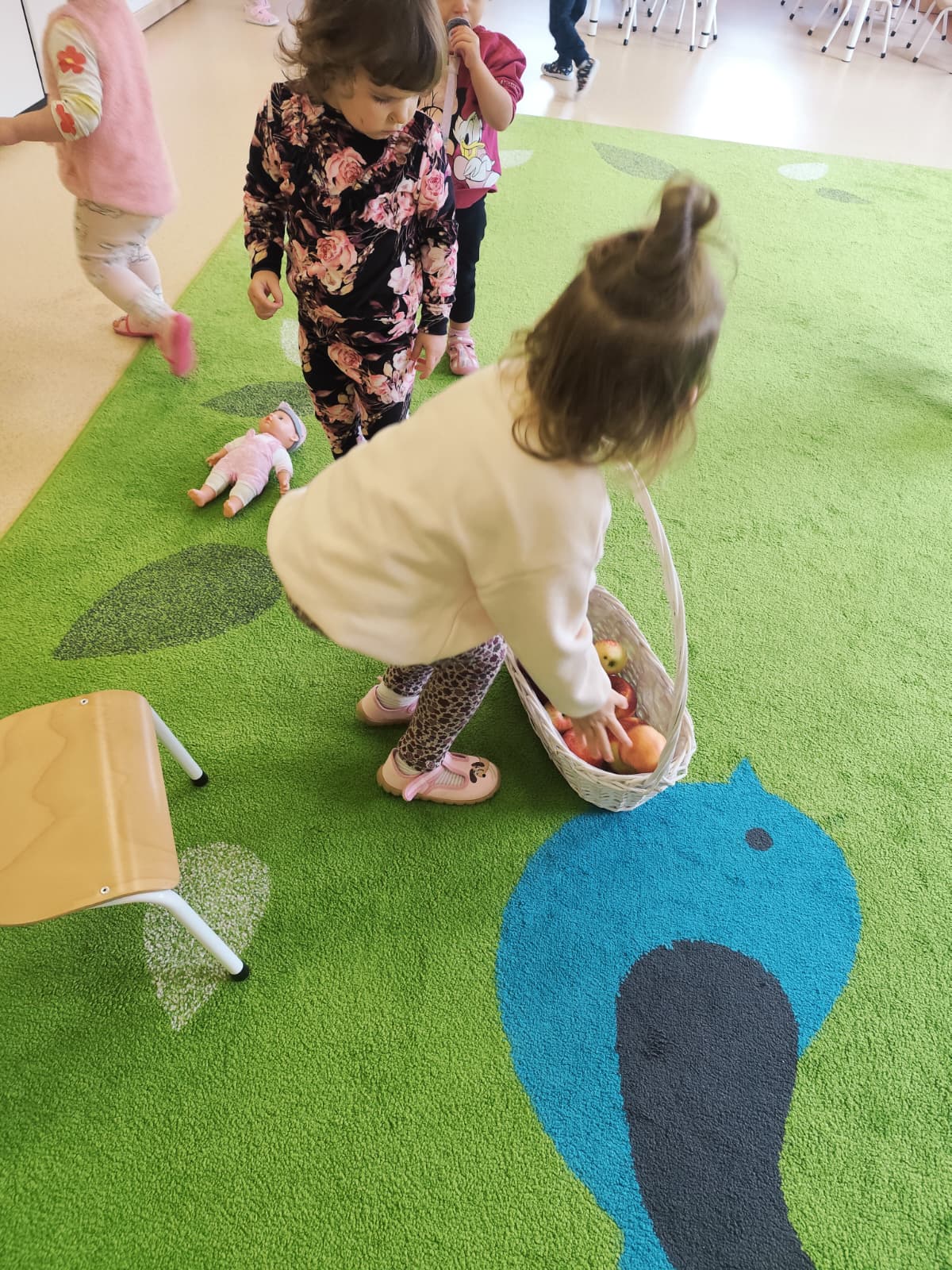 W naszym żłobku odbył się wyjątkowy Dzień Jabłka. Dzieci miały okazję poznać różne odmiany jabłek, sprawdzić jak różnią się smakiem i kolorem, a także dowiedzieć się, dlaczego jabłka są takie zdrowe.