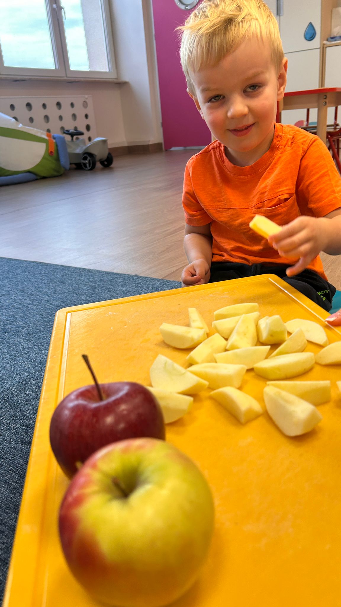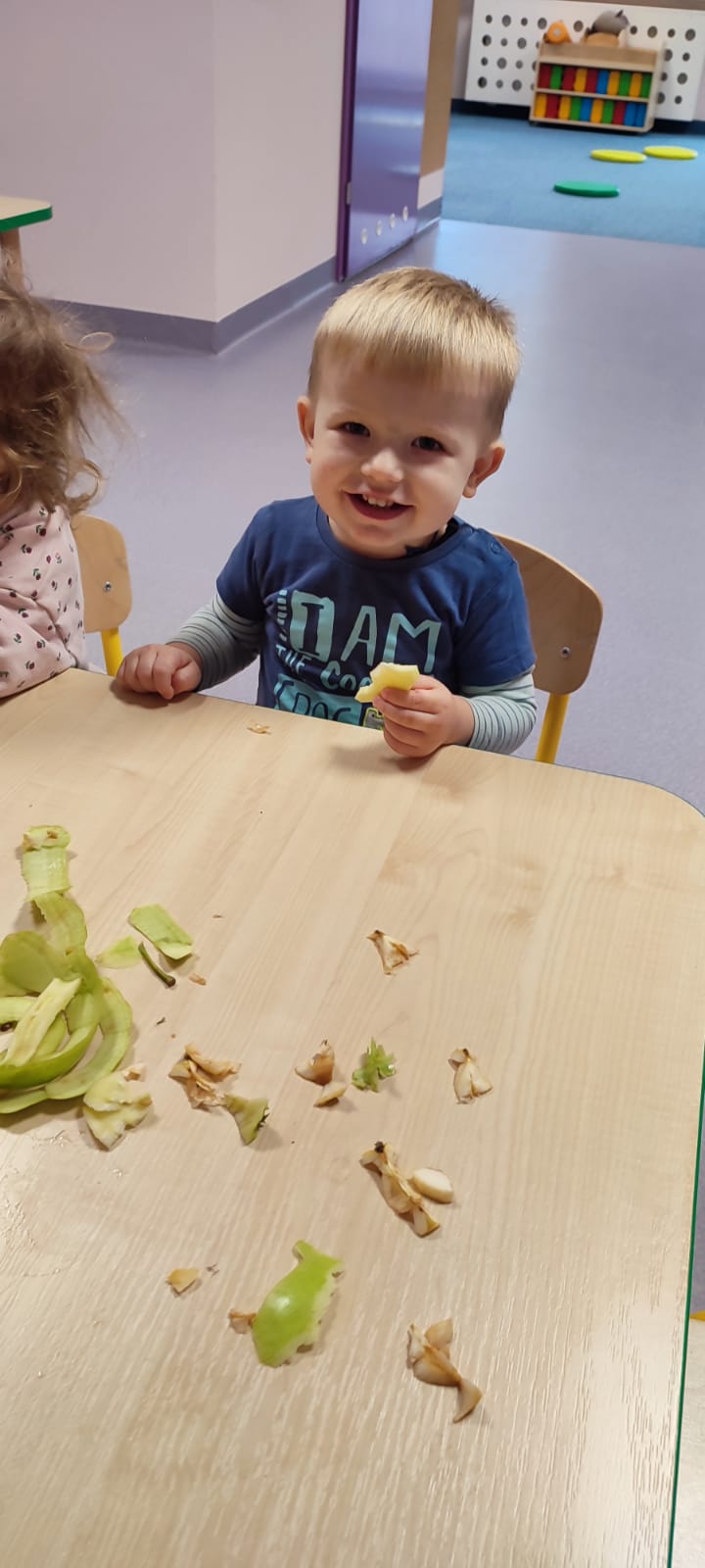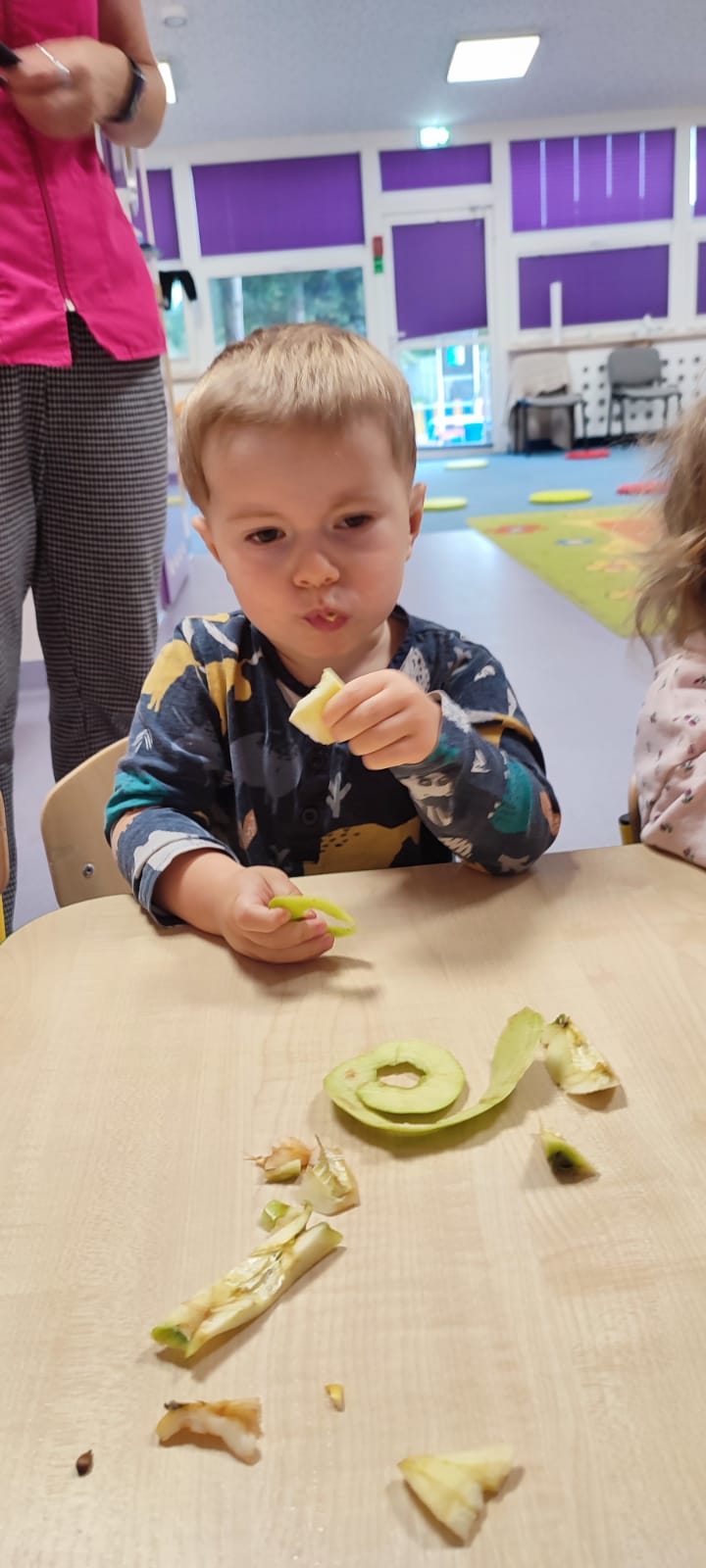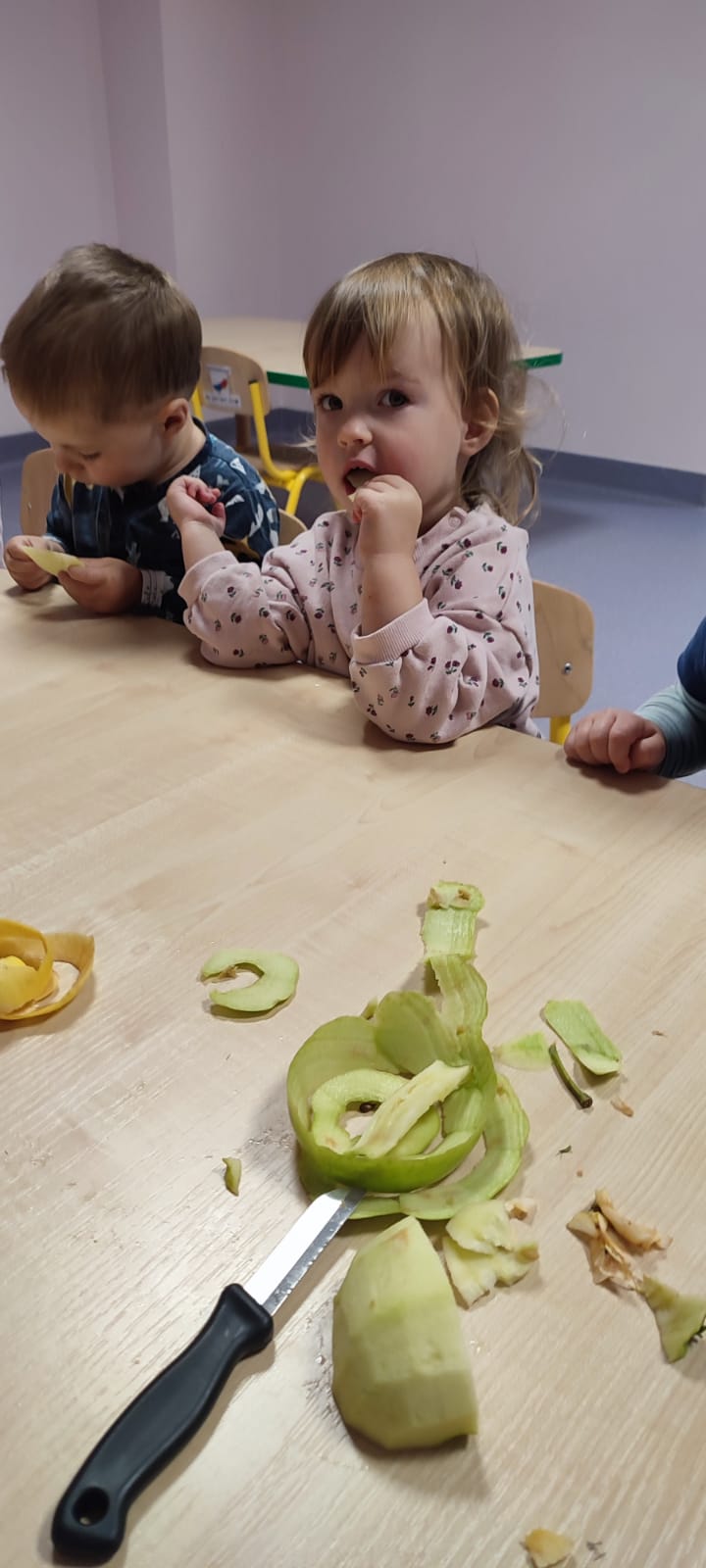 W naszym żłobku odbył się wyjątkowy Dzień Jabłka. Dzieci miały okazję poznać różne odmiany jabłek, sprawdzić jak różnią się smakiem i kolorem, a także dowiedzieć się, dlaczego jabłka są takie zdrowe.