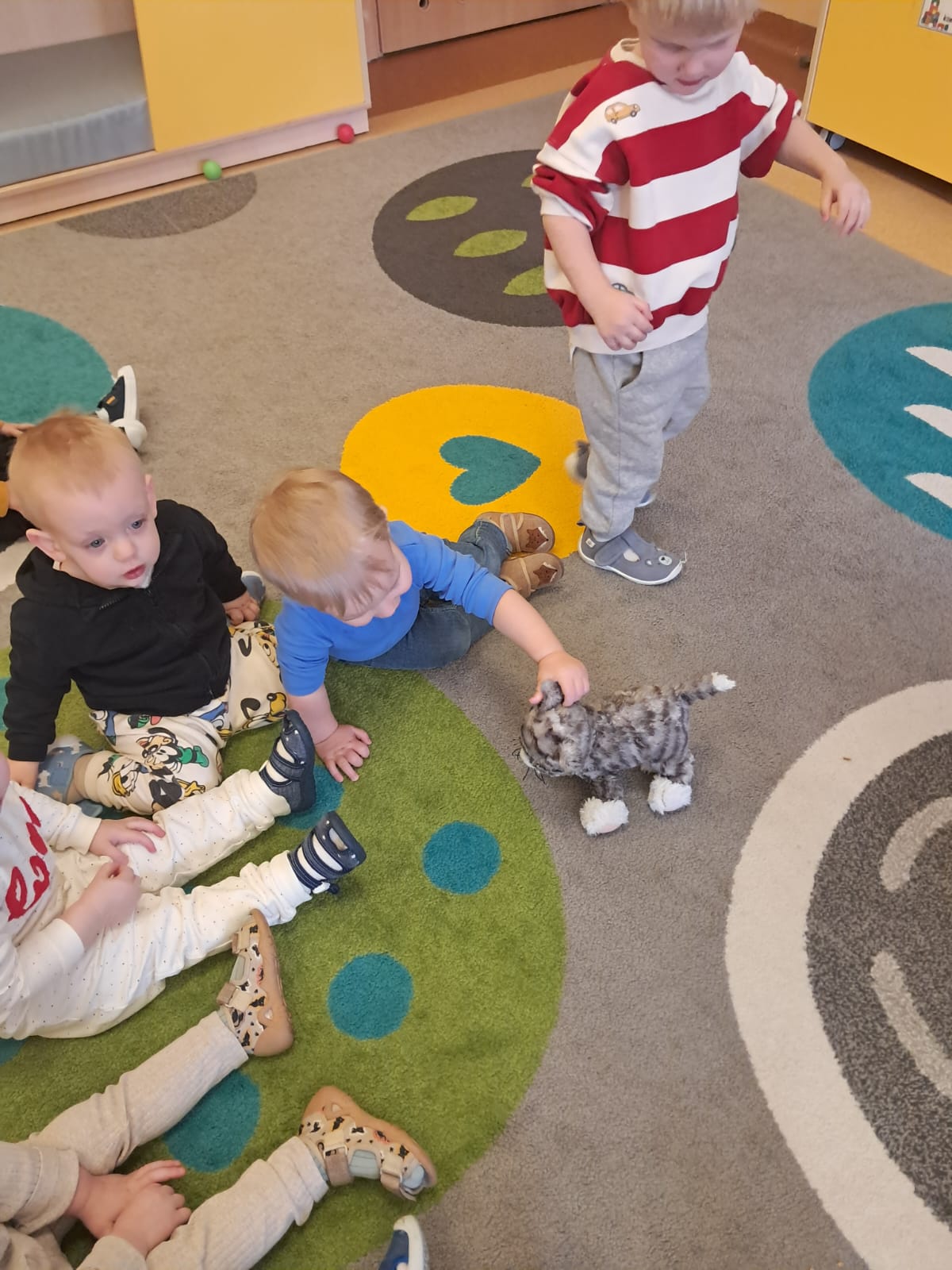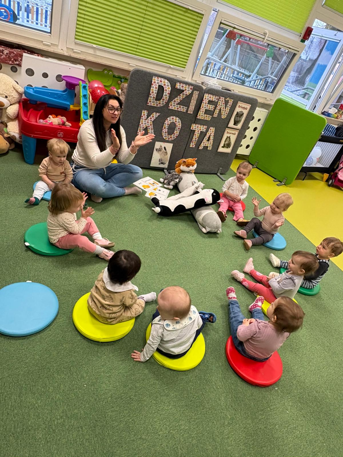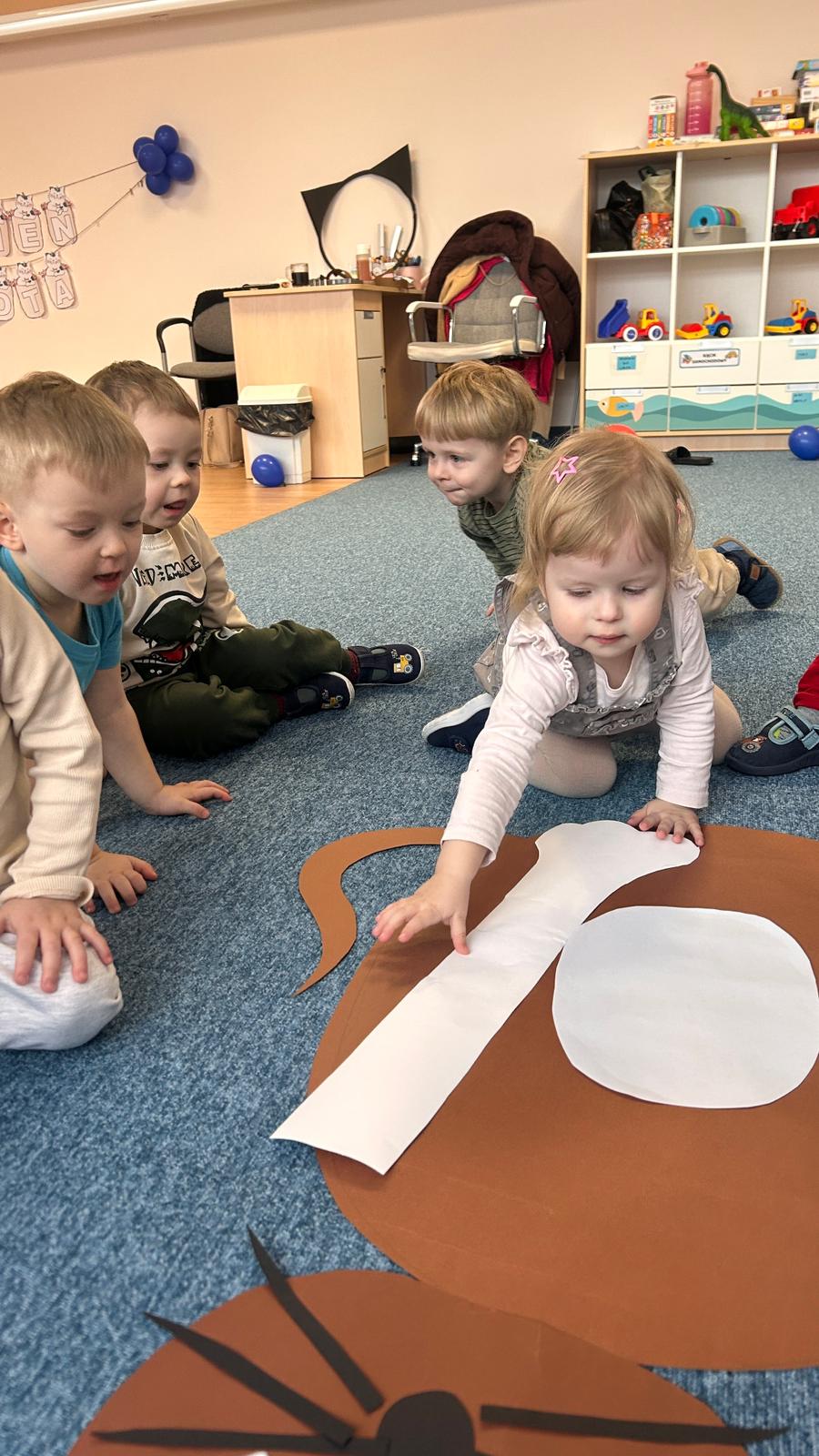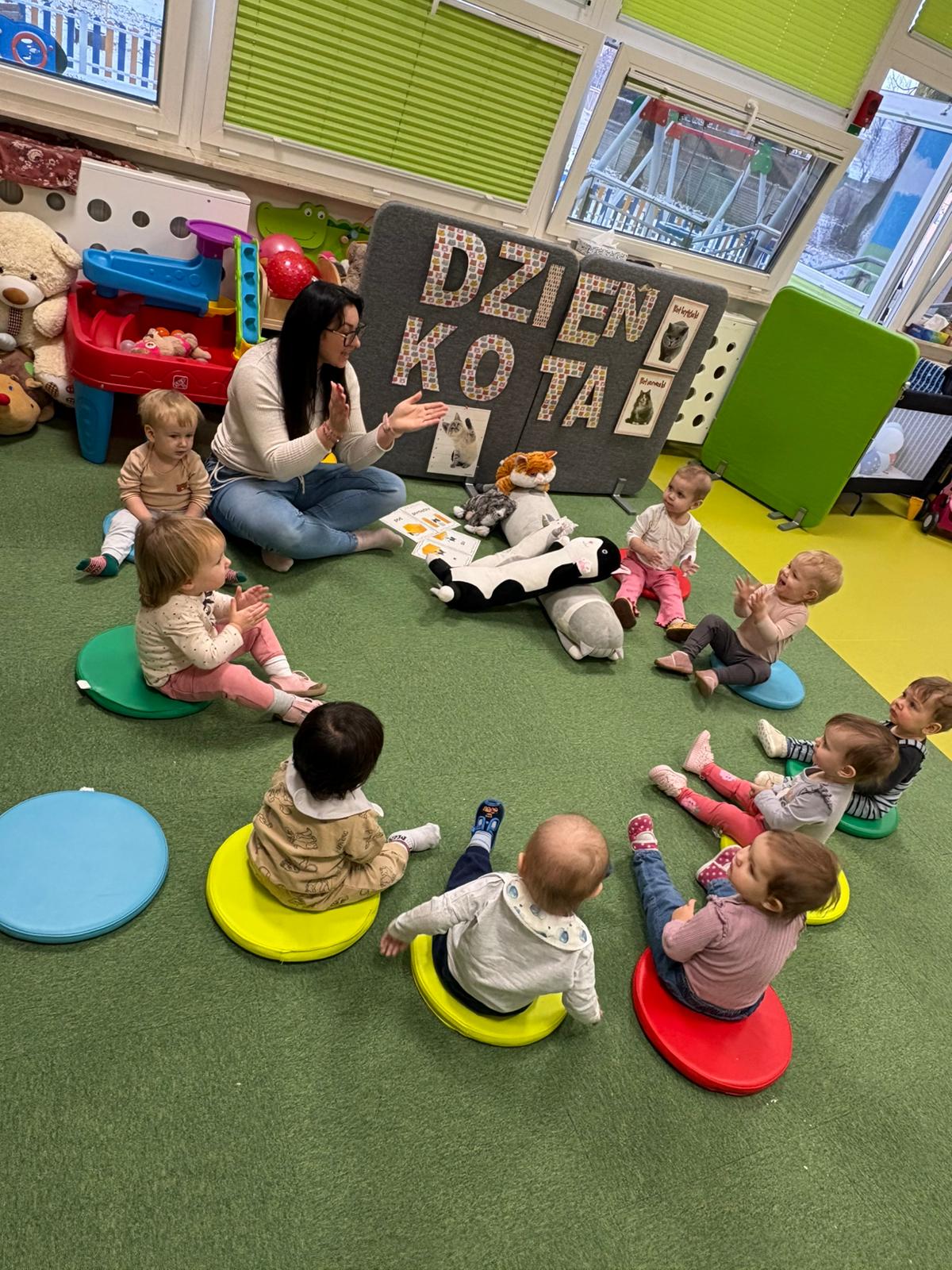 Były „kocie” zabawy ruchowe, naśladowanie kocich ruchów, wspólne czytanie opowiadań oraz słuchanie wesołych piosenek. Dzieci uczyły się także empatii i odpowiedzialności wobec zwierząt, rozmawiając o tym, jak ważna jest troska i opieka nad czworonożnymi przyjaciółmi.
