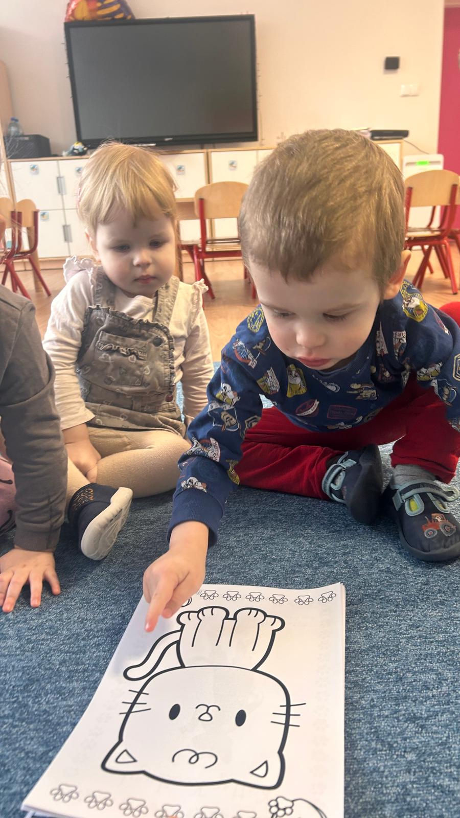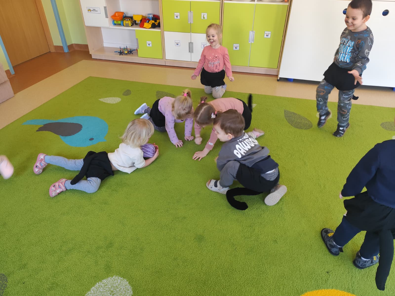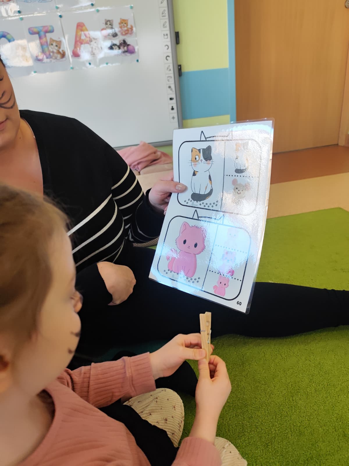 Były „kocie” zabawy ruchowe, naśladowanie kocich ruchów, wspólne czytanie opowiadań oraz słuchanie wesołych piosenek. Dzieci uczyły się także empatii i odpowiedzialności wobec zwierząt, rozmawiając o tym, jak ważna jest troska i opieka nad czworonożnymi przyjaciółmi.