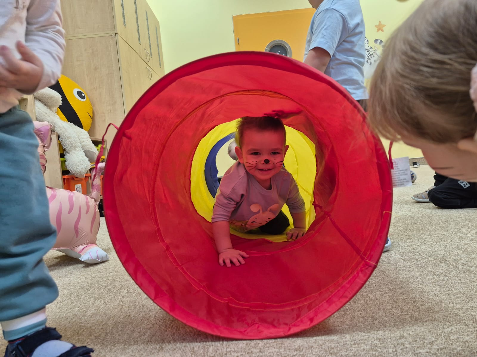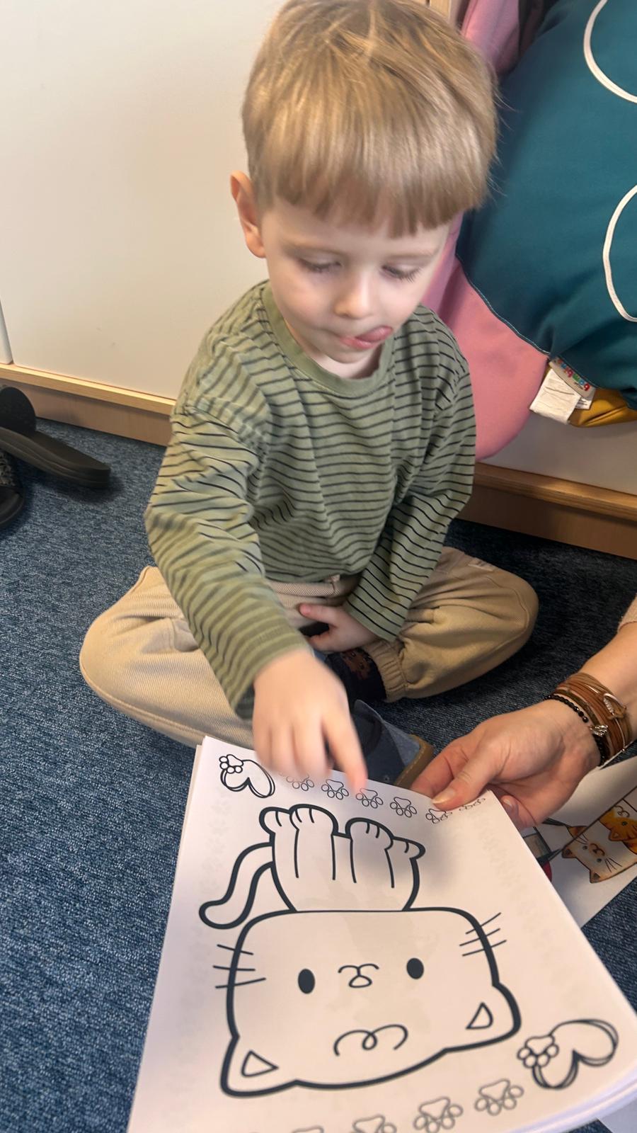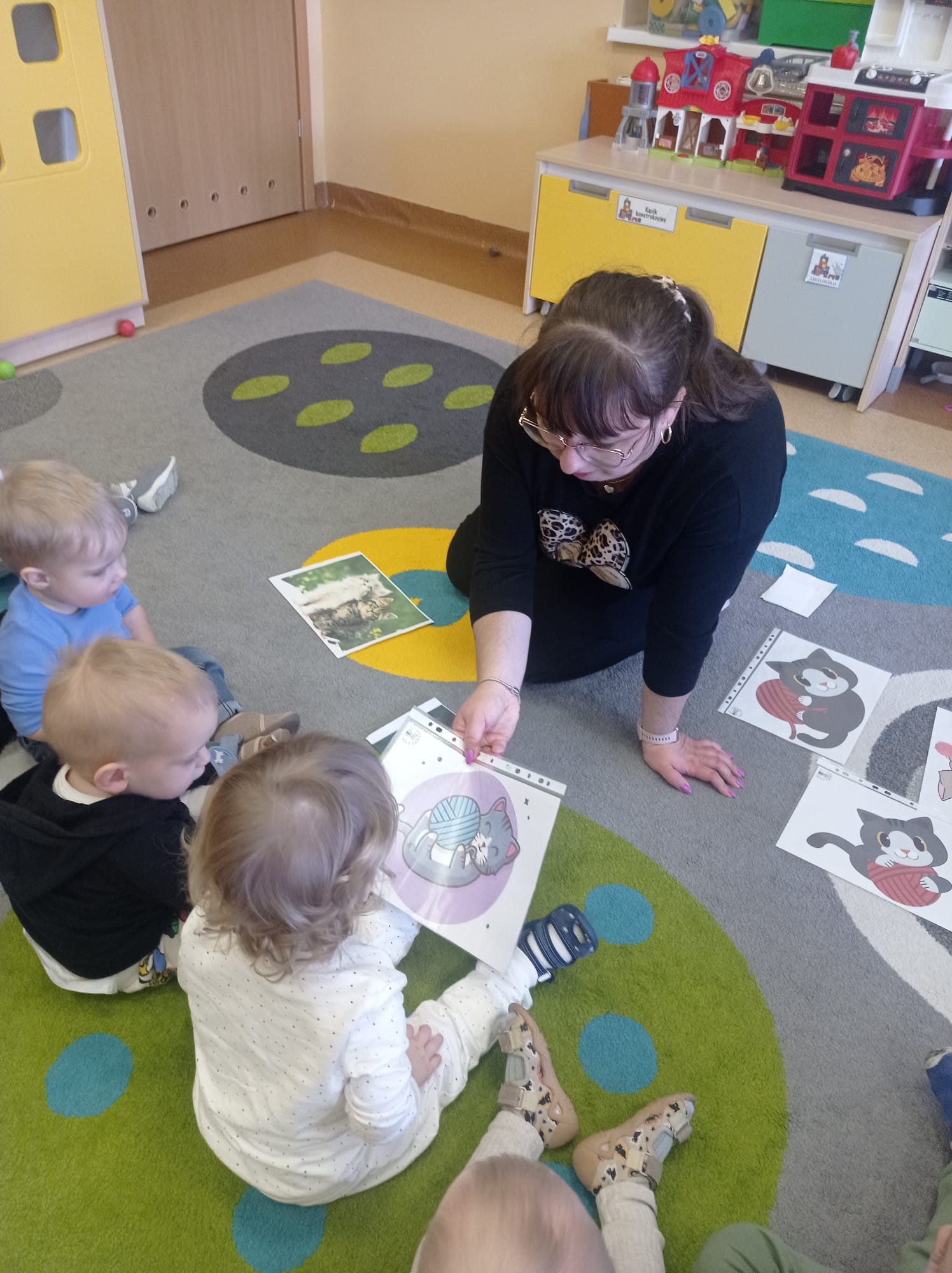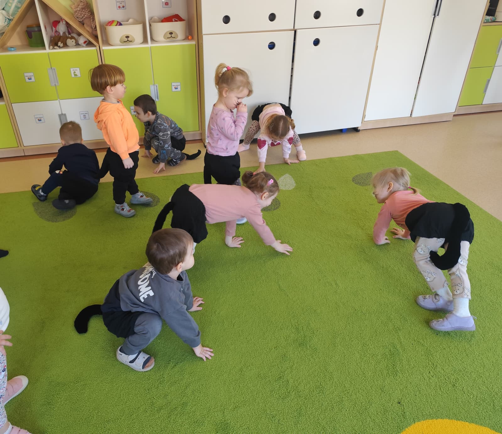Były „kocie” zabawy ruchowe, naśladowanie kocich ruchów, wspólne czytanie opowiadań oraz słuchanie wesołych piosenek. Dzieci uczyły się także empatii i odpowiedzialności wobec zwierząt, rozmawiając o tym, jak ważna jest troska i opieka nad czworonożnymi przyjaciółmi.
