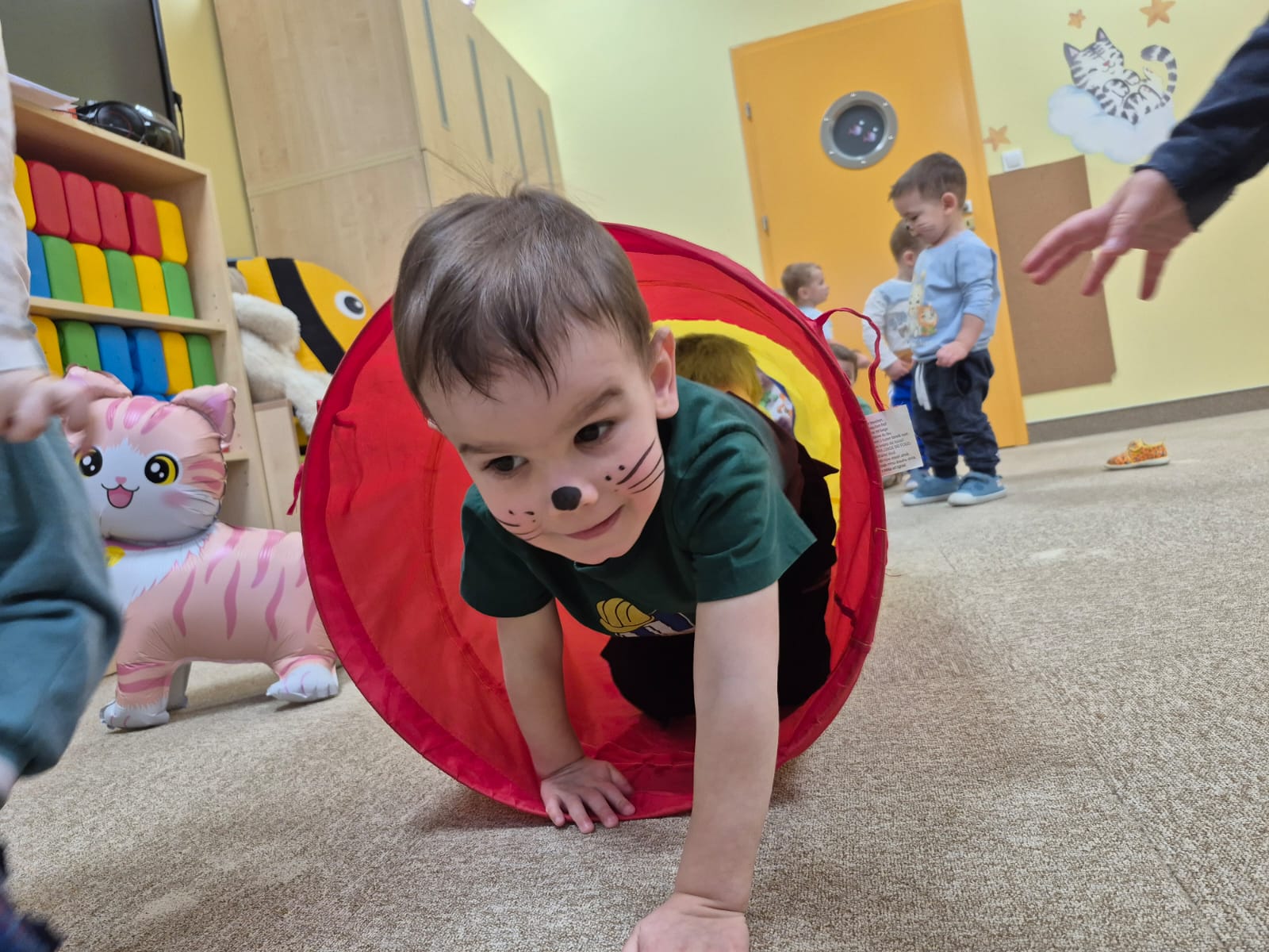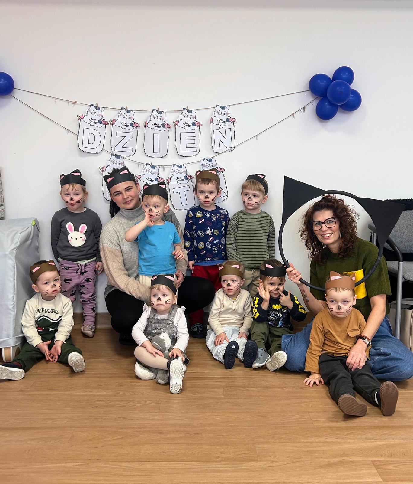 W naszym żłobku świętowaliśmy Dzień Kota. Wyjątkowe i pełne radości wydarzenie, które dostarczyło dzieciom wielu niezapomnianych wrażeń. Tego dnia w salach królowały kocie motywy, a maluchy z dumą prezentowały opaski z uszkami i własnoręcznie wykonane prace plastyczne przedstawiające kotki.