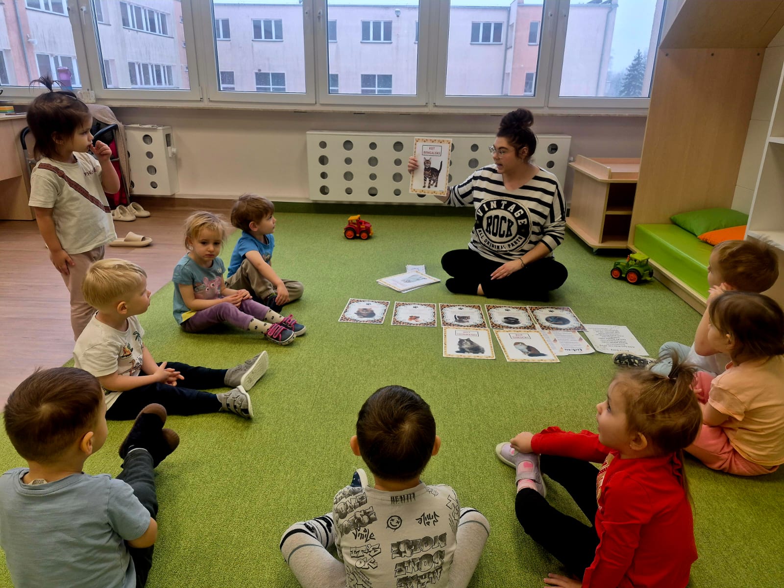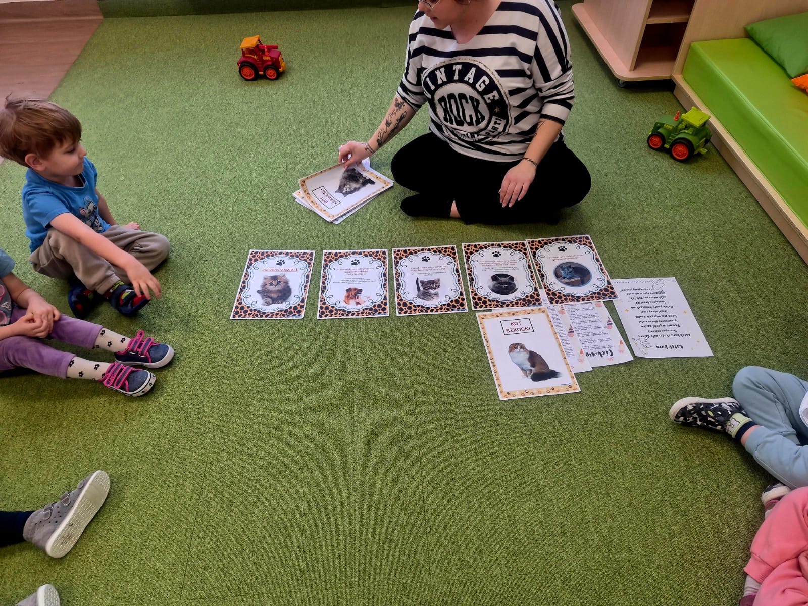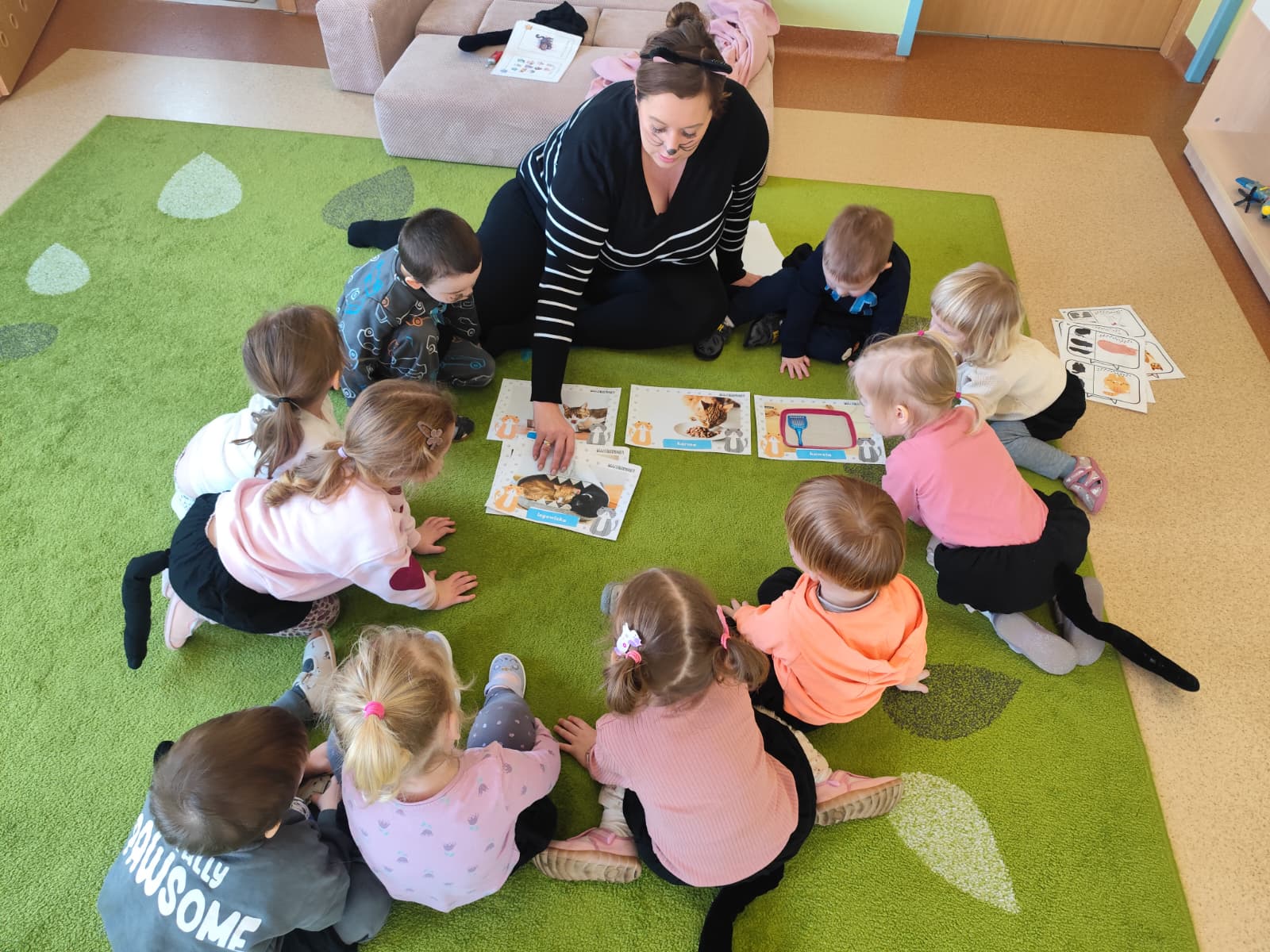 Podczas wspólnych zabaw dzieci poznały ciekawostki o kotach, dowiedziały się, jak należy dbać o pupila, czym koty się żywią oraz w jaki sposób okazują swoje emocje. Nie zabrakło również nawiązań do znanych bajkowych bohaterów, takich jak Kot w Butach czy sympatyczny Garfield, które wzbudziły wiele uśmiechów.