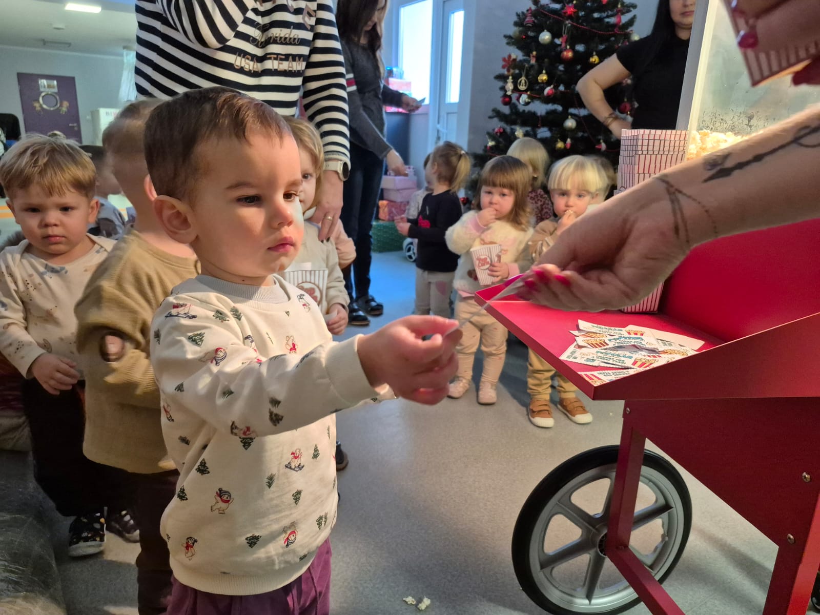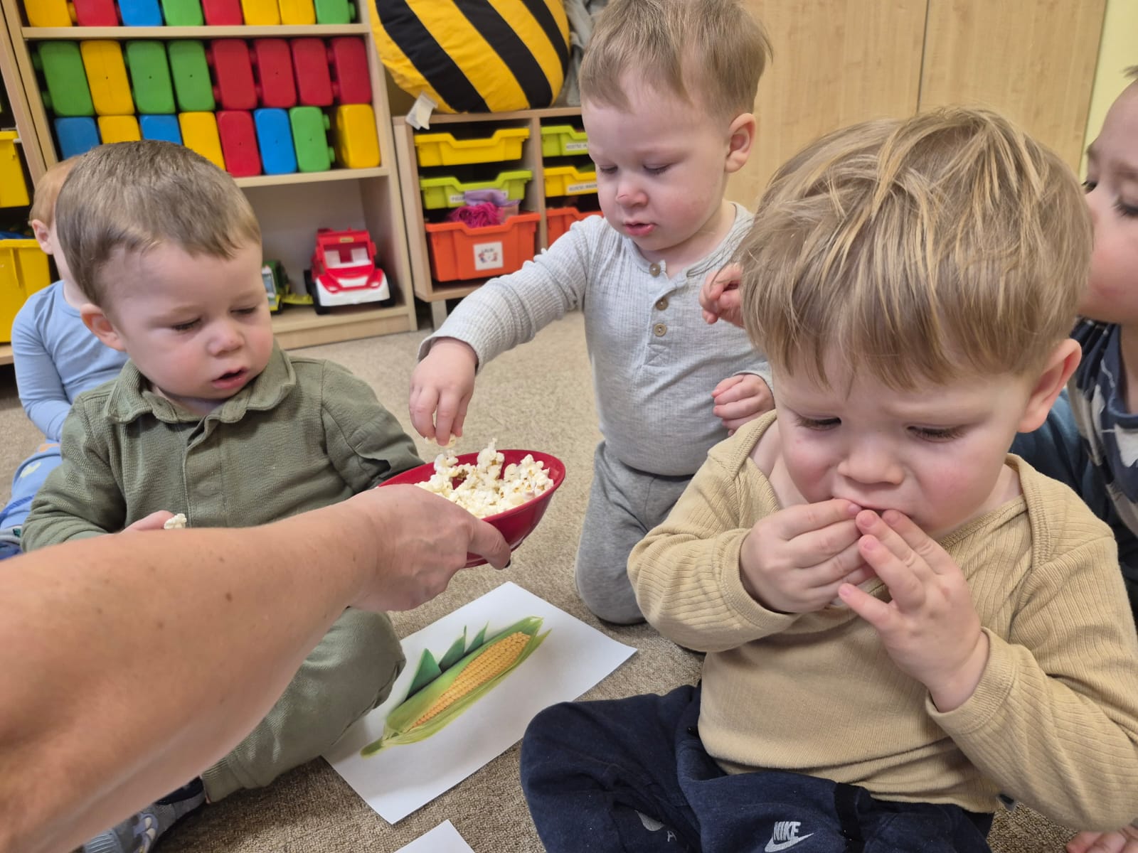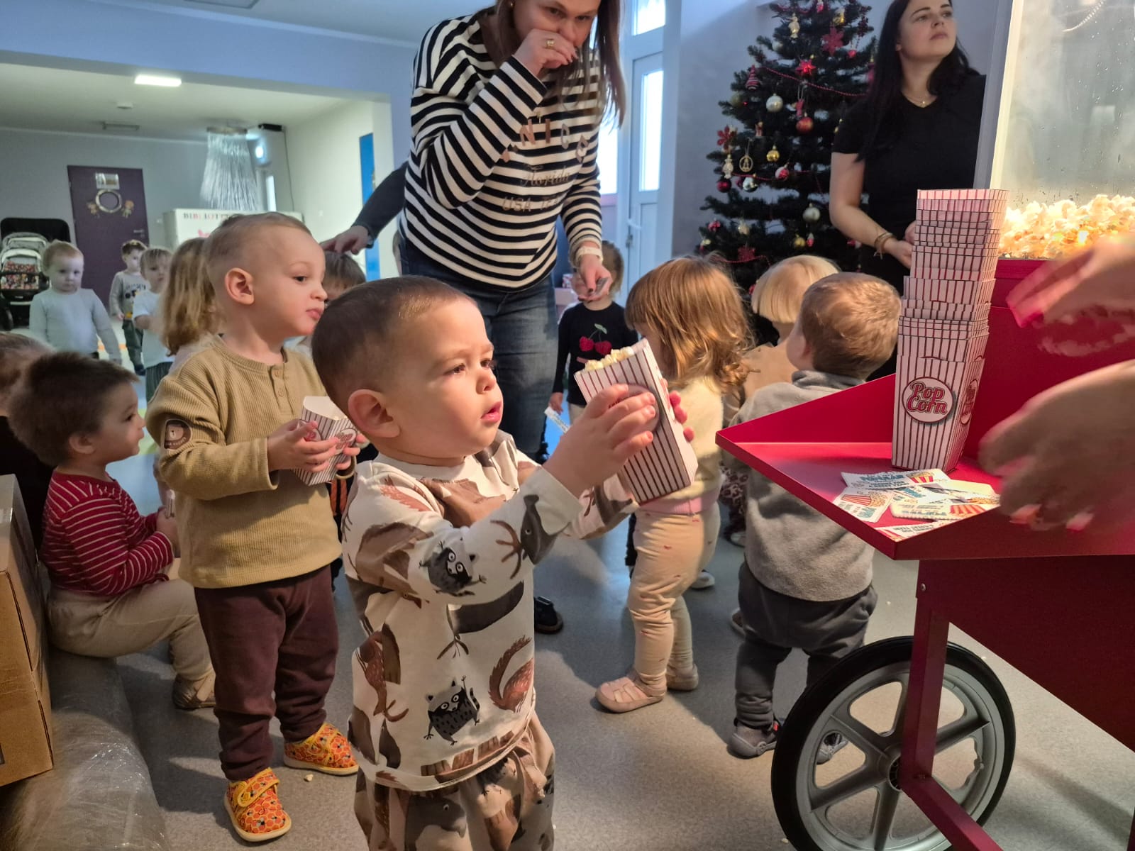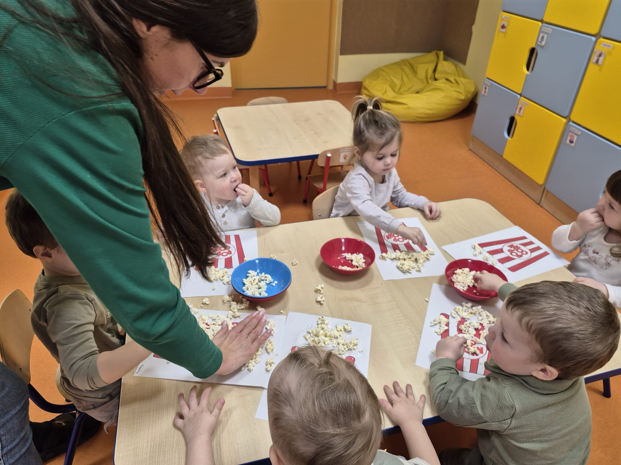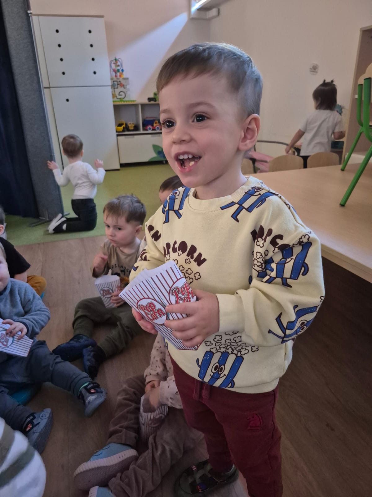 Dzień Popcornu to wyjątkowa okazja, aby połączyć naukę z zabawą i pysznym przysmakiem, który uwielbiają zarówno dzieci, jak i dorośli. W naszym żłobku odbyła się specjalna impreza, podczas której dzieci miały szansę zobaczyć na własne oczy, jak powstaje popcorn – od ziarenka kukurydzy aż po puszystą przekąskę. To niecodzienne doświadczenie nie tylko bawiło, ale również uczyło, a na zakończenie wszyscy mogli delektować się świeżo przygotowanym popcornem podczas wspólnego oglądania filmu.