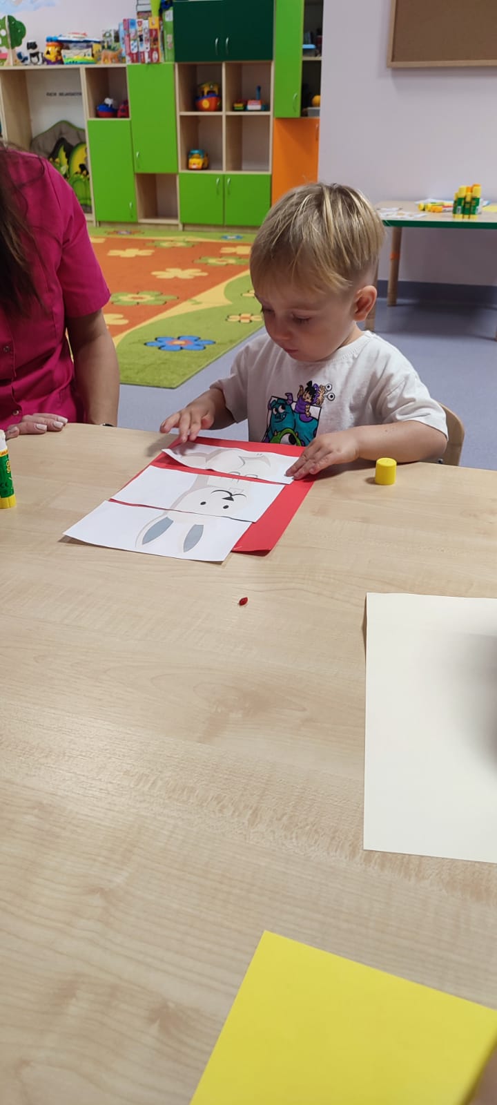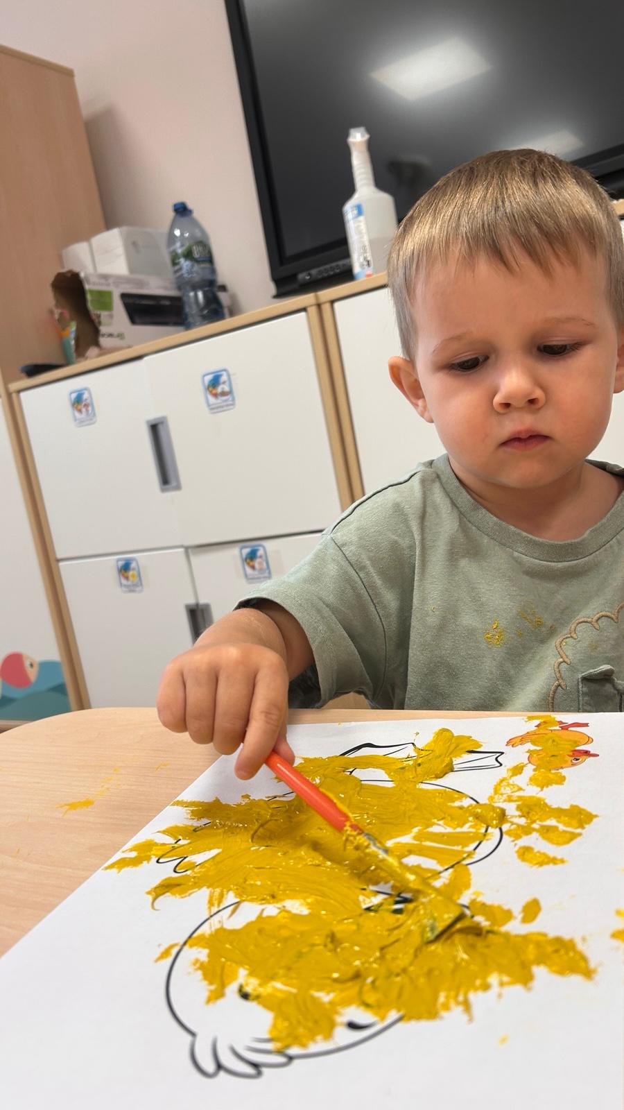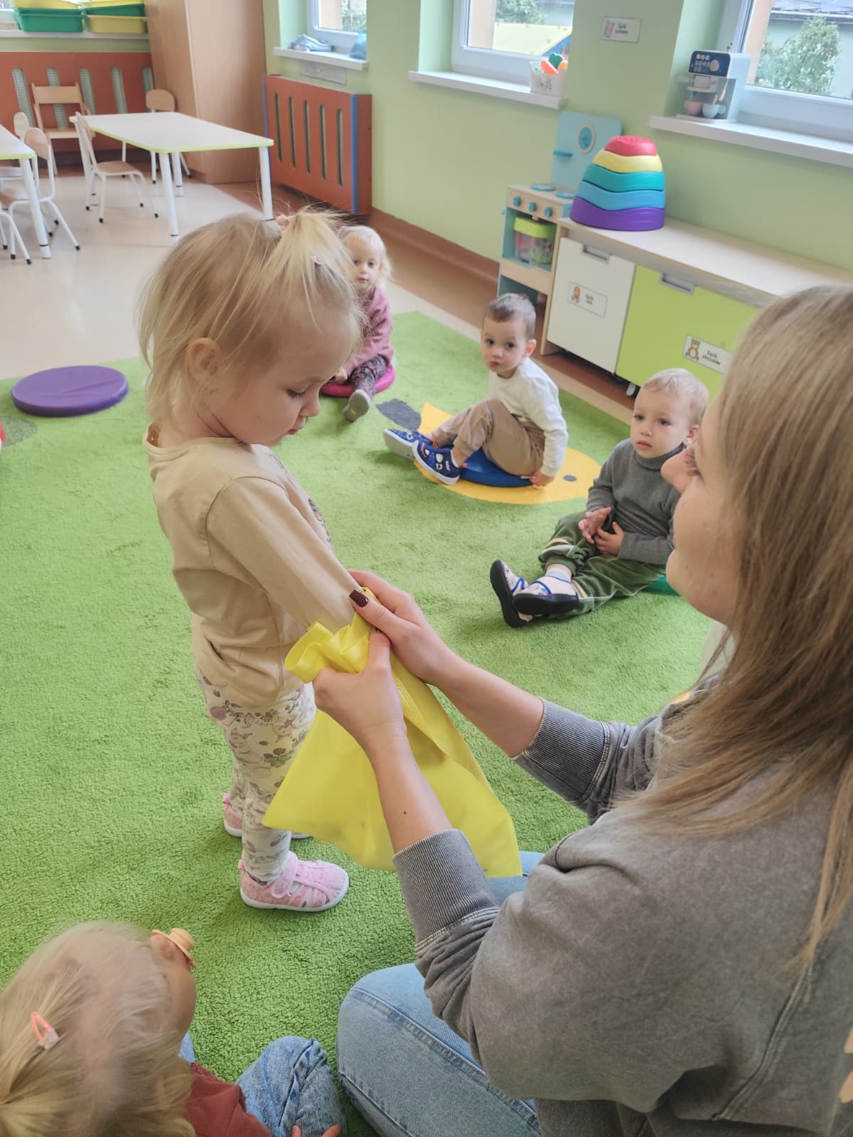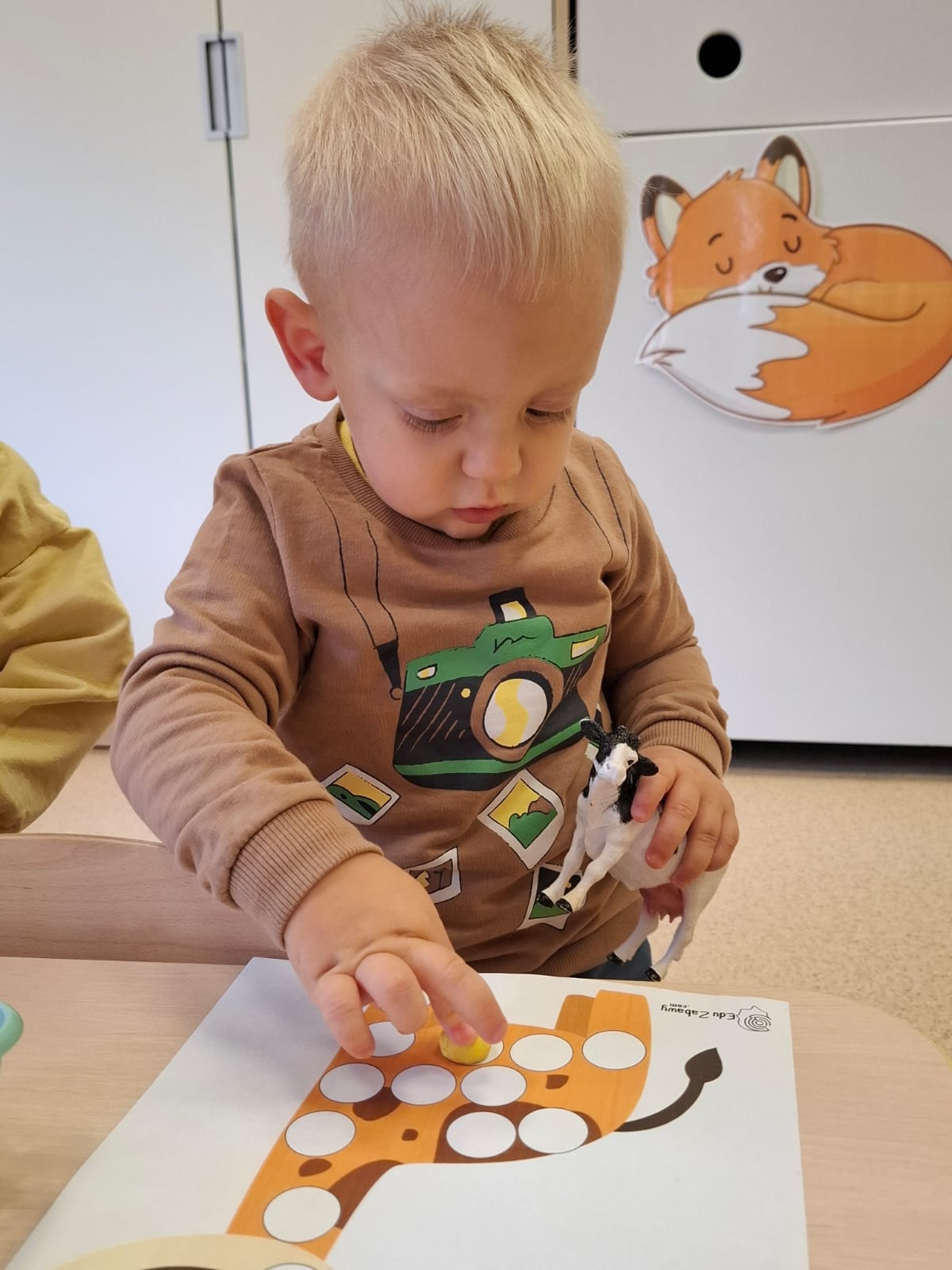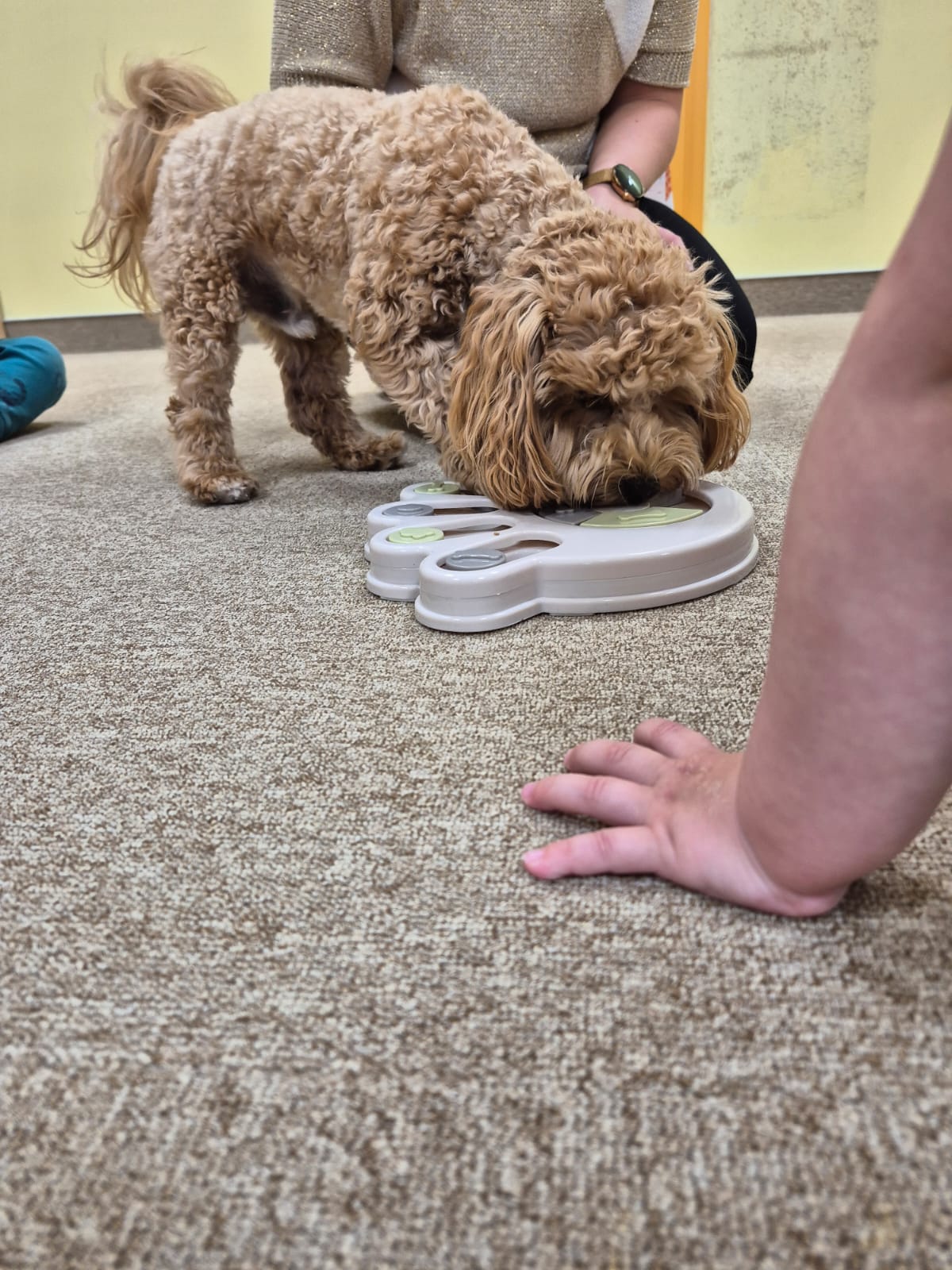 Największą atrakcją dnia był prawdziwy piesek, który odwiedził nasz żłobek! Dzieci były zachwycone jego obecnością. Piesek był bardzo grzeczny, pozwalał się głaskać i chętnie bawił się z maluchami.