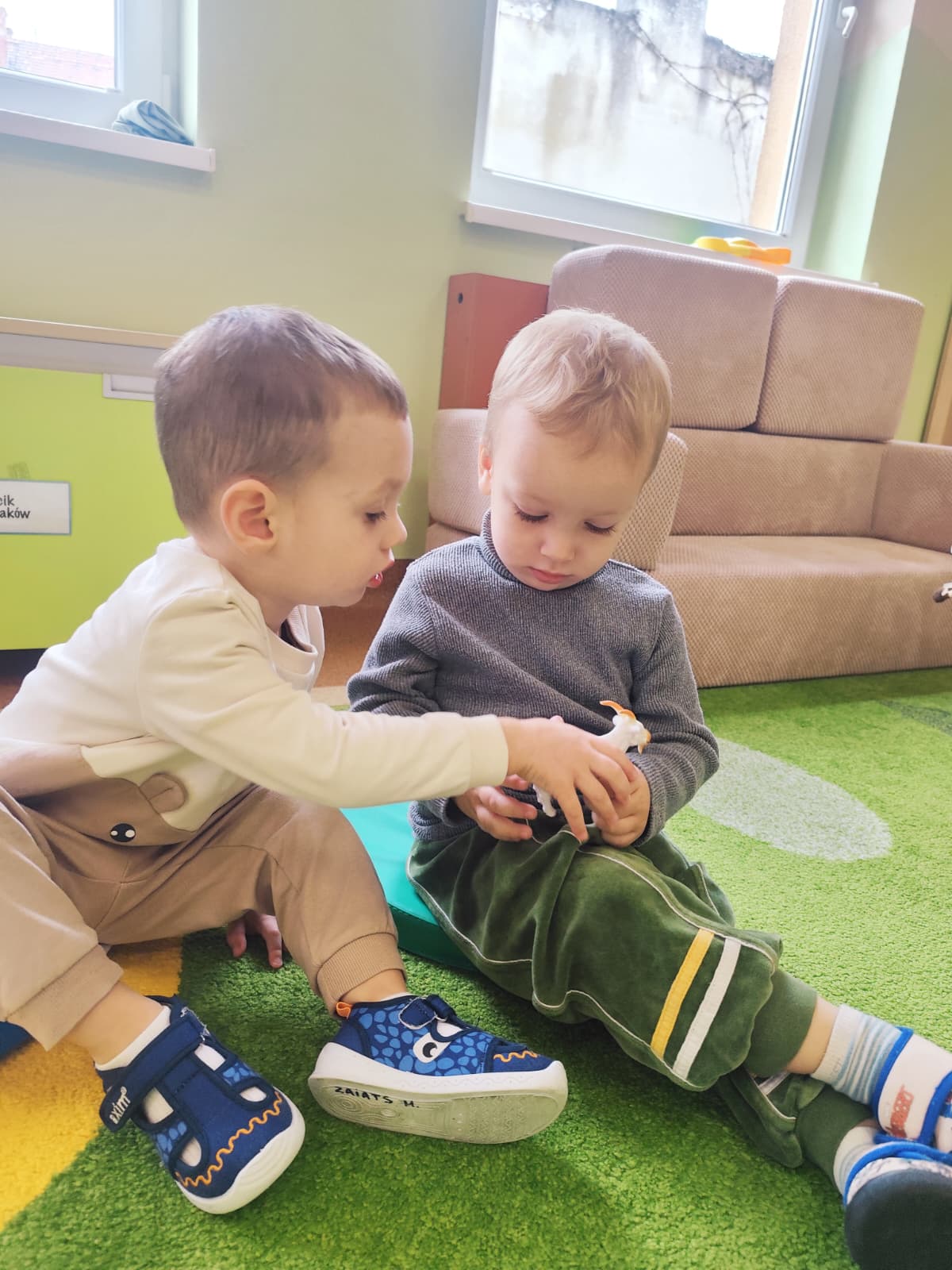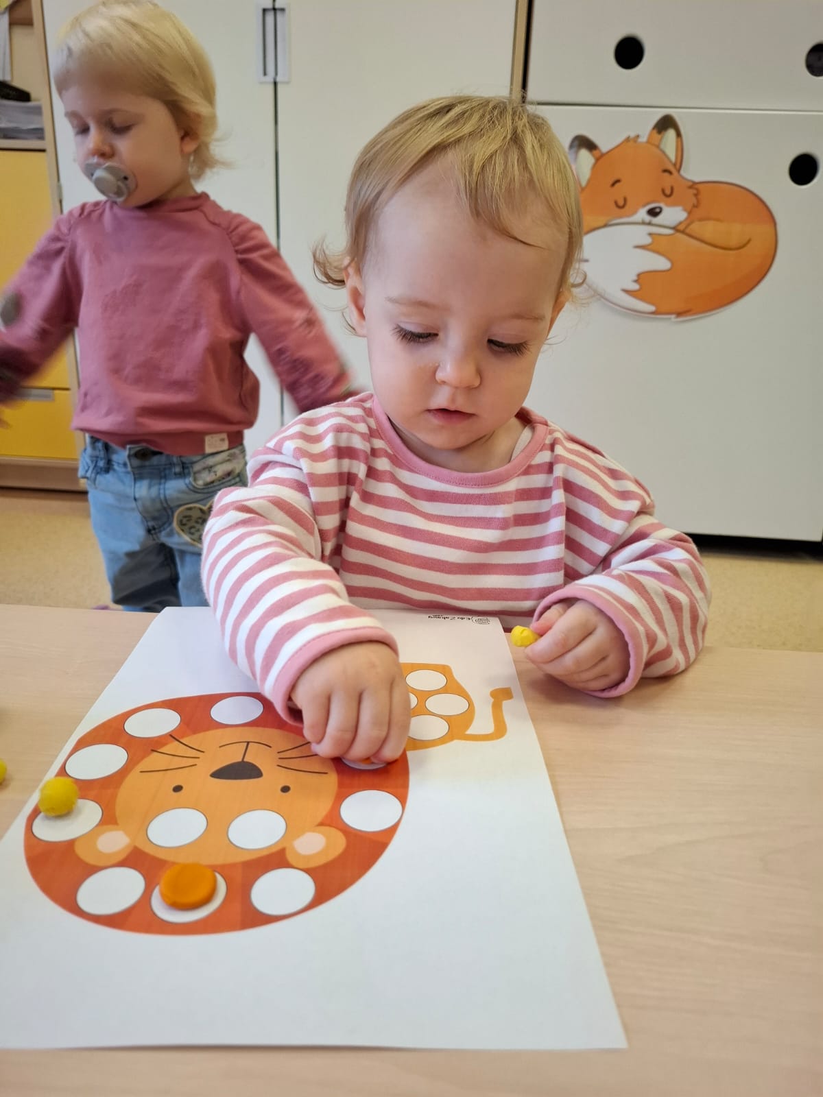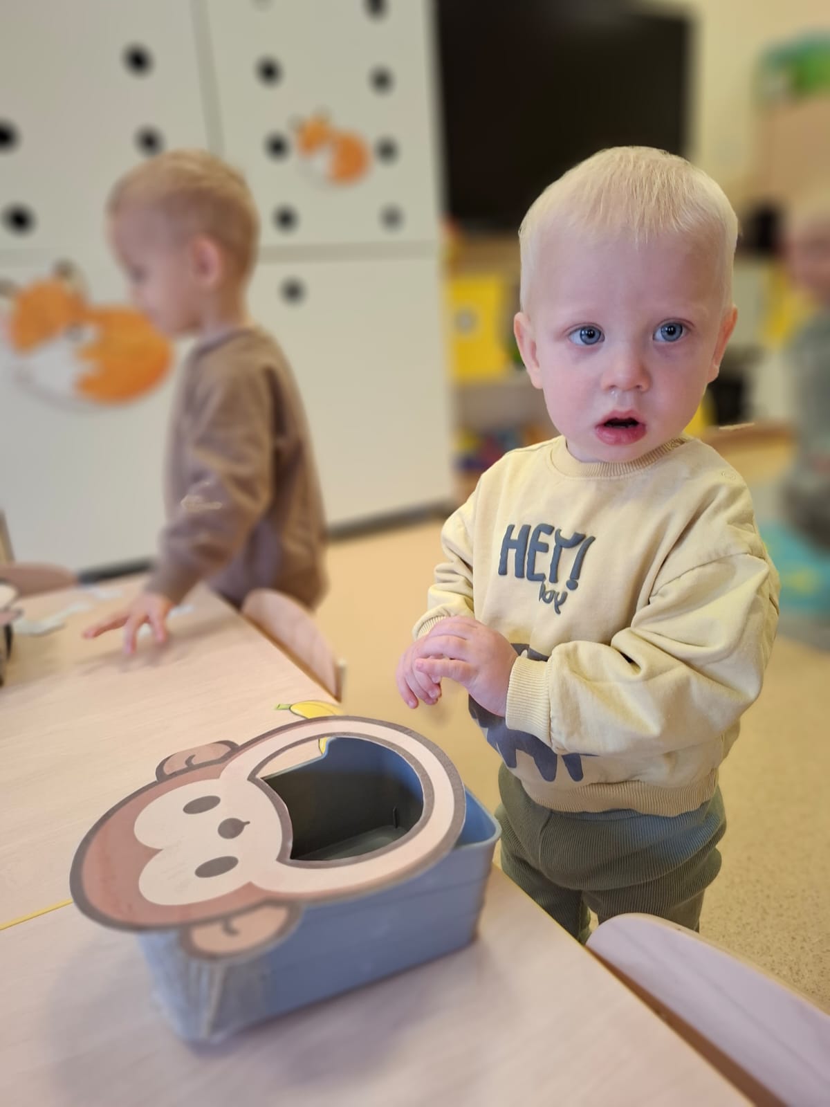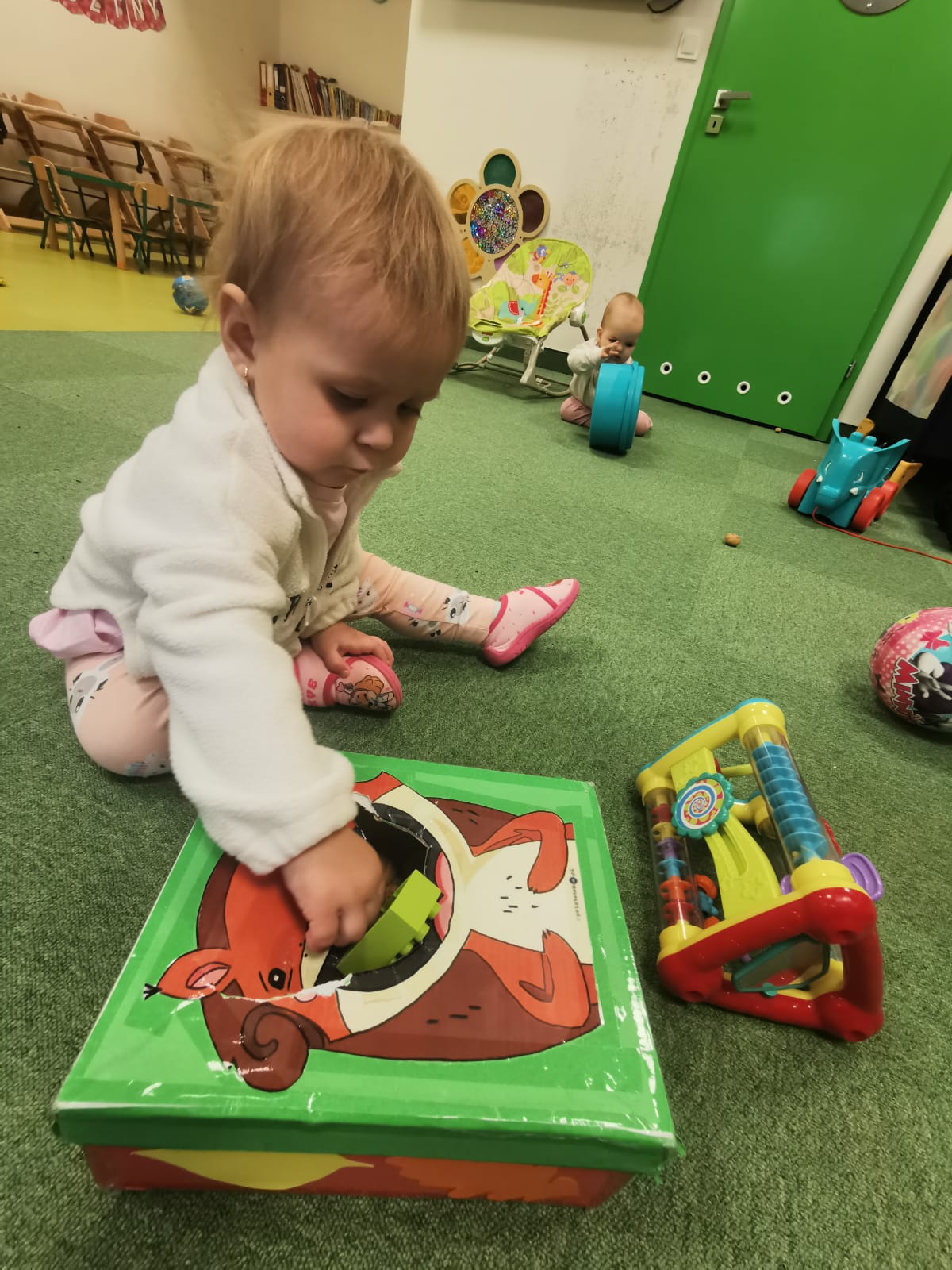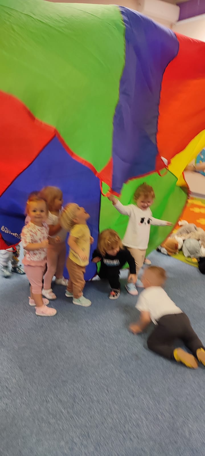 Największą atrakcją dnia był prawdziwy piesek, który odwiedził nasz żłobek! Dzieci były zachwycone jego obecnością. Piesek był bardzo grzeczny, pozwalał się głaskać i chętnie bawił się z maluchami.