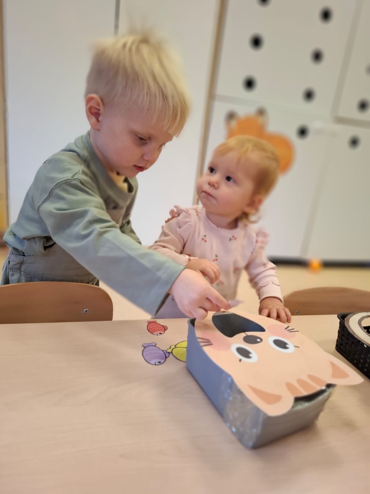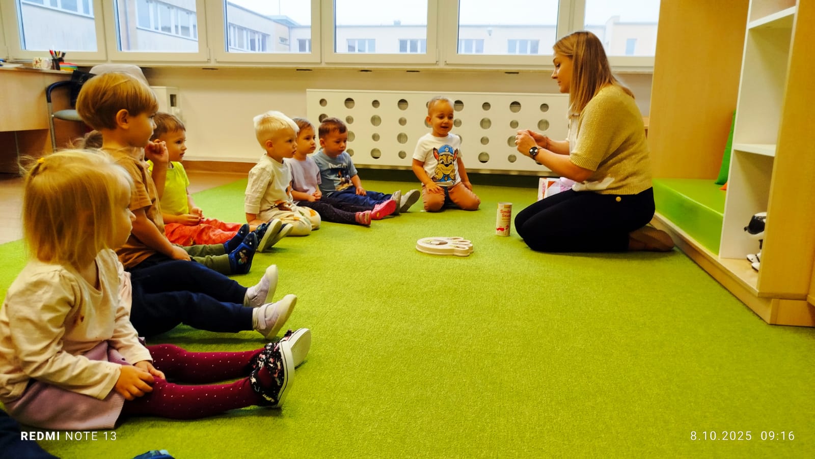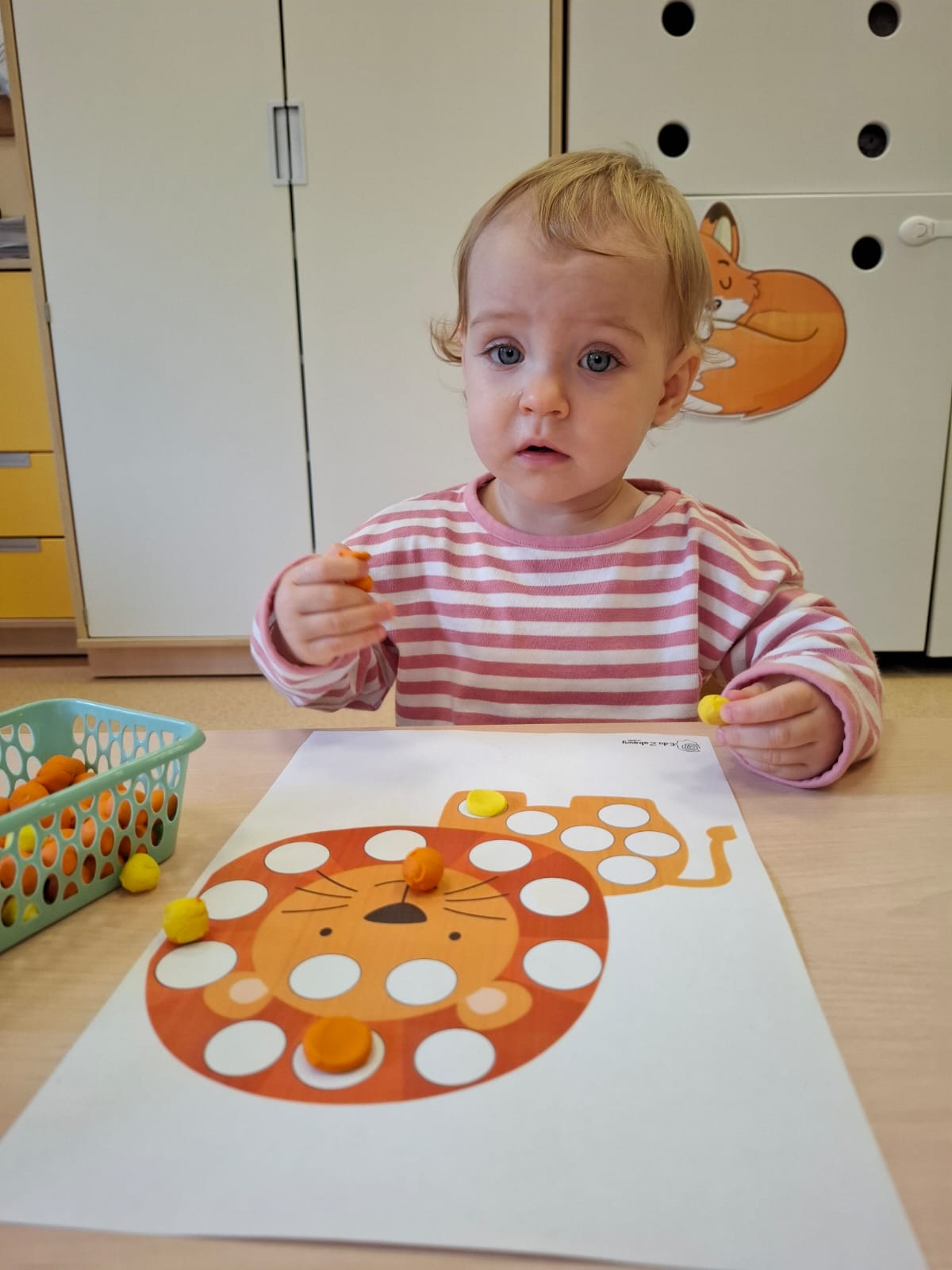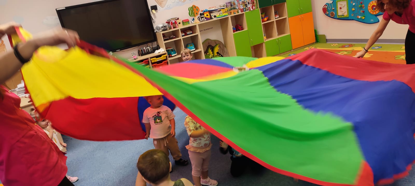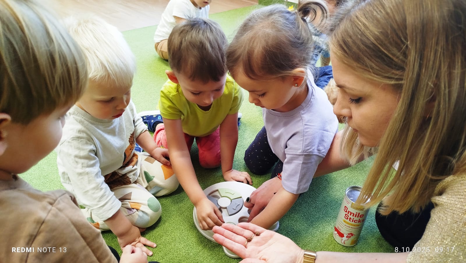 Największą atrakcją dnia był prawdziwy piesek, który odwiedził nasz żłobek! Dzieci były zachwycone jego obecnością. Piesek był bardzo grzeczny, pozwalał się głaskać i chętnie bawił się z maluchami.