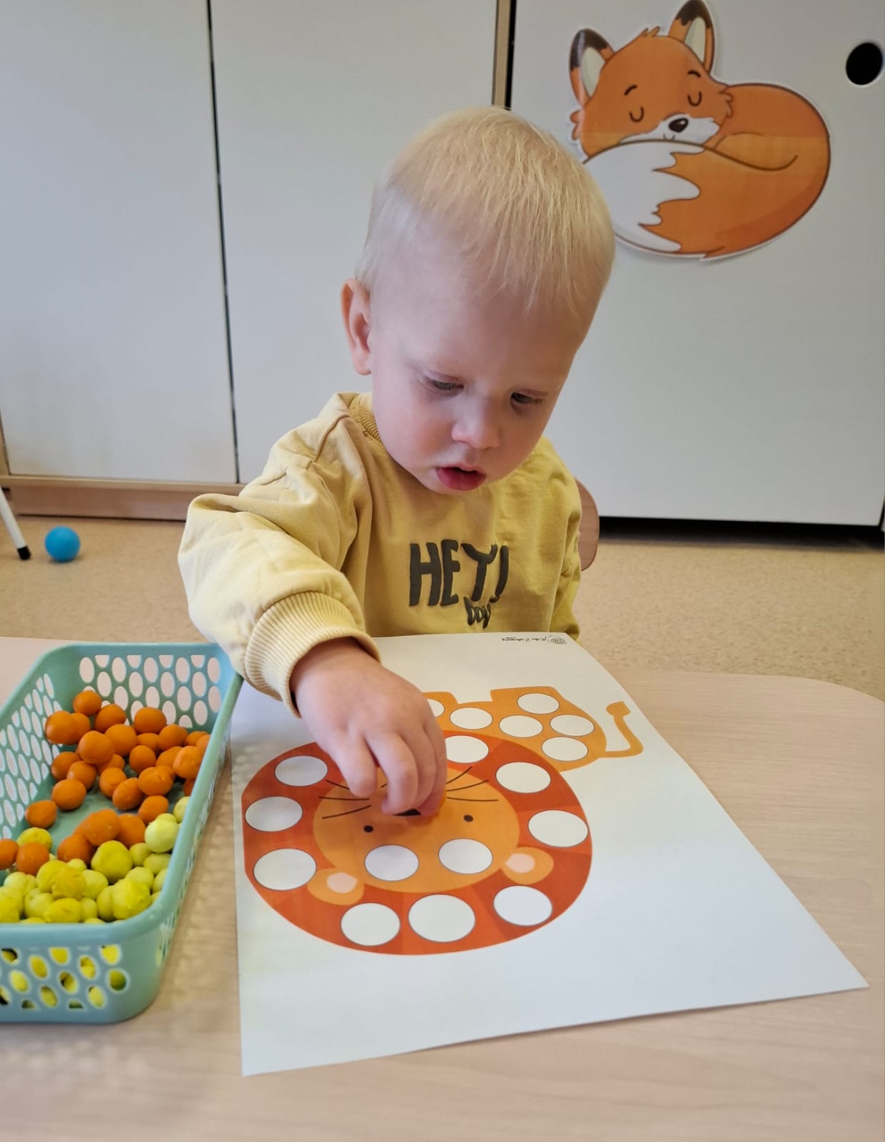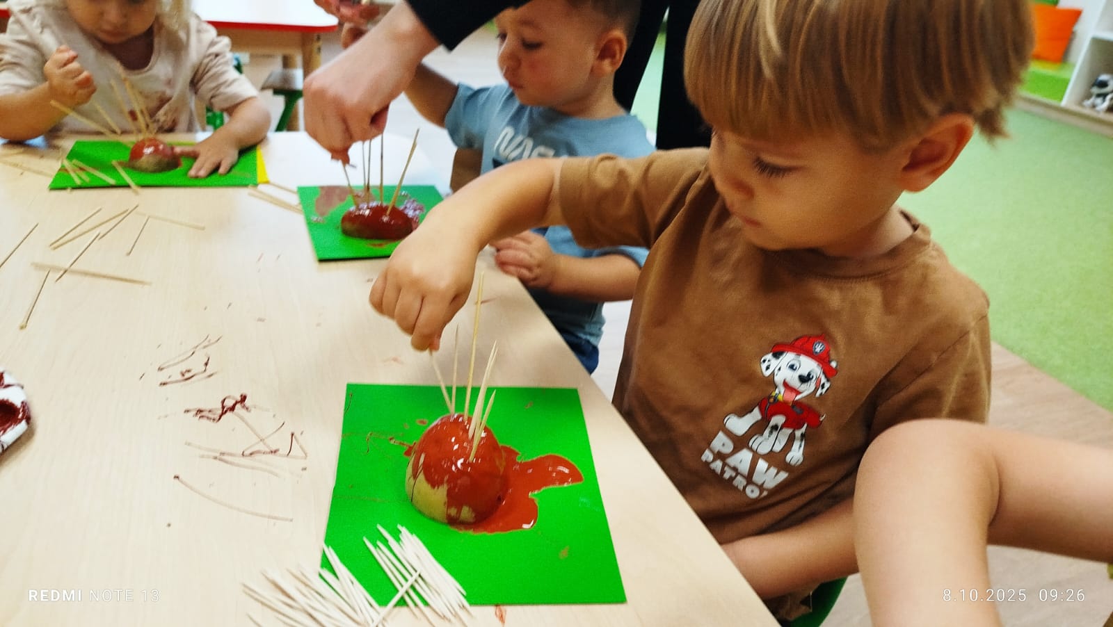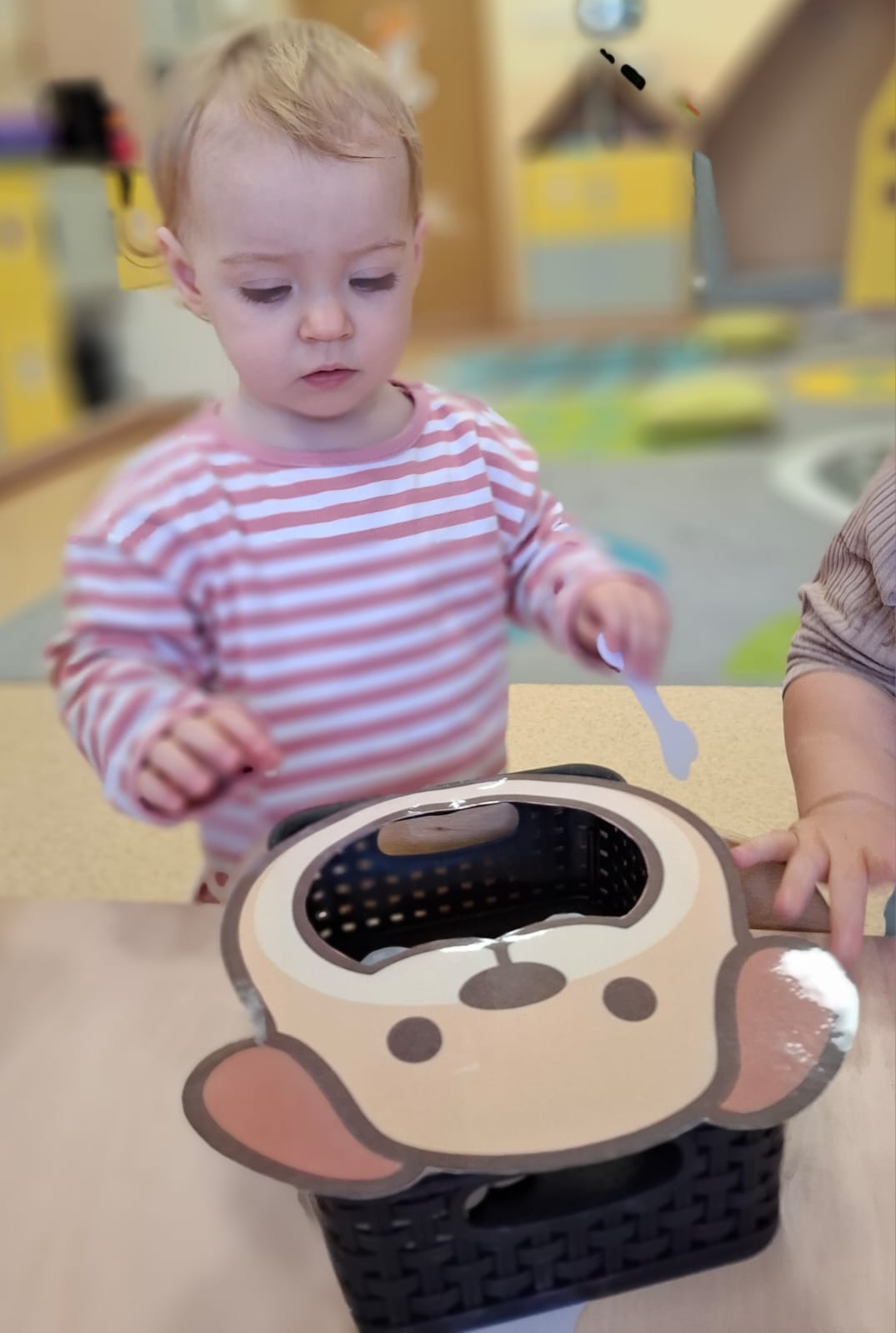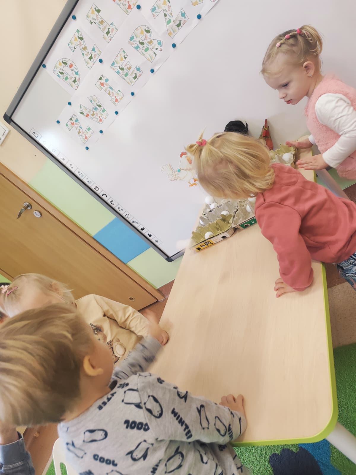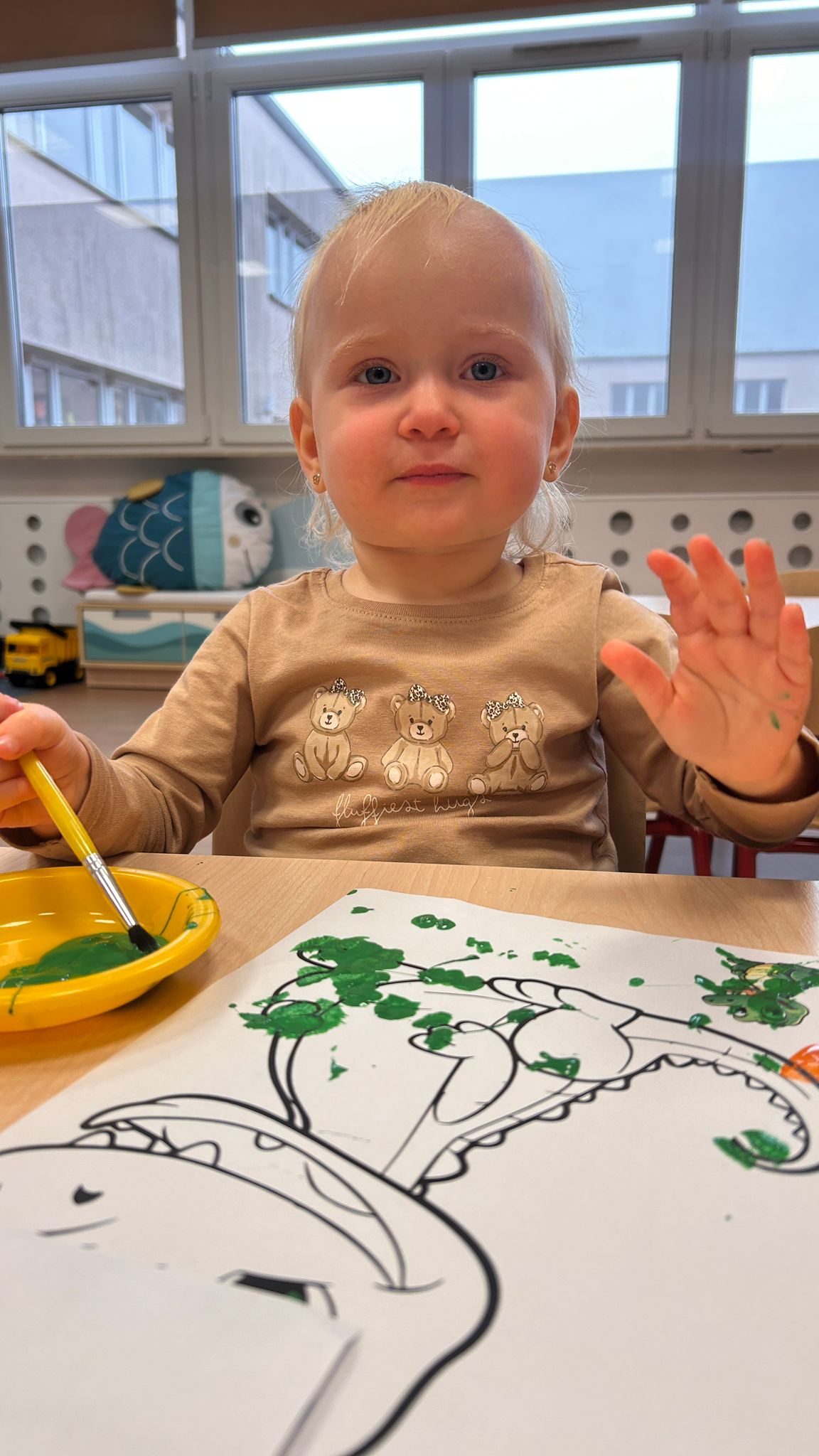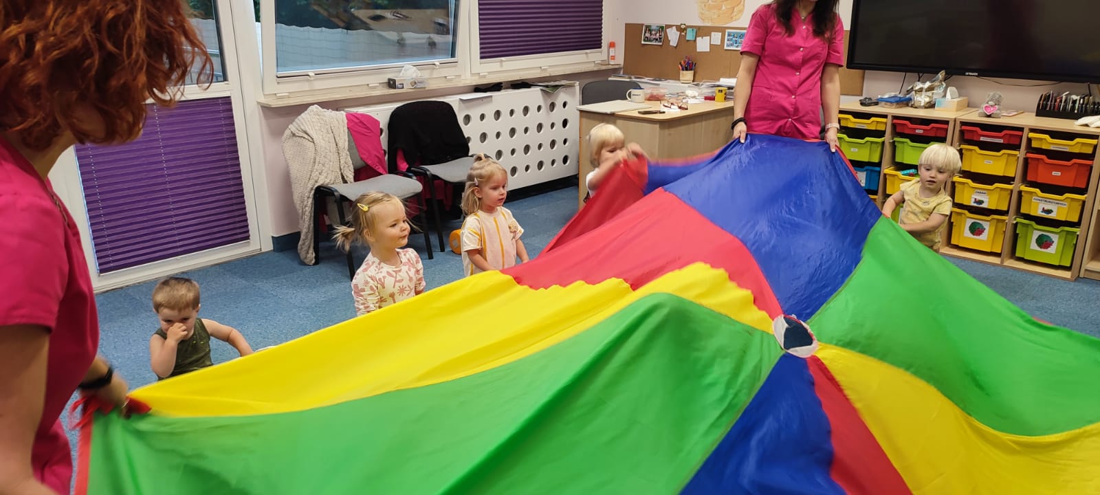 Największą atrakcją dnia był prawdziwy piesek, który odwiedził nasz żłobek! Dzieci były zachwycone jego obecnością. Piesek był bardzo grzeczny, pozwalał się głaskać i chętnie bawił się z maluchami.