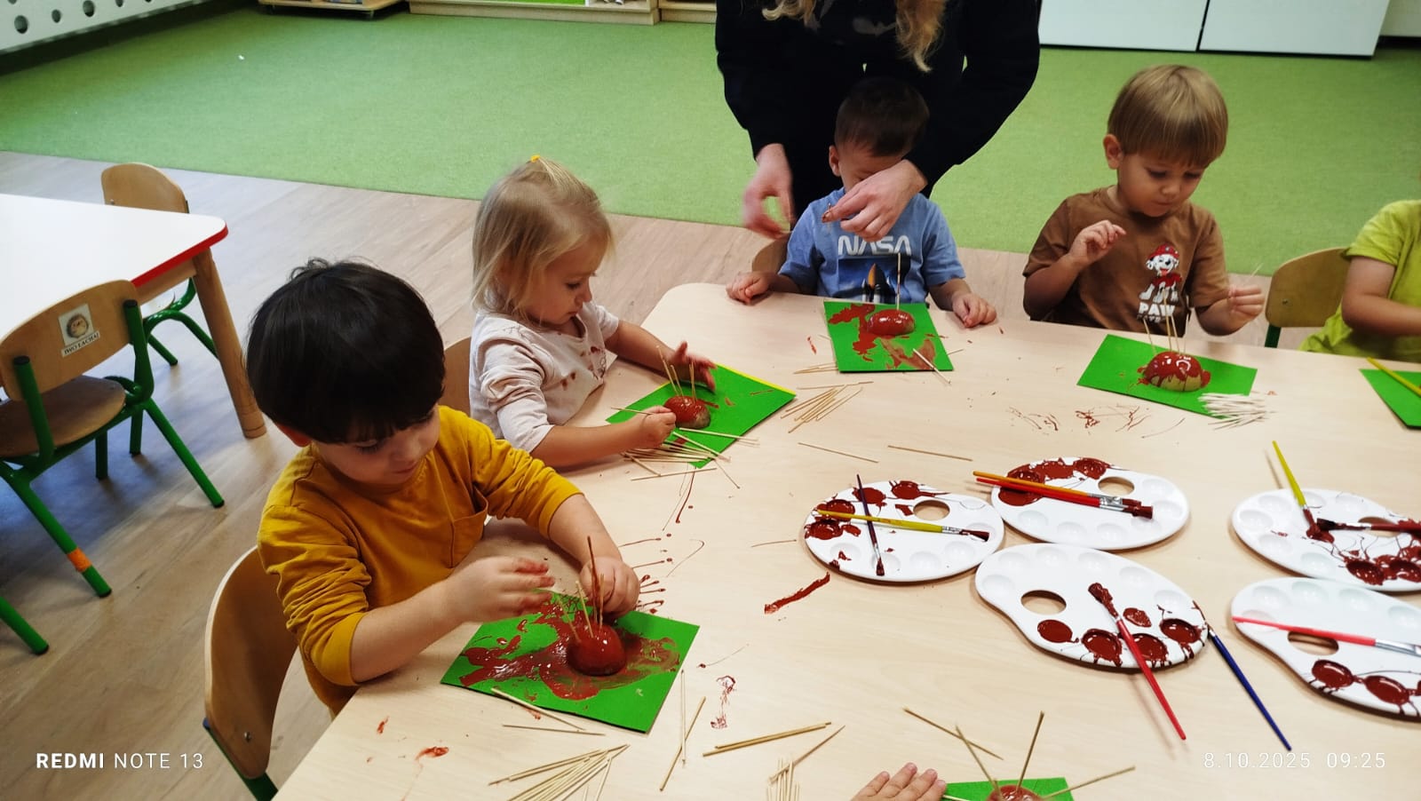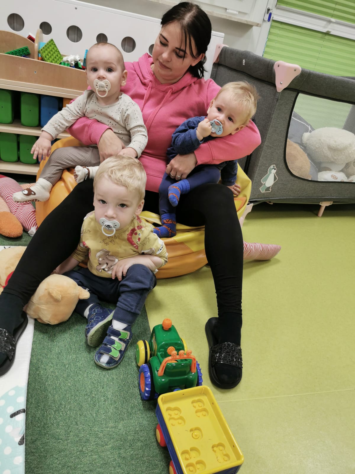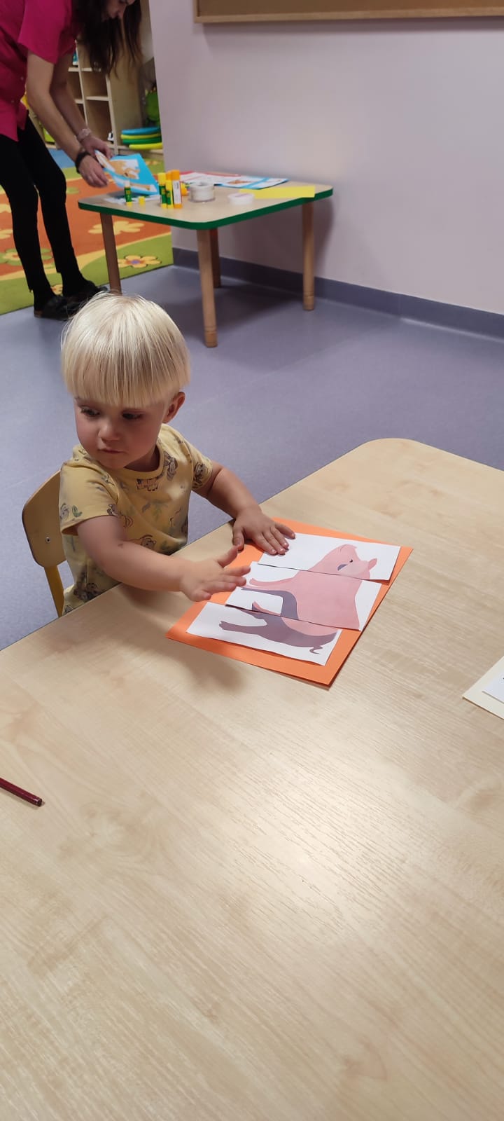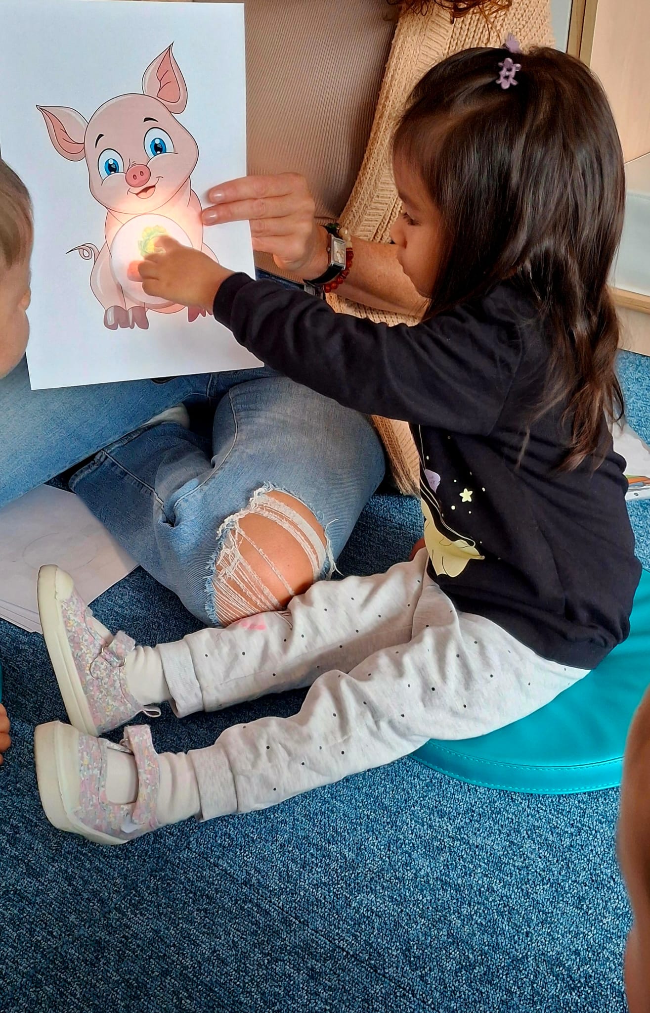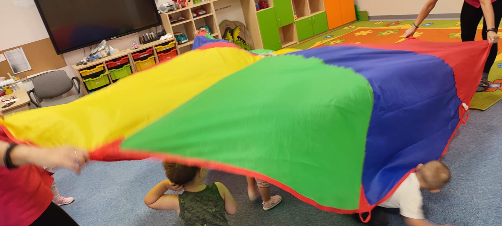 Największą atrakcją dnia był prawdziwy piesek, który odwiedził nasz żłobek! Dzieci były zachwycone jego obecnością. Piesek był bardzo grzeczny, pozwalał się głaskać i chętnie bawił się z maluchami.