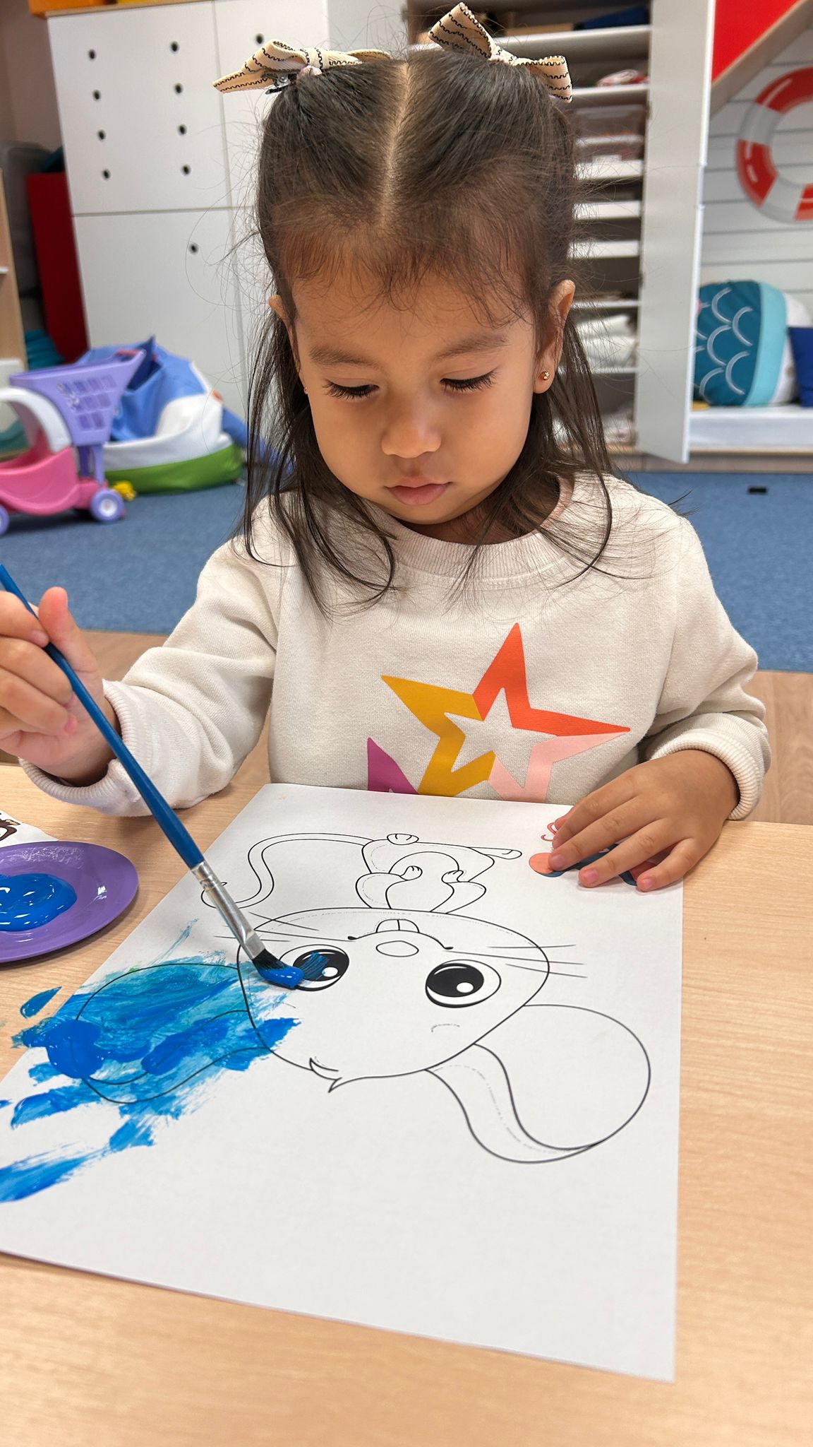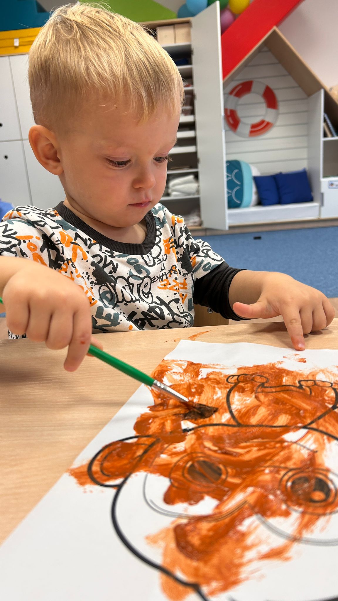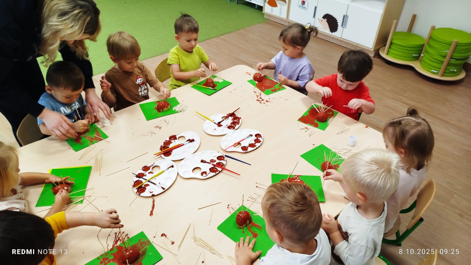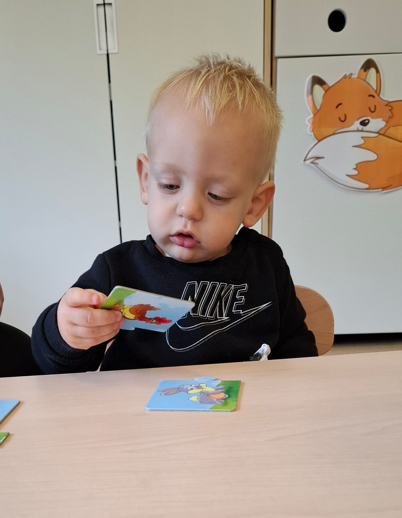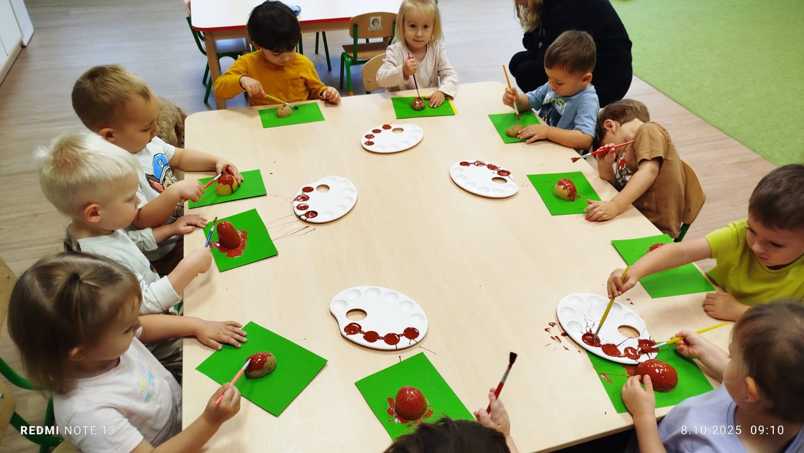 Największą atrakcją dnia był prawdziwy piesek, który odwiedził nasz żłobek! Dzieci były zachwycone jego obecnością. Piesek był bardzo grzeczny, pozwalał się głaskać i chętnie bawił się z maluchami.