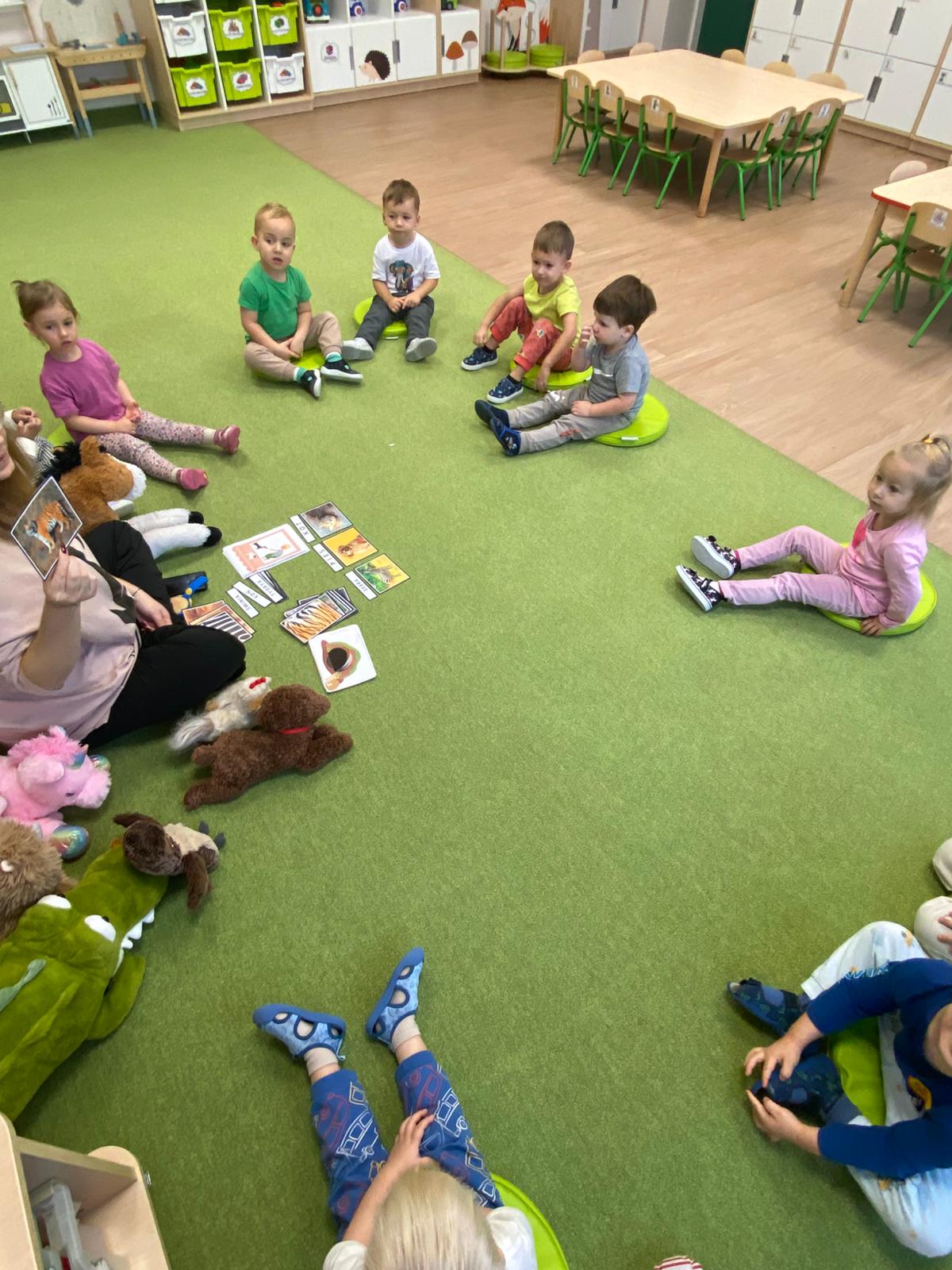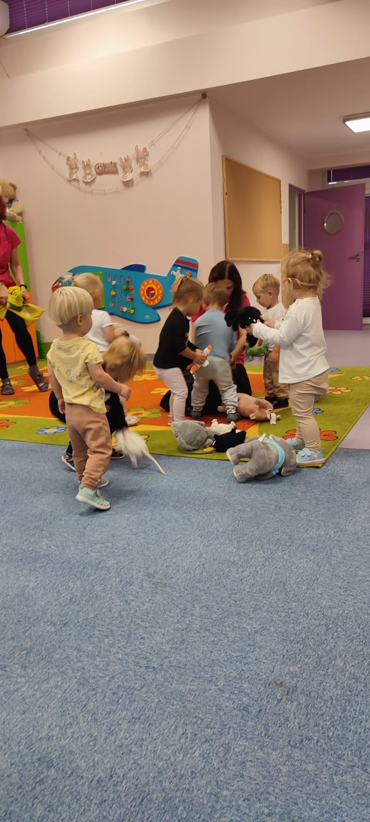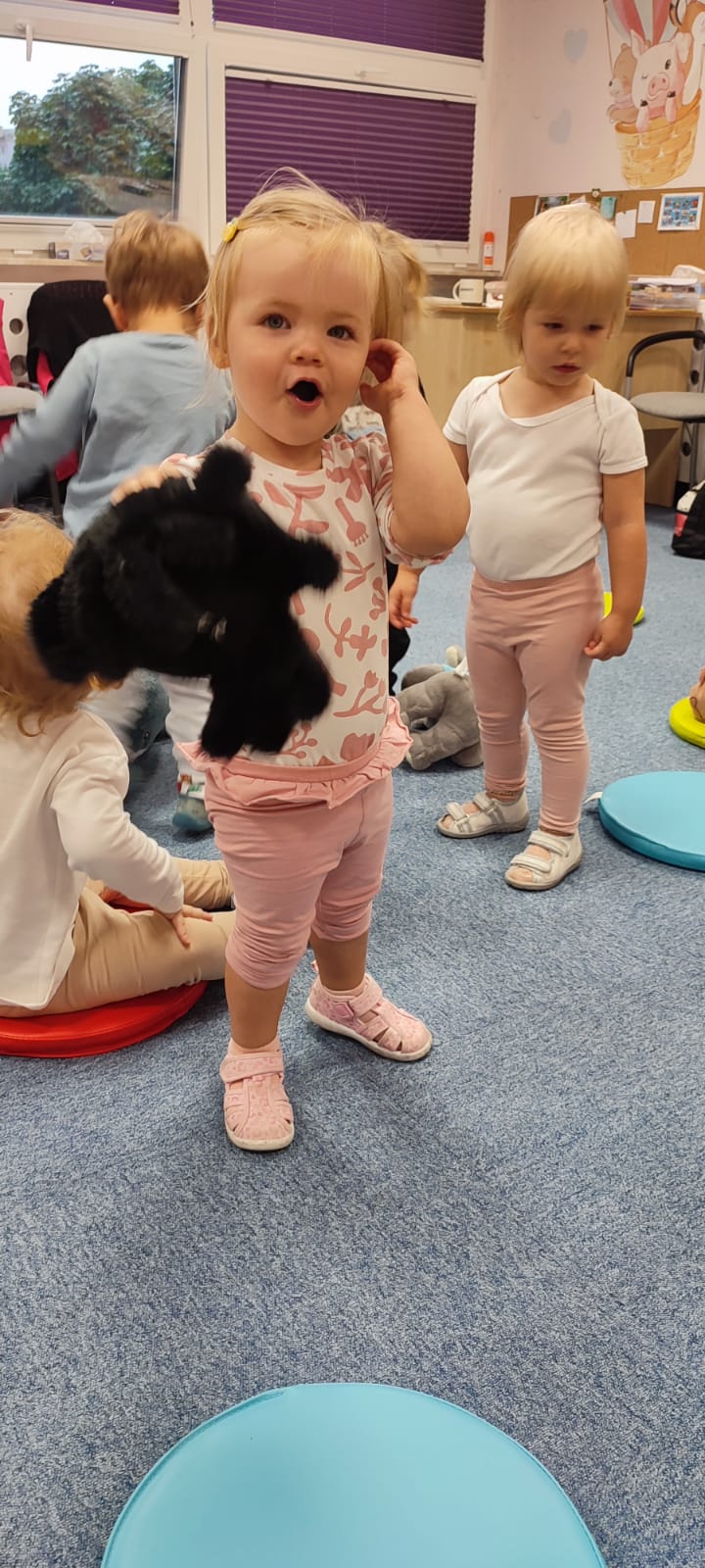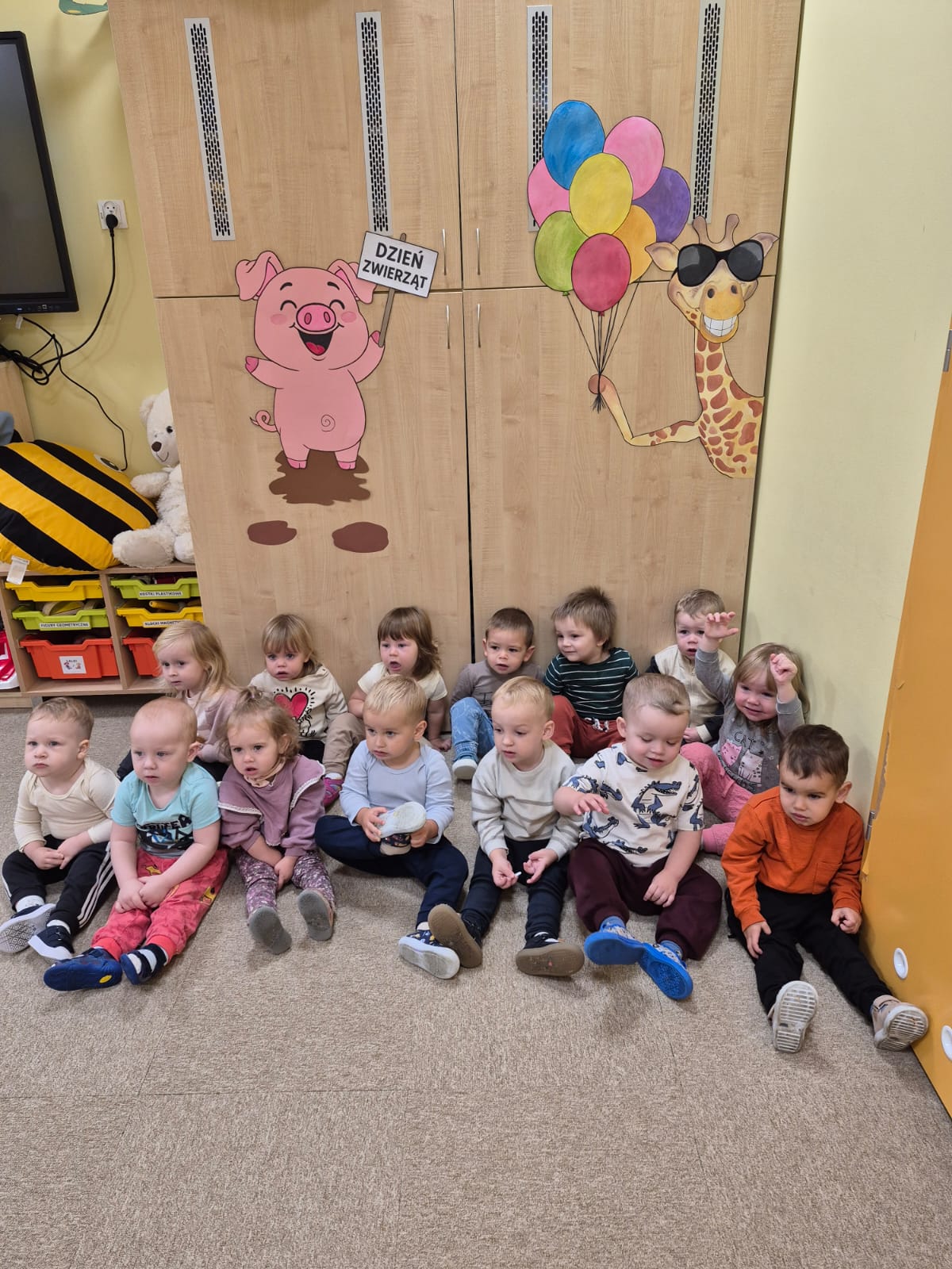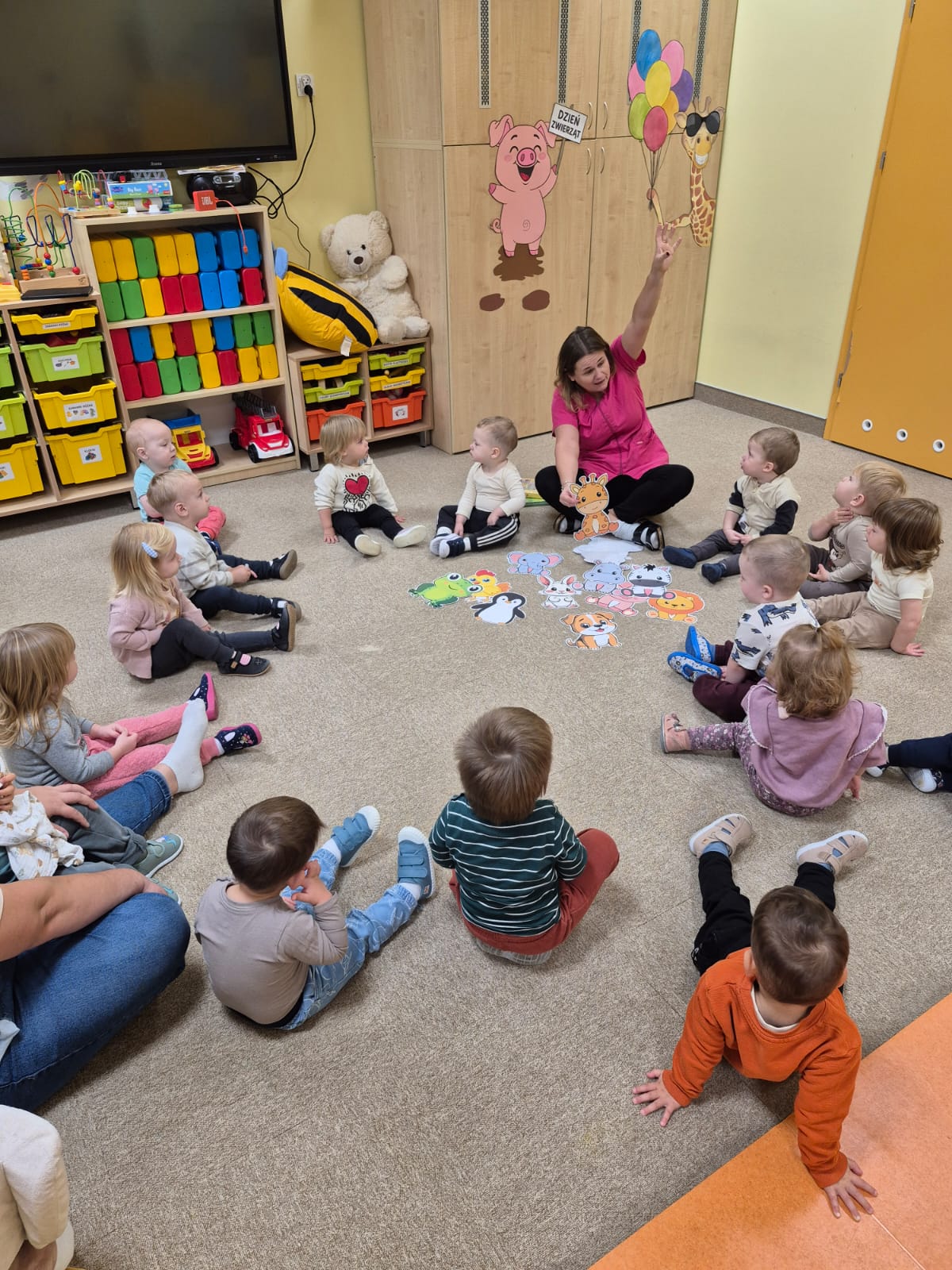 W naszym żłobku obchodziliśmy Dzień Zwierząt – wesołe i pełne emocji święto wszystkich zwierzątek, które tak bardzo kochają dzieci. Od rana w salach pojawiły się kolorowe obrazki i maskotki przedstawiające kotki, pieski, króliczki i inne zwierzaki.