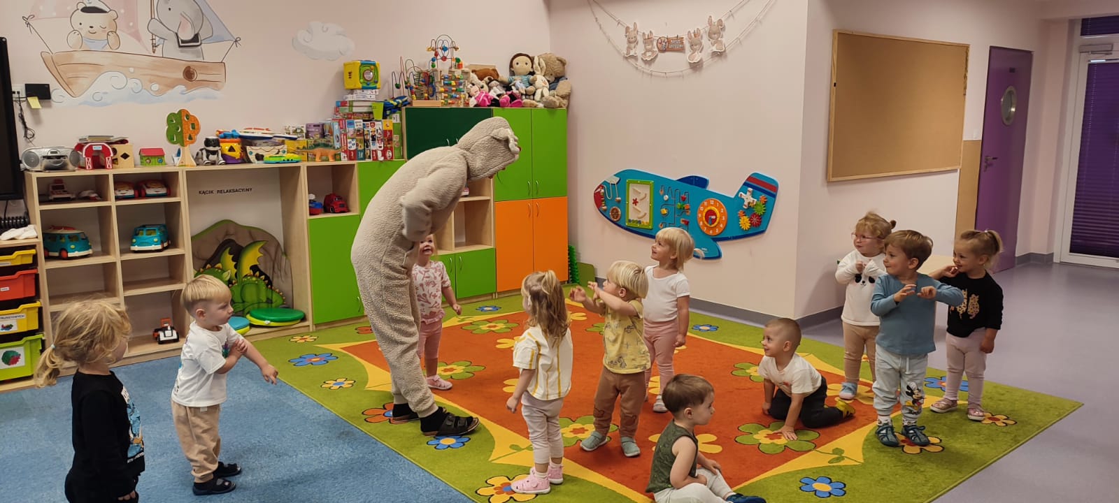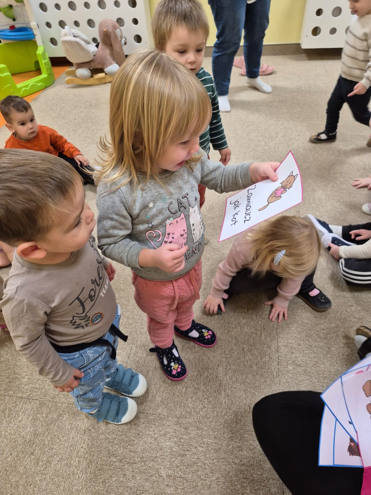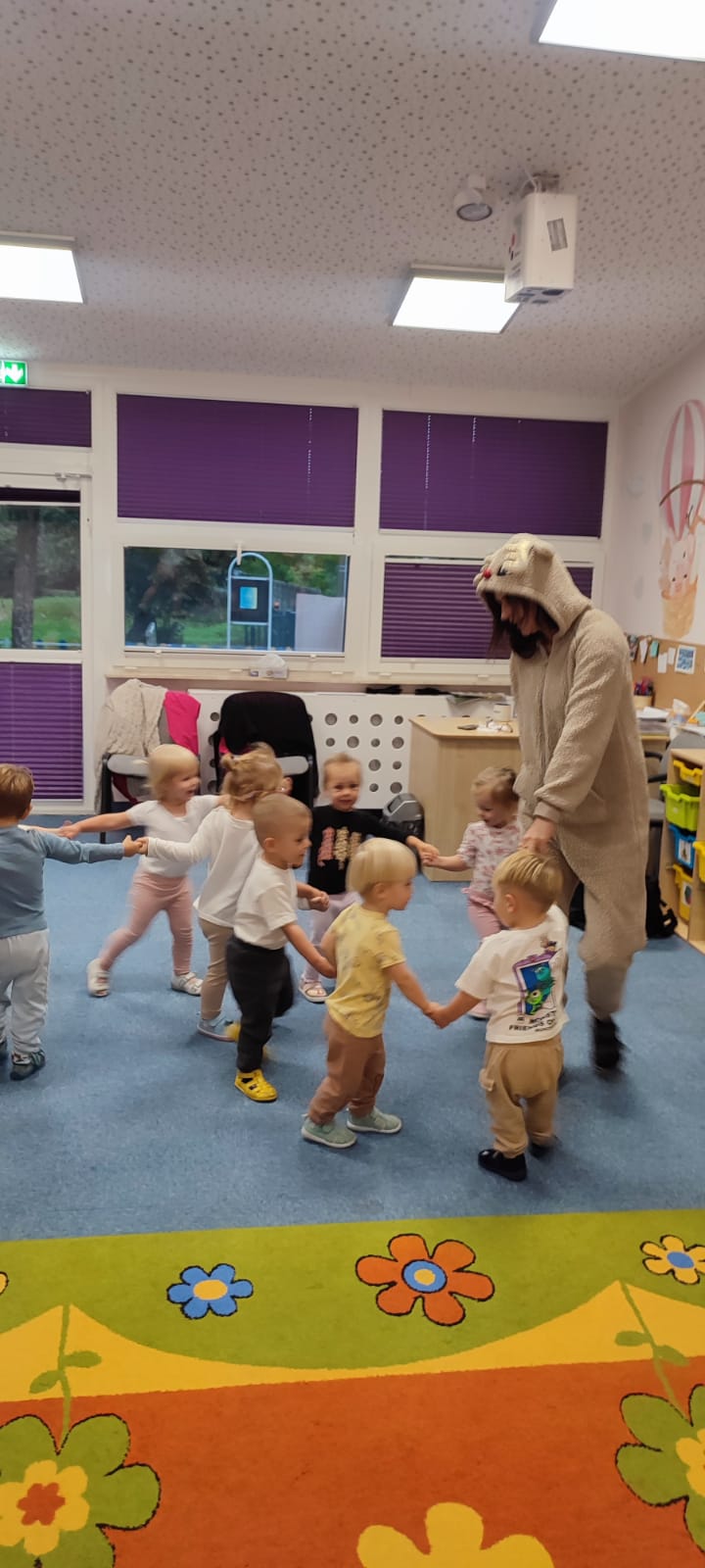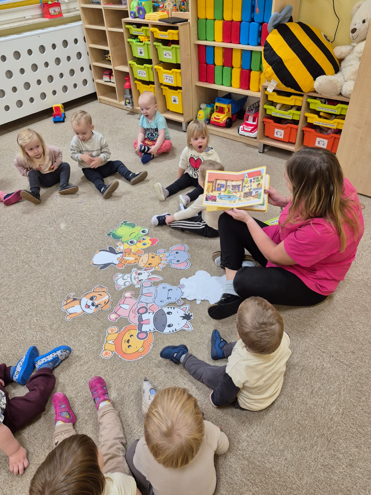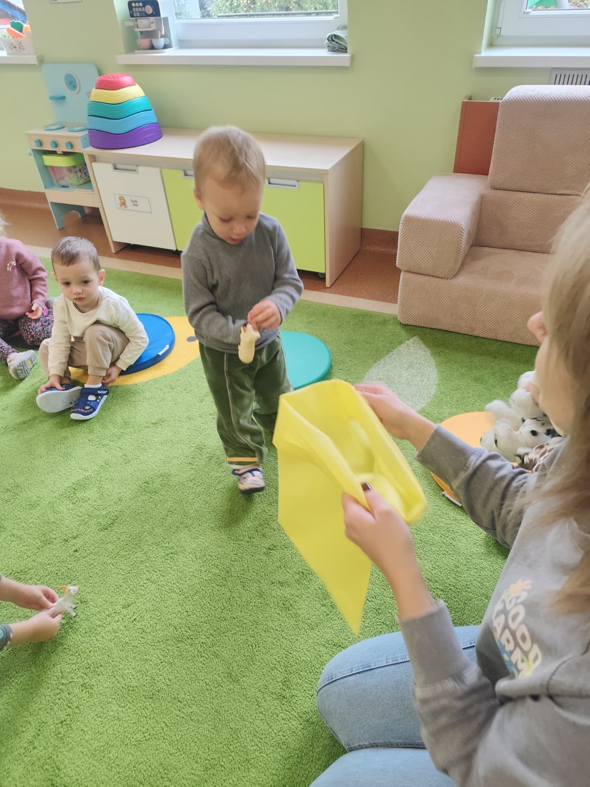 W naszym żłobku obchodziliśmy Dzień Zwierząt – wesołe i pełne emocji święto wszystkich zwierzątek, które tak bardzo kochają dzieci. Od rana w salach pojawiły się kolorowe obrazki i maskotki przedstawiające kotki, pieski, króliczki i inne zwierzaki.