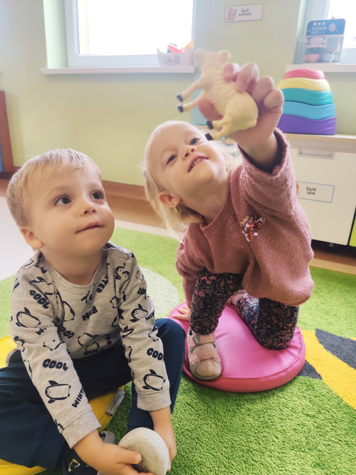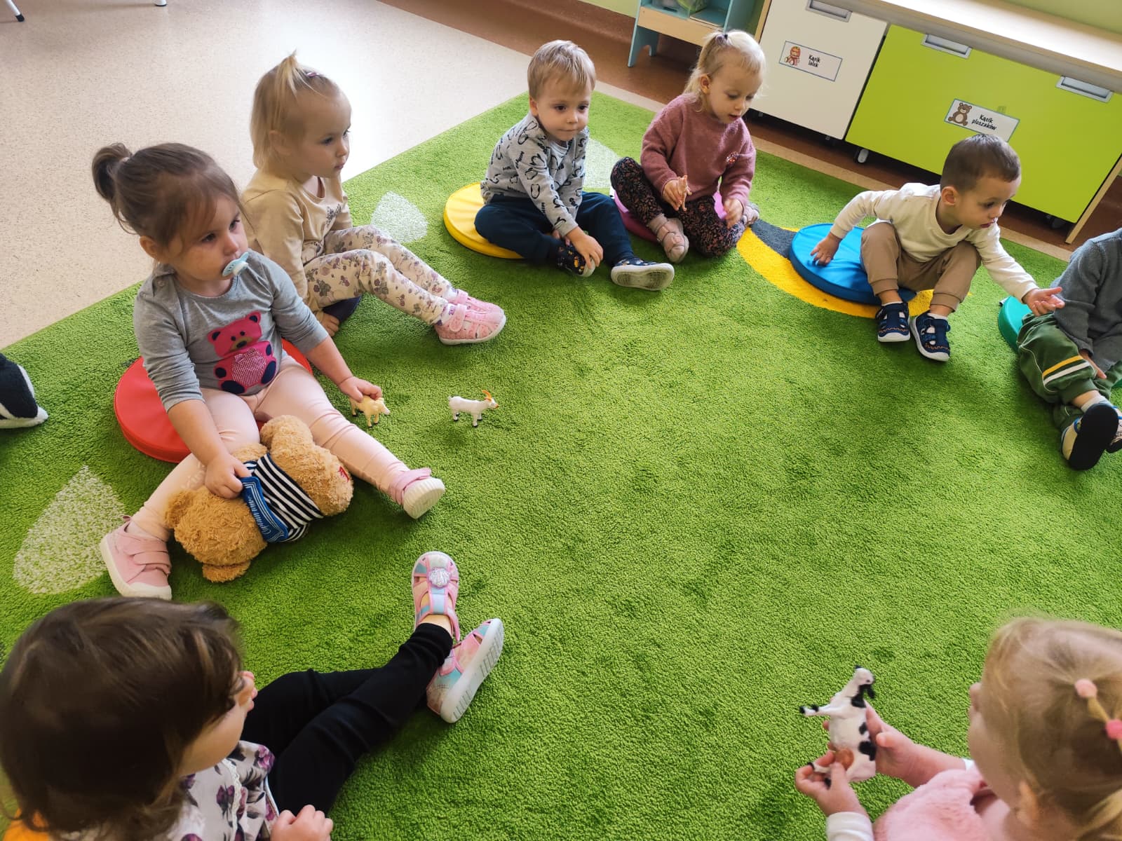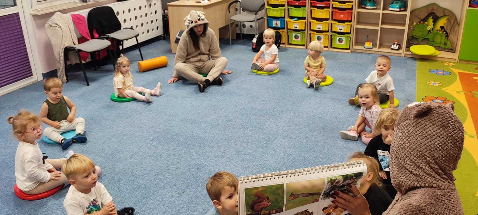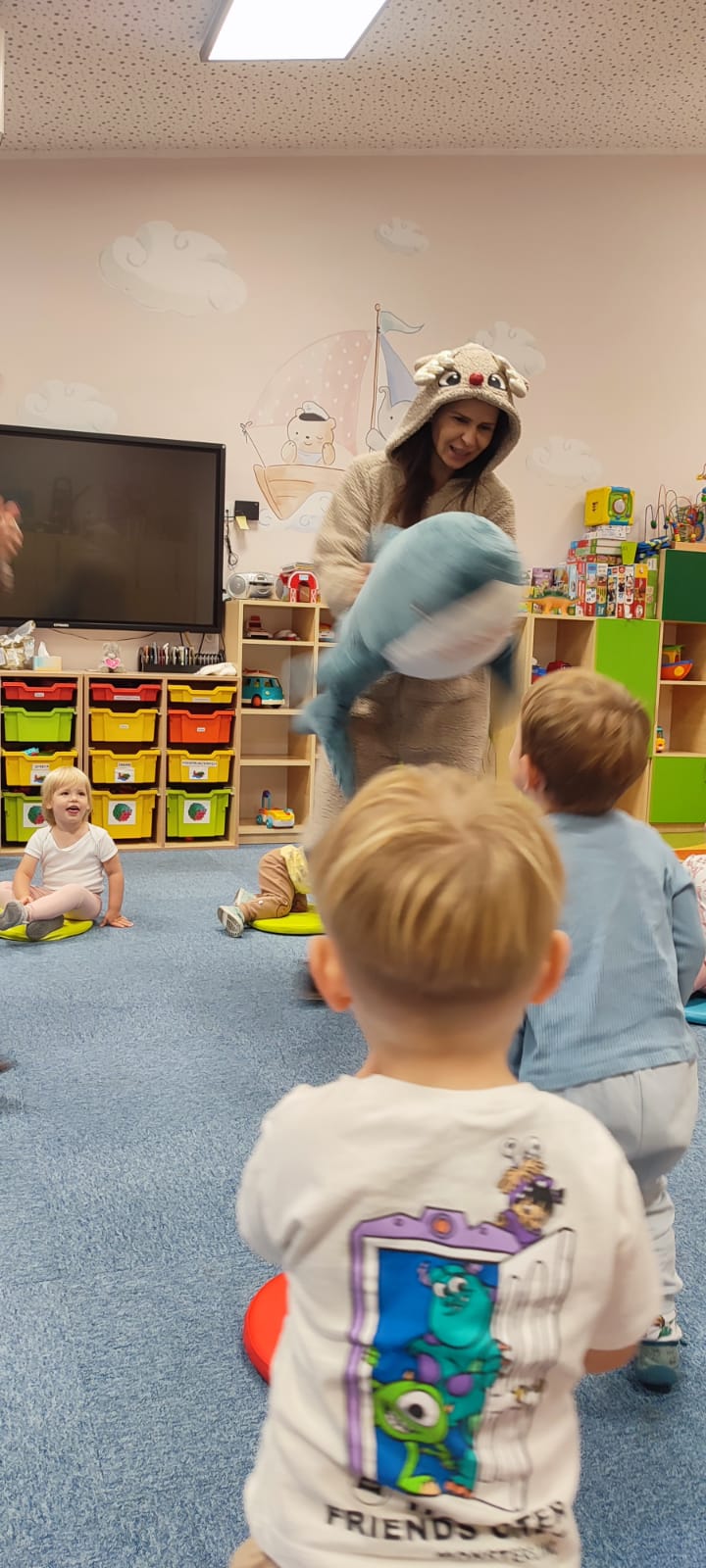 W naszym żłobku obchodziliśmy Dzień Zwierząt – wesołe i pełne emocji święto wszystkich zwierzątek, które tak bardzo kochają dzieci. Od rana w salach pojawiły się kolorowe obrazki i maskotki przedstawiające kotki, pieski, króliczki i inne zwierzaki.