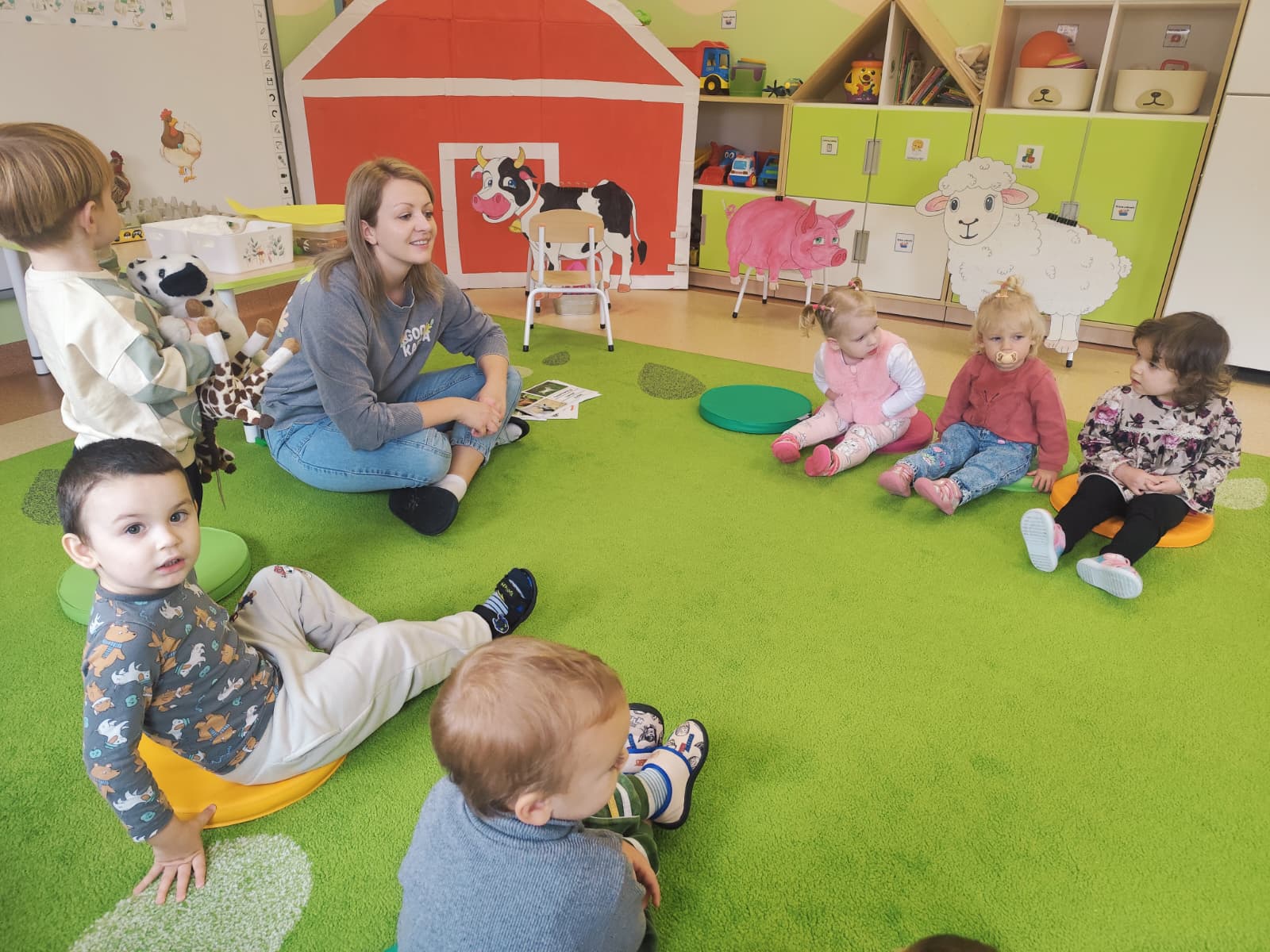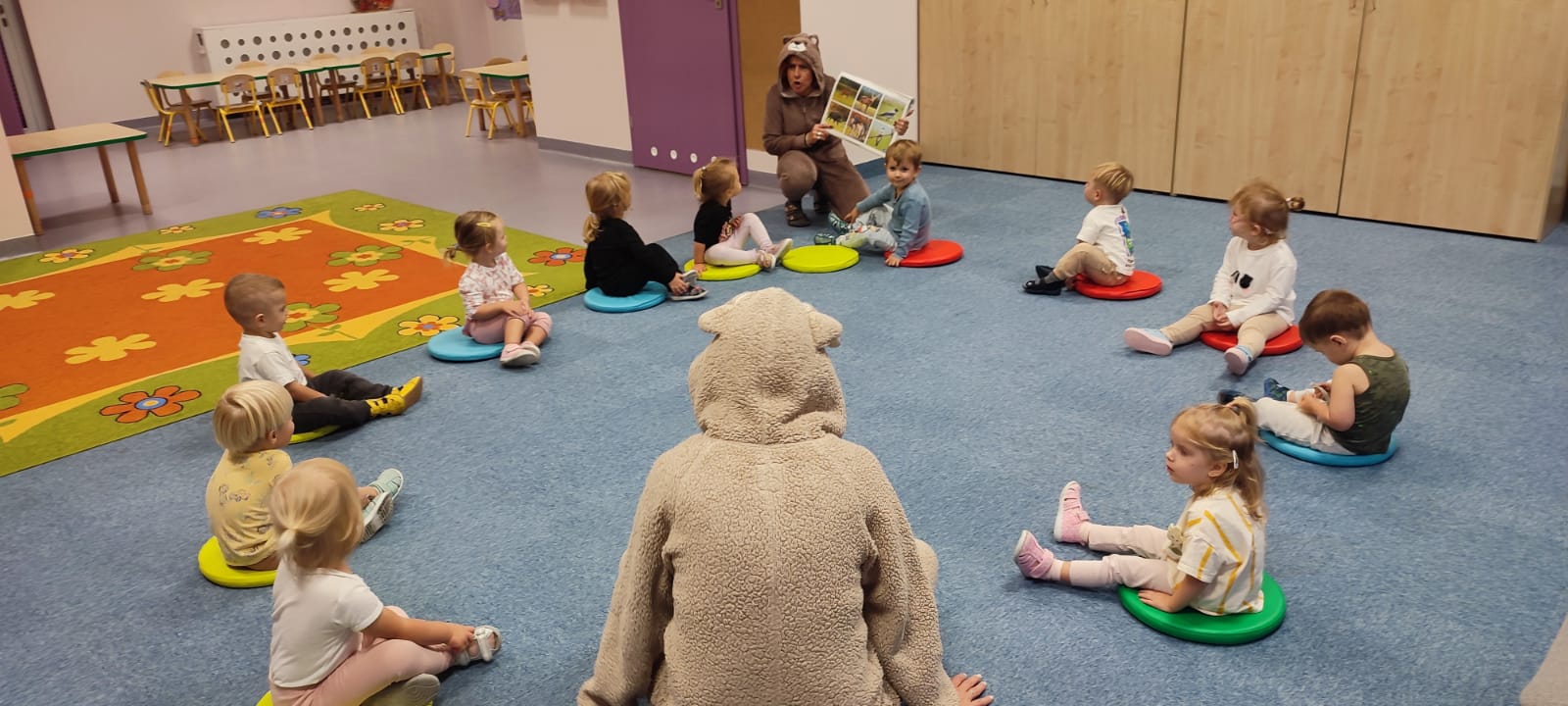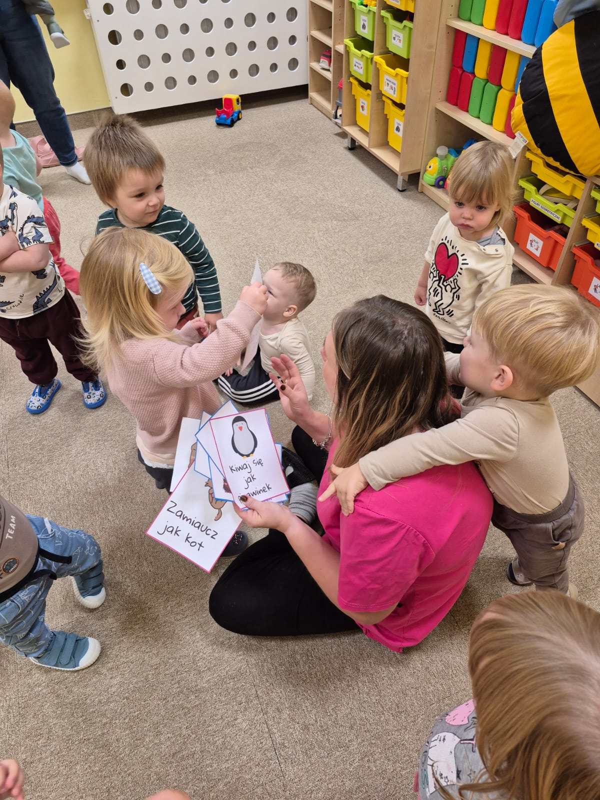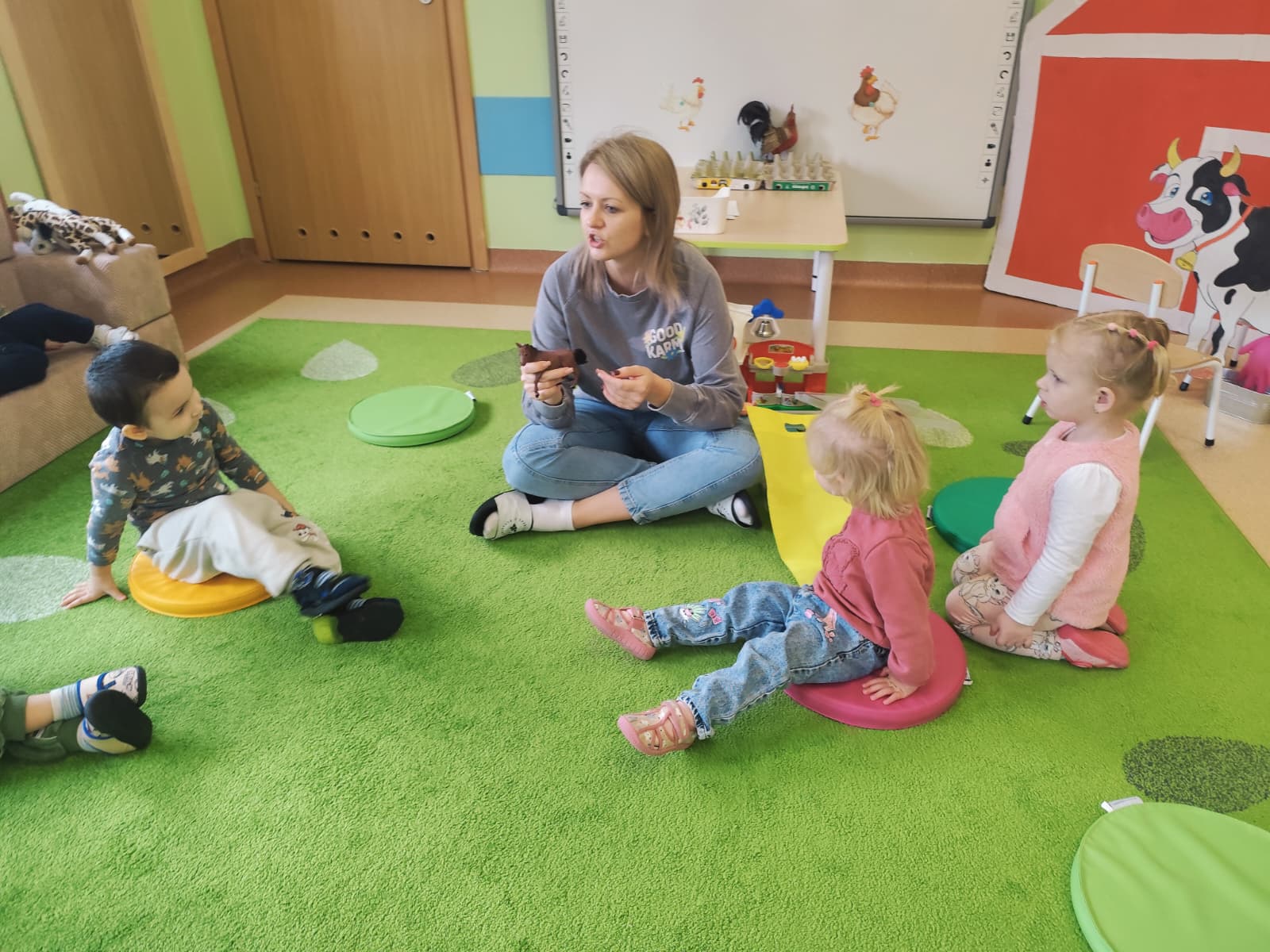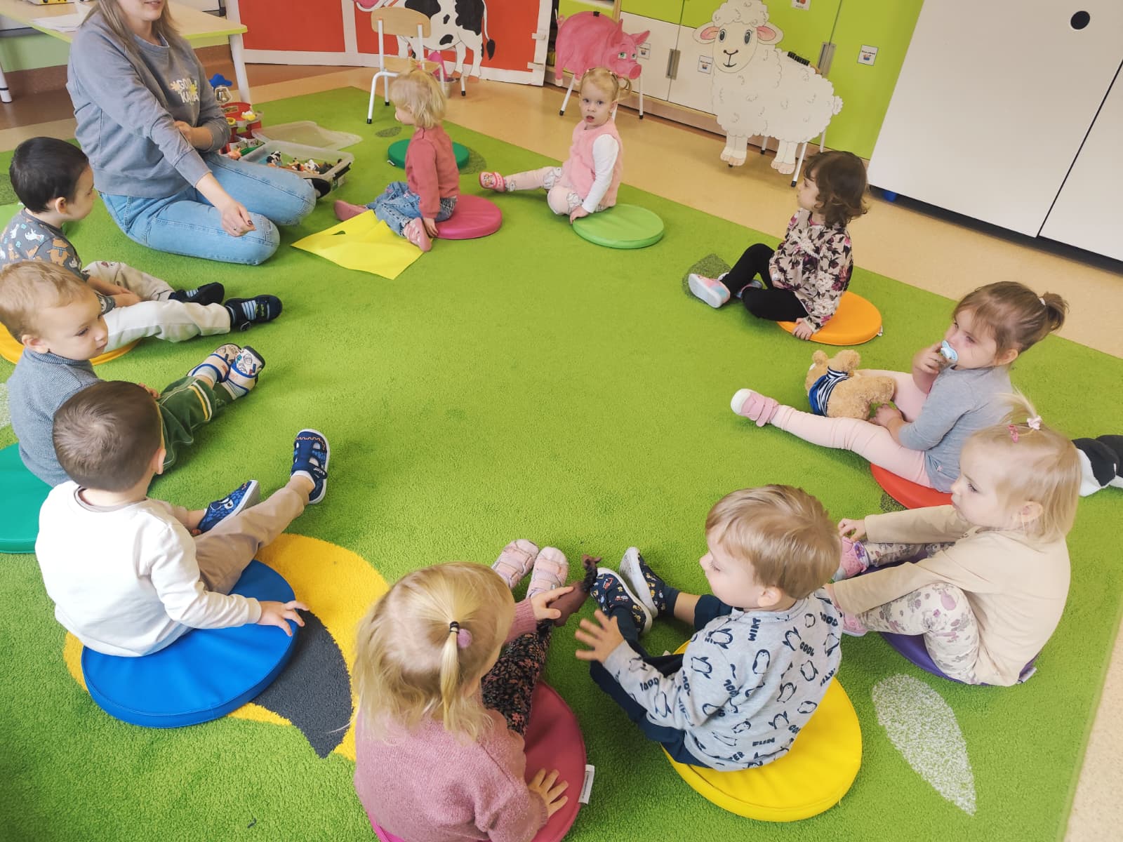 W naszym żłobku obchodziliśmy Dzień Zwierząt – wesołe i pełne emocji święto wszystkich zwierzątek, które tak bardzo kochają dzieci. Od rana w salach pojawiły się kolorowe obrazki i maskotki przedstawiające kotki, pieski, króliczki i inne zwierzaki.