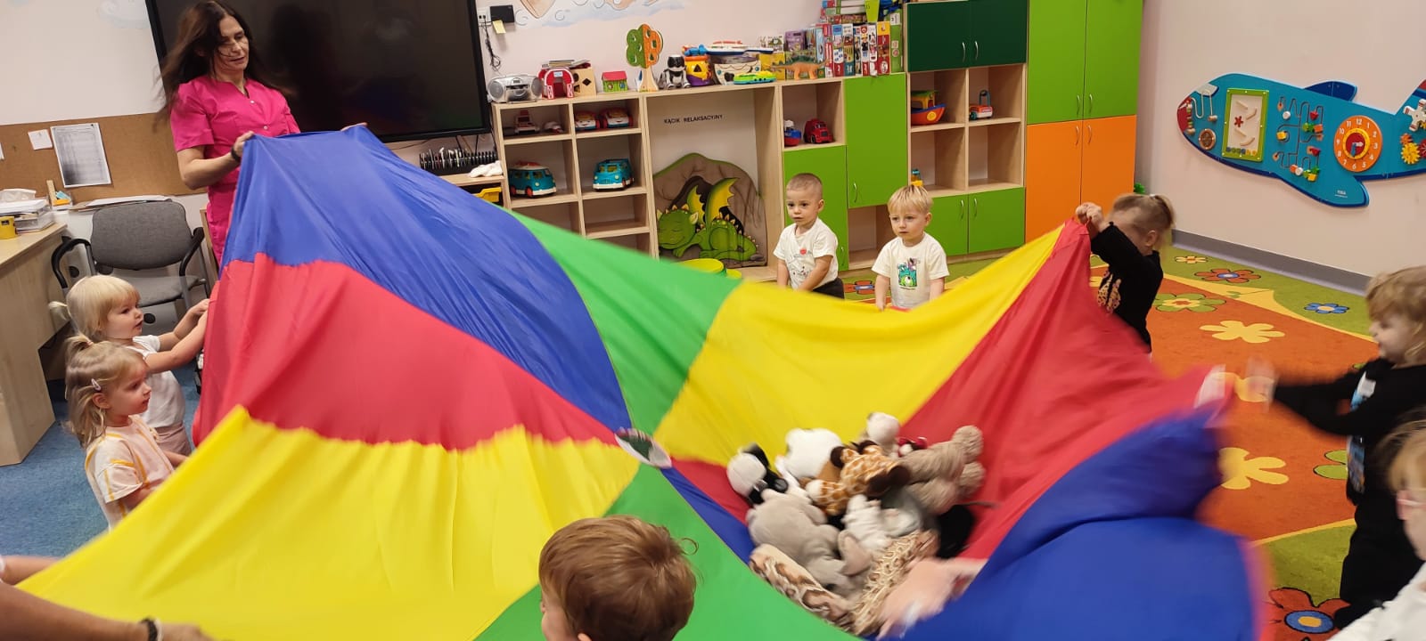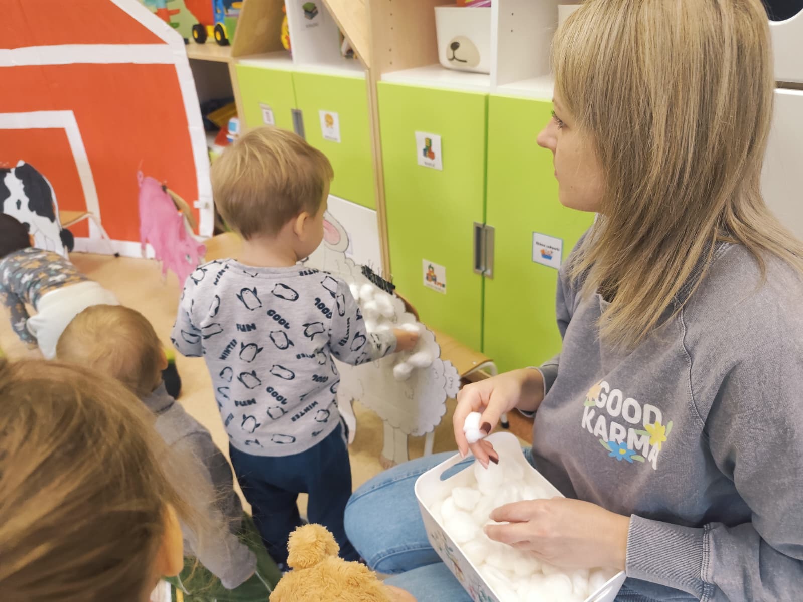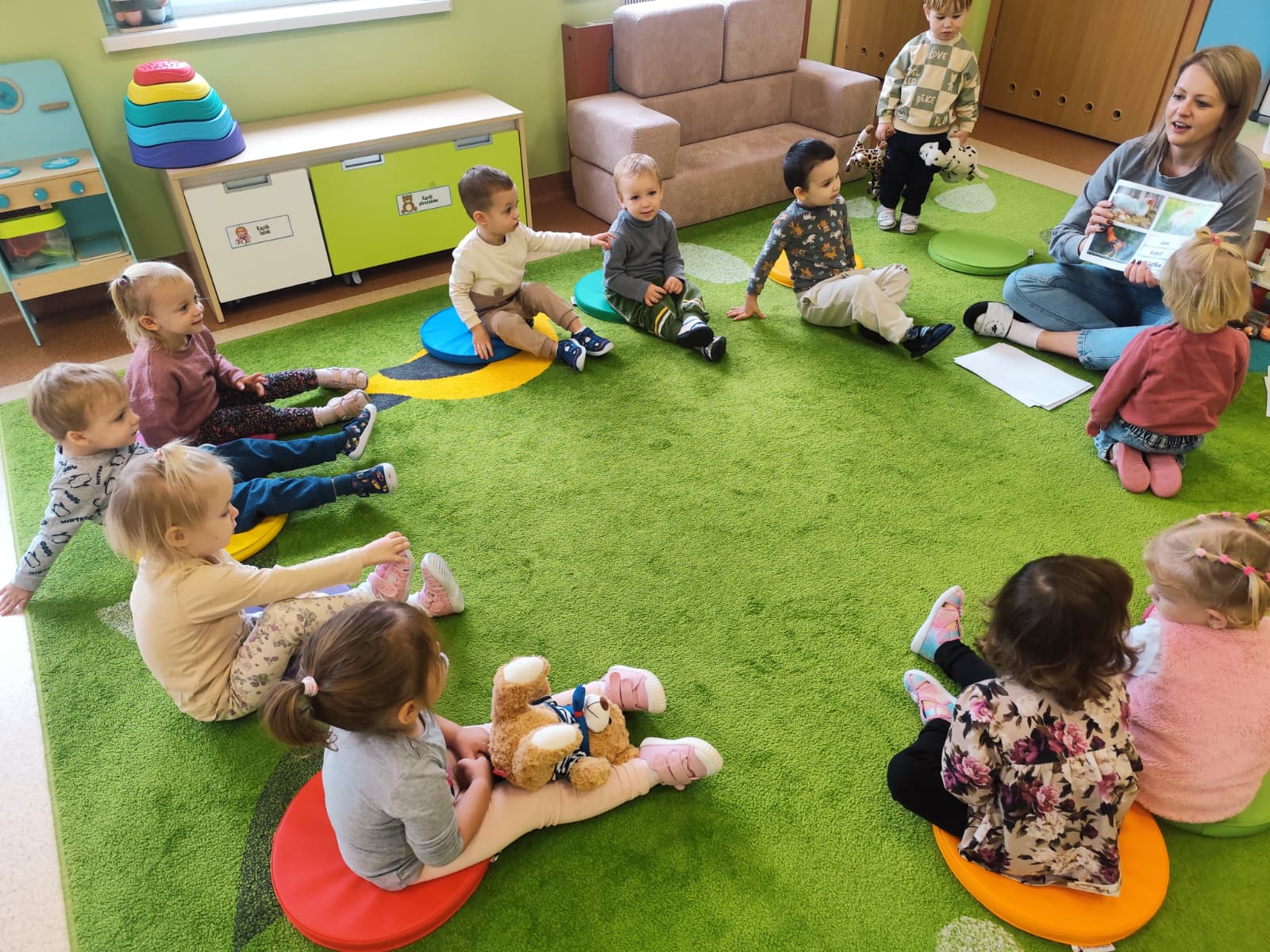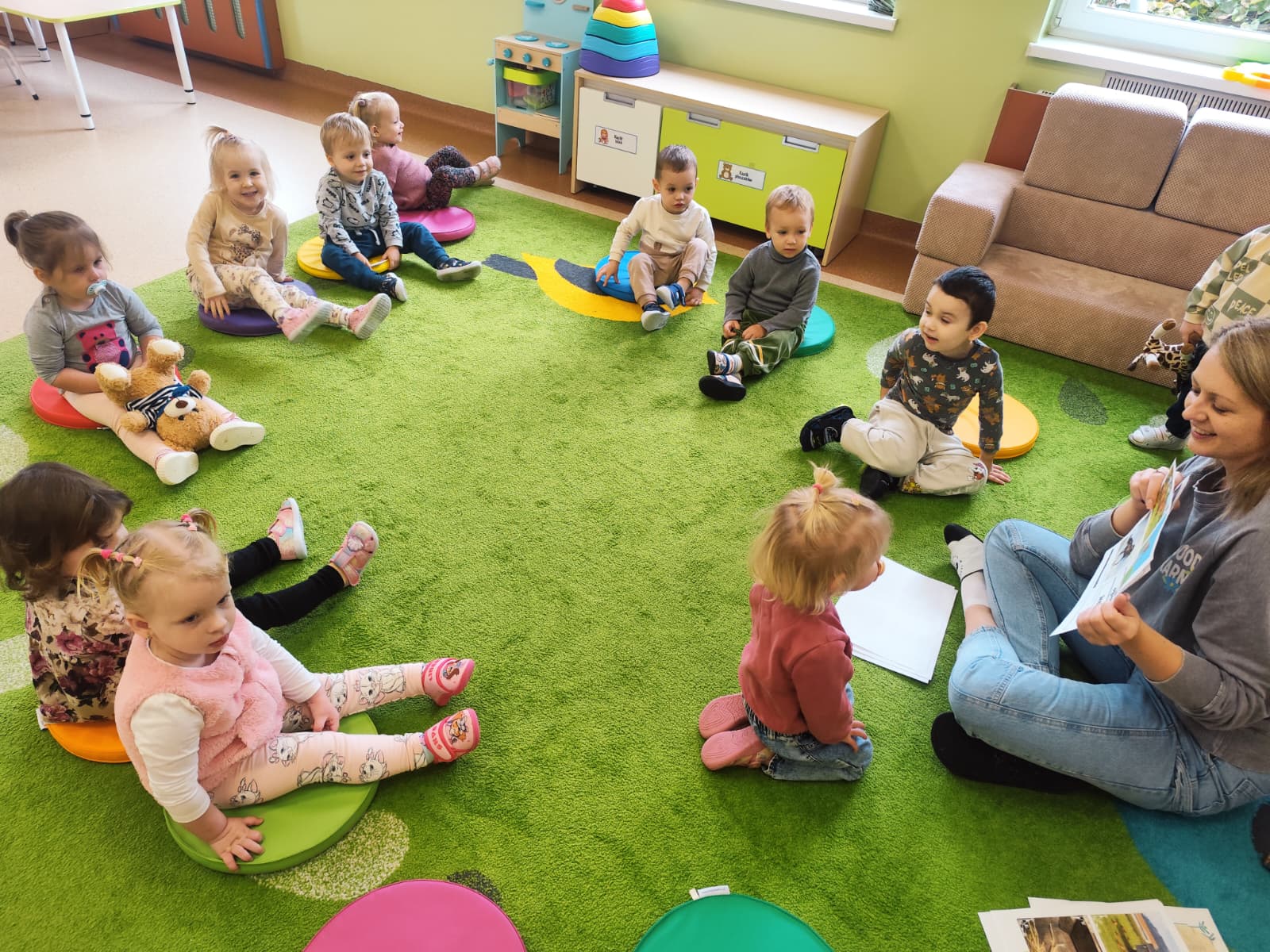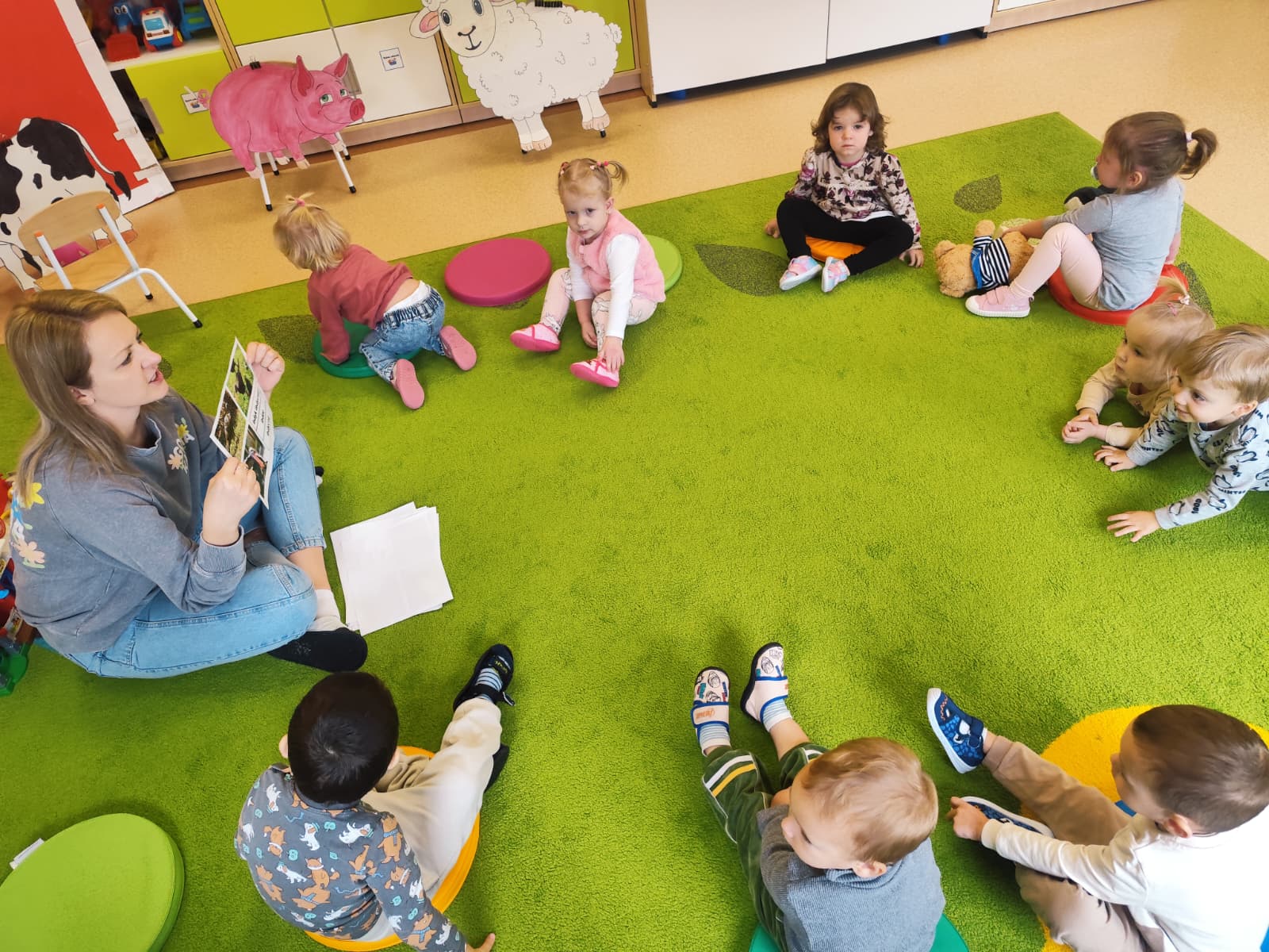 W naszym żłobku obchodziliśmy Dzień Zwierząt – wesołe i pełne emocji święto wszystkich zwierzątek, które tak bardzo kochają dzieci. Od rana w salach pojawiły się kolorowe obrazki i maskotki przedstawiające kotki, pieski, króliczki i inne zwierzaki.