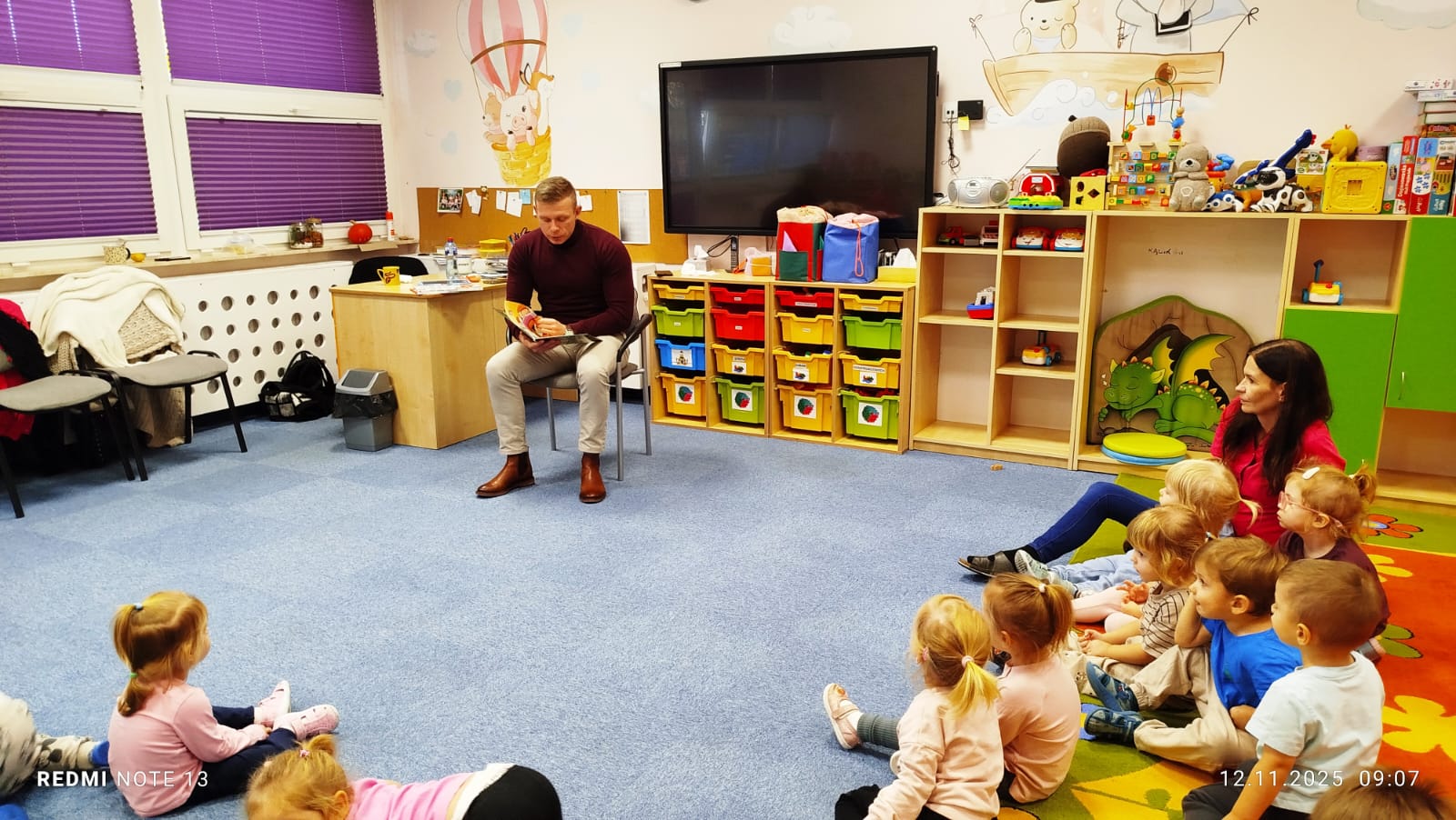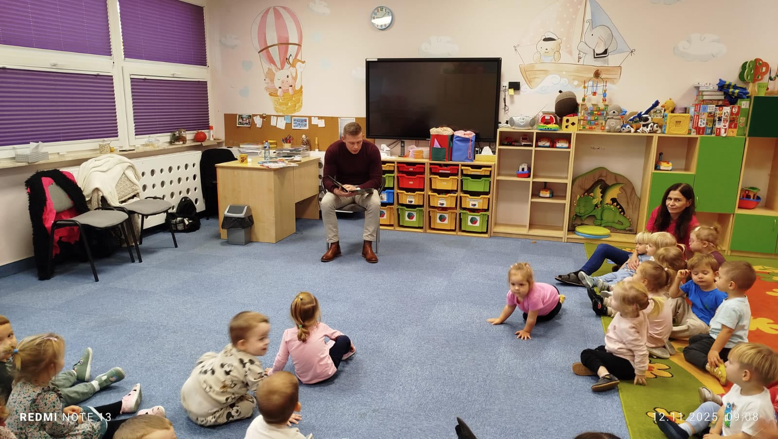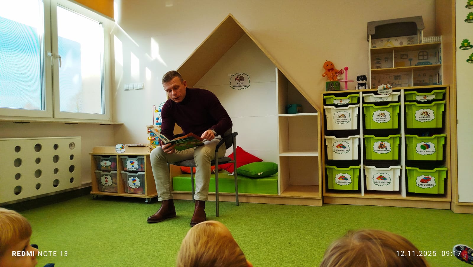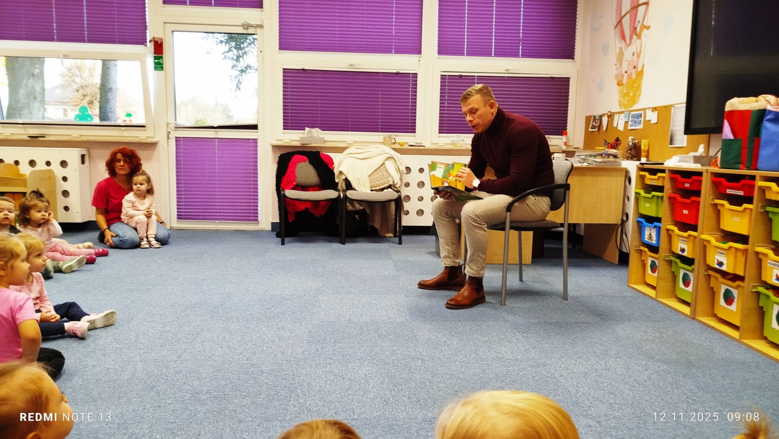 Nasze dzieci po raz kolejny wyruszyły w podróż do Krainy Książek! Podczas spotkania w ramach projektu „Maluszek w krainie książek”, wyjątkowym gościem był Krzysztof Godek - II zastępca Burmistrza Miasta i Gminy Kępno, który z ogromnym zaangażowaniem przeczytał dzieciom bajki pt.: "Jaś i Małgosia" oraz "Czerwony Kapturek".