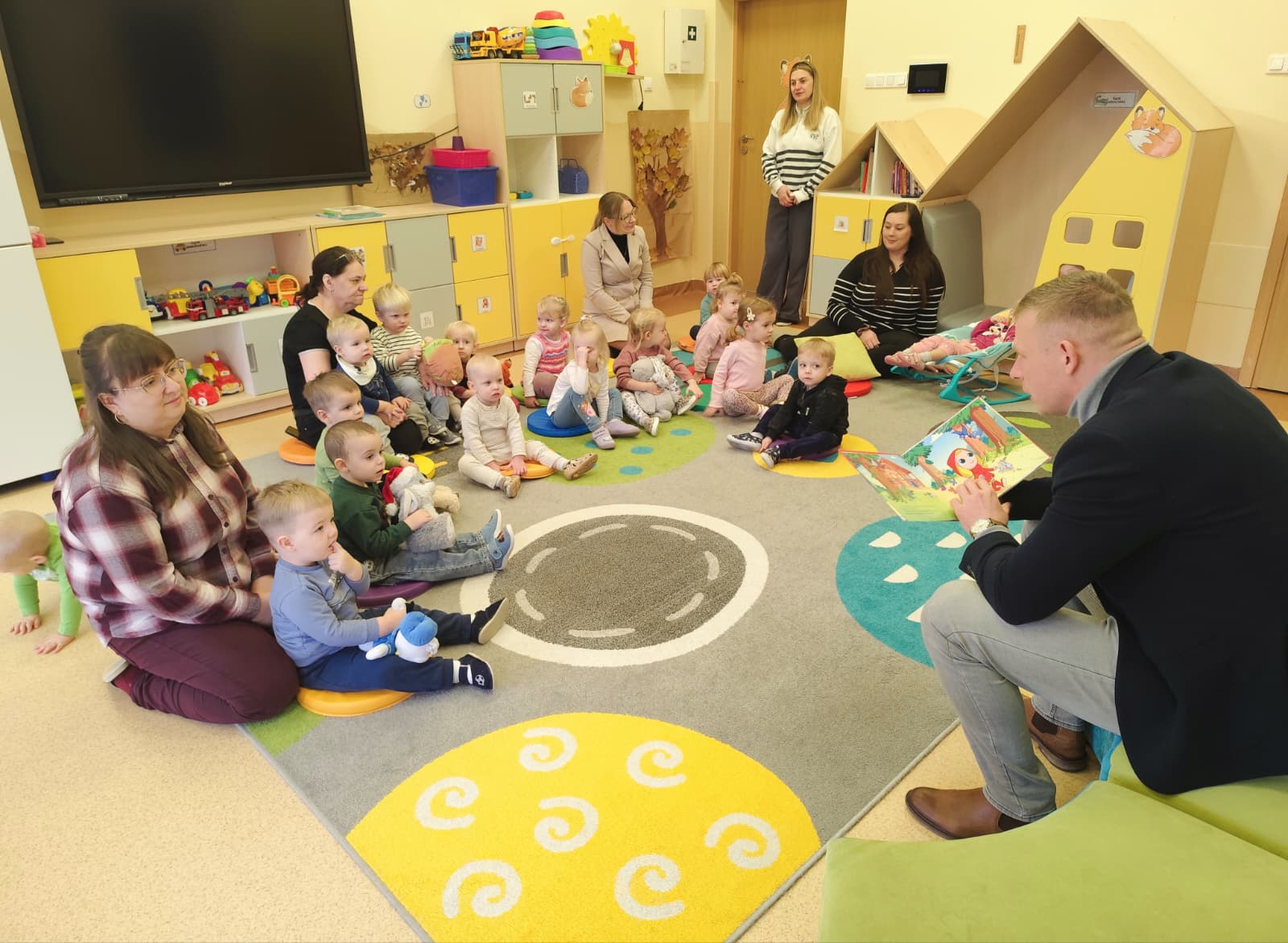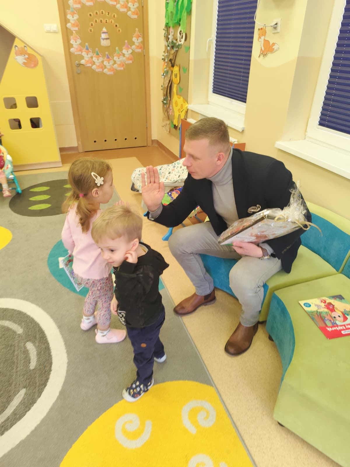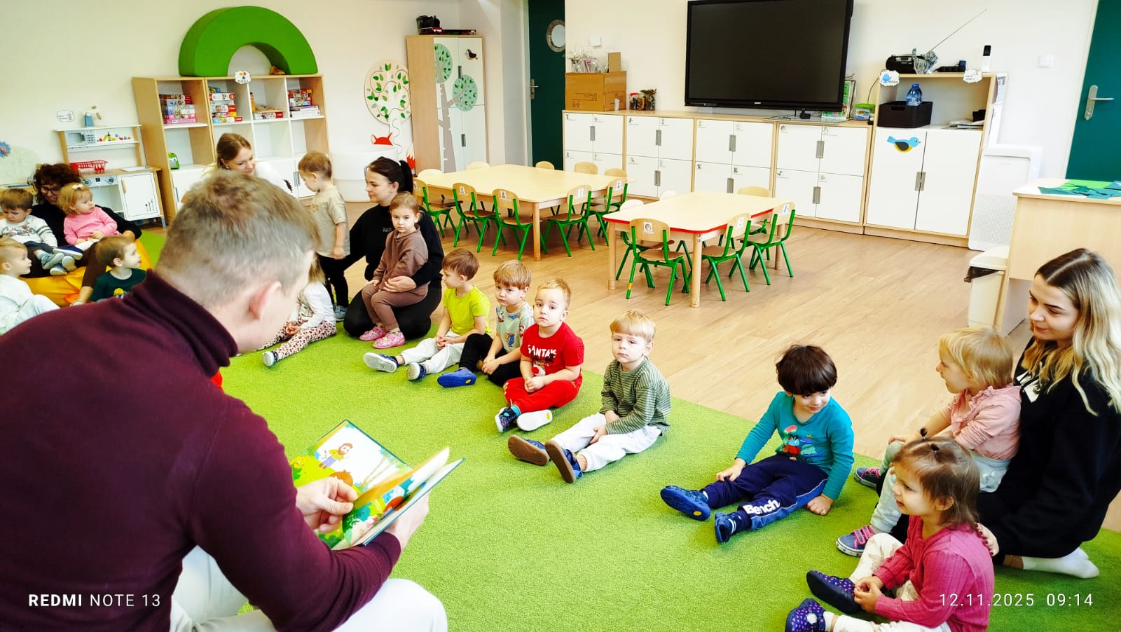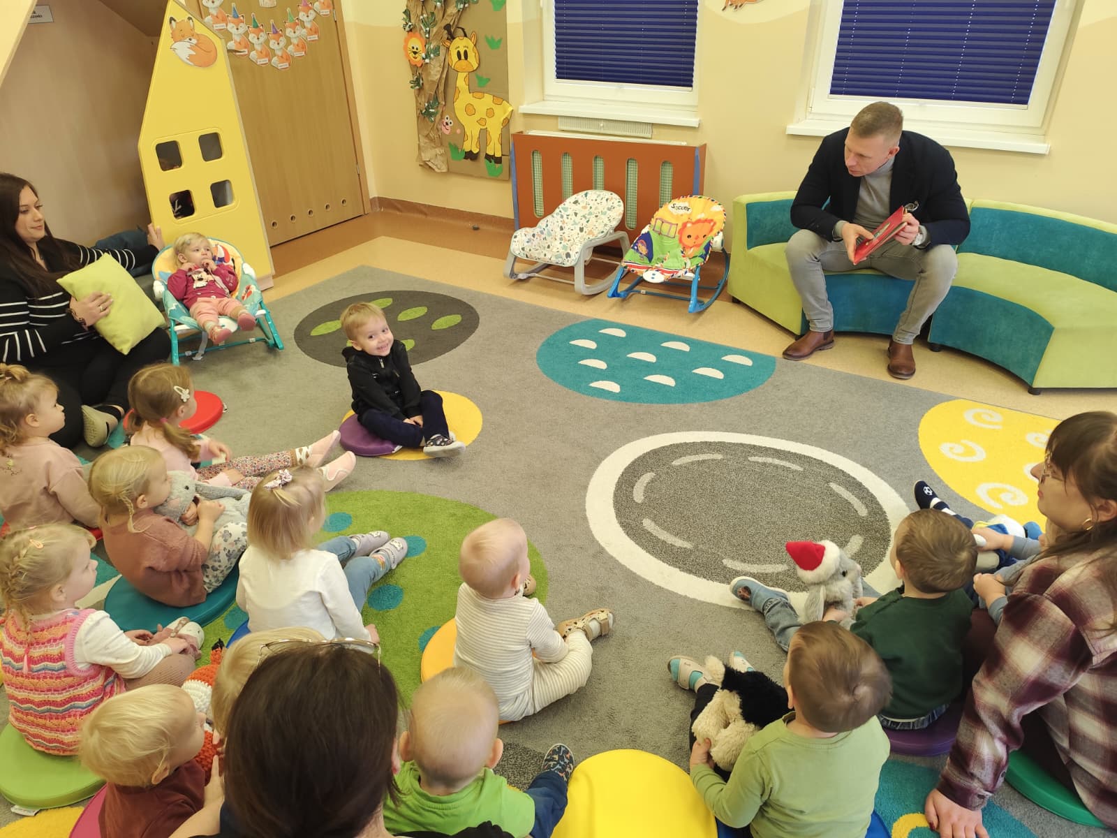 Nasze dzieci po raz kolejny wyruszyły w podróż do Krainy Książek! Podczas spotkania w ramach projektu „Maluszek w krainie książek”, wyjątkowym gościem był Krzysztof Godek - II zastępca Burmistrza Miasta i Gminy Kępno, który z ogromnym zaangażowaniem przeczytał dzieciom bajki pt.: "Jaś i Małgosia" oraz "Czerwony Kapturek".