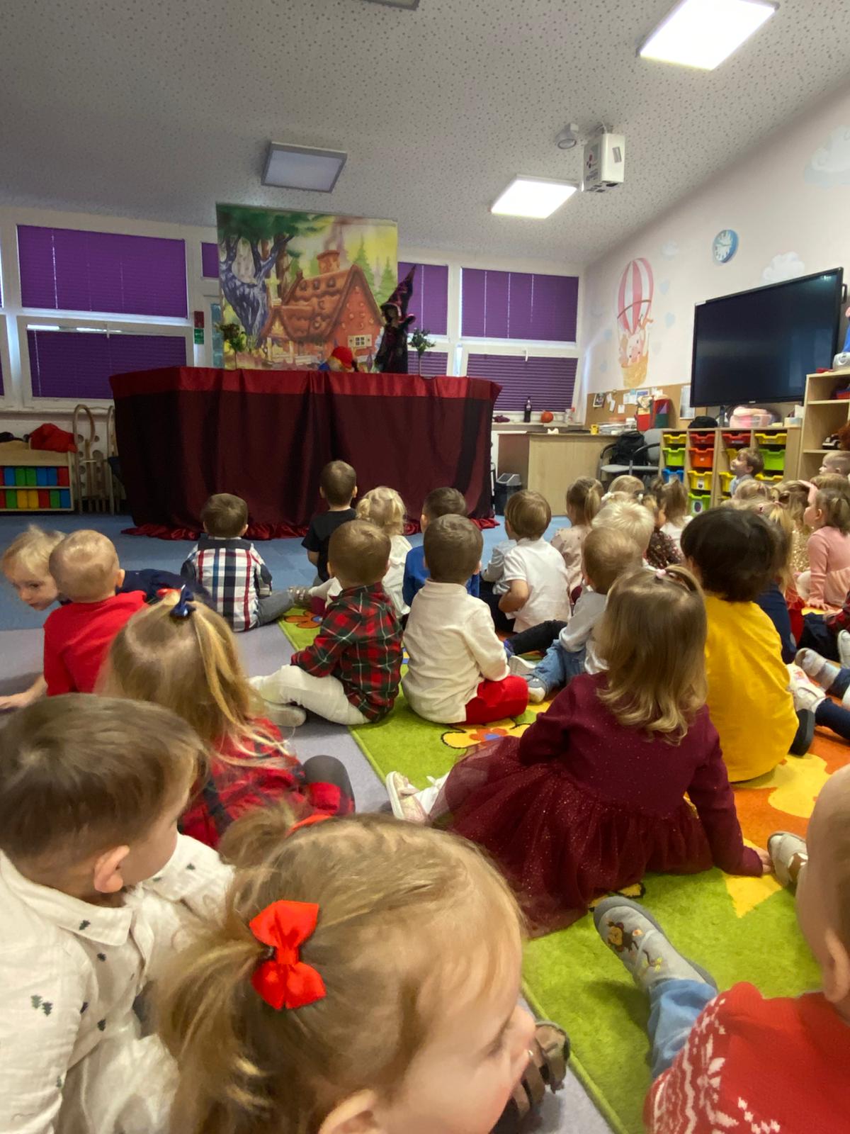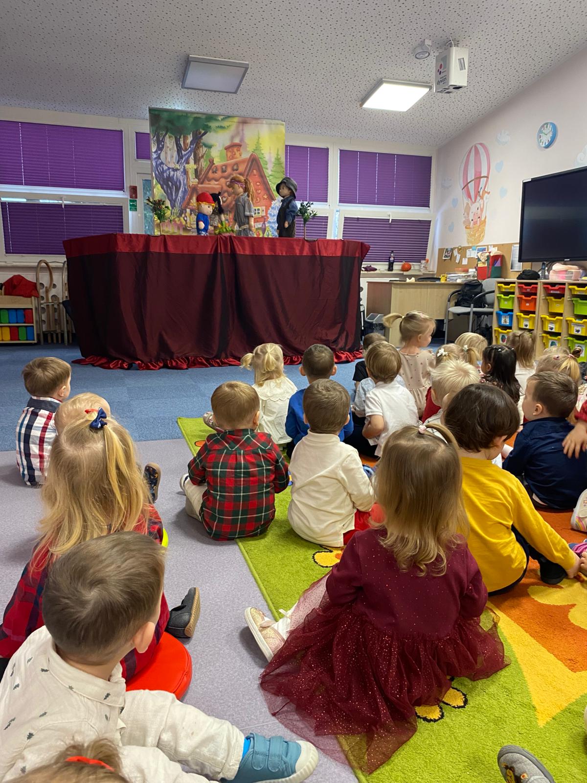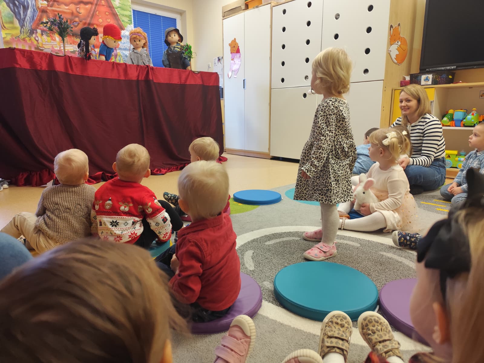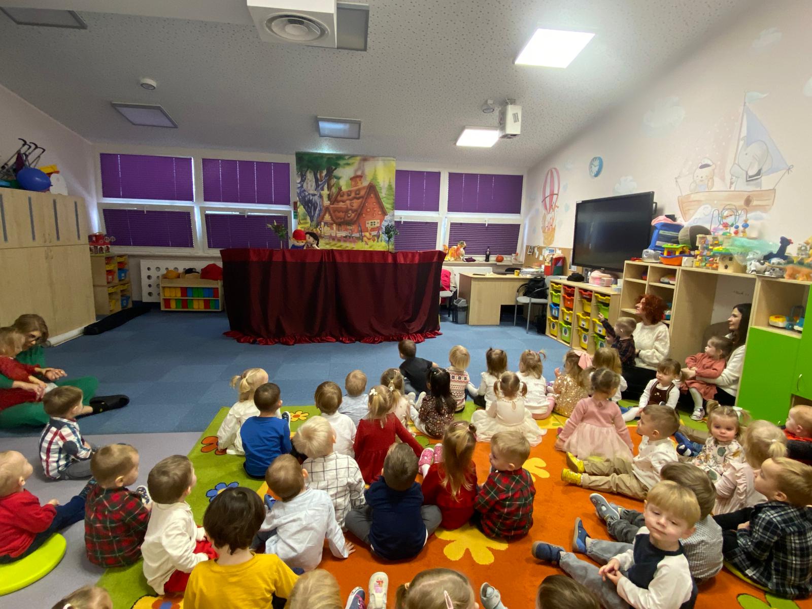 Maluchy z zapartym tchem śledziły losy małej dziewczynki w czerwonym płaszczyku, jej spotkanie z wilkiem oraz pełne emocji zakończenie bajki.