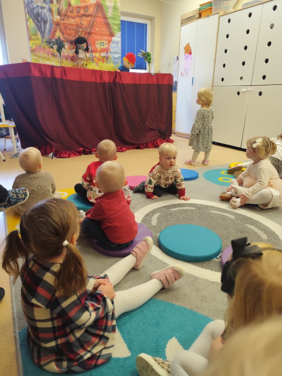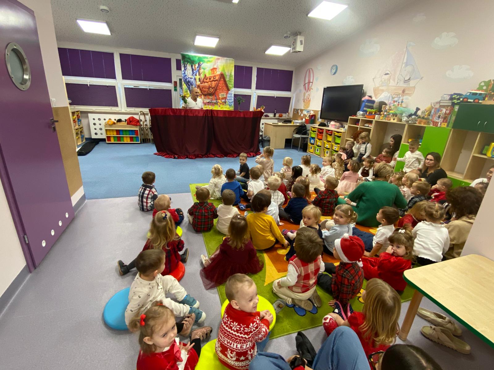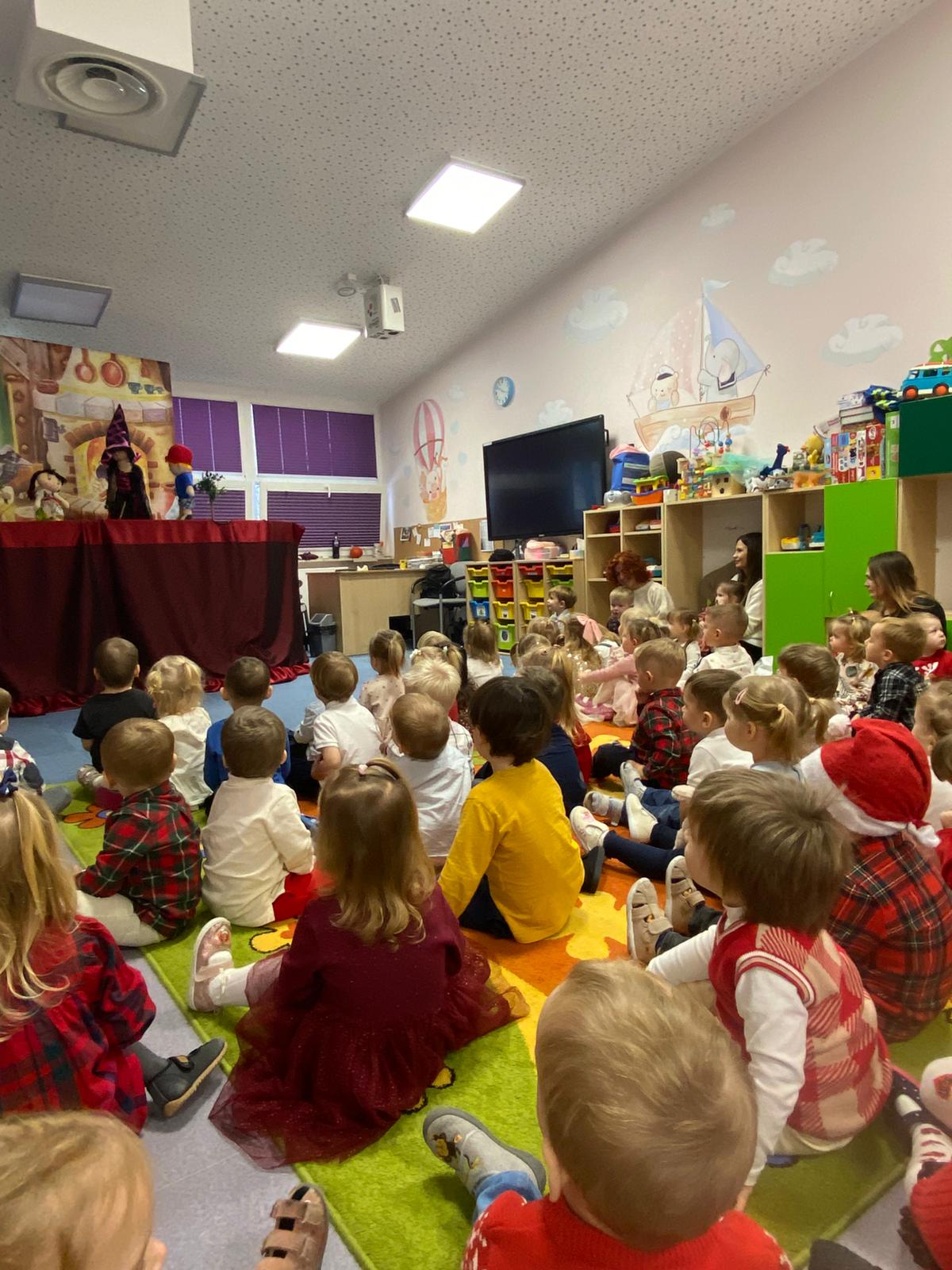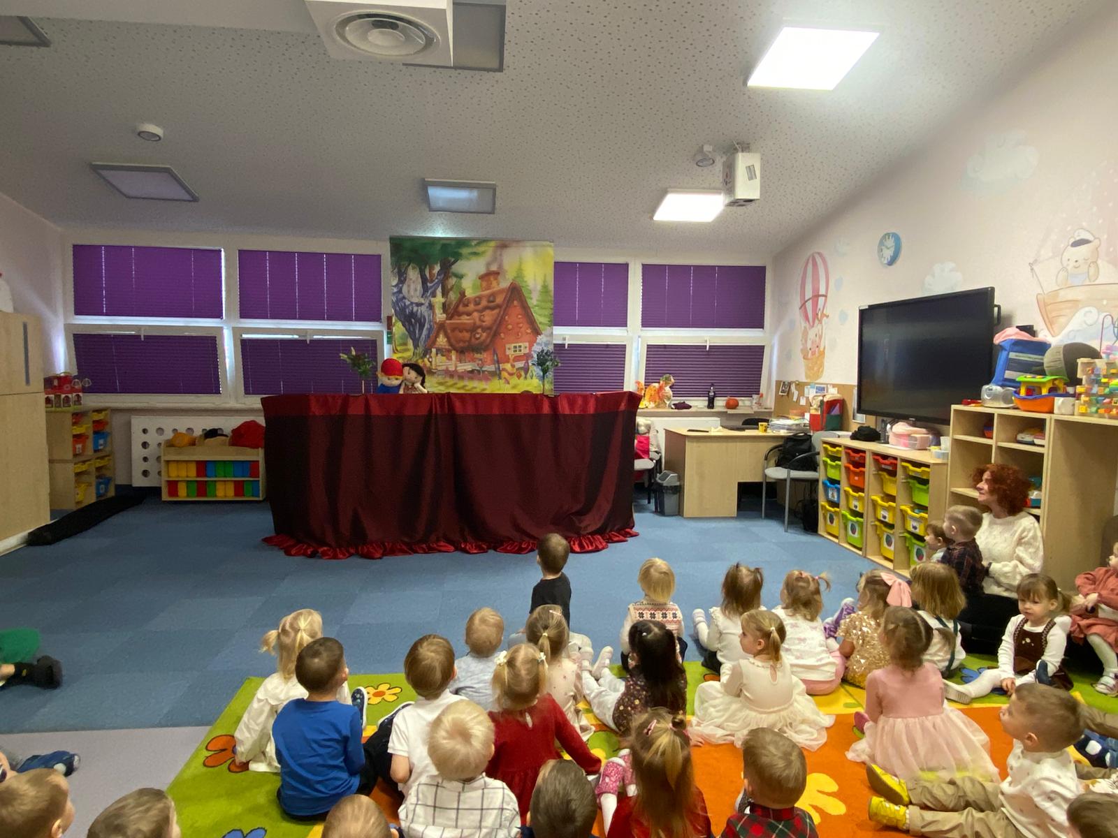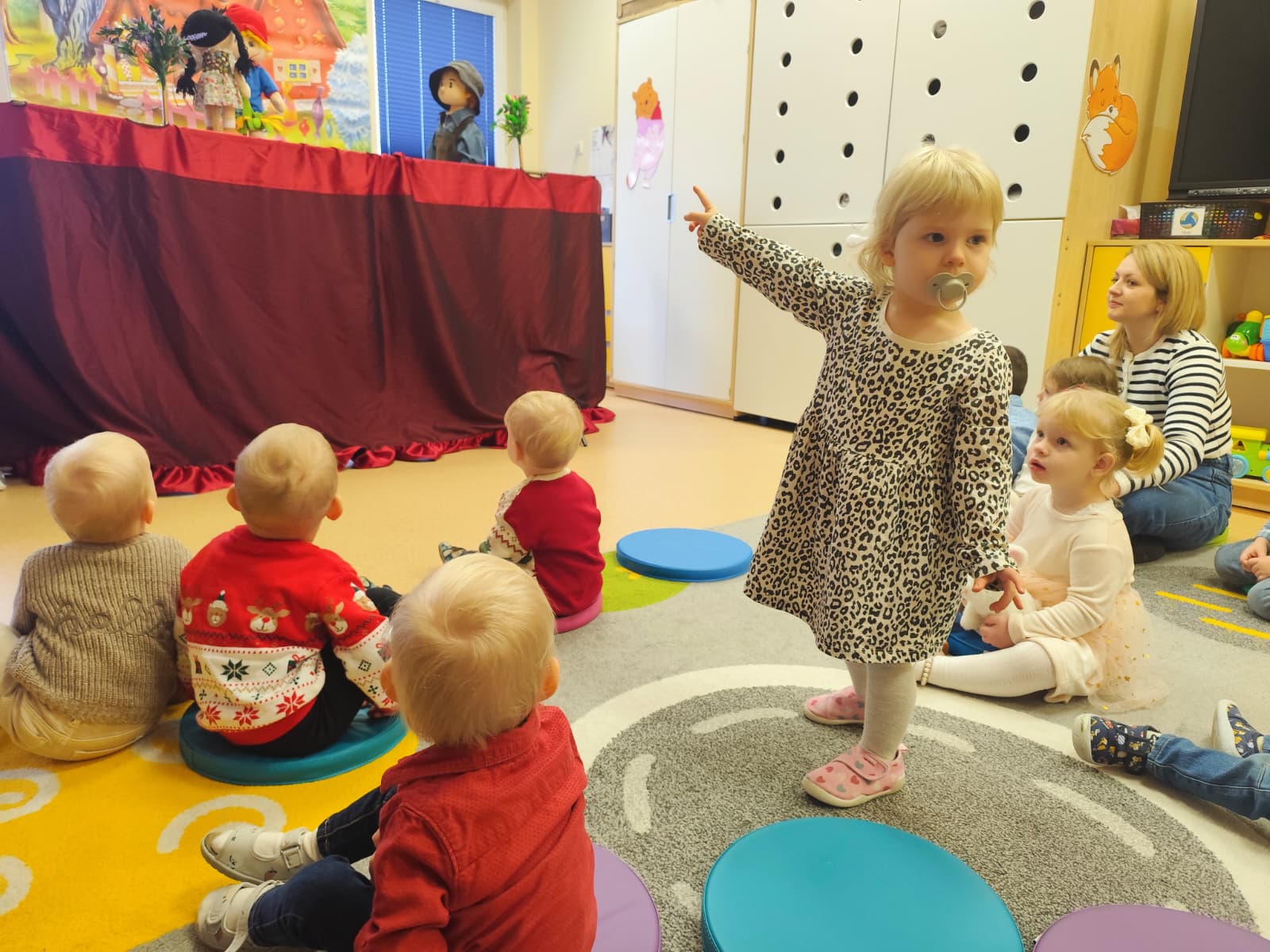 Maluchy z zapartym tchem śledziły losy małej dziewczynki w czerwonym płaszczyku, jej spotkanie z wilkiem oraz pełne emocji zakończenie bajki.
