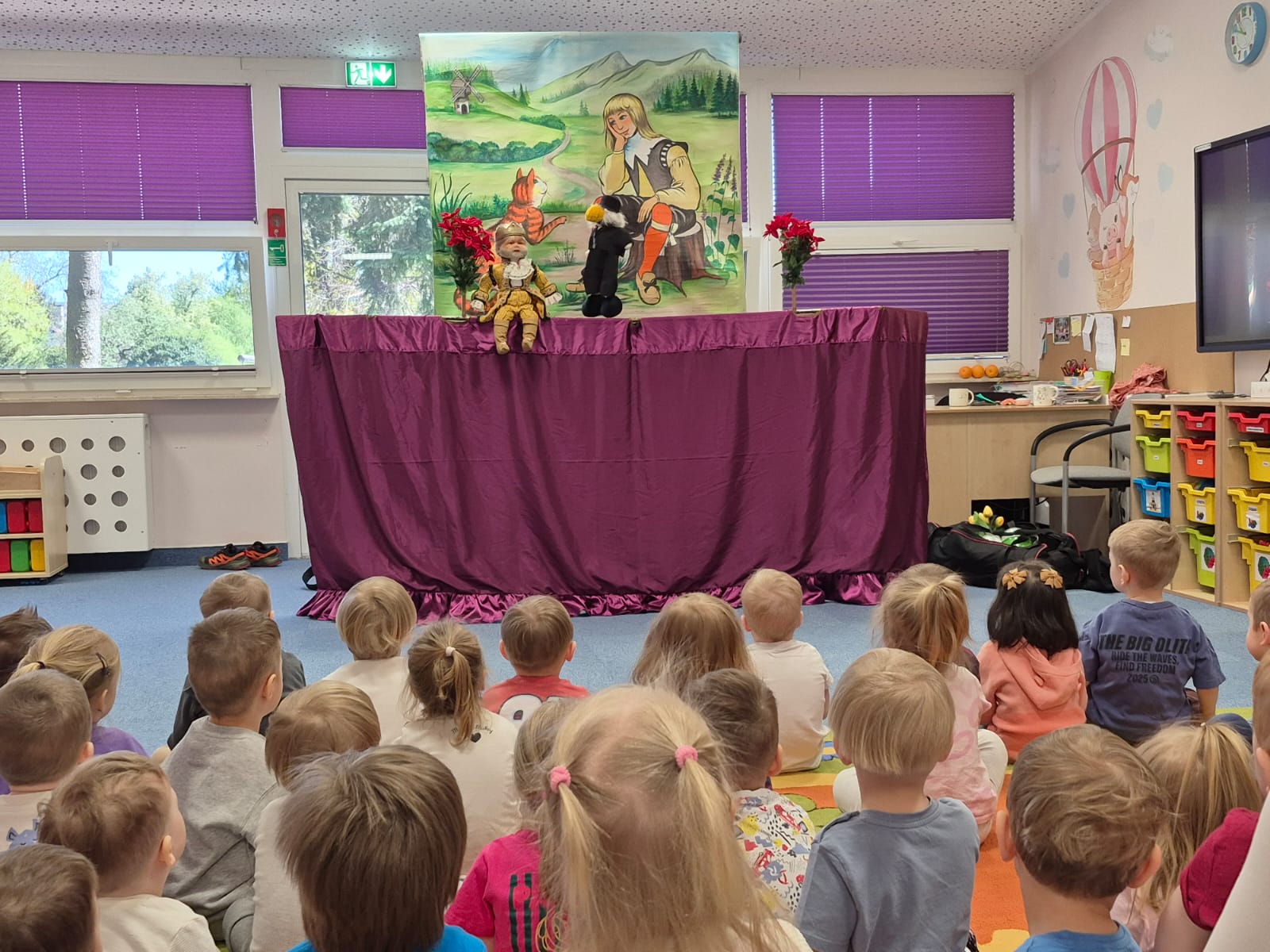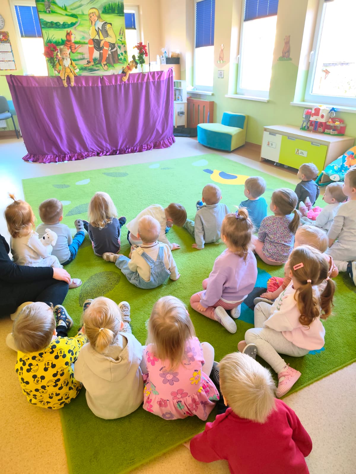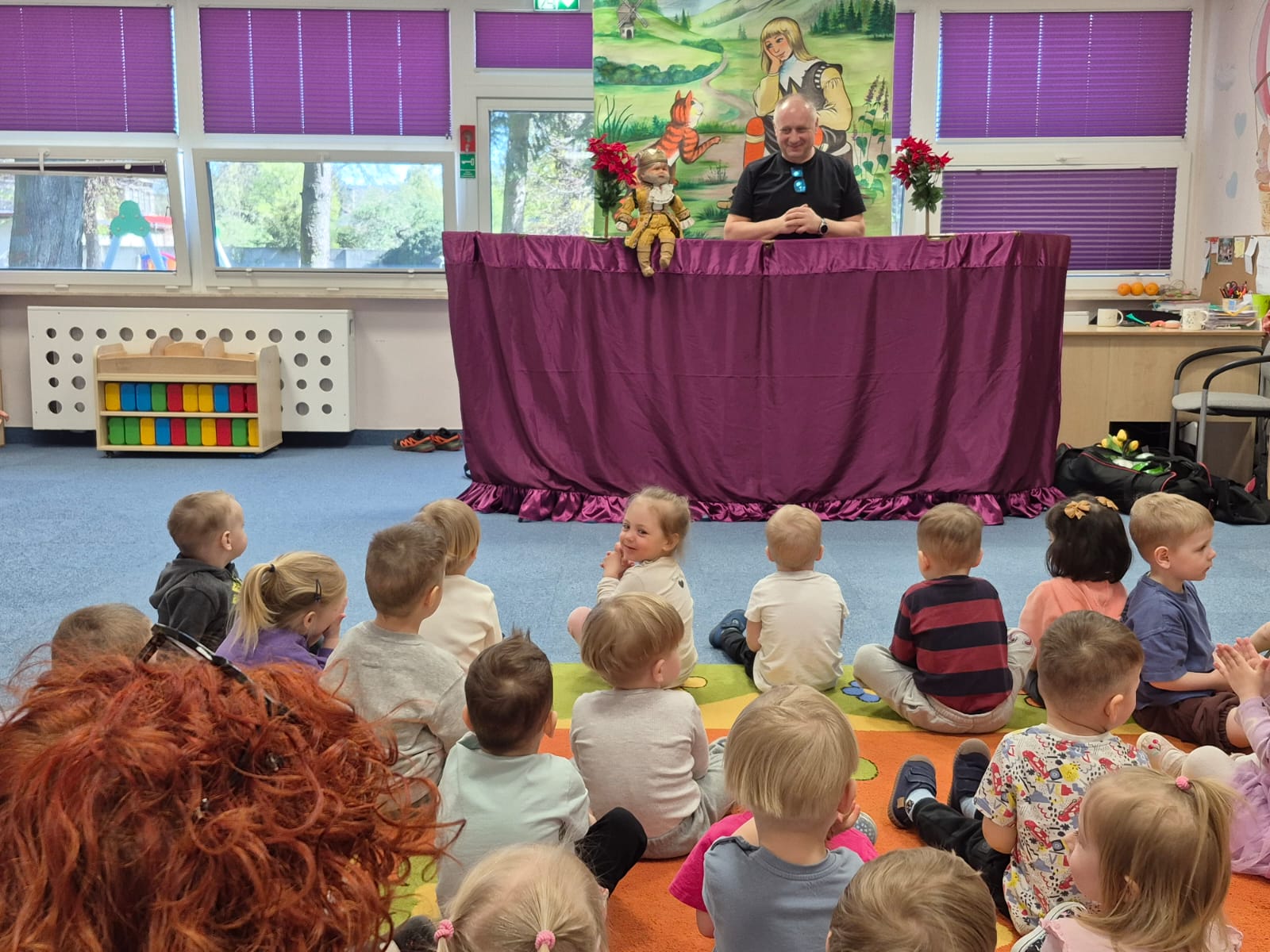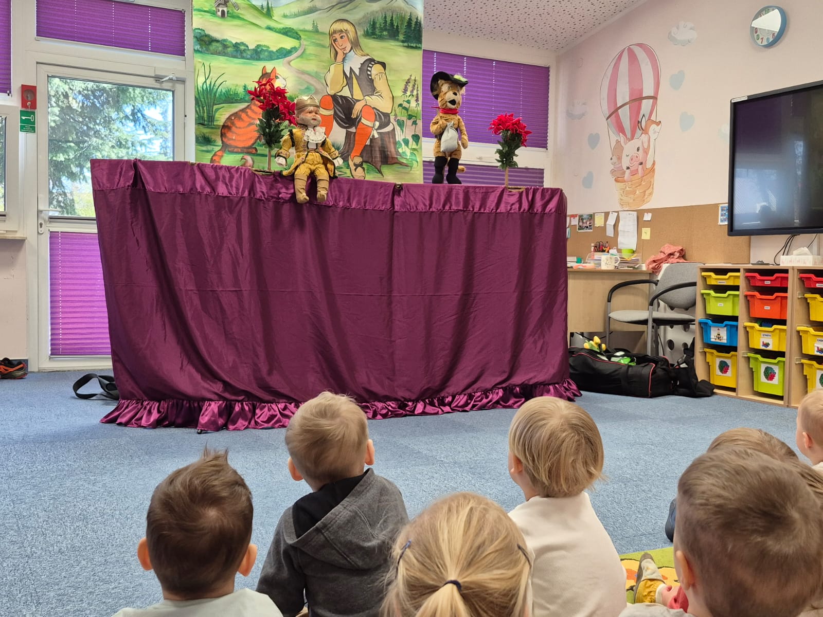 Dziś w naszym żłobku mieliśmy wyjątkowych gości! Odwiedził nas Teatr MAGiK, który zaprezentował dzieciom piękne przedstawienie pt. „KOT W BUTACH”. Dzieci od samego początku z ogromnym zainteresowaniem śledziły losy sprytnego kota oraz jego przyjaciół.