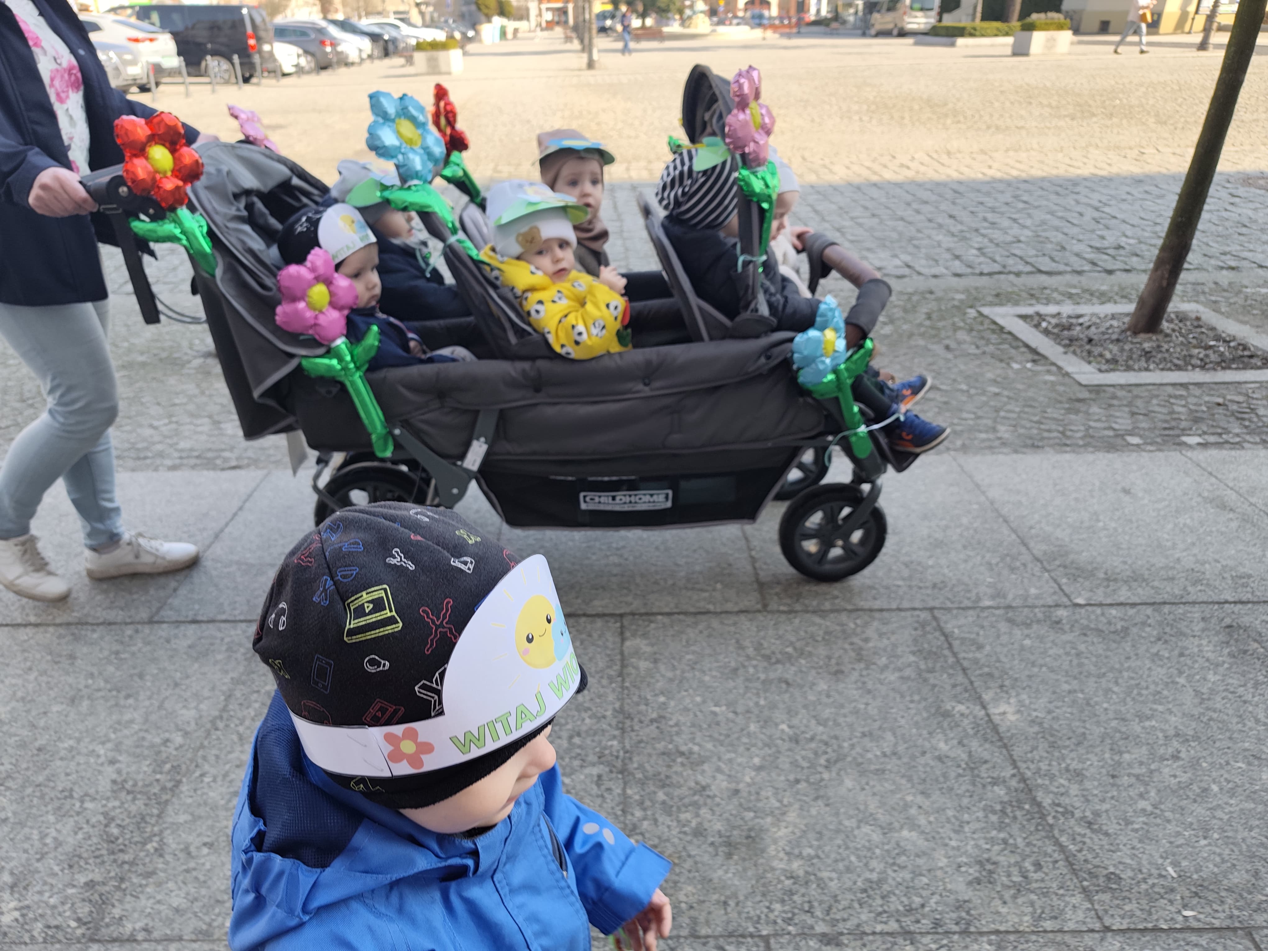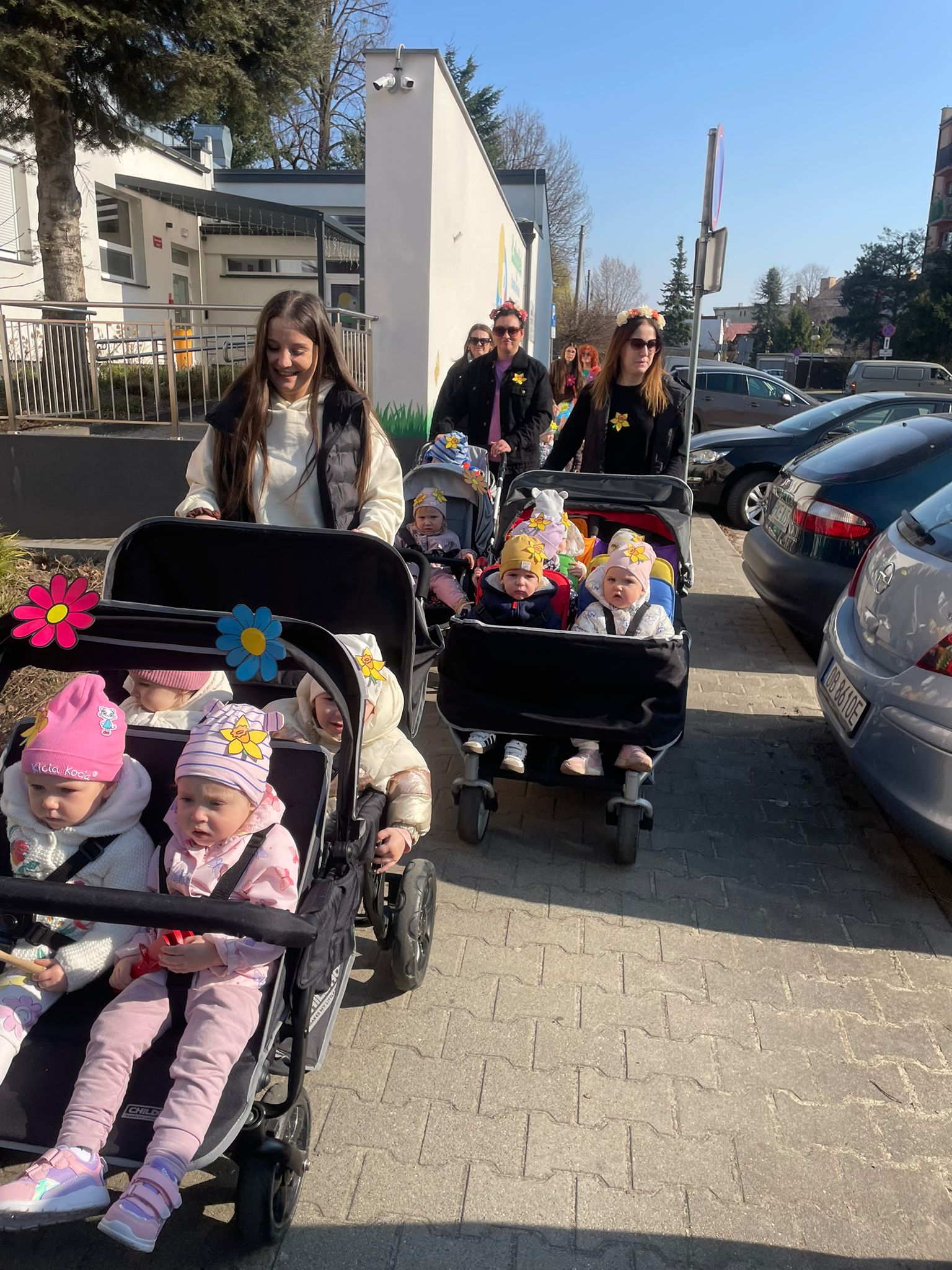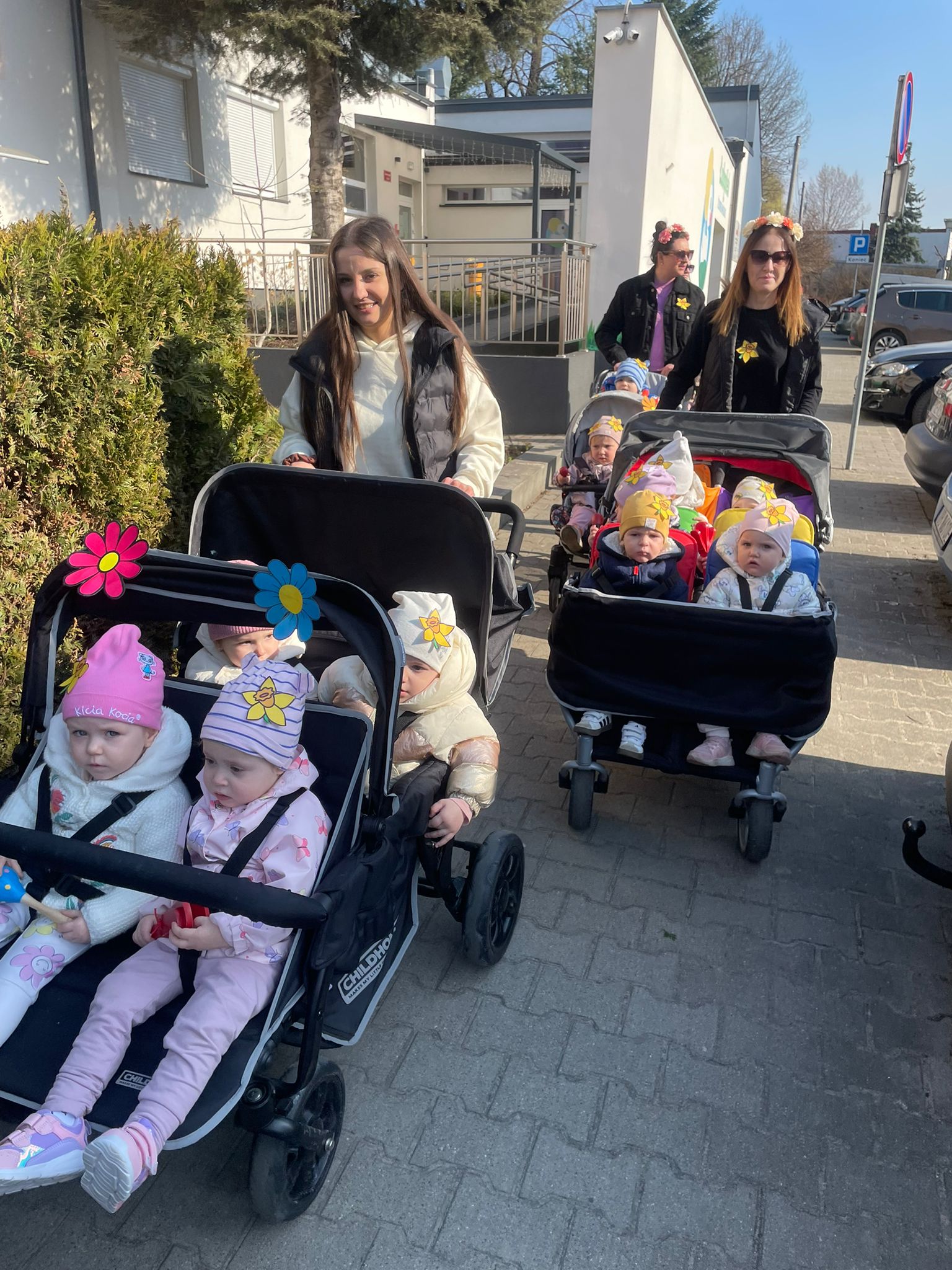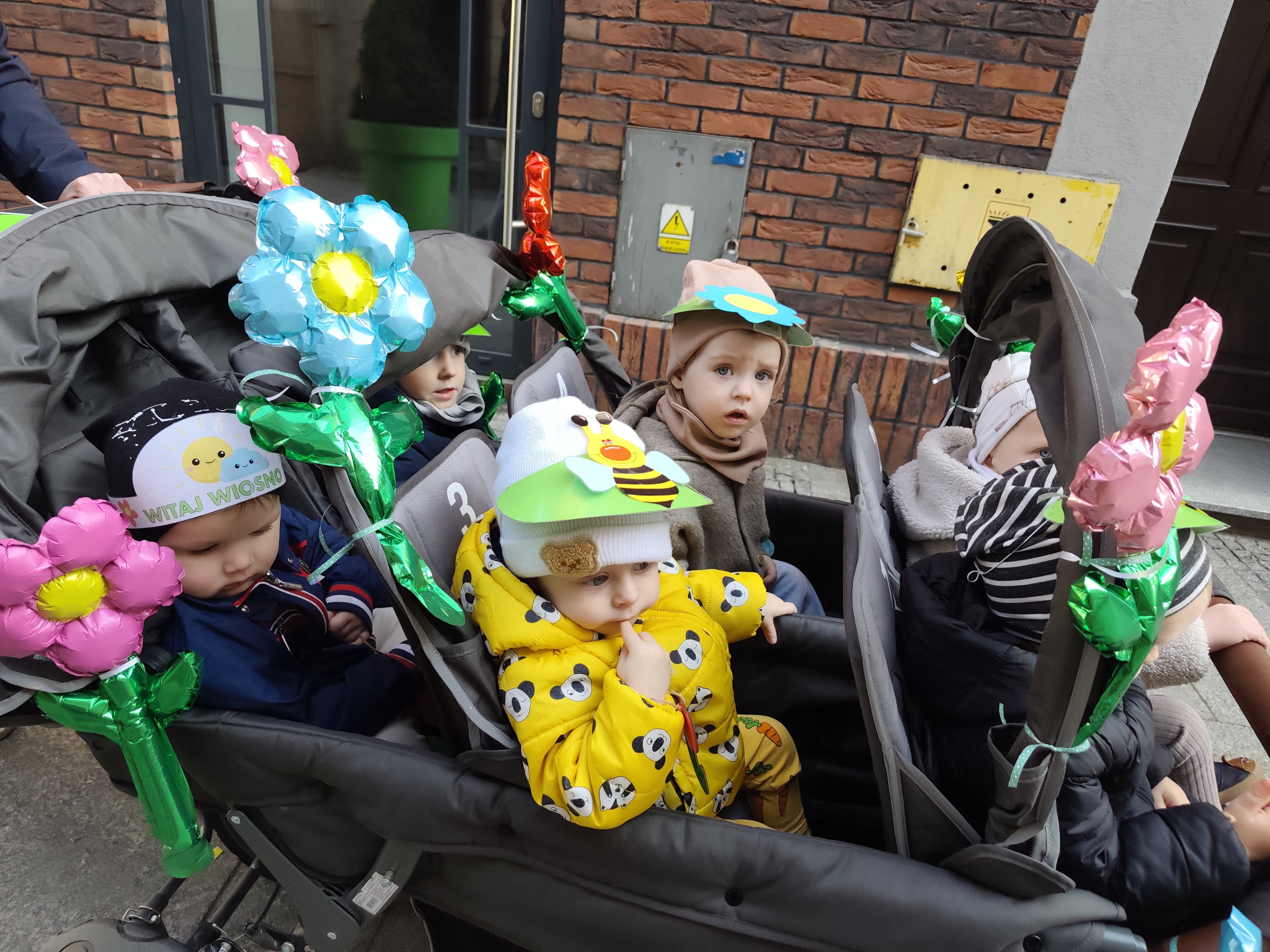 21 marca nasi żłobkowicze świętowali PIERWSZY DZIEŃ WIOSNY. Oczekiwanym momentem tego dnia było wyjście na spacer podczas którego dzieci mogły pożegnać zimę, a przywitać wiosnę. Wspólnie z opiekunkami i Panią Dyrekor dzieci radośnie maszerowały w wiosennym korowodznie grając przy tym na instrumentach. Barwnym pochodem wróciliśmy do żłobka, a ten wiosenny dzień został uwieczniony w poniższych zdjęciach.