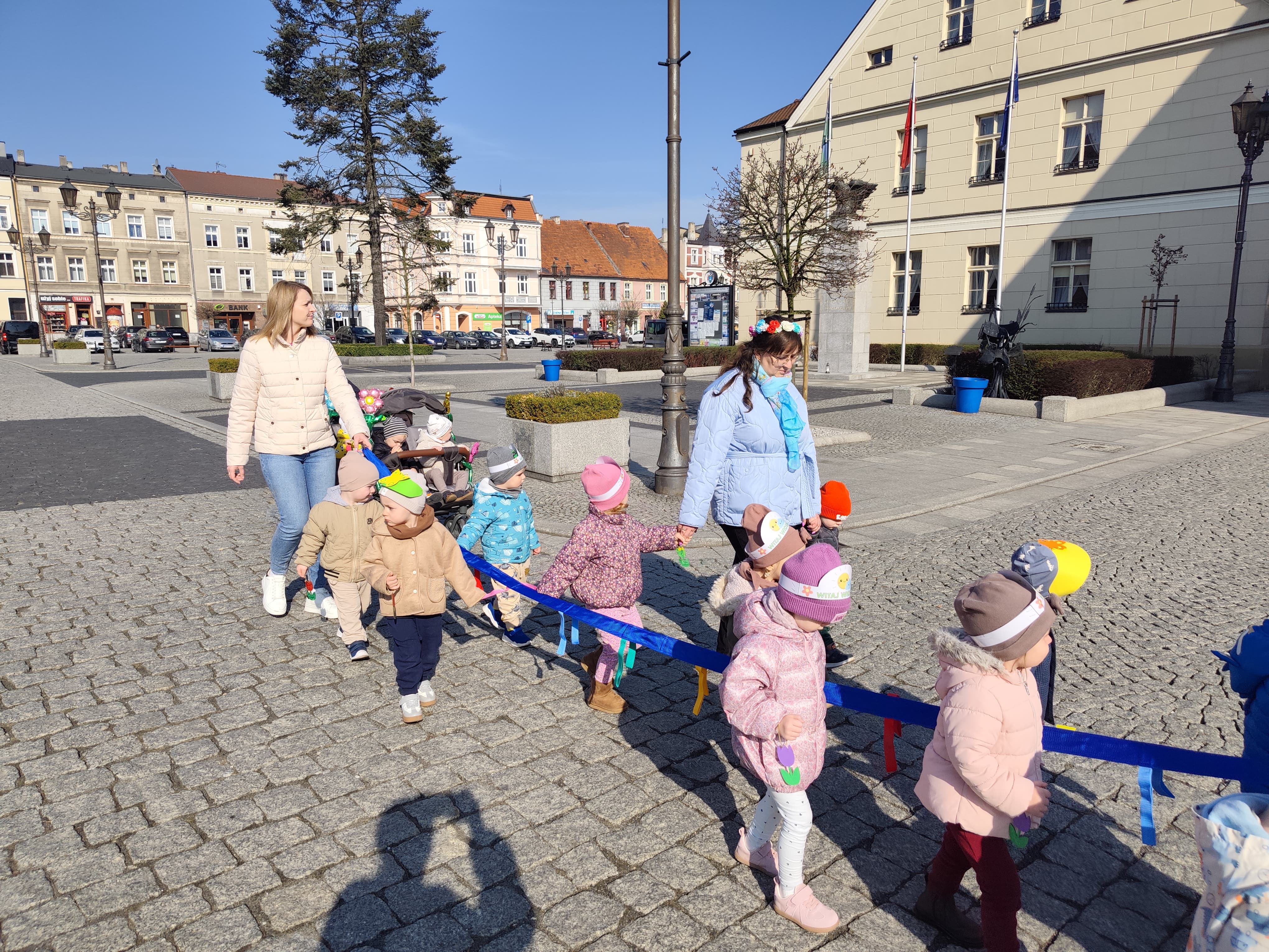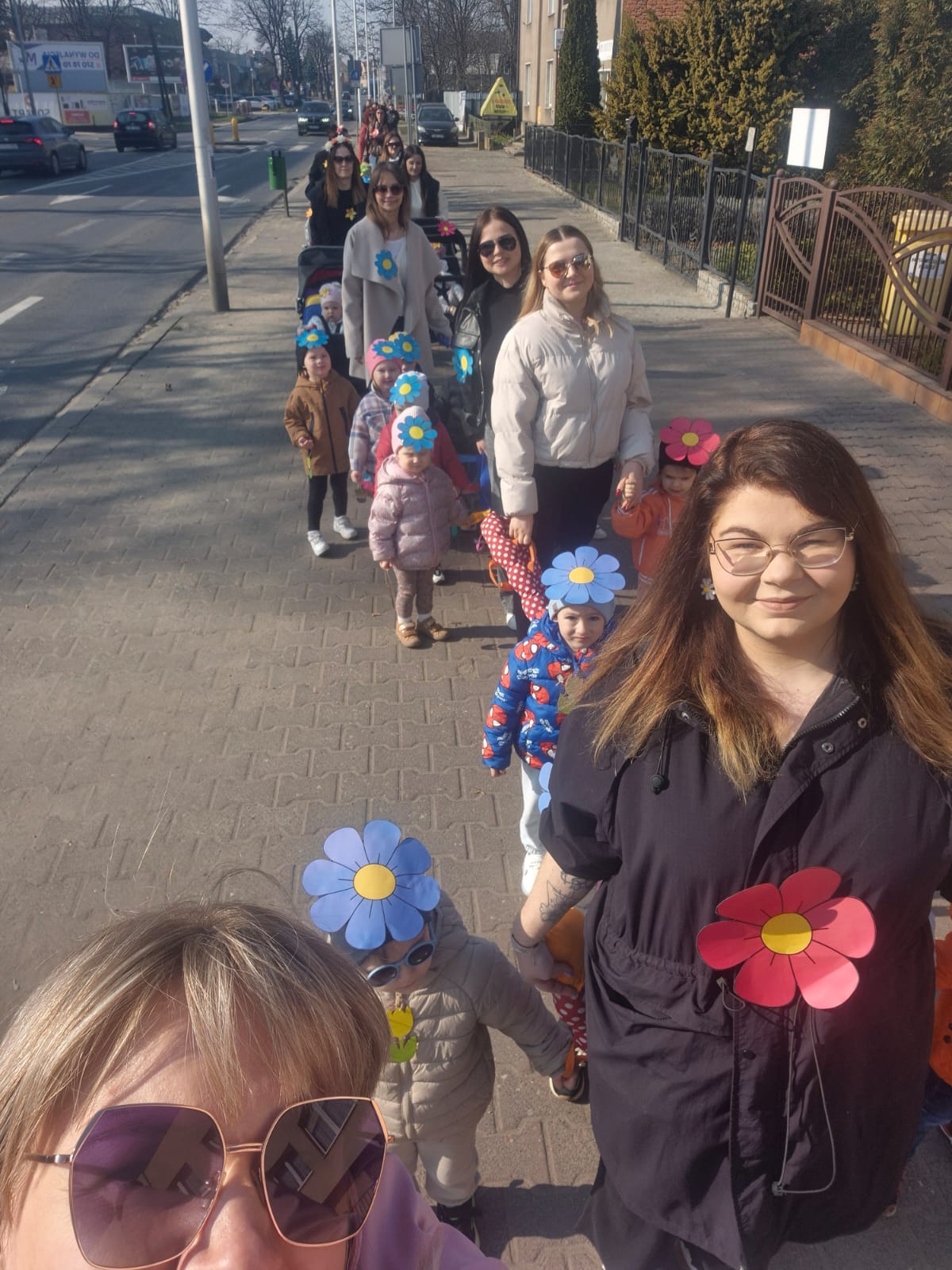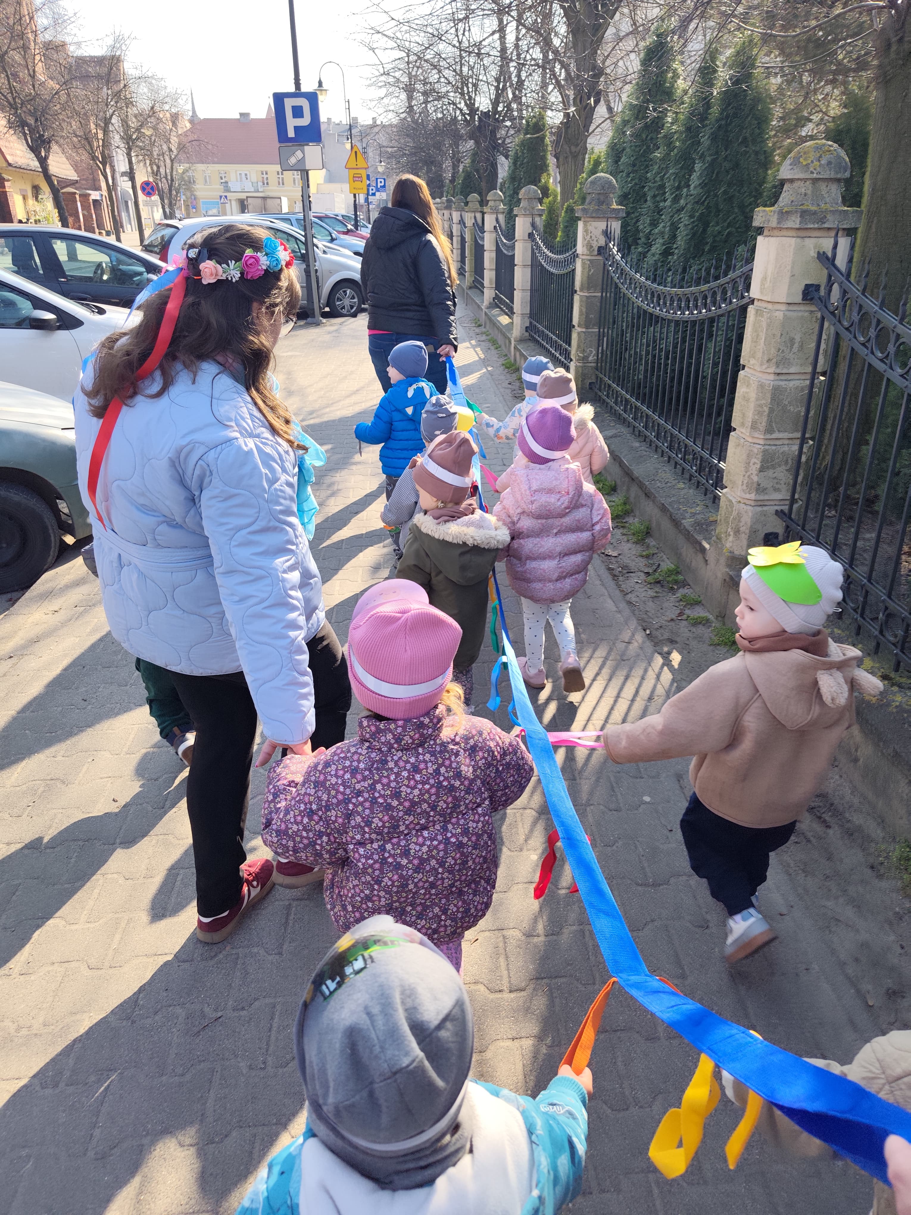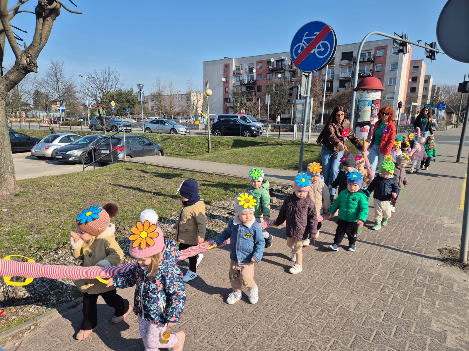 21 marca nasi żłobkowicze świętowali PIERWSZY DZIEŃ WIOSNY. Oczekiwanym momentem tego dnia było wyjście na spacer podczas którego dzieci mogły pożegnać zimę, a przywitać wiosnę. Wspólnie z opiekunkami i Panią Dyrekor dzieci radośnie maszerowały w wiosennym korowodznie grając przy tym na instrumentach. Barwnym pochodem wróciliśmy do żłobka, a ten wiosenny dzień został uwieczniony w poniższych zdjęciach.