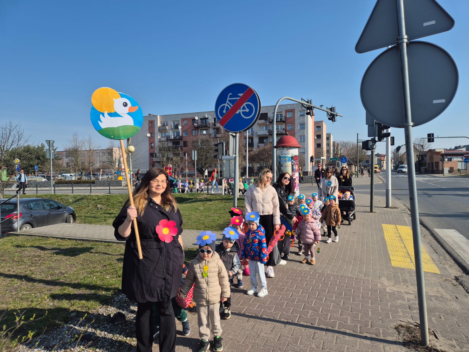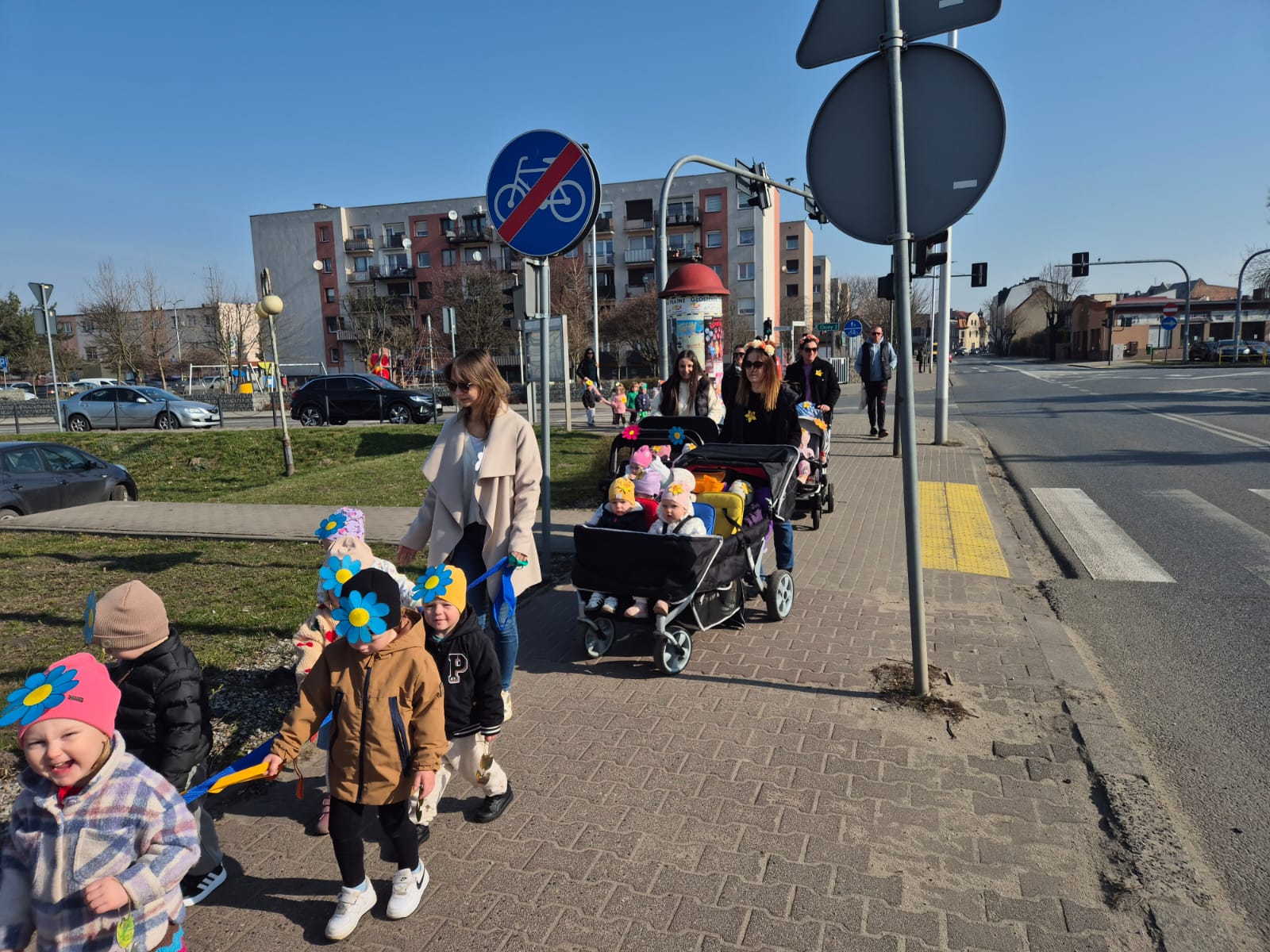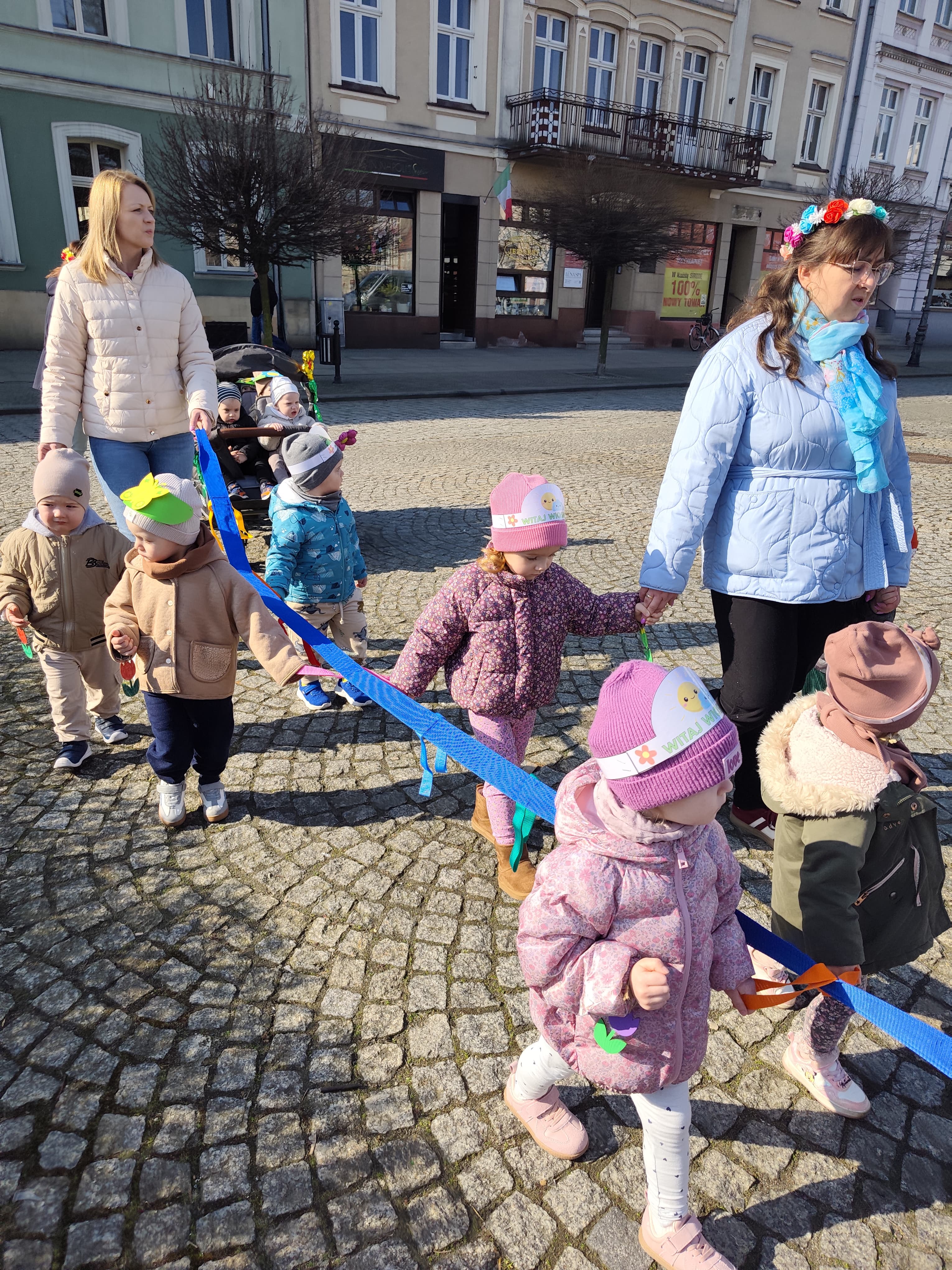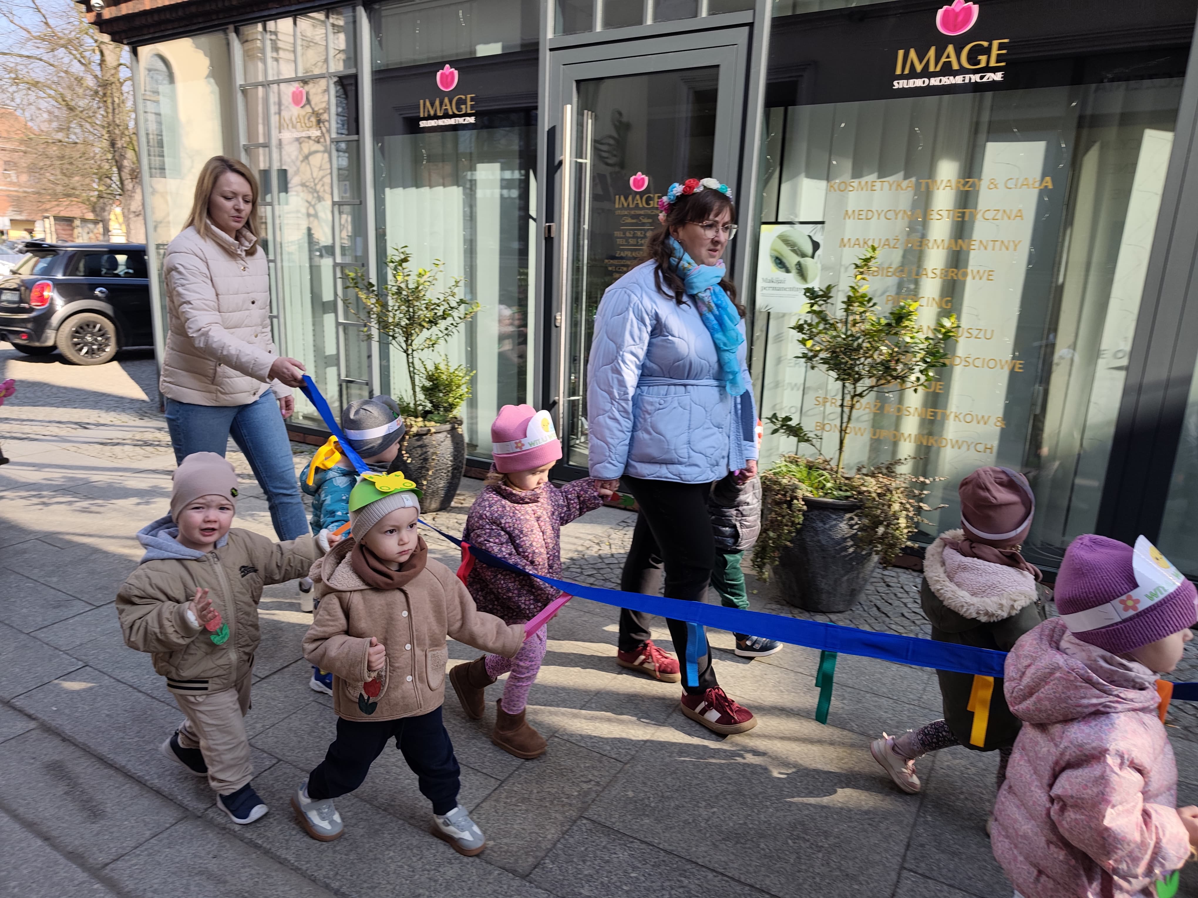 21 marca nasi żłobkowicze świętowali PIERWSZY DZIEŃ WIOSNY. Oczekiwanym momentem tego dnia było wyjście na spacer podczas którego dzieci mogły pożegnać zimę, a przywitać wiosnę. Wspólnie z opiekunkami i Panią Dyrekor dzieci radośnie maszerowały w wiosennym korowodznie grając przy tym na instrumentach. Barwnym pochodem wróciliśmy do żłobka, a ten wiosenny dzień został uwieczniony w poniższych zdjęciach.
