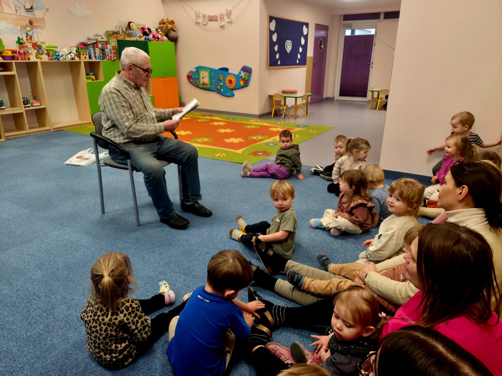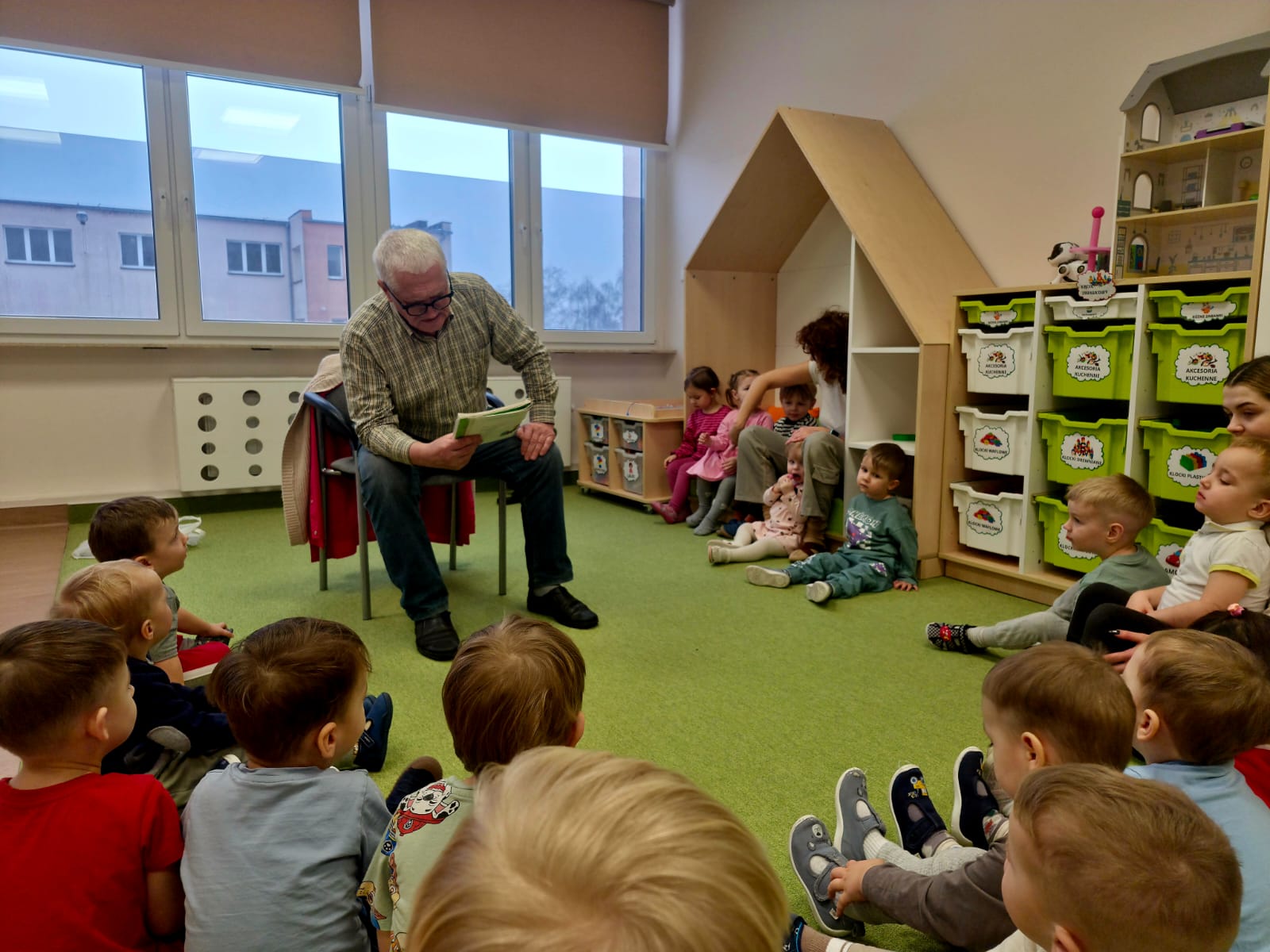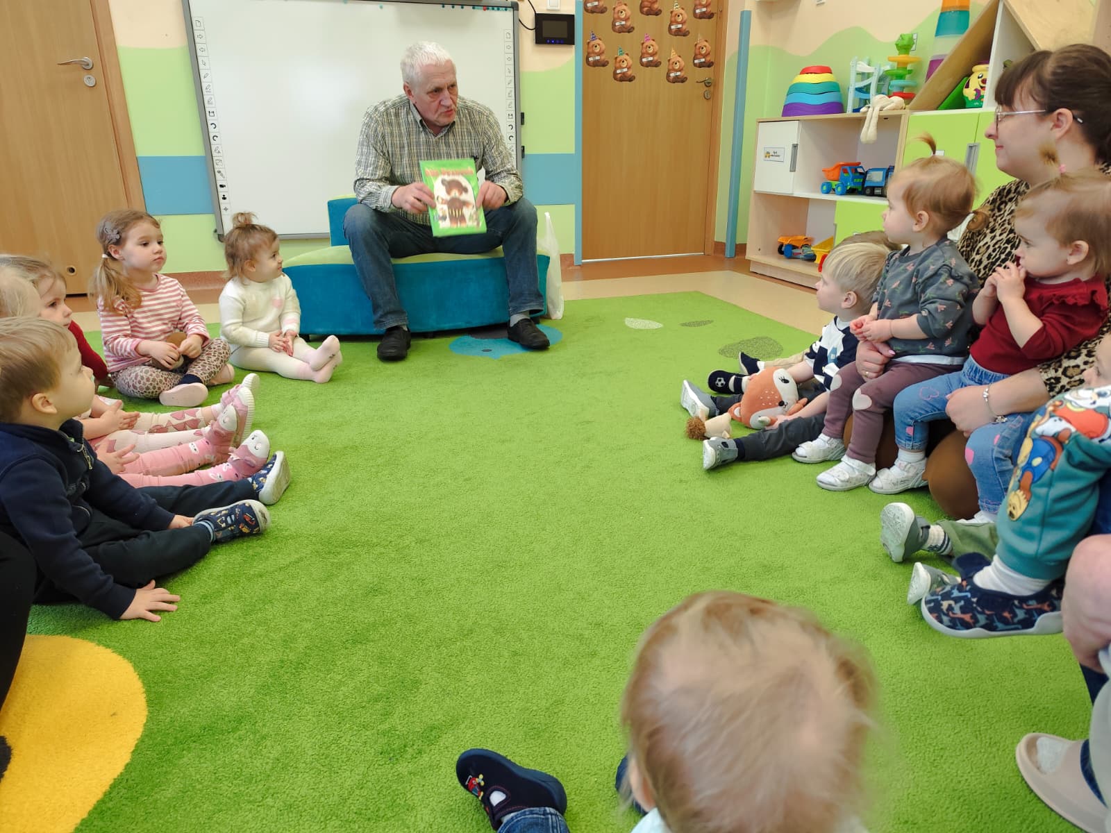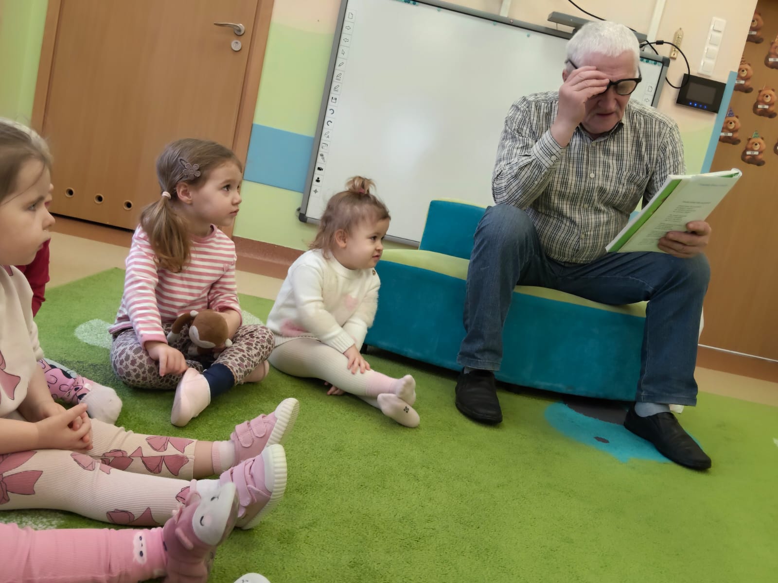 Podczas spotkania w ramach projektu „Maluszek w krainie książek”, wyjątkowym gościem był Pan Marek Paprocki - nasz rodzimy poeata i literat , który z ogromnym zaangażowaniem przeczytał dzieciom bajkę pt.: "Miś Uszatek"