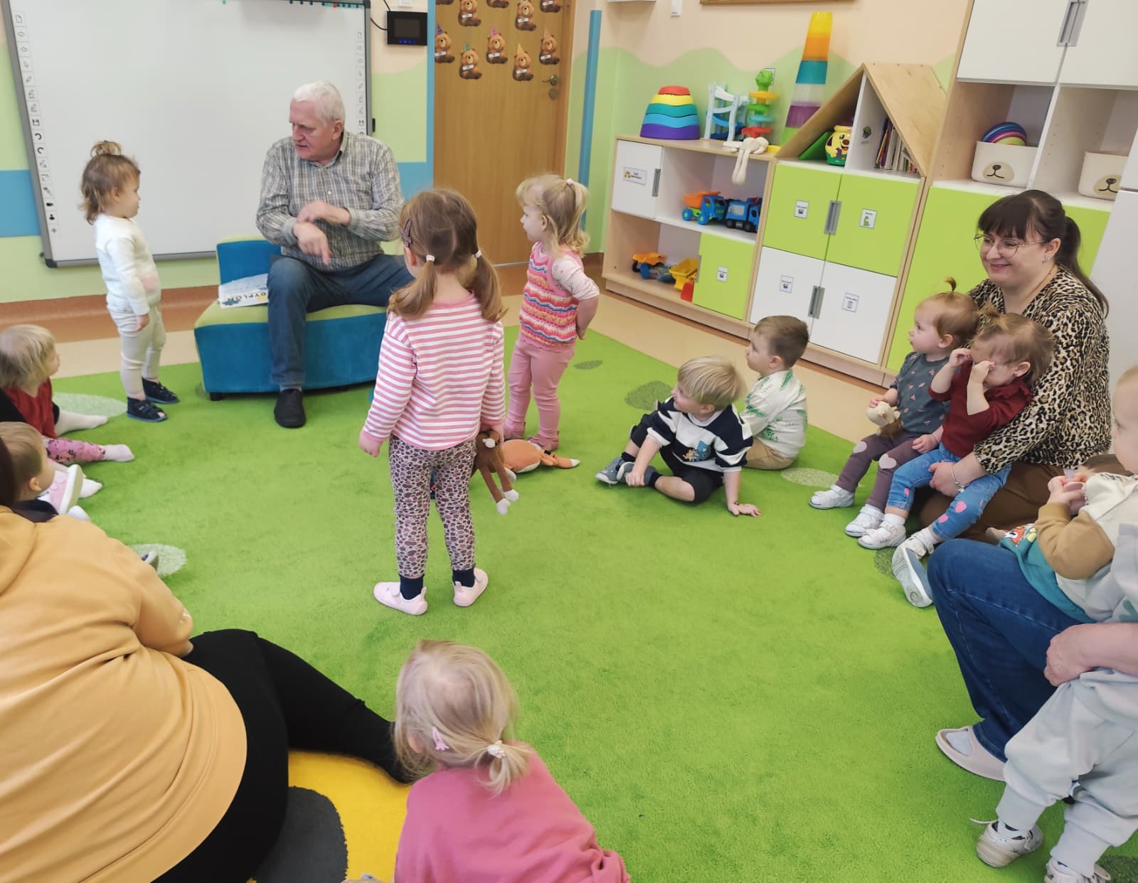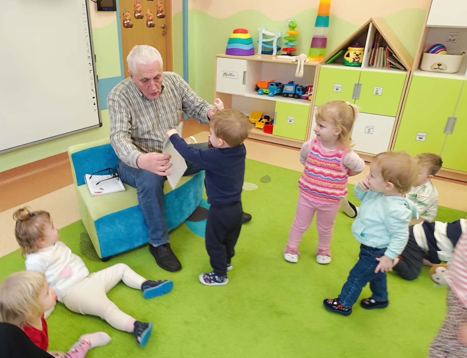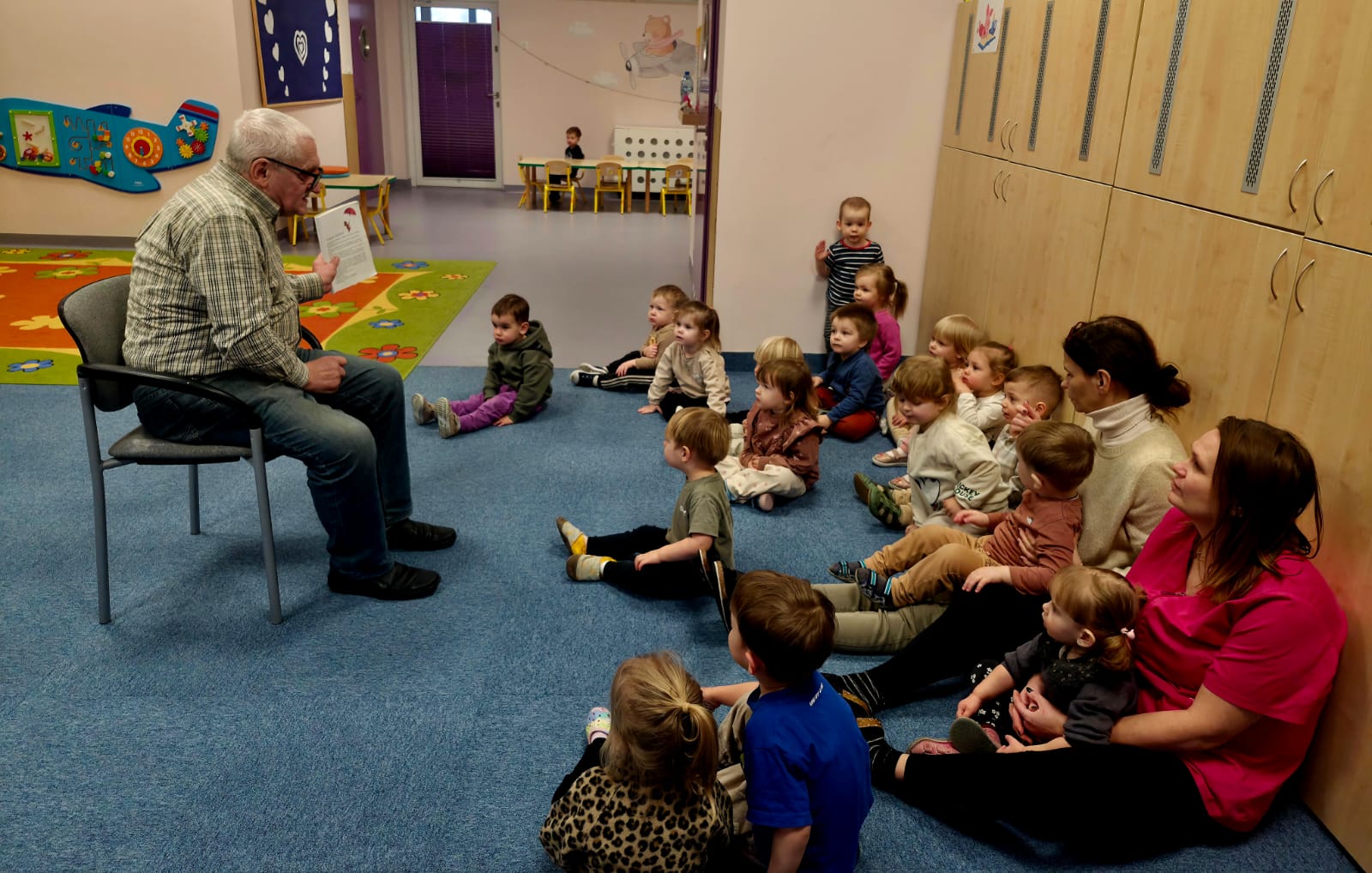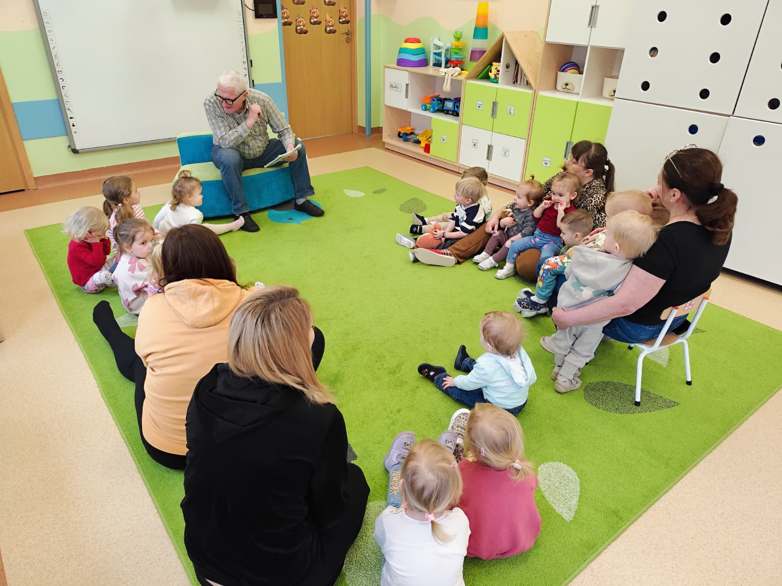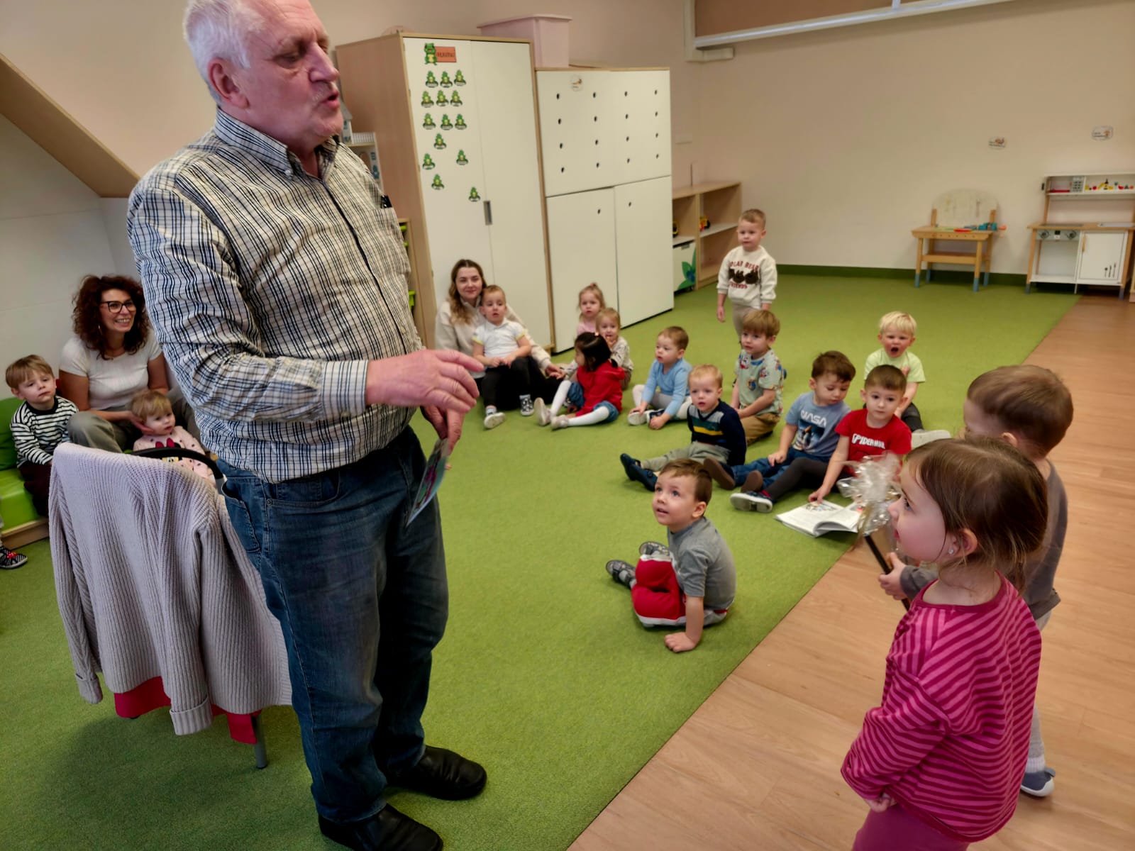 Podczas spotkania w ramach projektu „Maluszek w krainie książek”, wyjątkowym gościem był Pan Marek Paprocki - nasz rodzimy poeata i literat , który z ogromnym zaangażowaniem przeczytał dzieciom bajkę pt.: "Miś Uszatek"