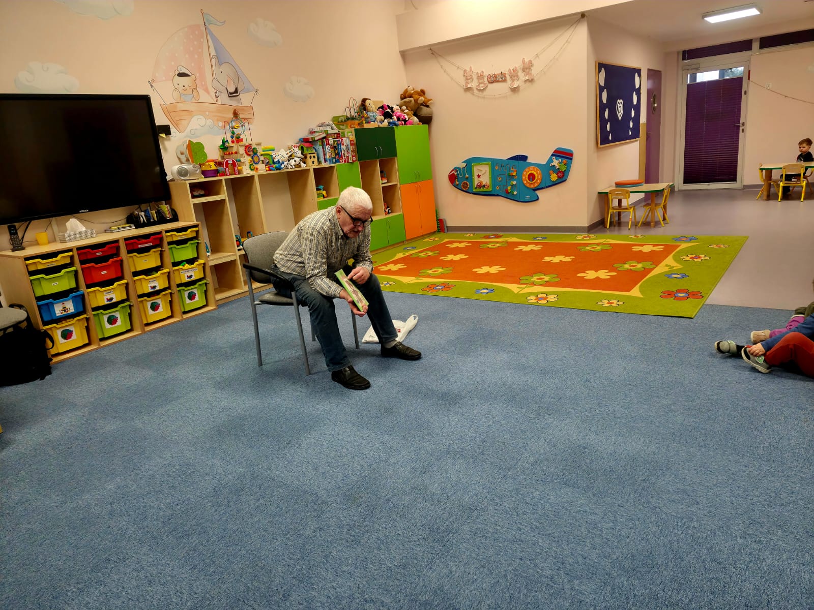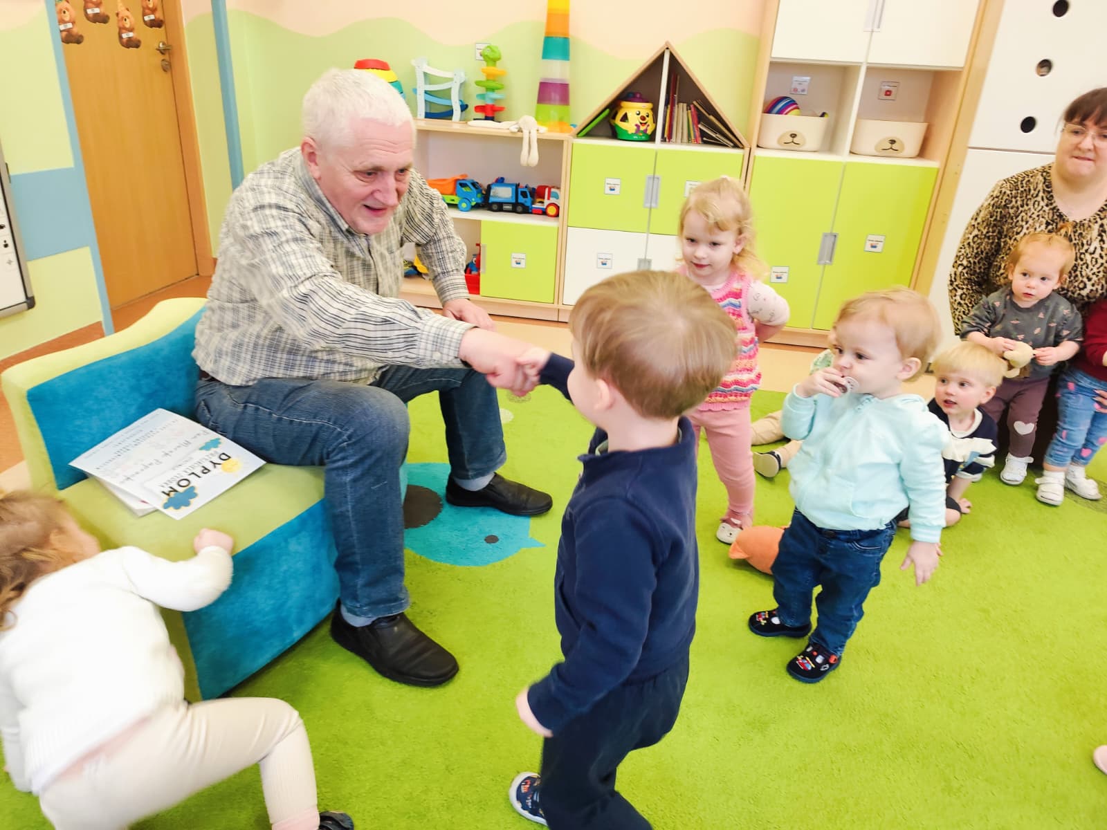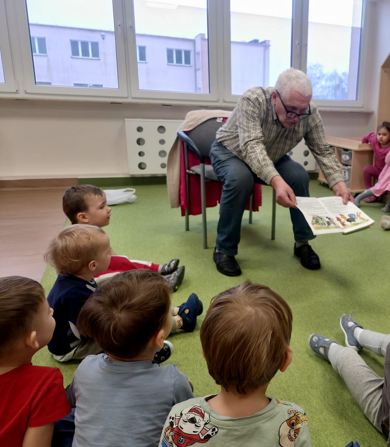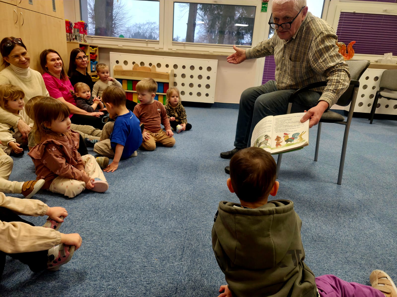 Podczas spotkania w ramach projektu „Maluszek w krainie książek”, wyjątkowym gościem był Pan Marek Paprocki - nasz rodzimy poeata i literat , który z ogromnym zaangażowaniem przeczytał dzieciom bajkę pt.: "Miś Uszatek"