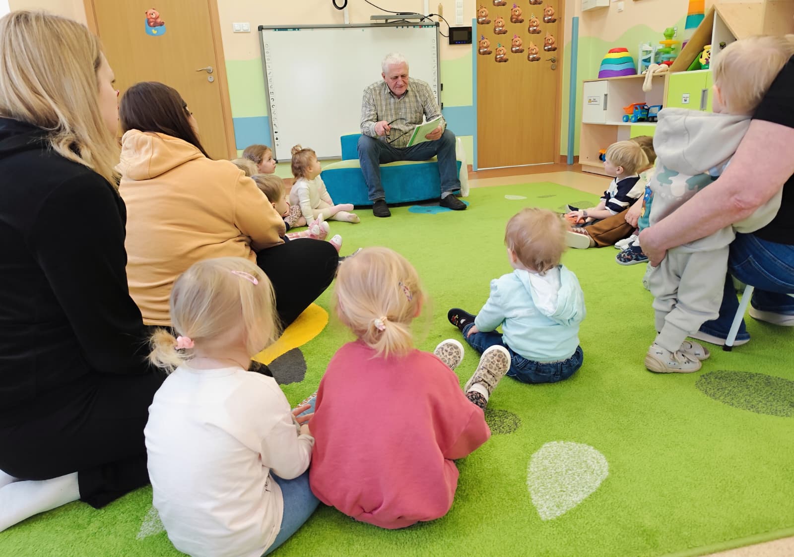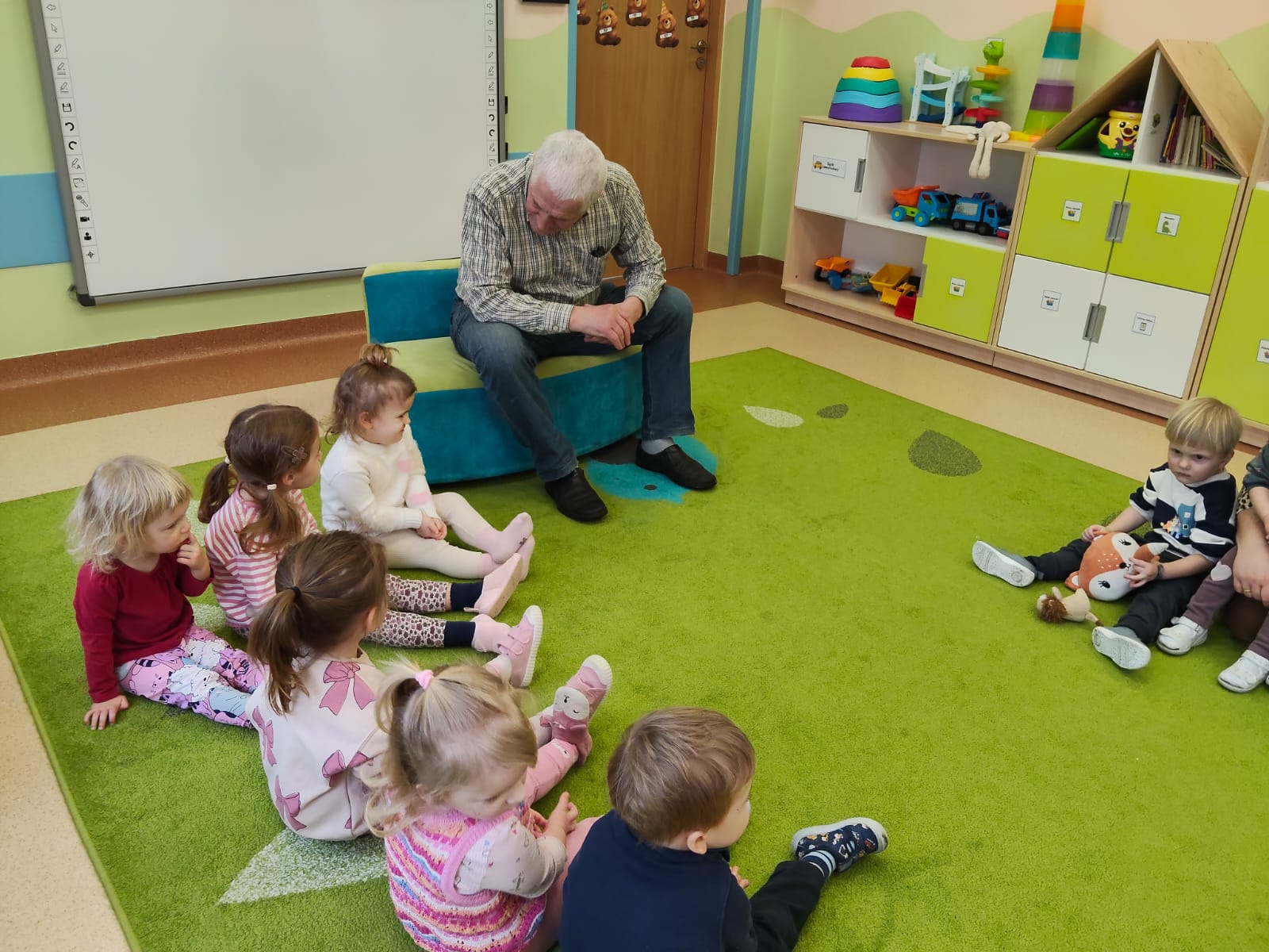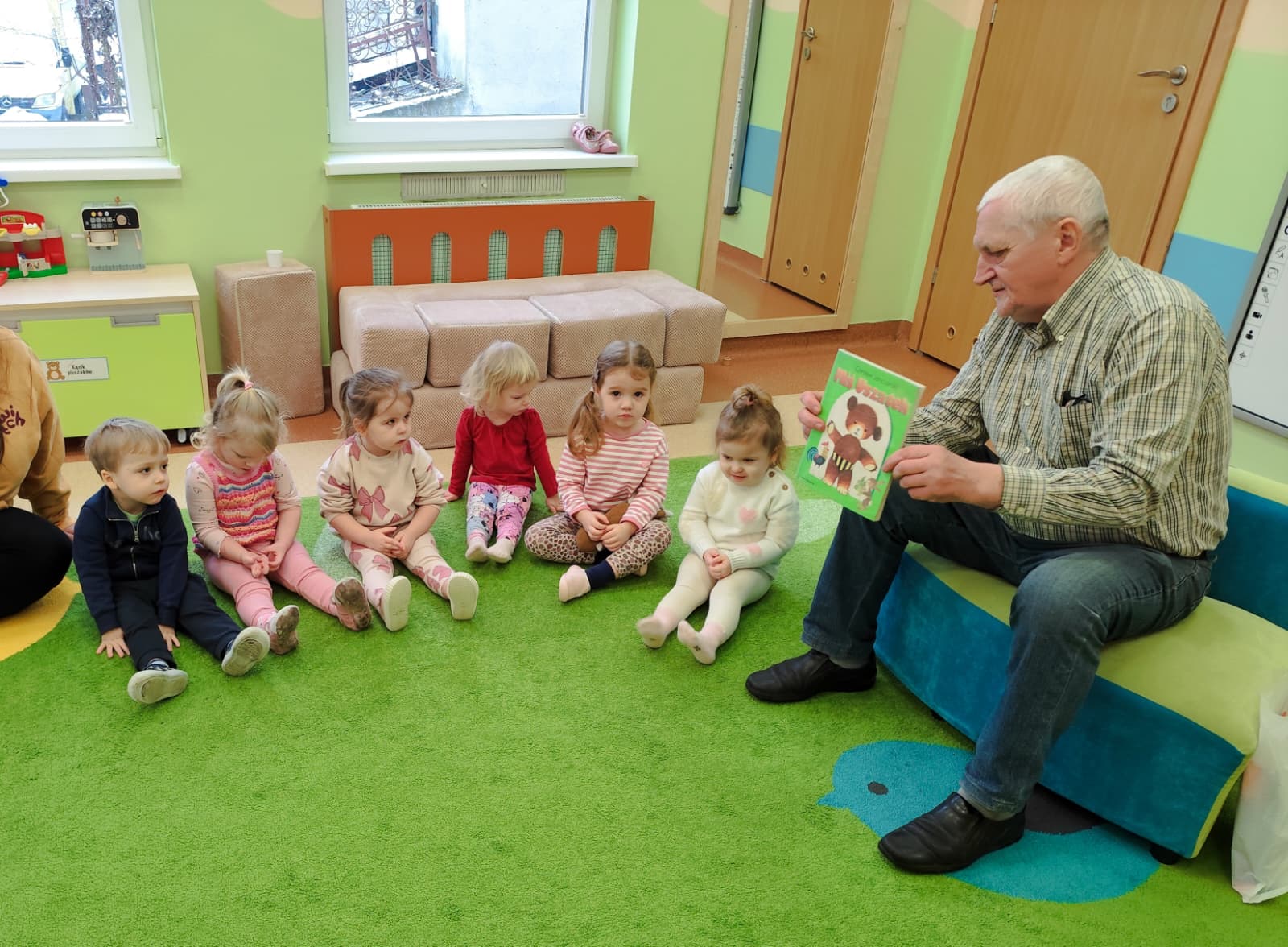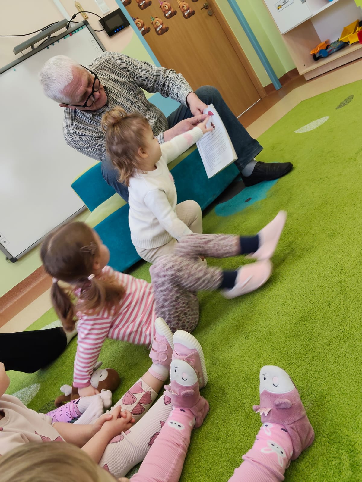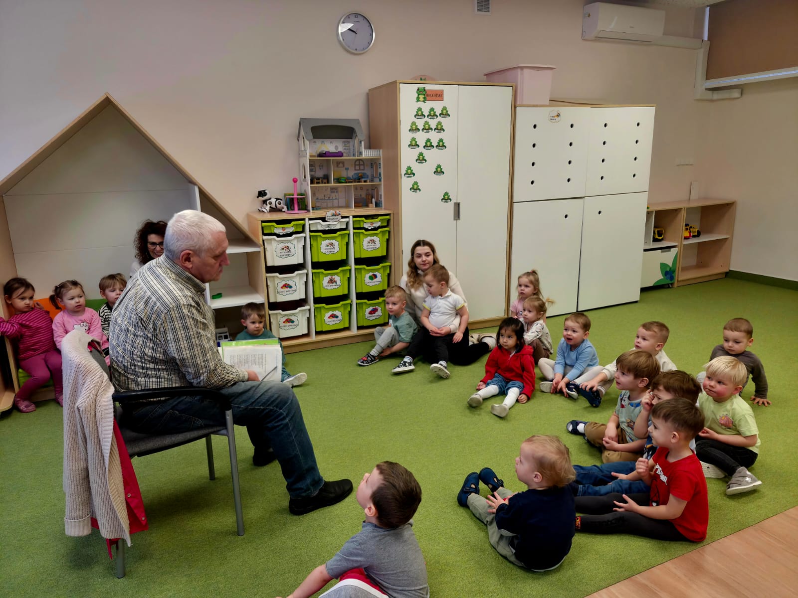 Podczas spotkania w ramach projektu „Maluszek w krainie książek”, wyjątkowym gościem był Pan Marek Paprocki - nasz rodzimy poeata i literat , który z ogromnym zaangażowaniem przeczytał dzieciom bajkę pt.: "Miś Uszatek"