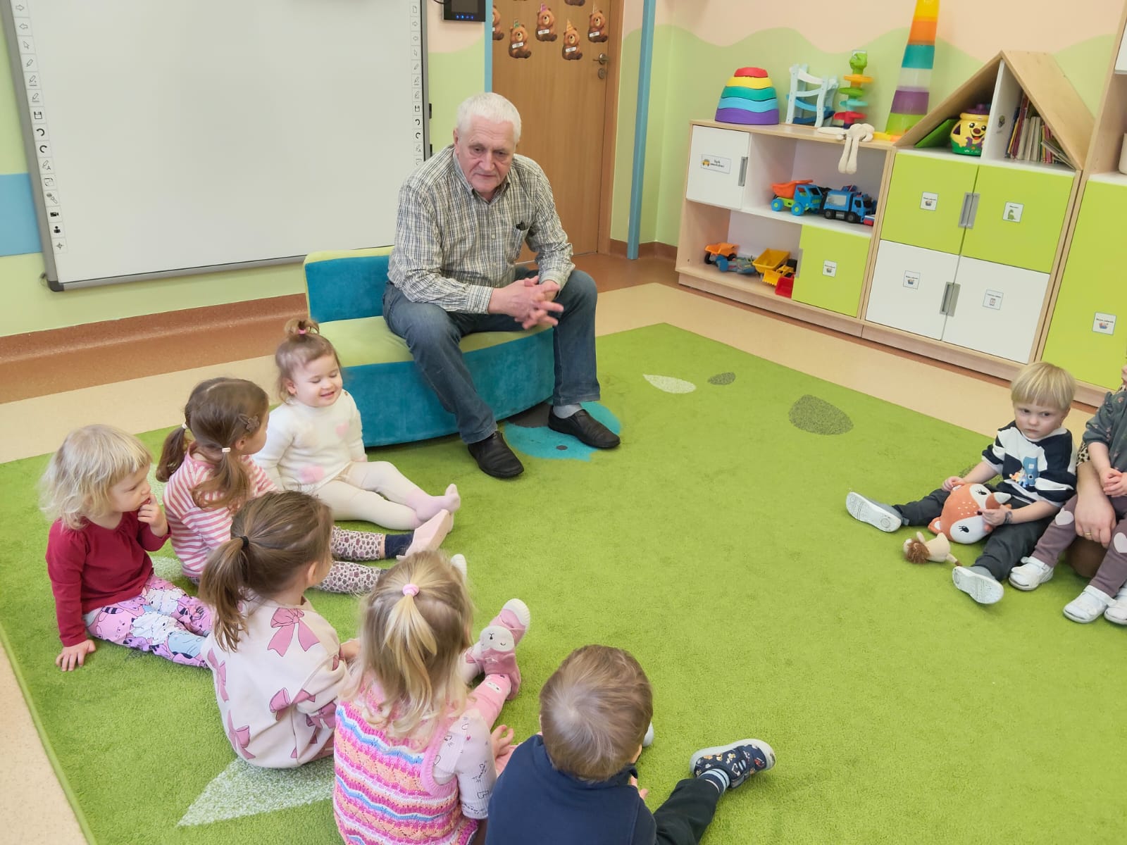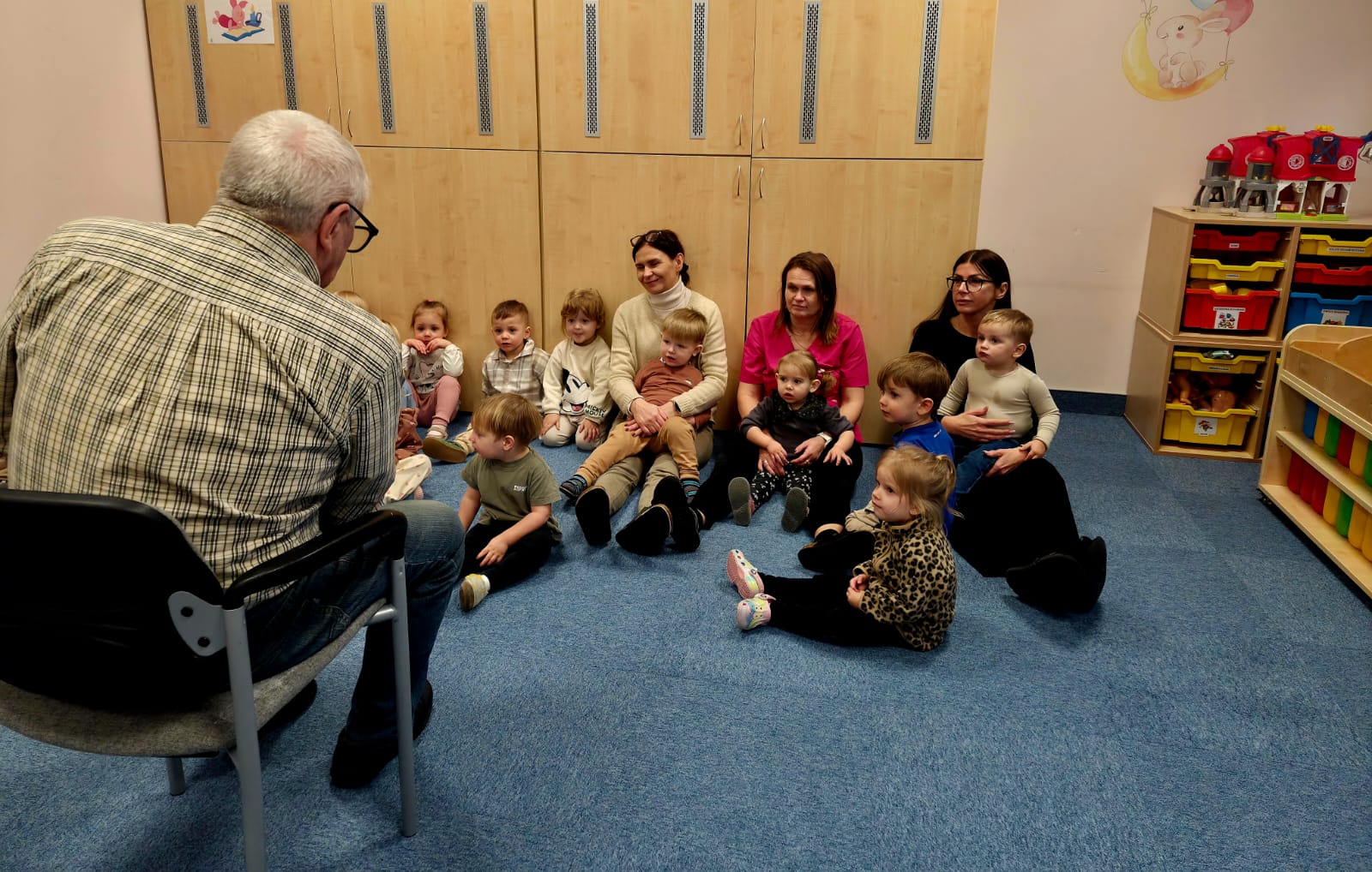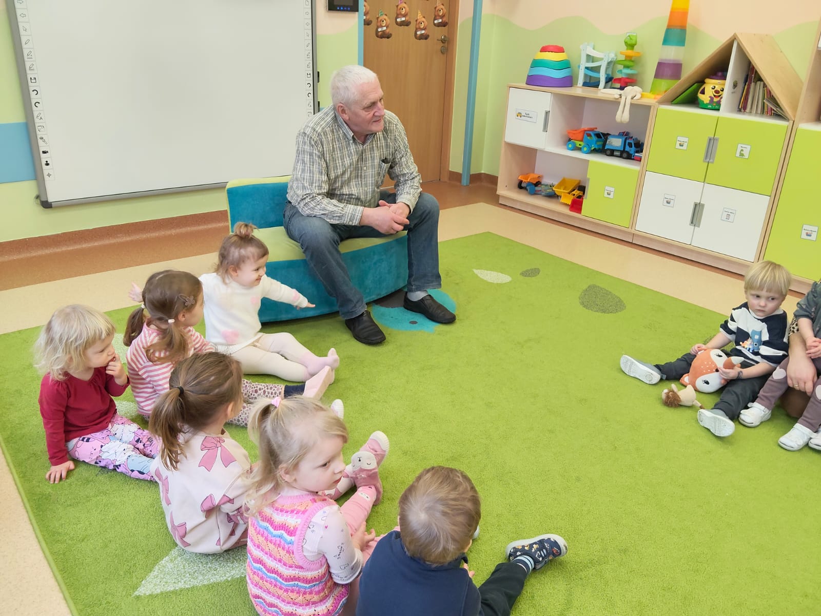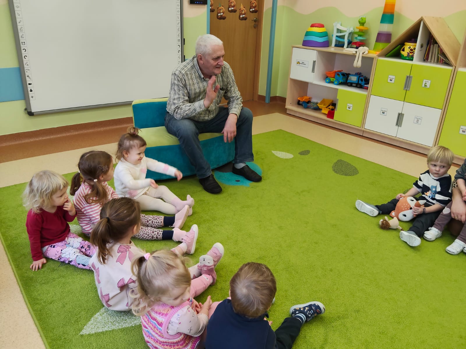Podczas spotkania w ramach projektu „Maluszek w krainie książek”, wyjątkowym gościem był Pan Marek Paprocki - nasz rodzimy poeata i literat , który z ogromnym zaangażowaniem przeczytał dzieciom bajkę pt.: "Miś Uszatek"