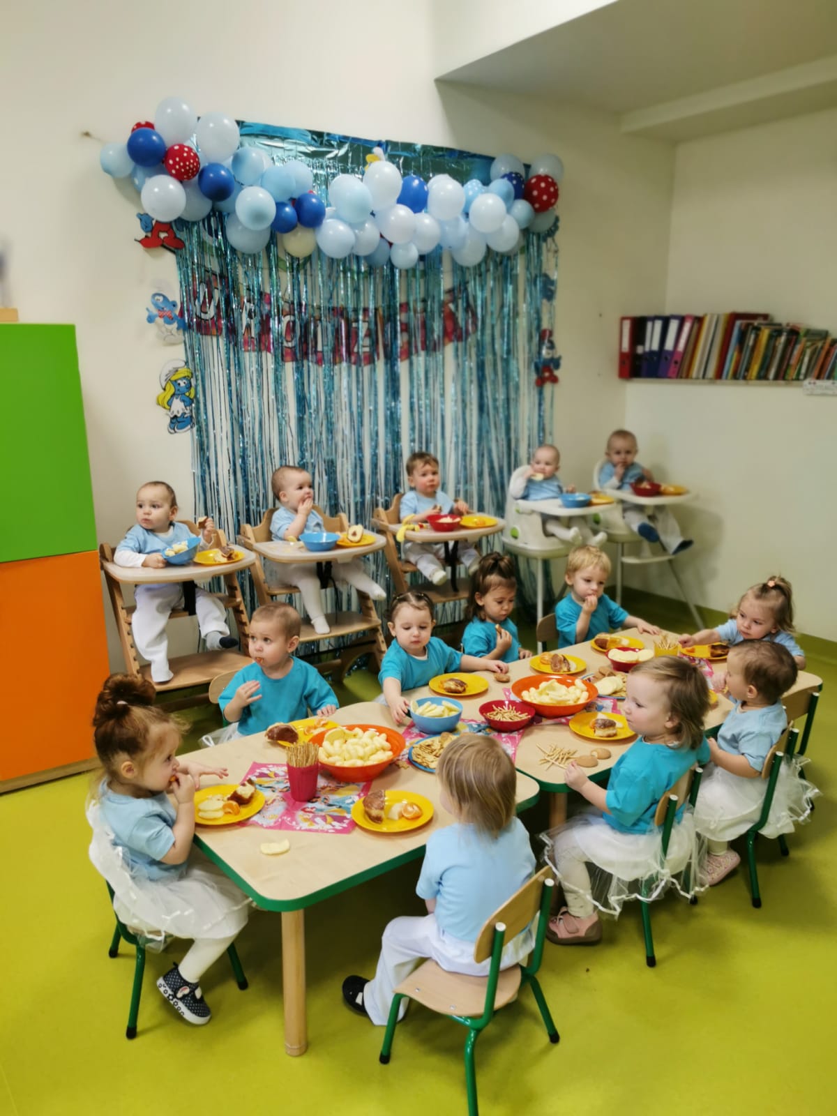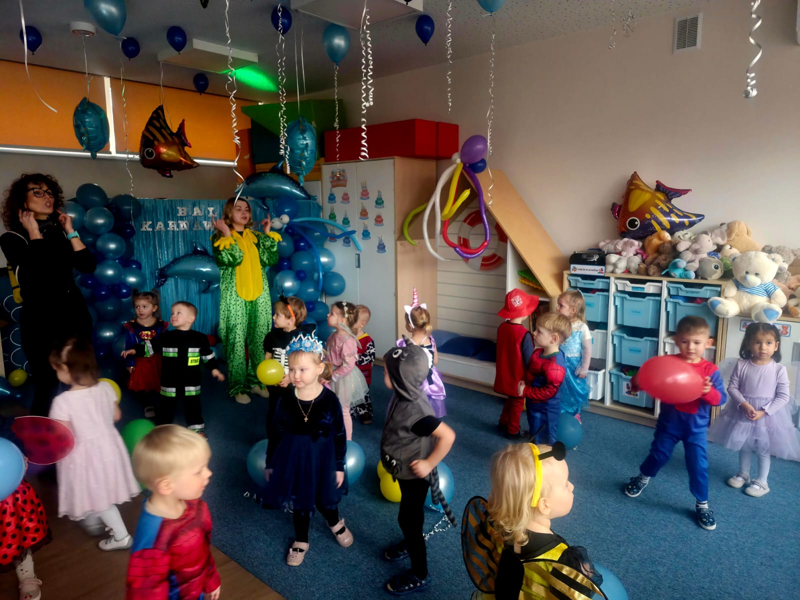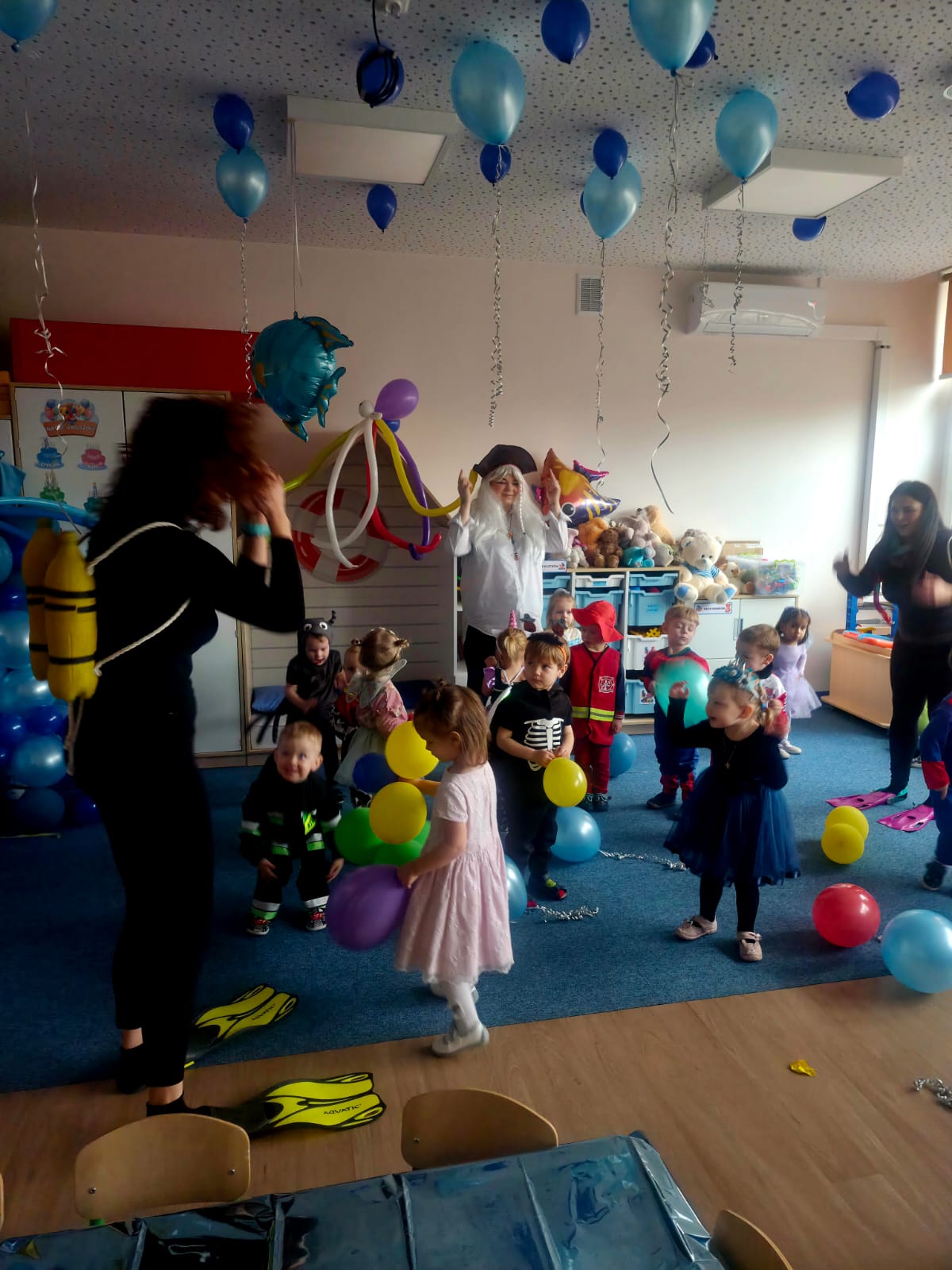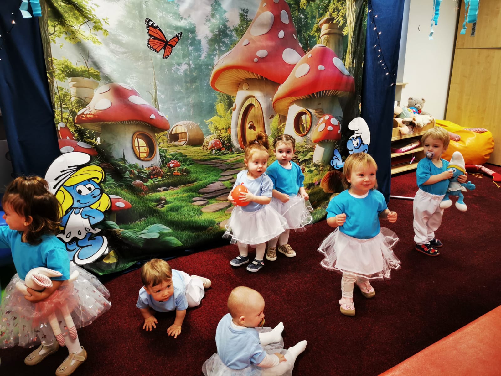 Każda grupa świętowała w swoim niepowtarzalnym klimacie. W jednej sali królowały wesołe Smerfy, w innej dzieci przeniosły się do fascynującego świata zoo, gdzie można było spotkać lwy, zebry i inne egzotyczne zwierzęta. Kolejna grupa odkrywała tajemnice podwodnego świata wśród rybek i morskich stworzeń, a u nas nie zabrakło także prawdziwej sali disco, gdzie mali tancerze pokazali swoje najlepsze ruchy!